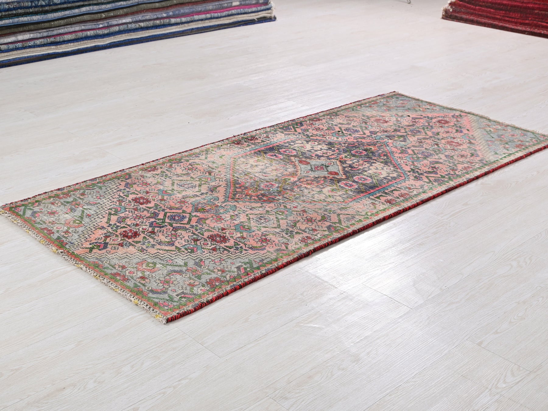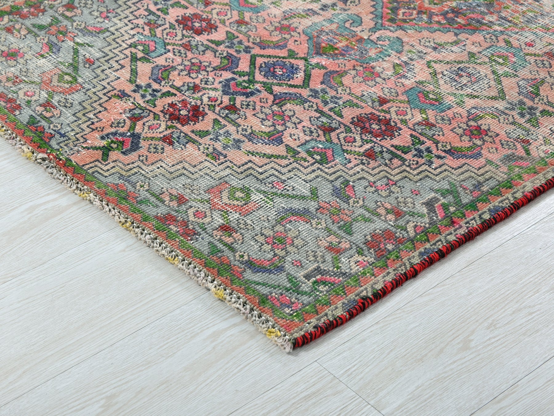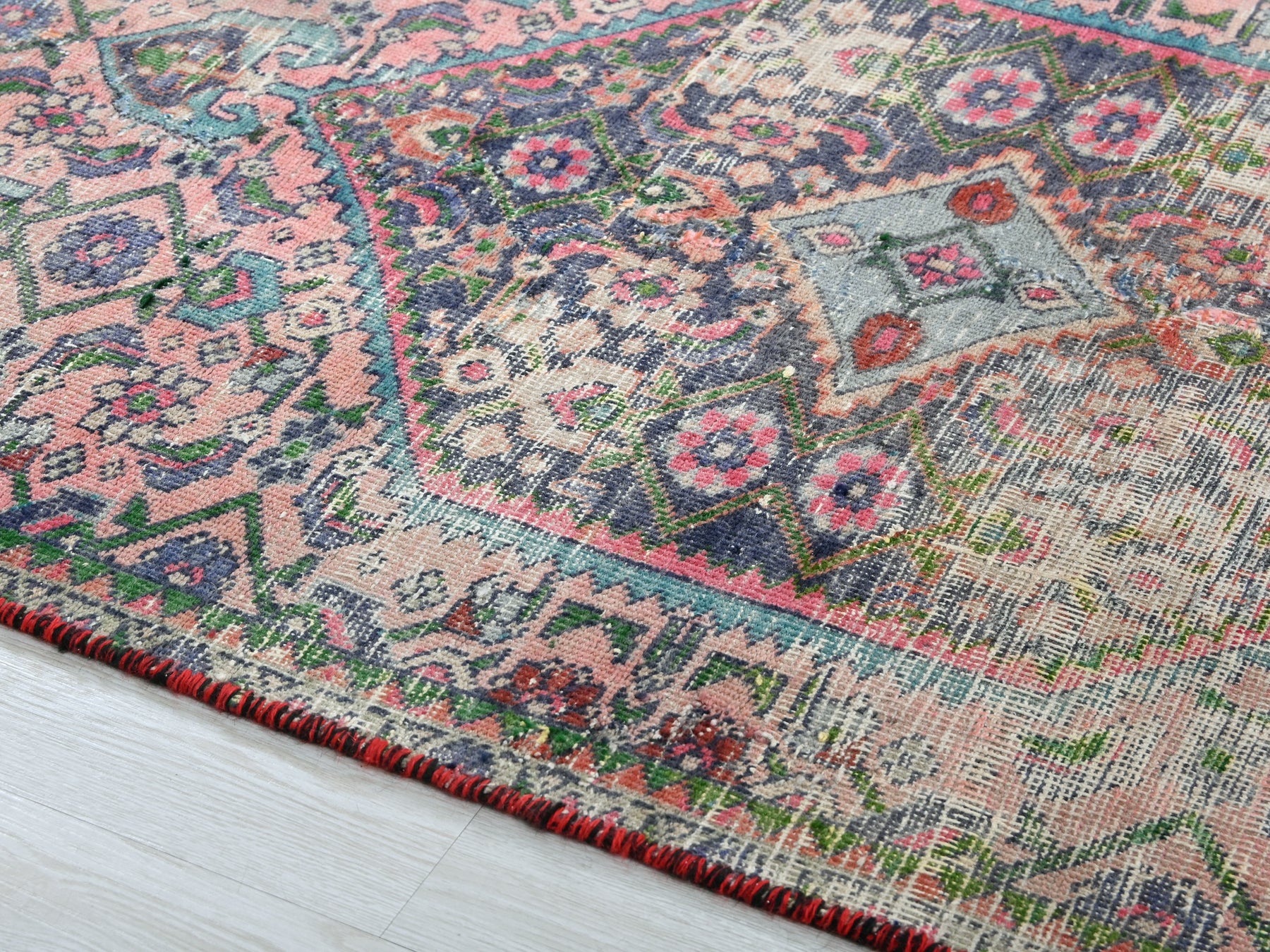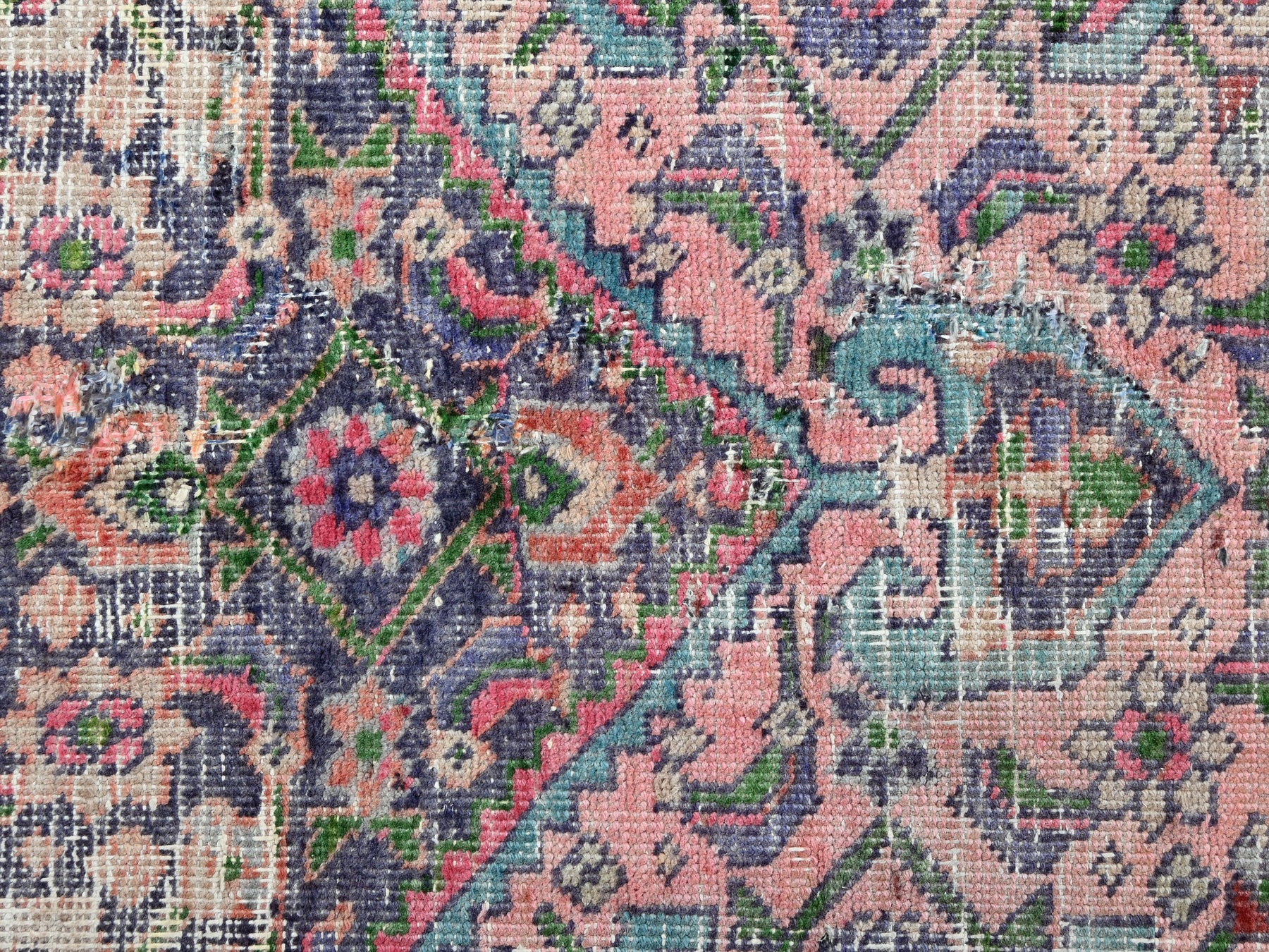 This is a hand-knotted, one-of-a-kind vintage rug. Due to the nature of this piece, there may be slight imperfections in its wear, shape, dimensions, and color. All of our rugs are professionally cleaned and repaired.