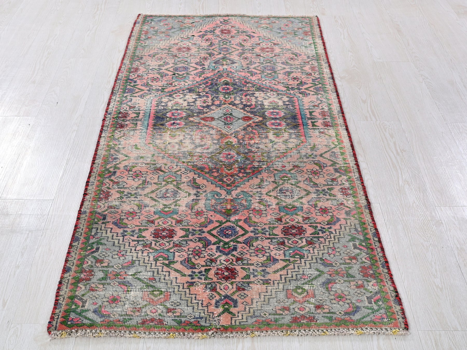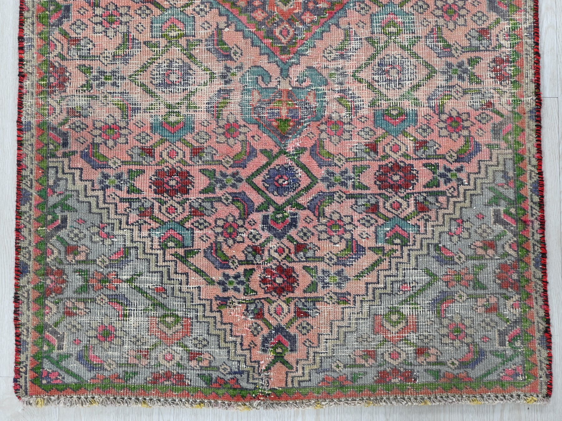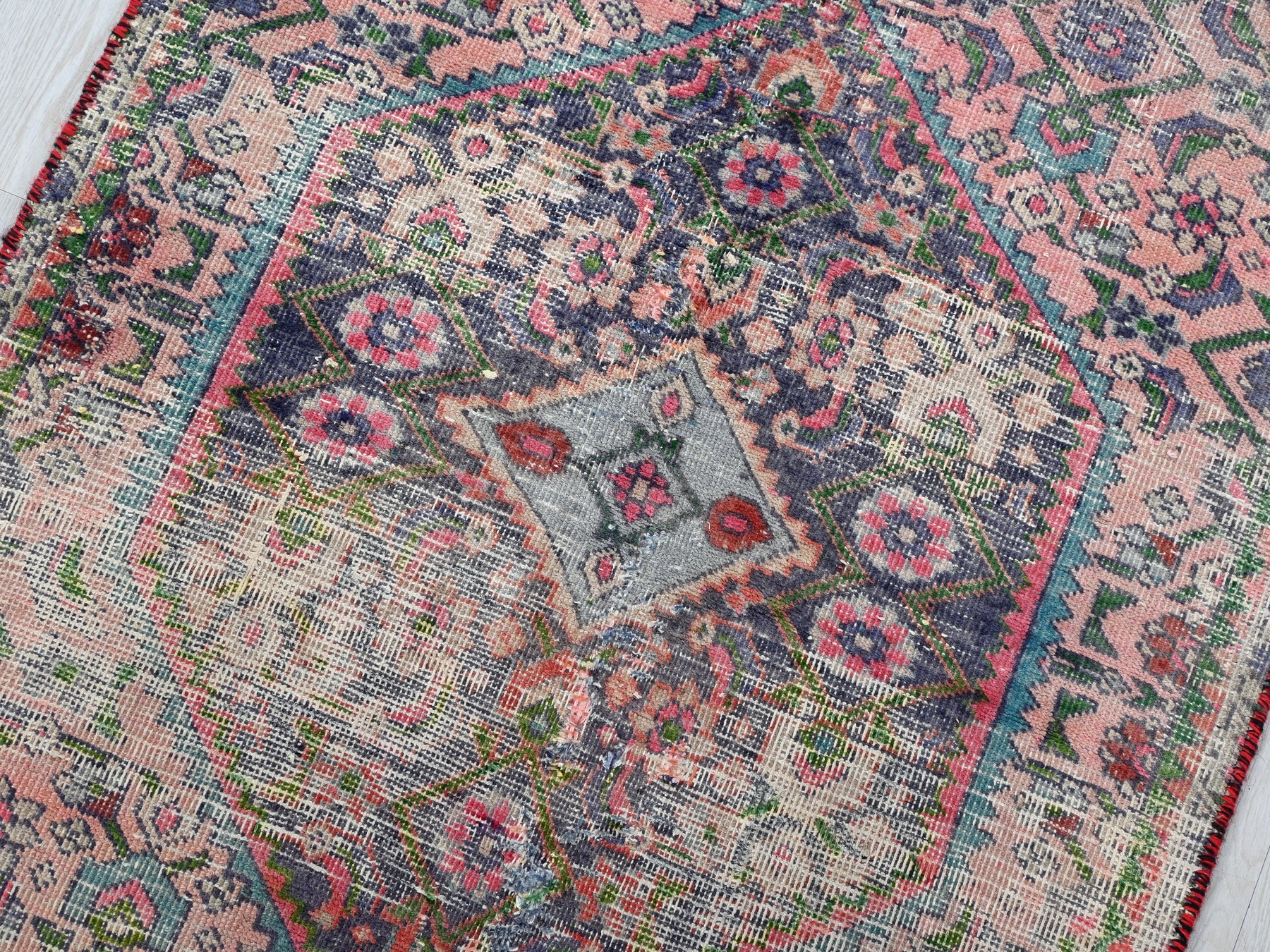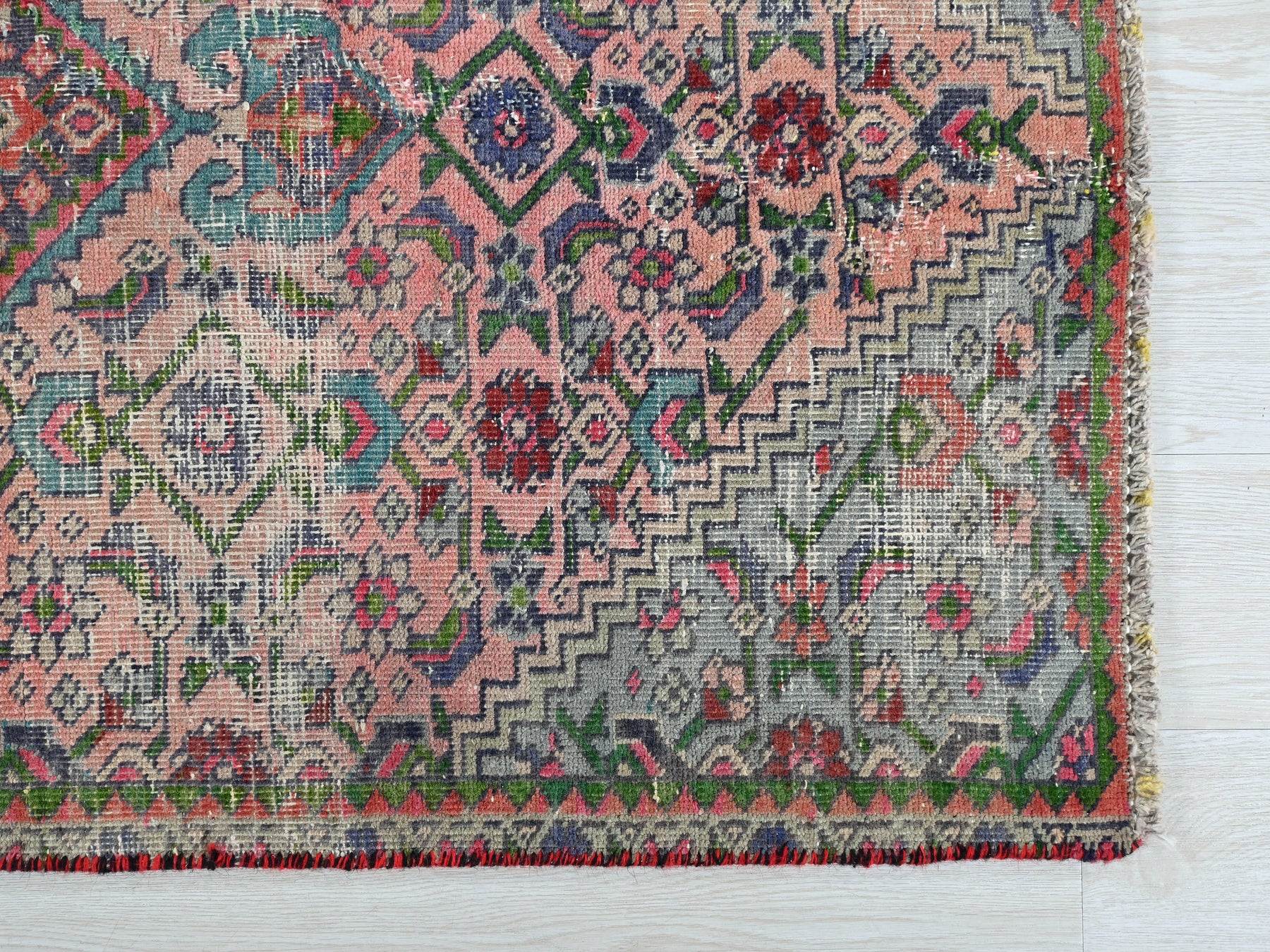 This is a hand-knotted, one-of-a-kind vintage rug. Due to the nature of this piece, there may be slight imperfections in its wear, shape, dimensions, and color. All of our rugs are professionally cleaned and repaired.