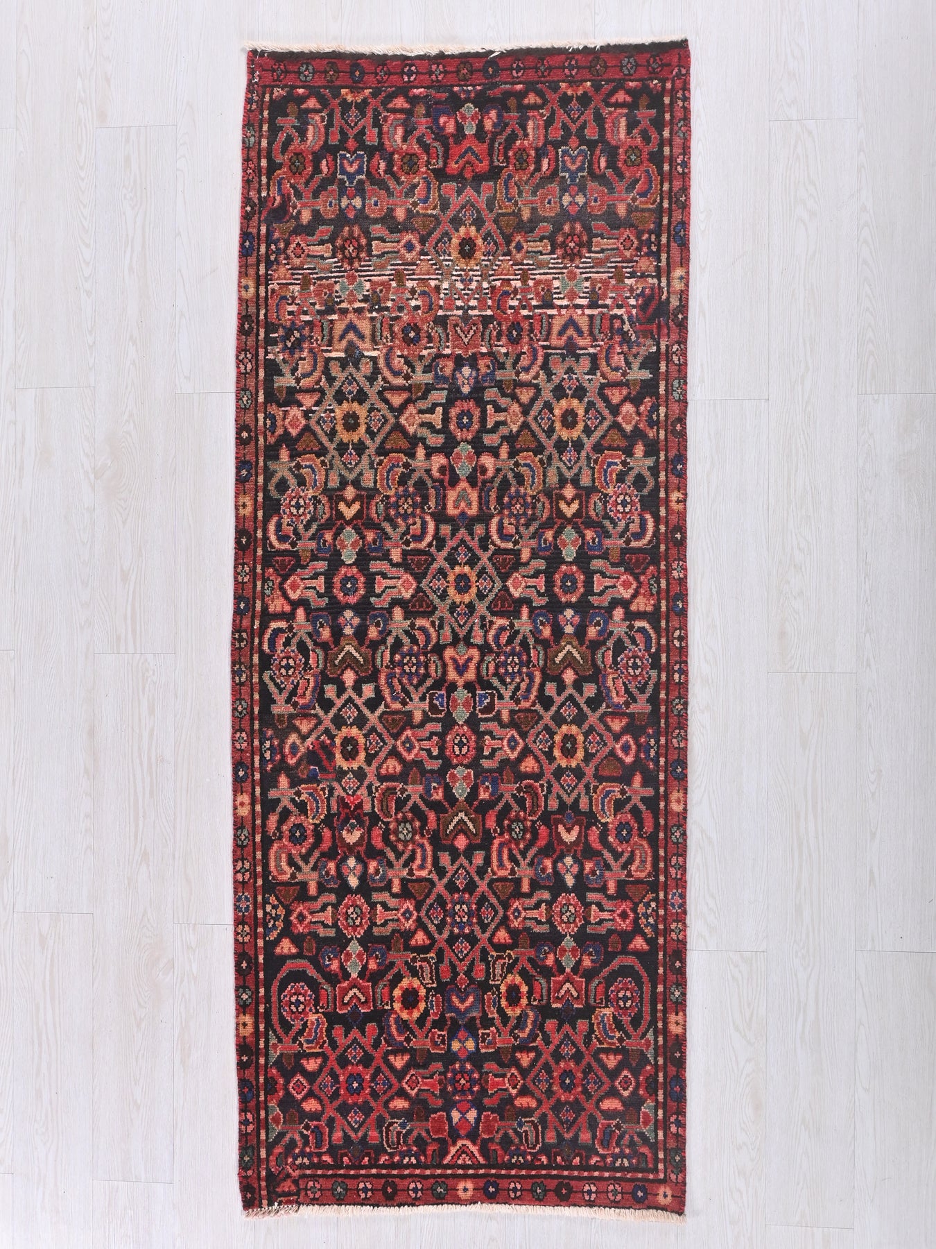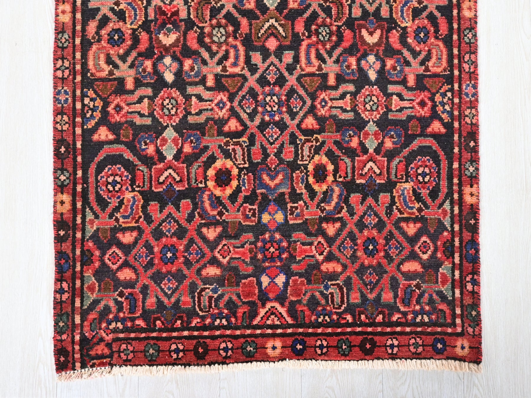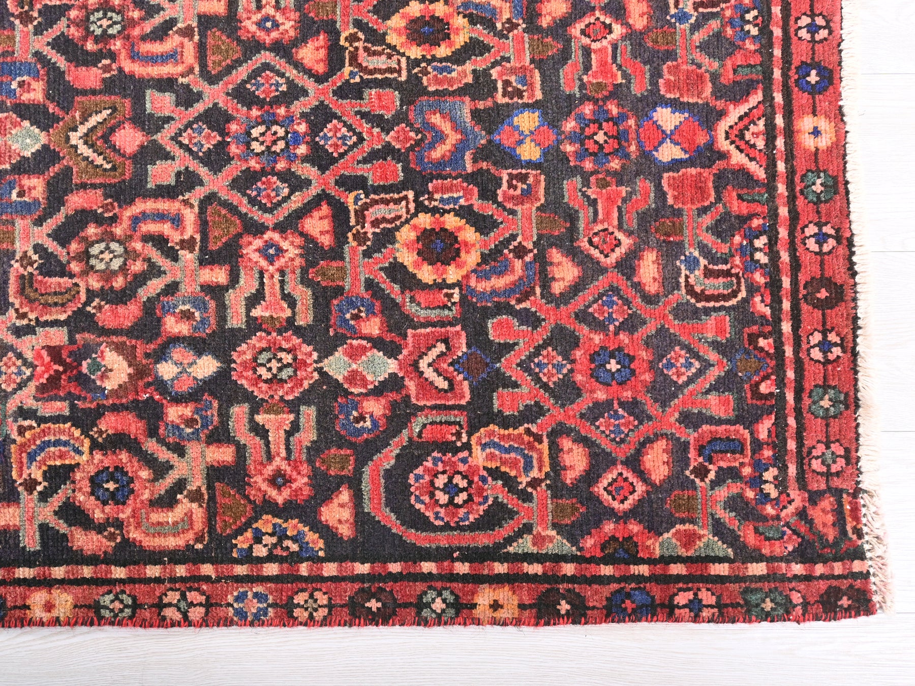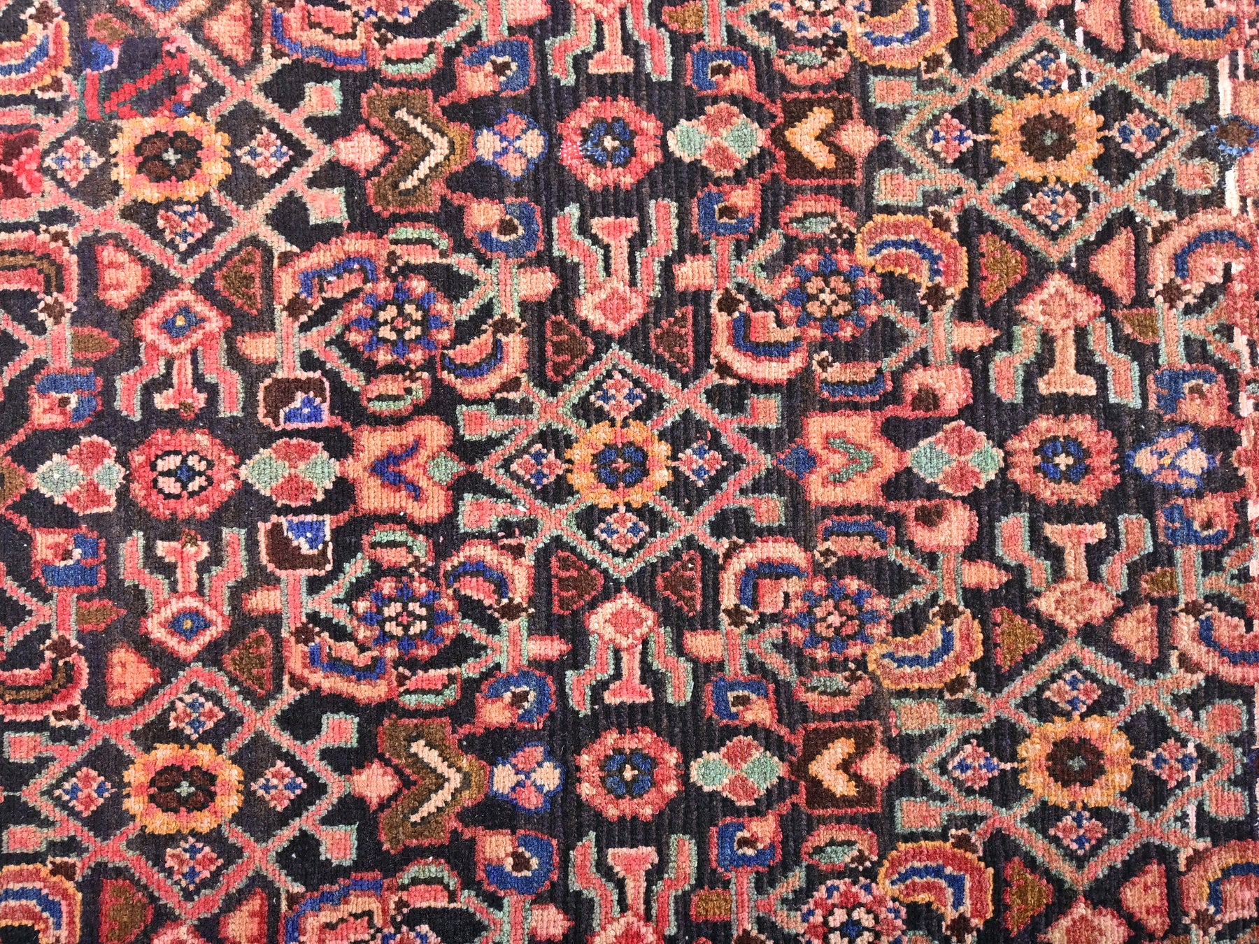 This is a hand-knotted, one-of-a-kind vintage rug. Due to the nature of this piece, there may be slight imperfections in its wear, shape, dimensions, and color. All of our rugs are professionally cleaned and repaired.