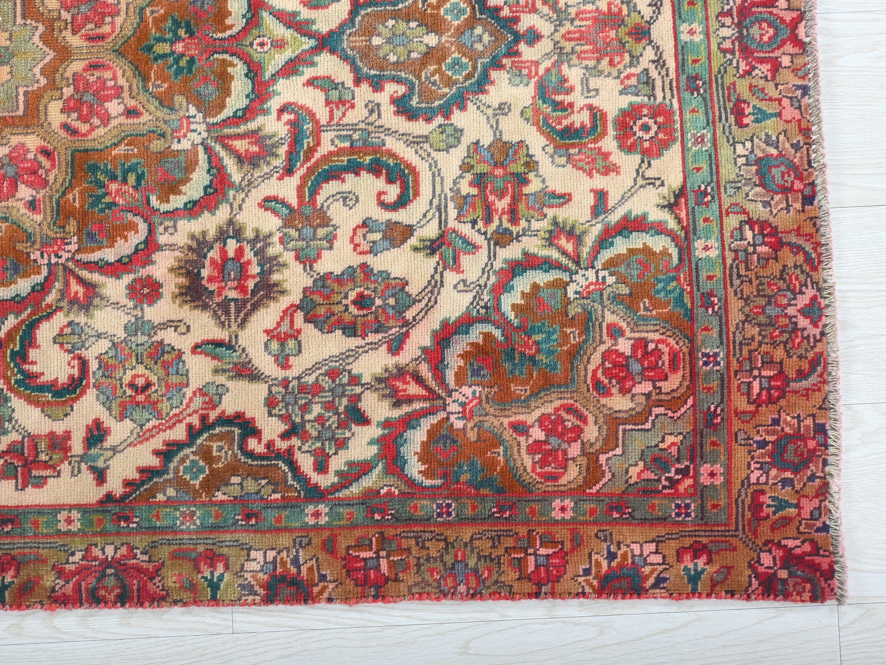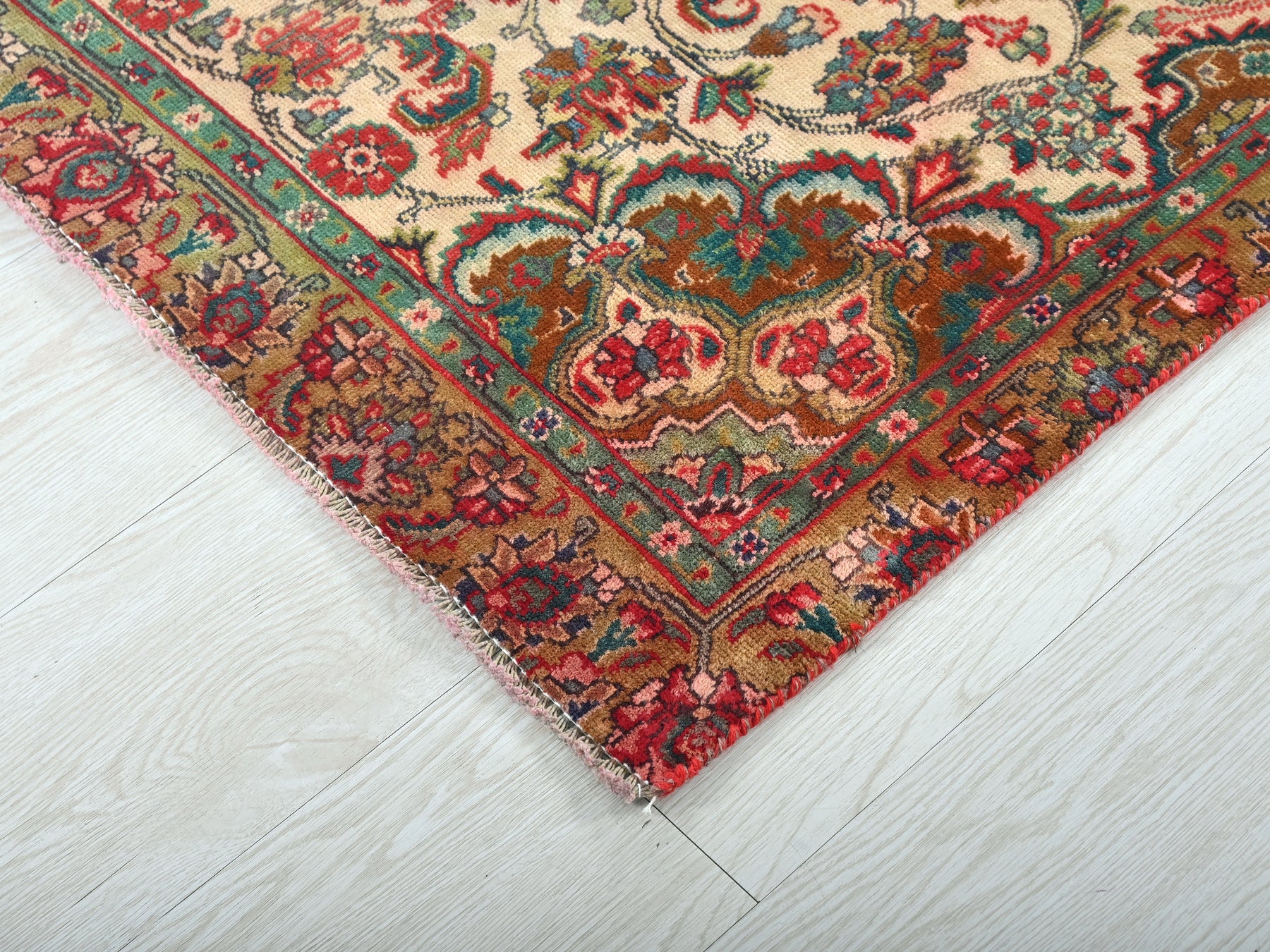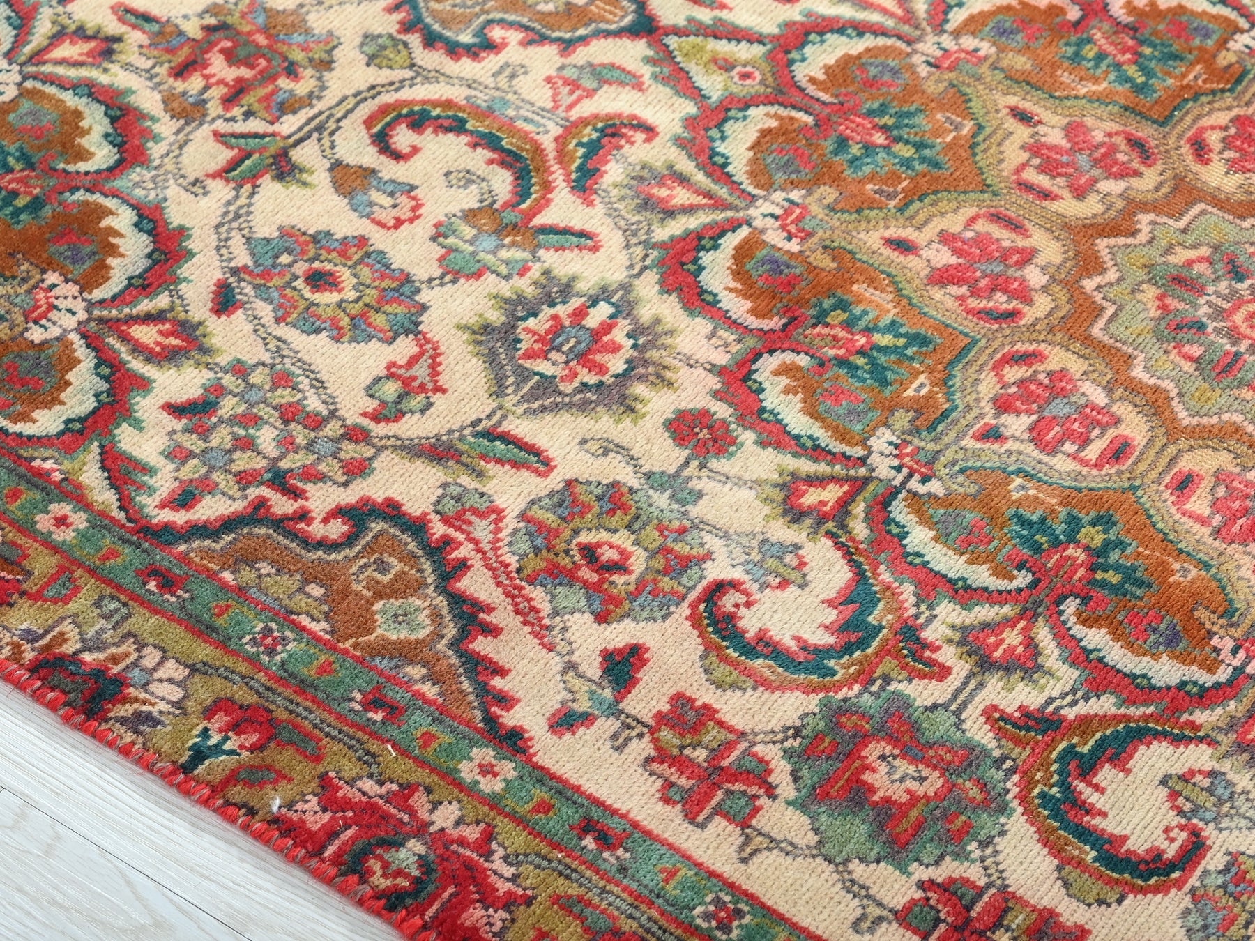 This is a hand-knotted, one-of-a-kind vintage rug. Due to the nature of this piece, there may be slight imperfections in its wear, shape, dimensions, and color. All of our rugs are professionally cleaned and repaired.
