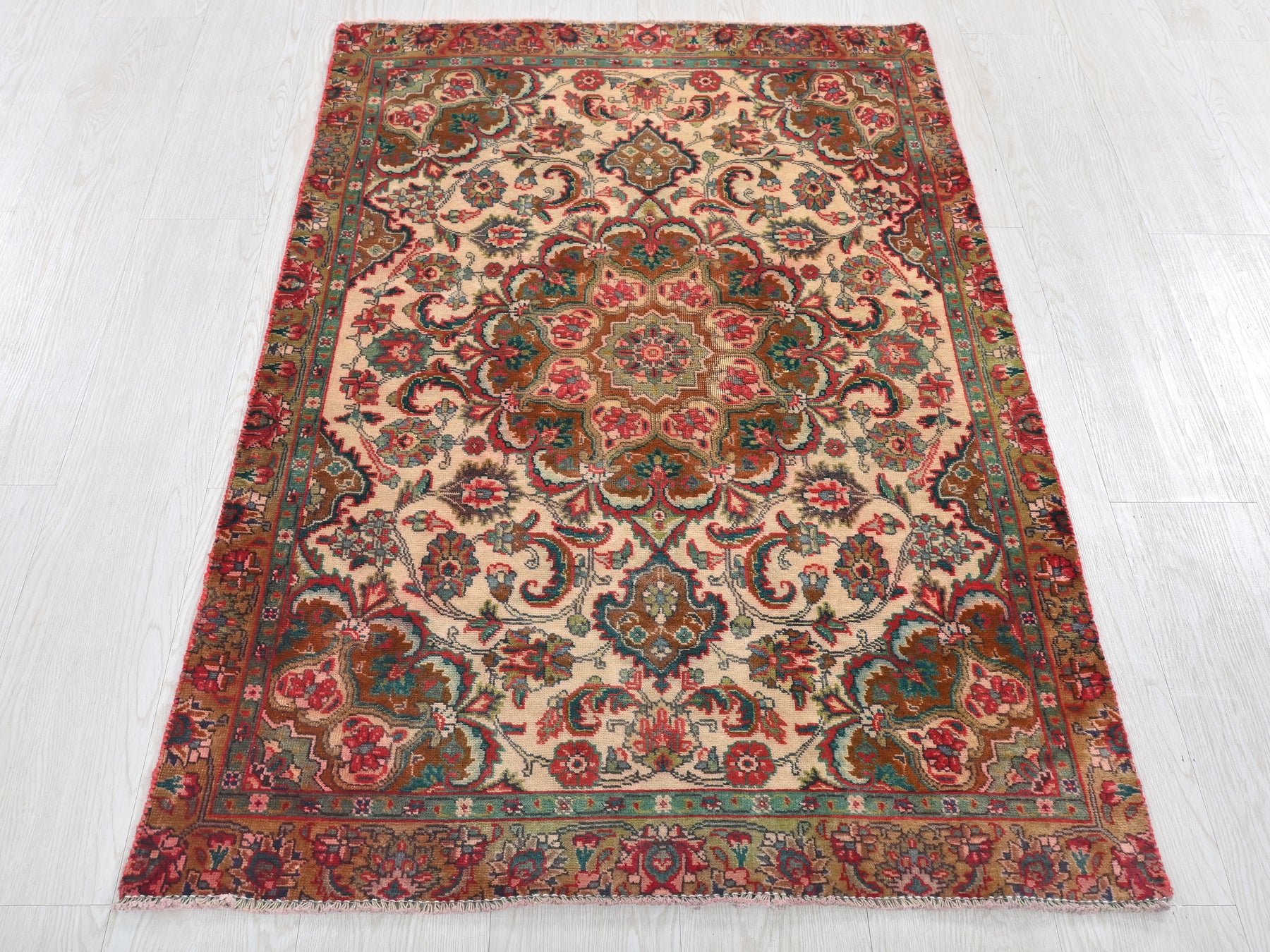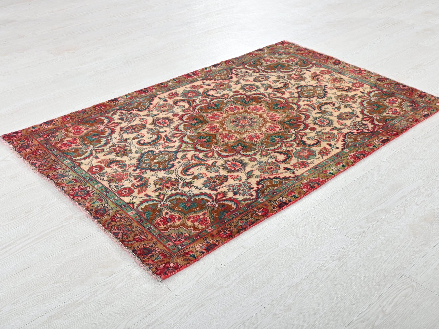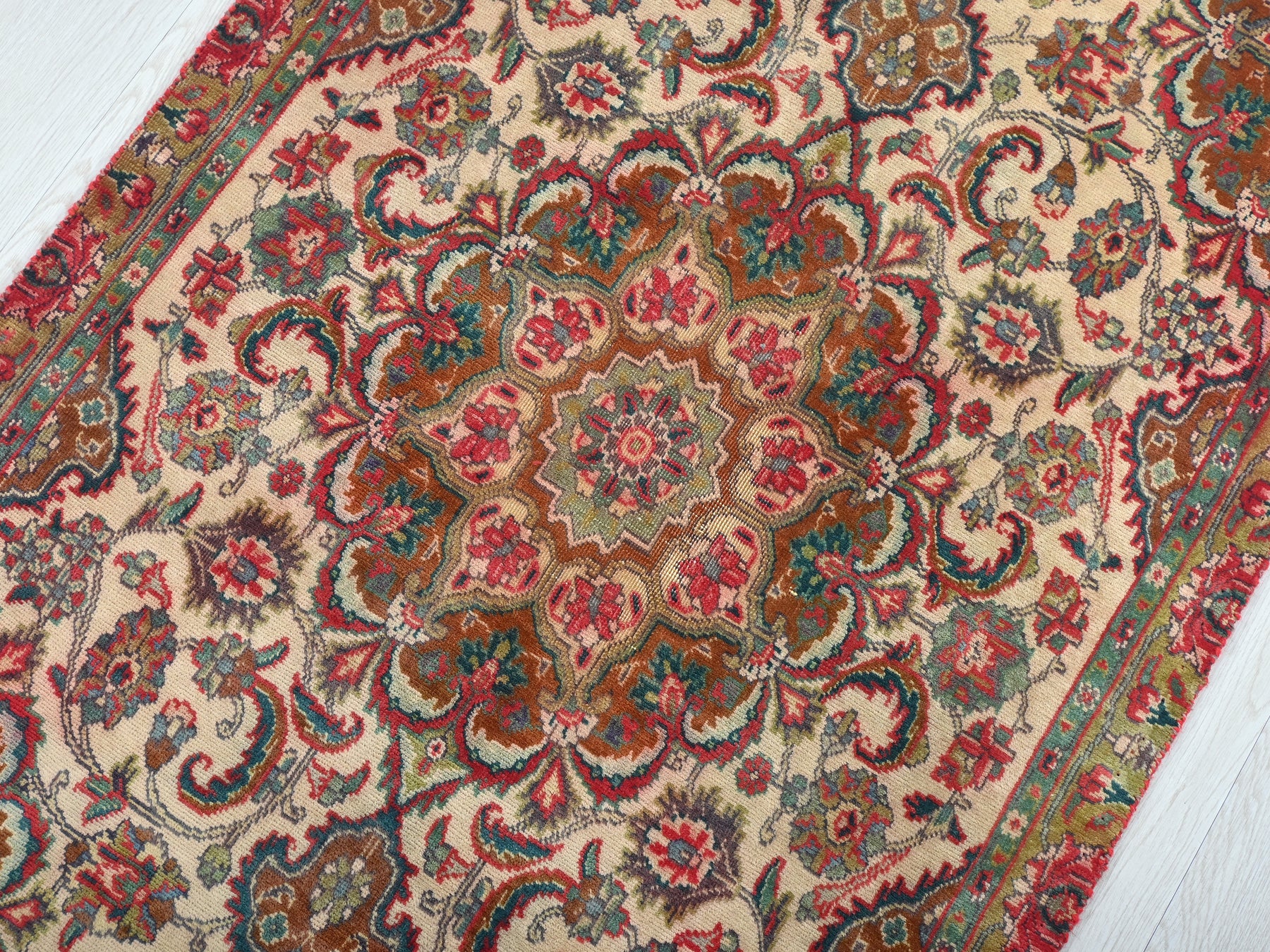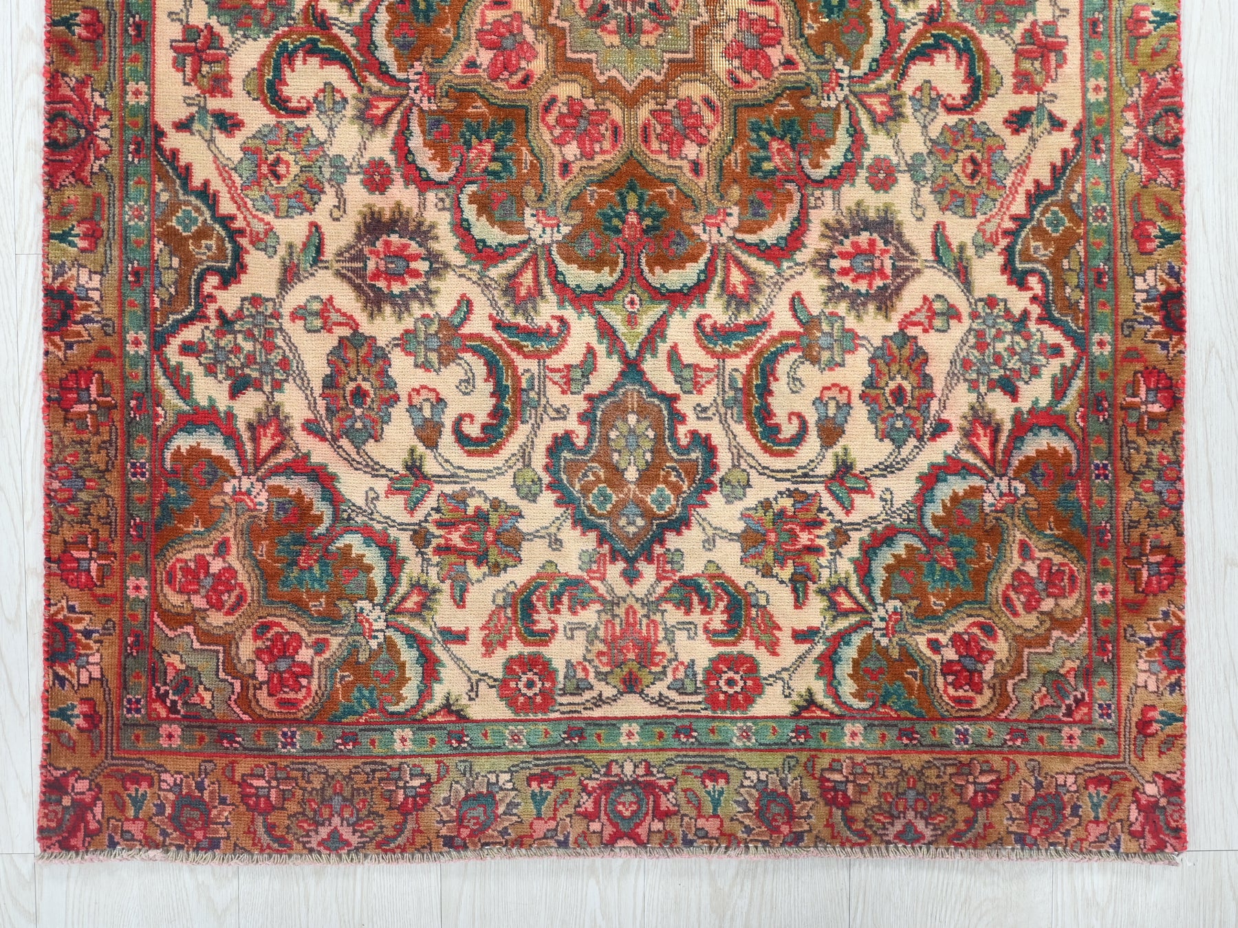 This is a hand-knotted, one-of-a-kind vintage rug. Due to the nature of this piece, there may be slight imperfections in its wear, shape, dimensions, and color. All of our rugs are professionally cleaned and repaired.