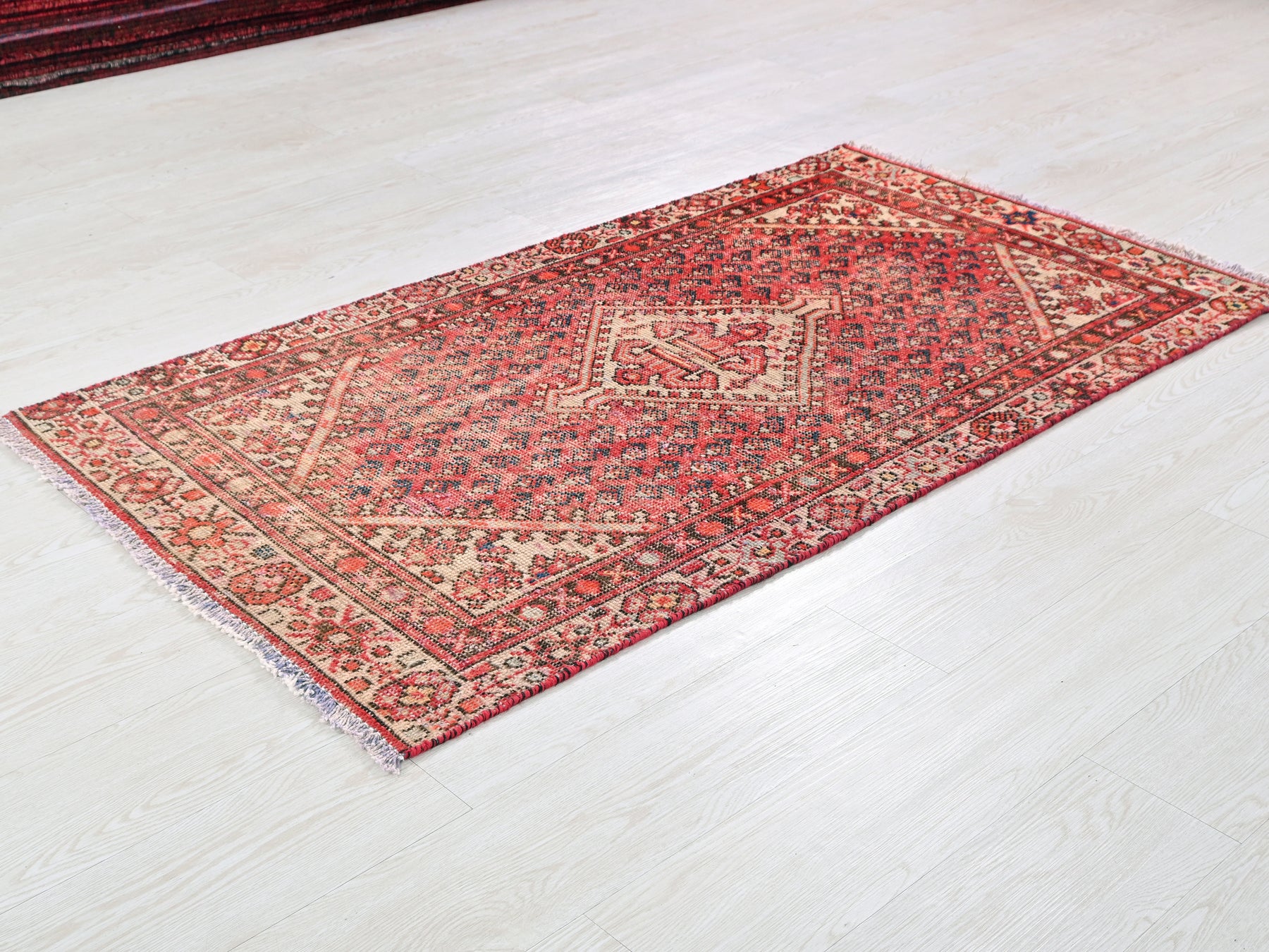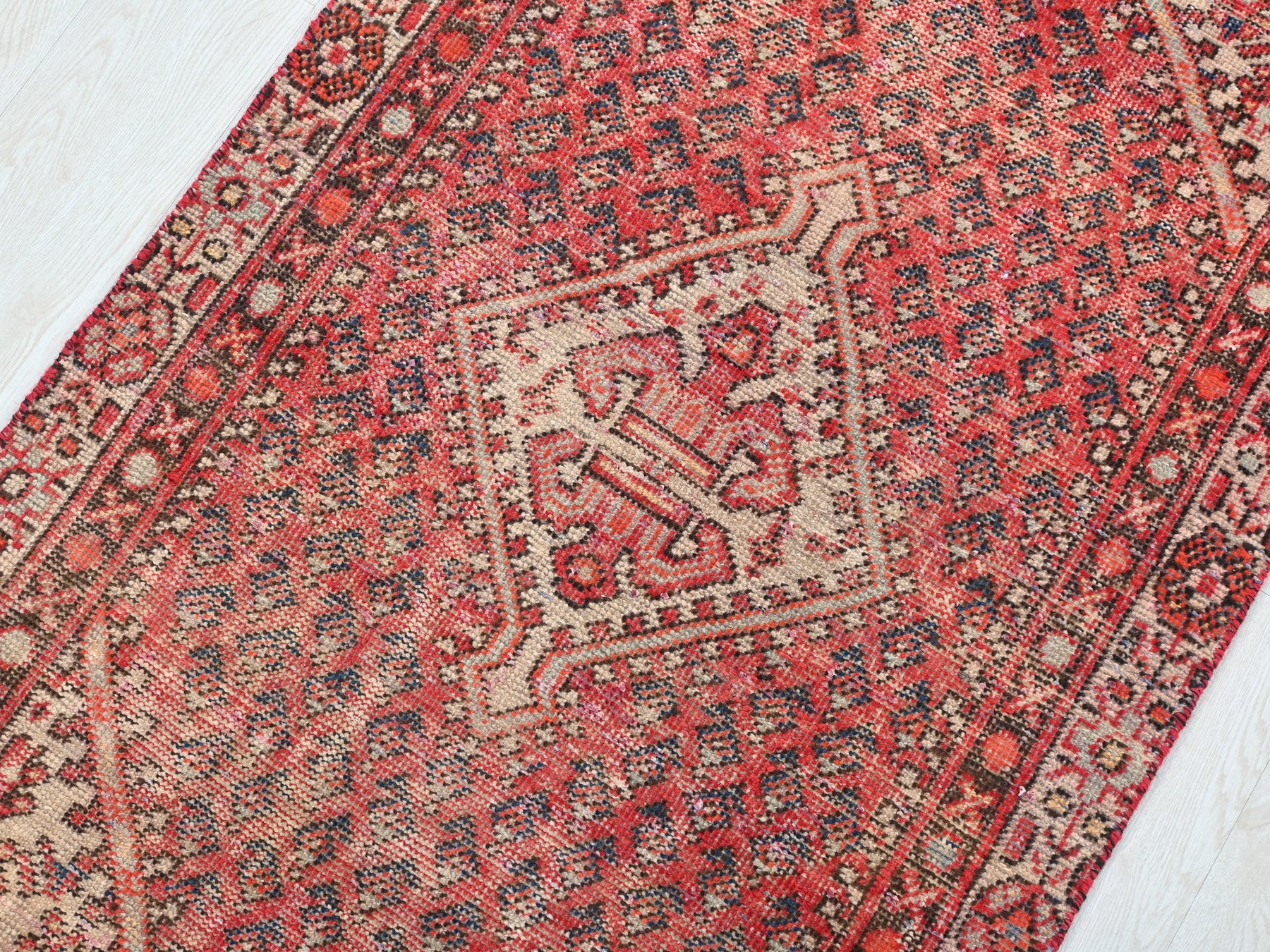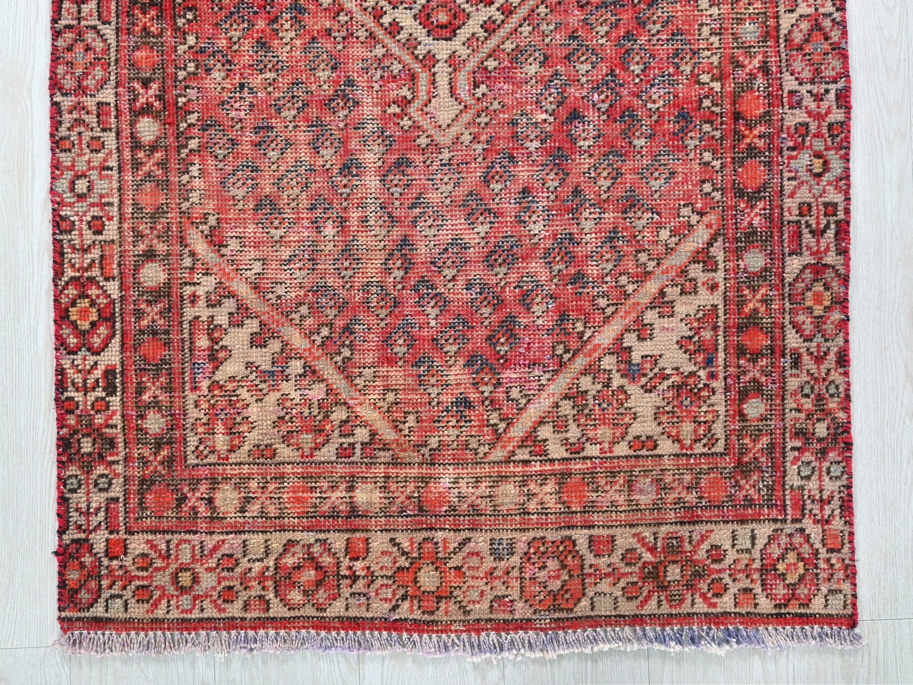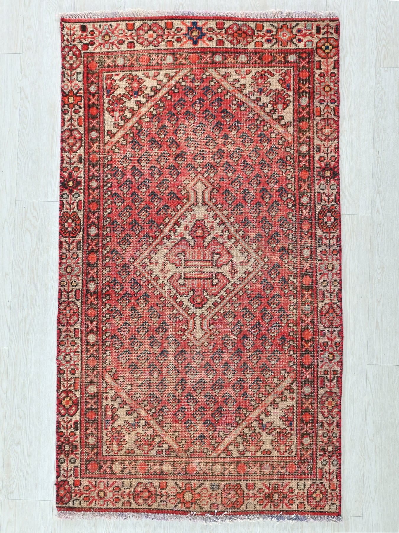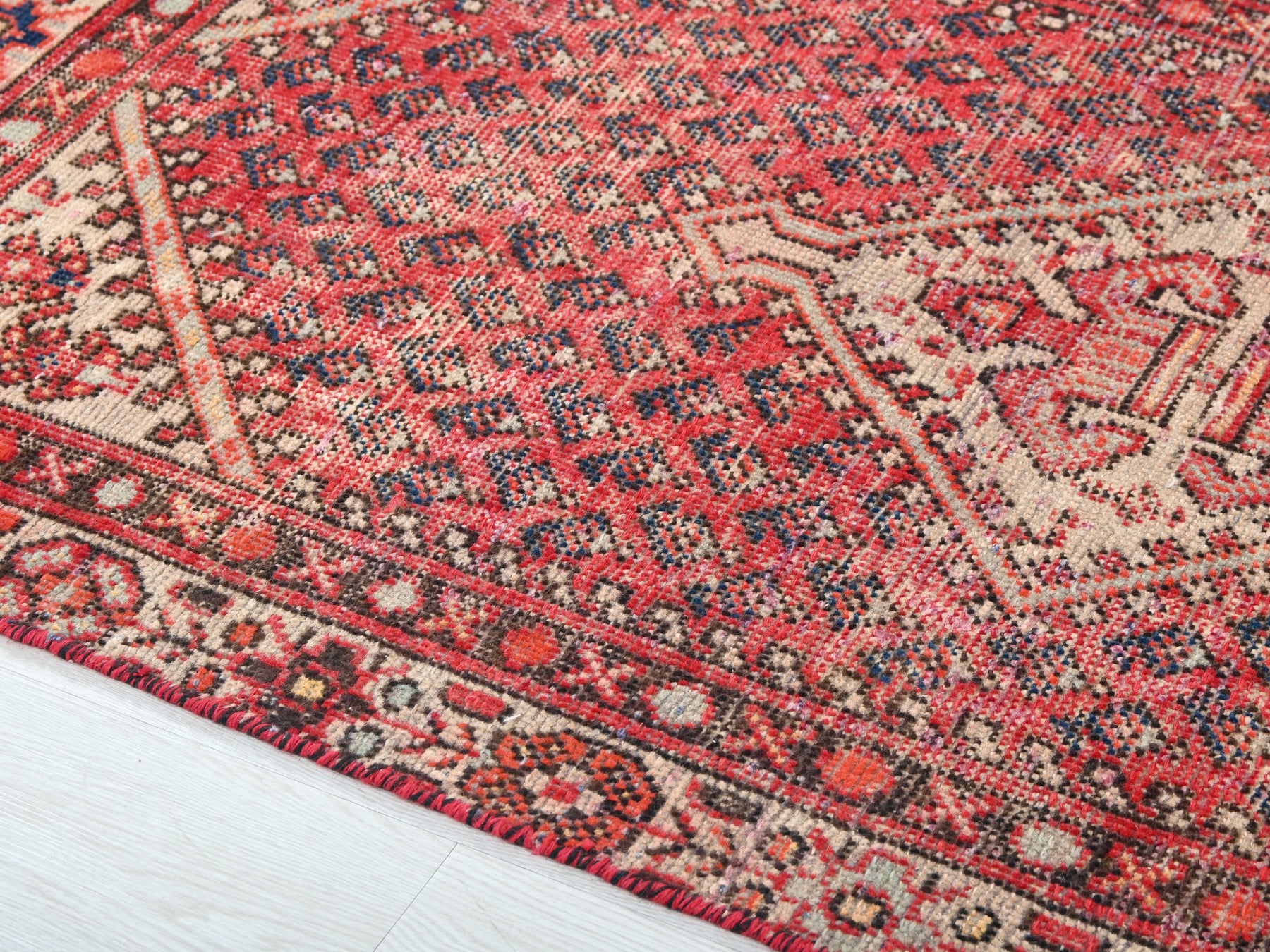 This is a hand-knotted, one-of-a-kind vintage rug. Due to the nature of this piece, there may be slight imperfections in its wear, shape, dimensions, and color. All of our rugs are professionally cleaned and repaired.