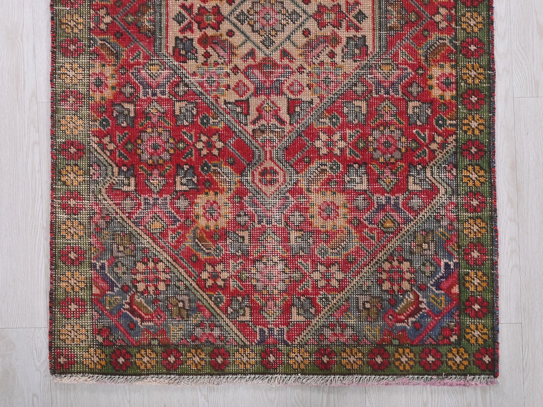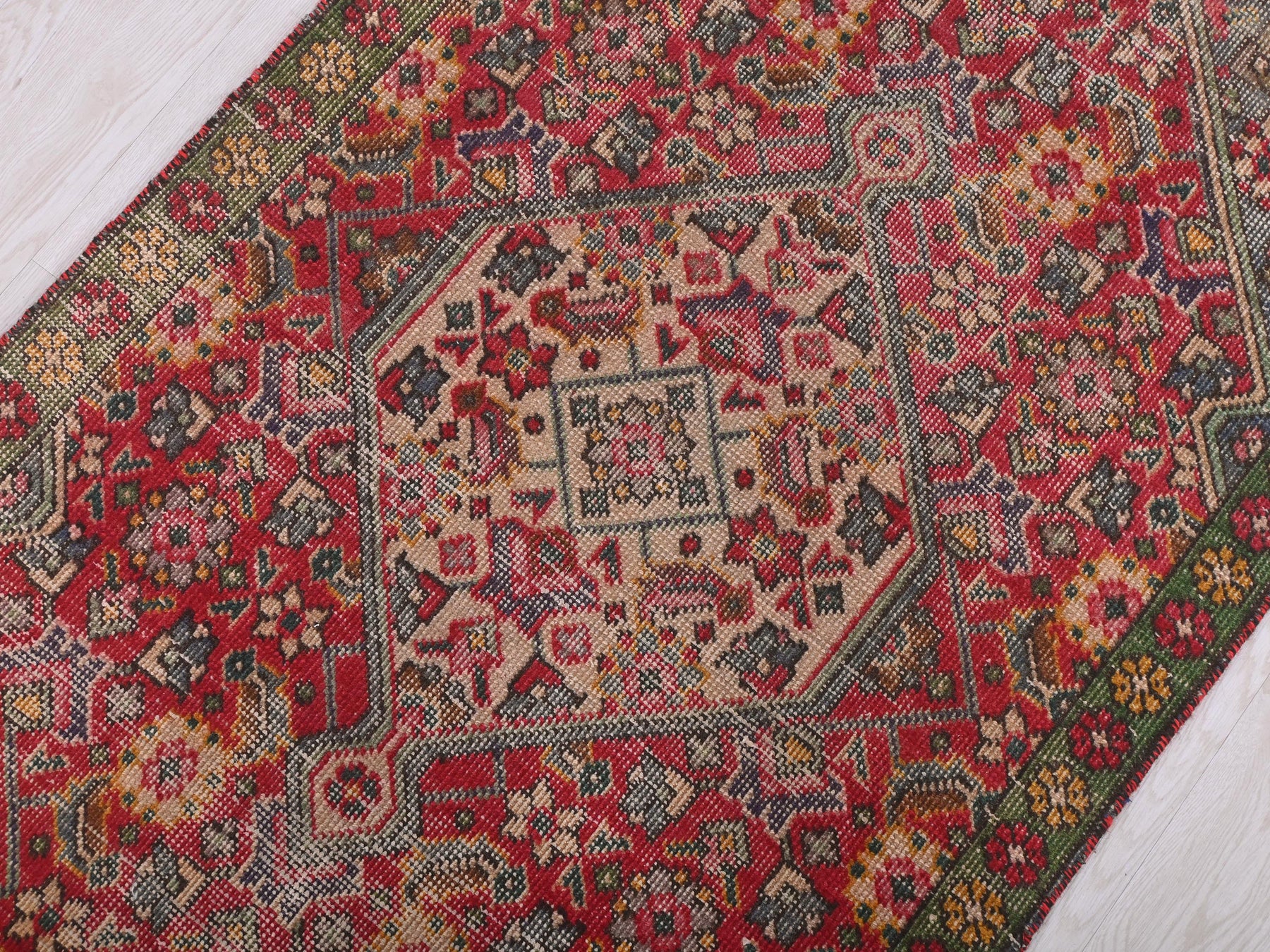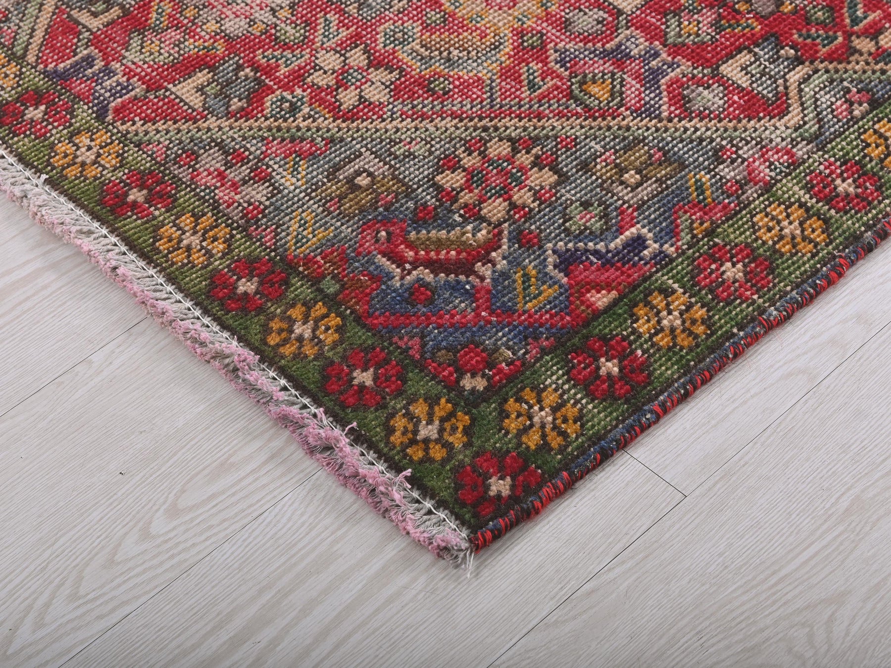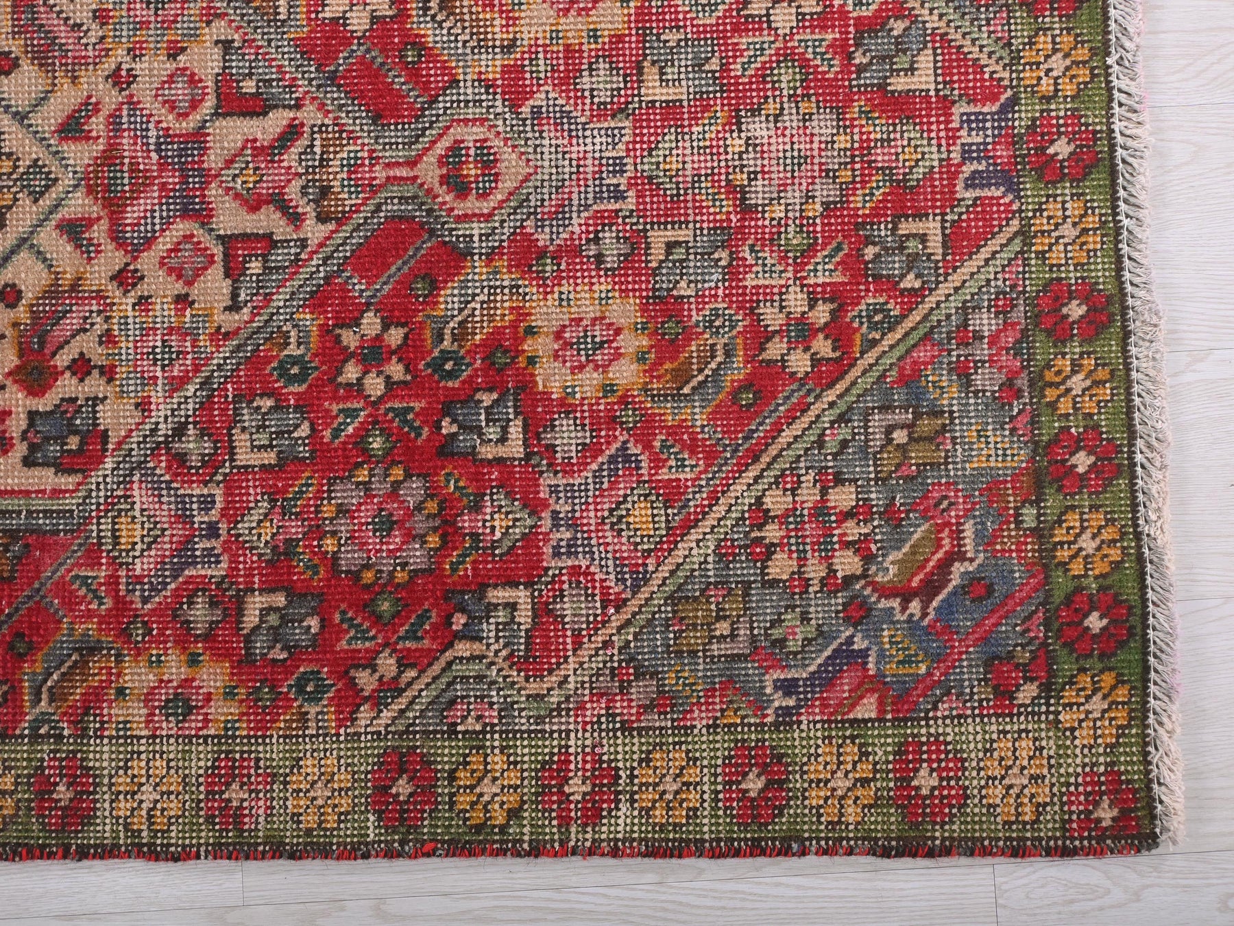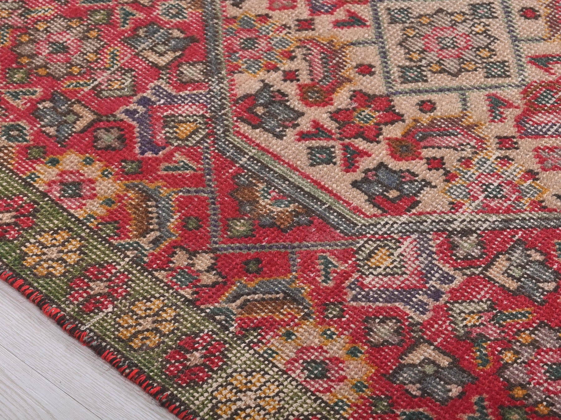 This is a hand-knotted, one-of-a-kind vintage rug. Due to the nature of this piece, there may be slight imperfections in its wear, shape, dimensions, and color. All of our rugs are professionally cleaned and repaired.