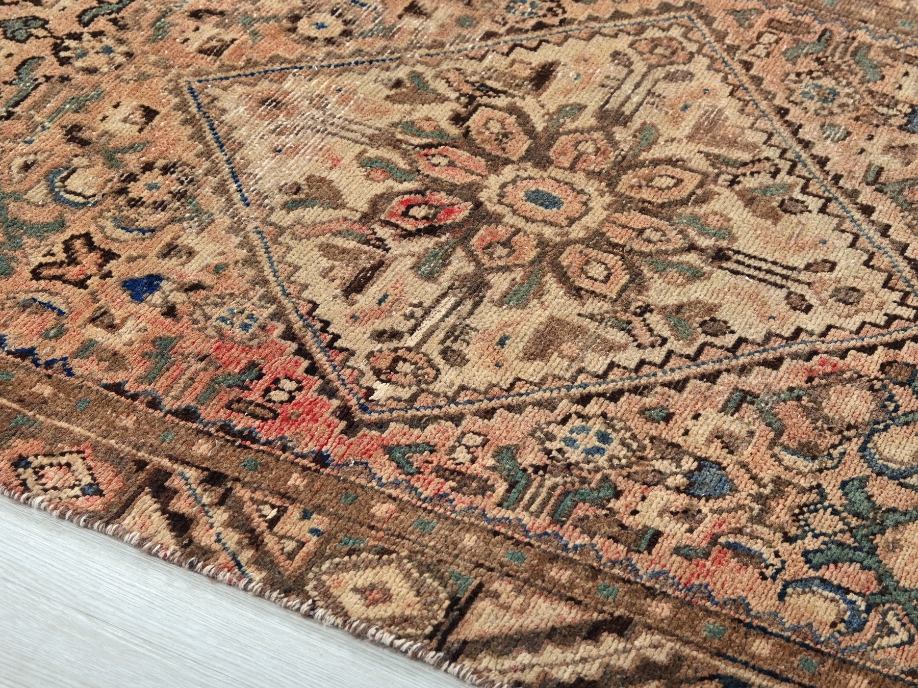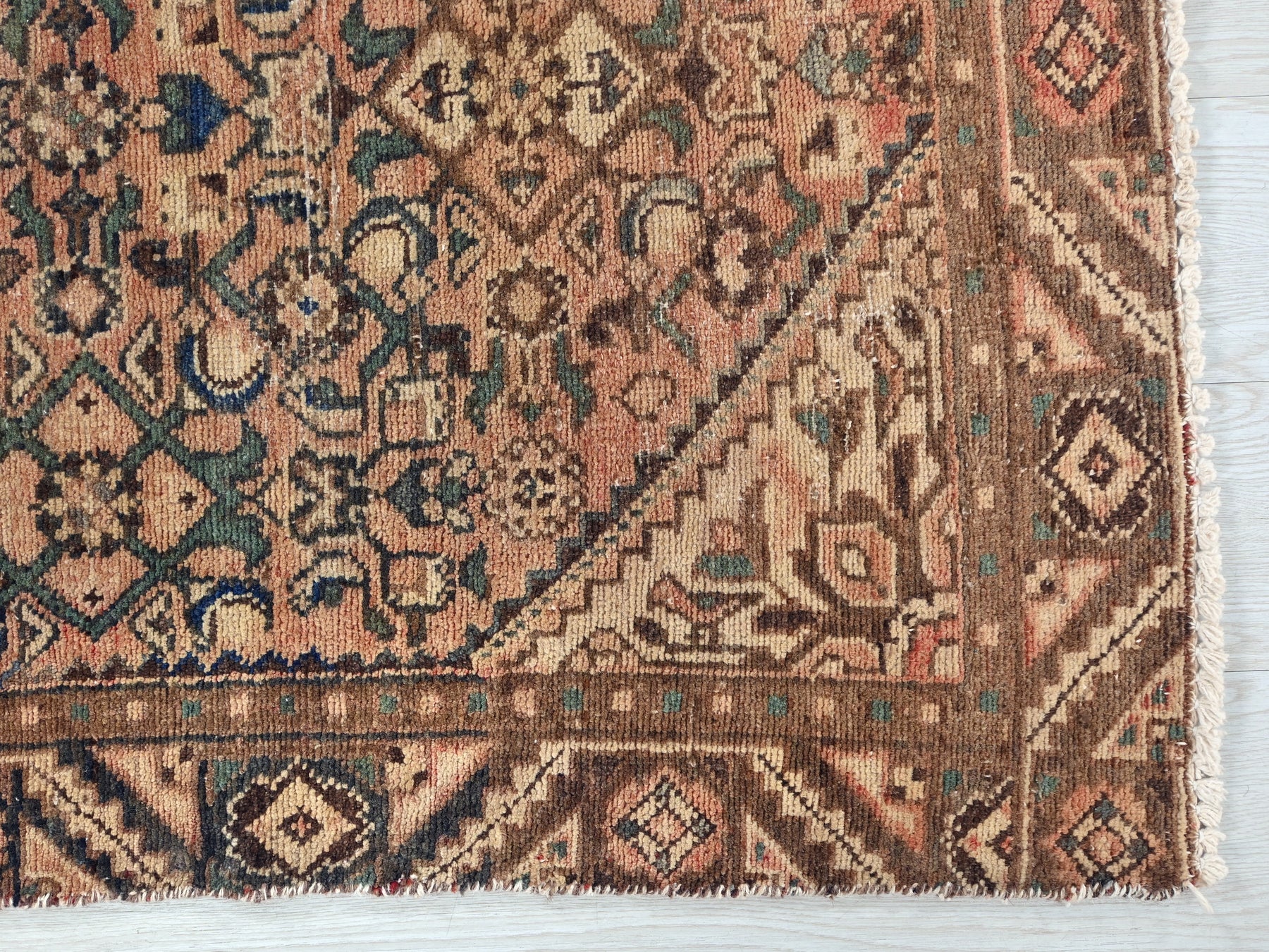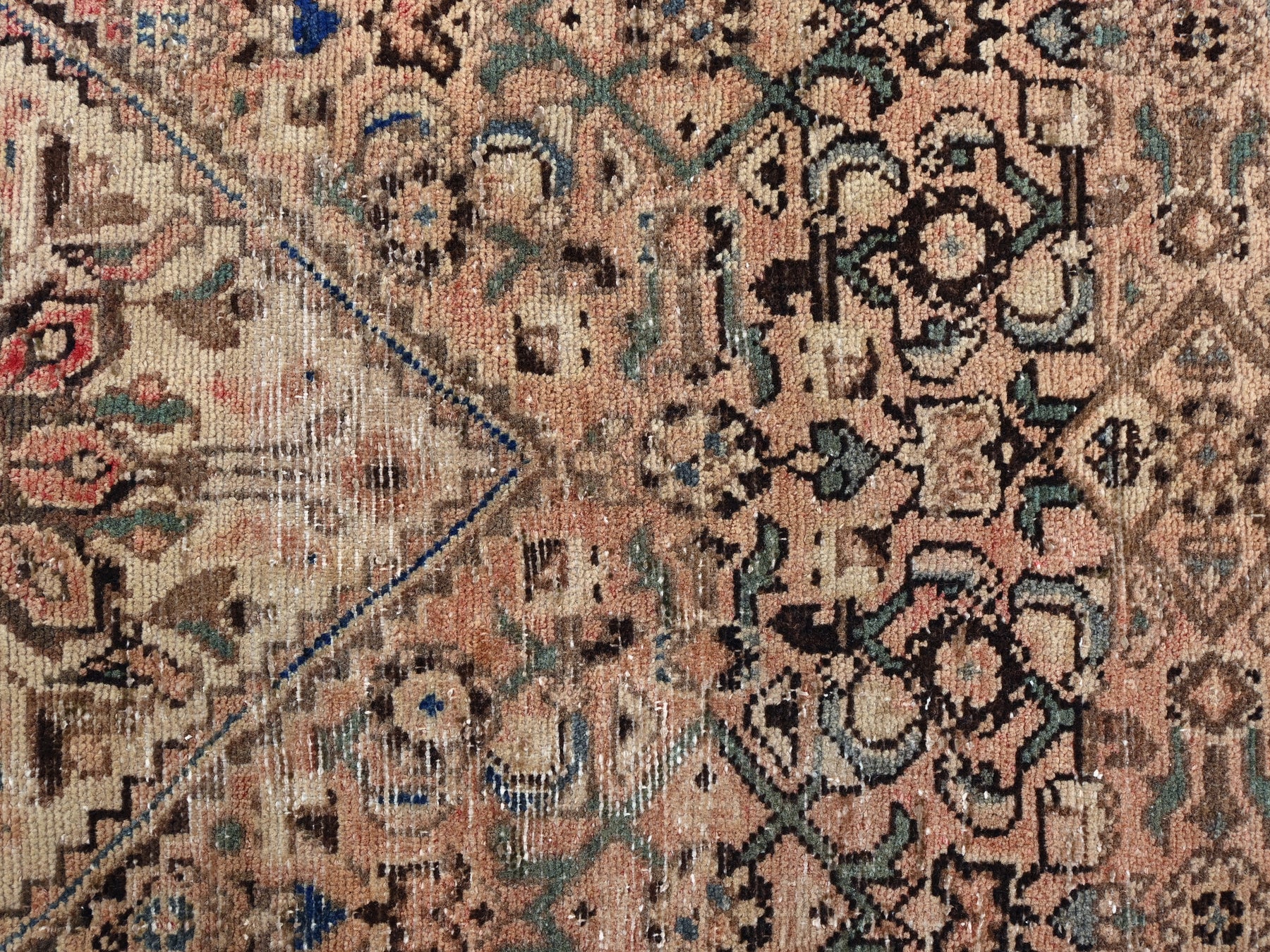 This is a hand-knotted, one-of-a-kind vintage rug. Due to the nature of this piece, there may be slight imperfections in its wear, shape, dimensions, and color. All of our rugs are professionally cleaned and repaired.