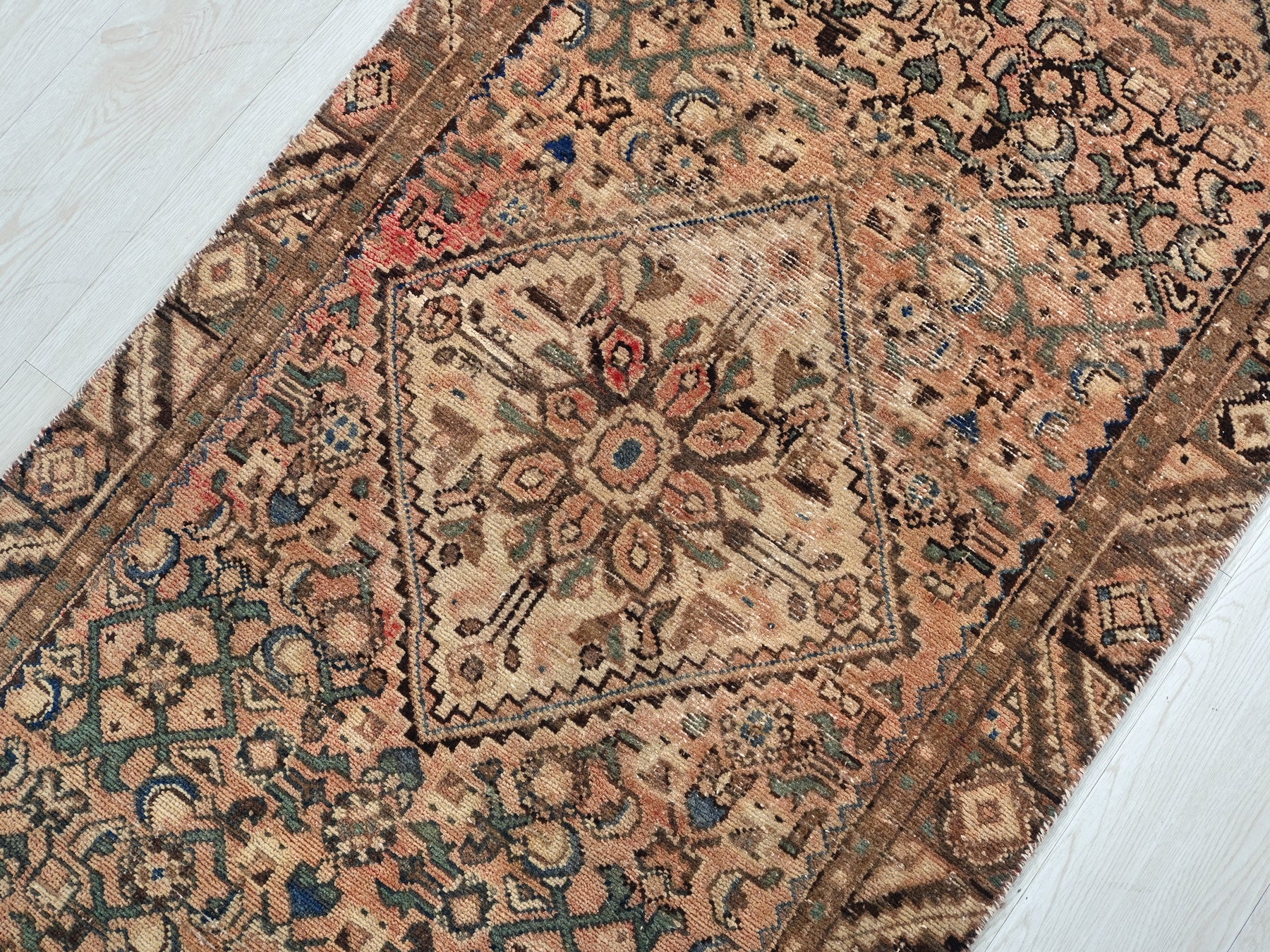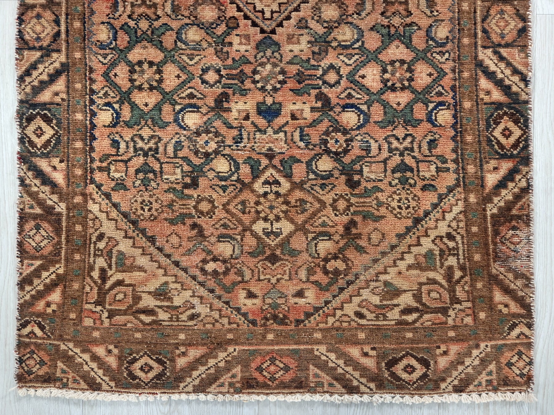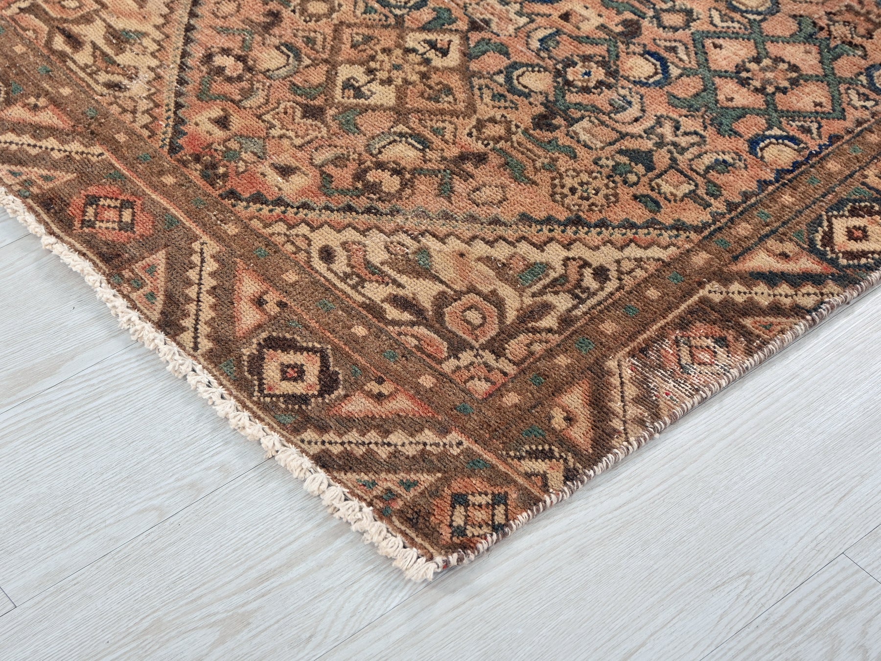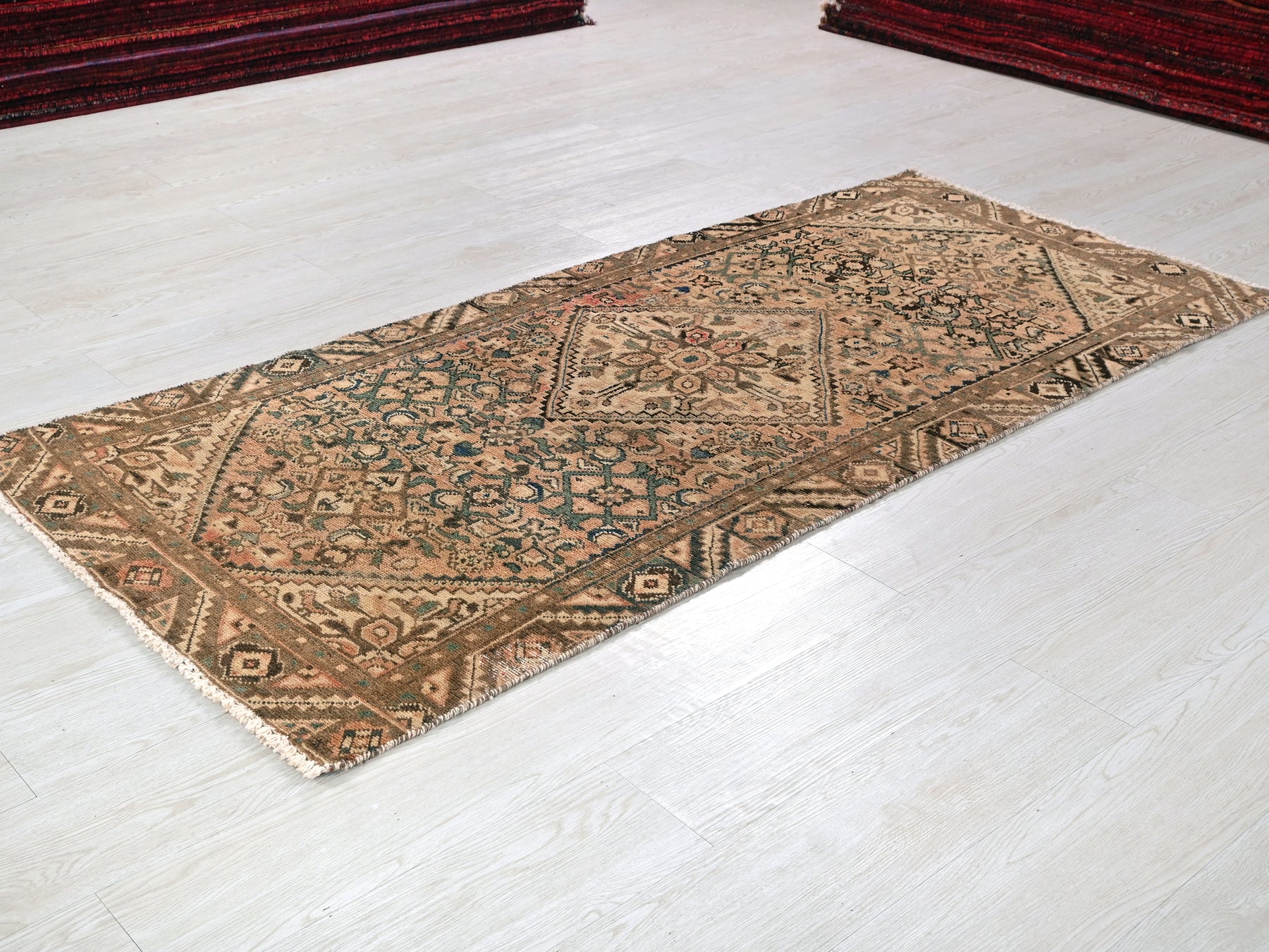 This is a hand-knotted, one-of-a-kind vintage rug. Due to the nature of this piece, there may be slight imperfections in its wear, shape, dimensions, and color. All of our rugs are professionally cleaned and repaired.