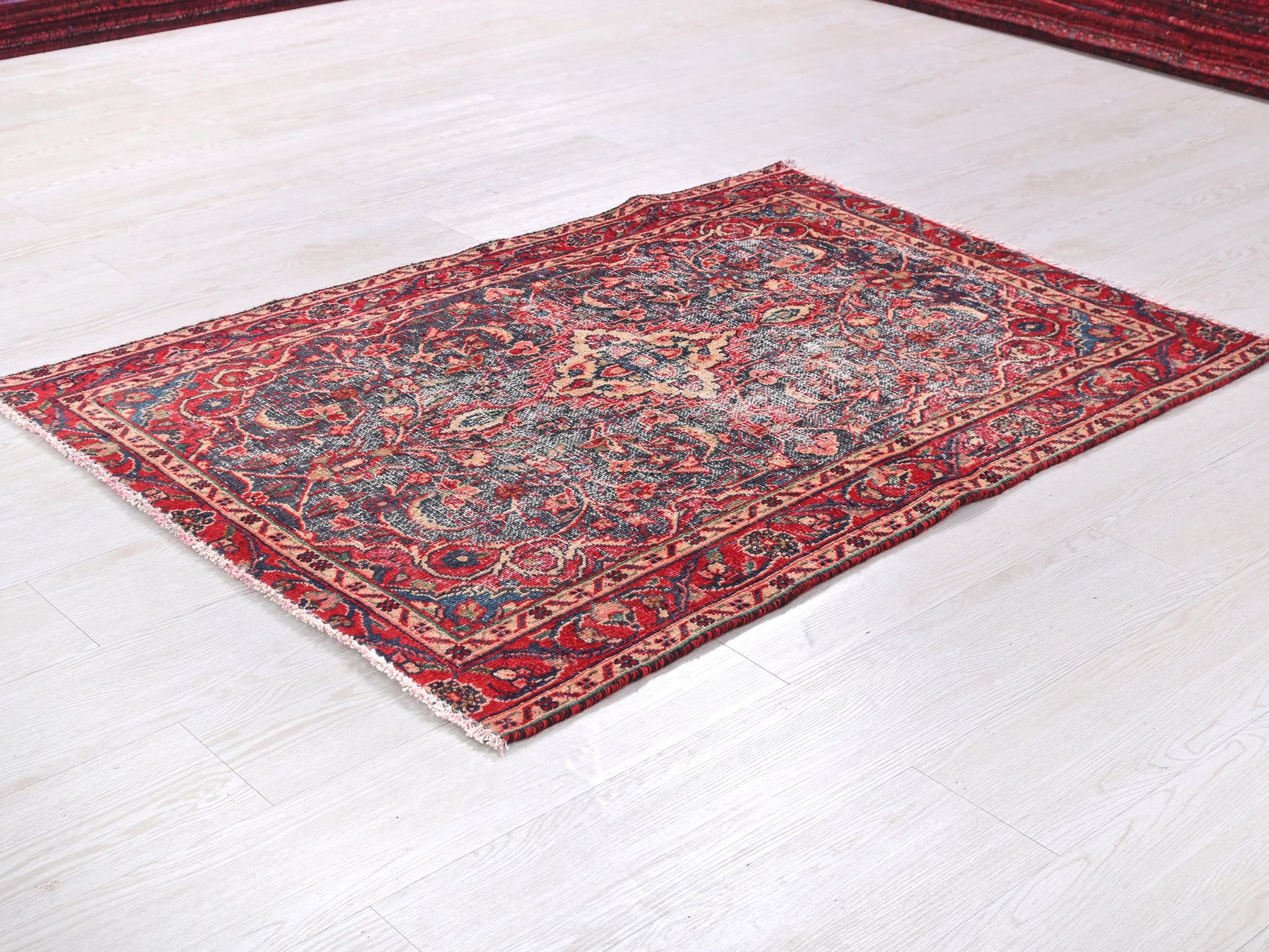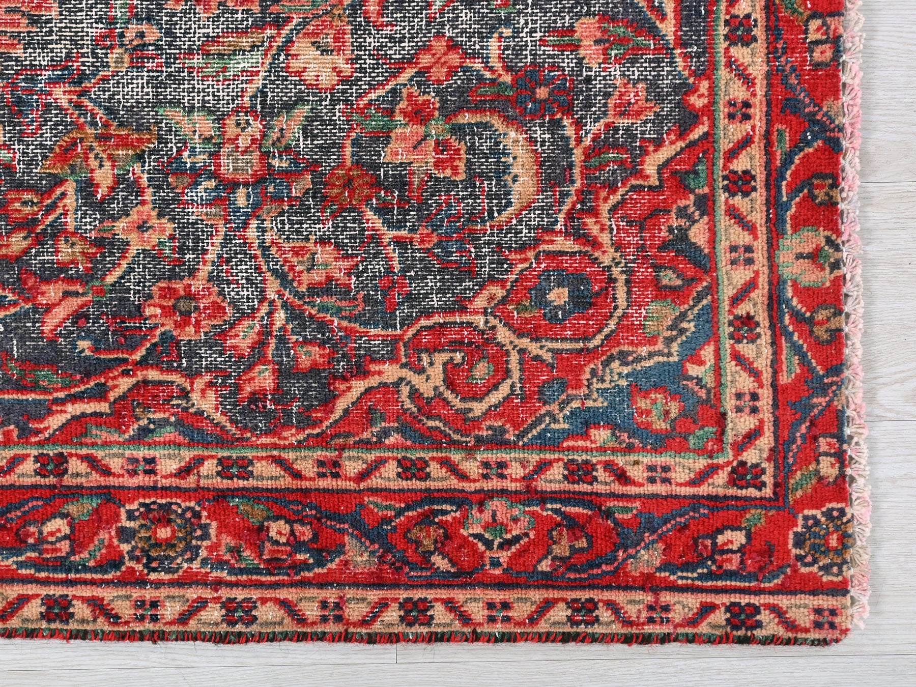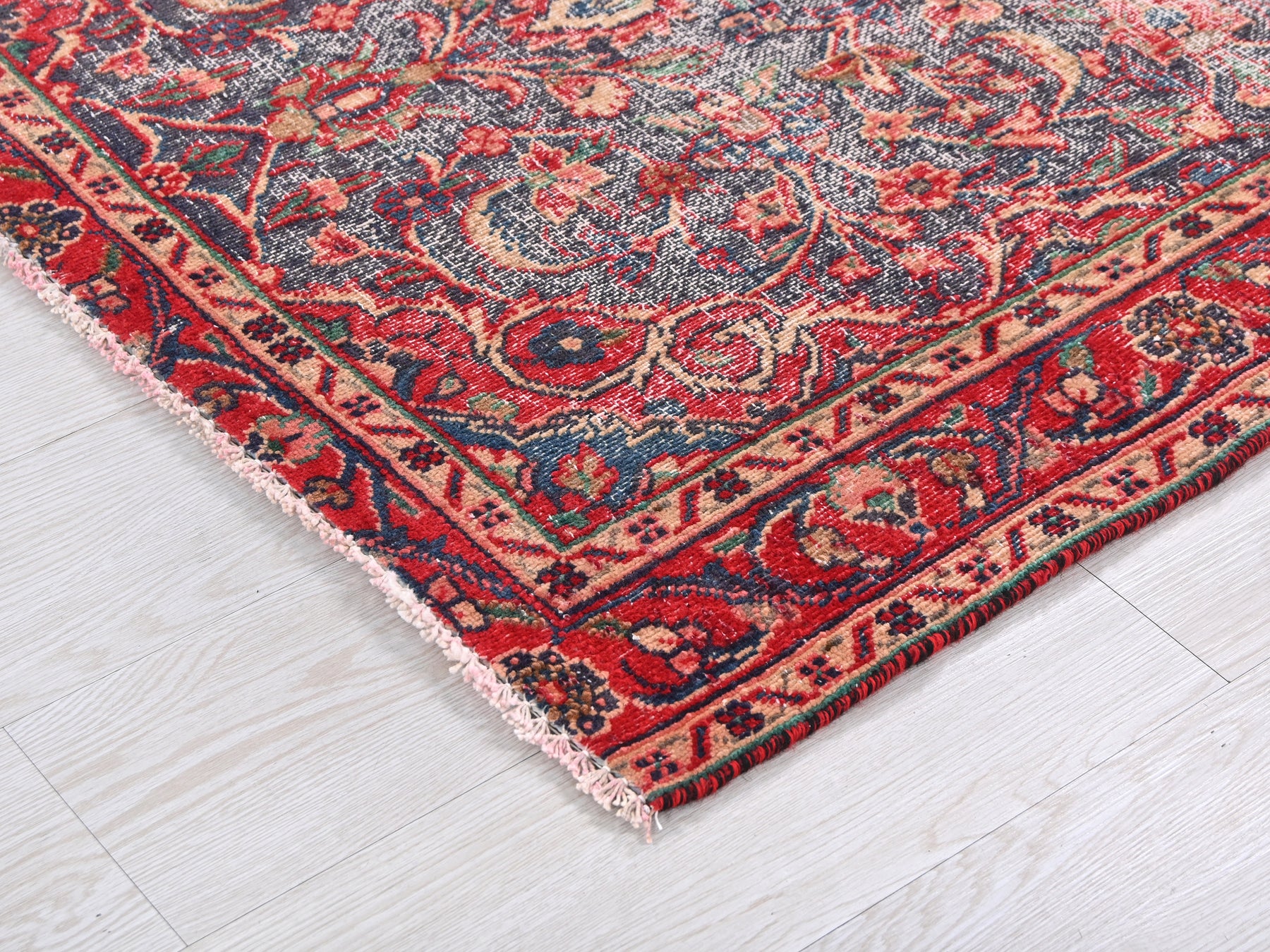 This is a hand-knotted, one-of-a-kind vintage rug. Due to the nature of this piece, there may be slight imperfections in its wear, shape, dimensions, and color. All of our rugs are professionally cleaned and repaired.