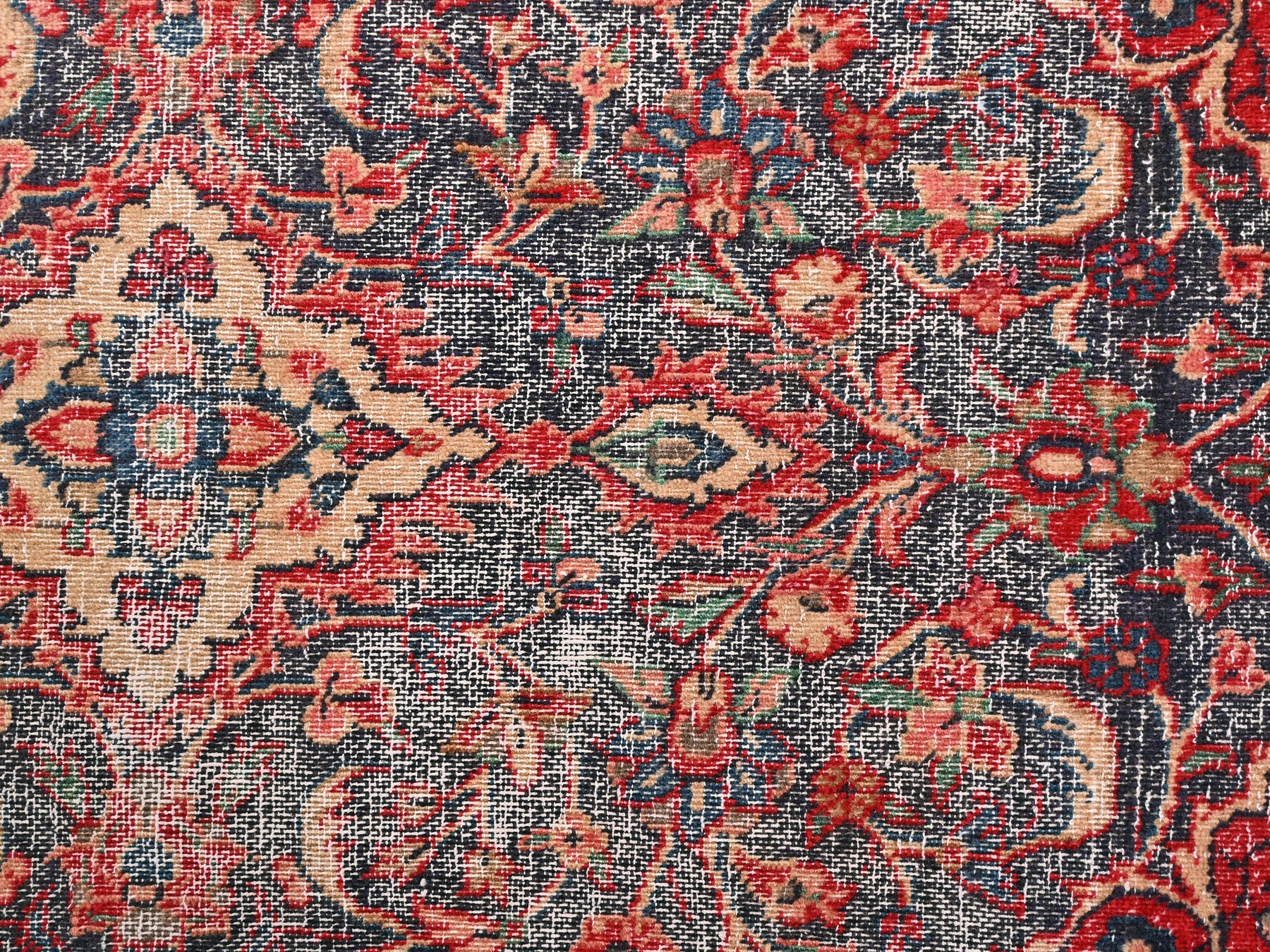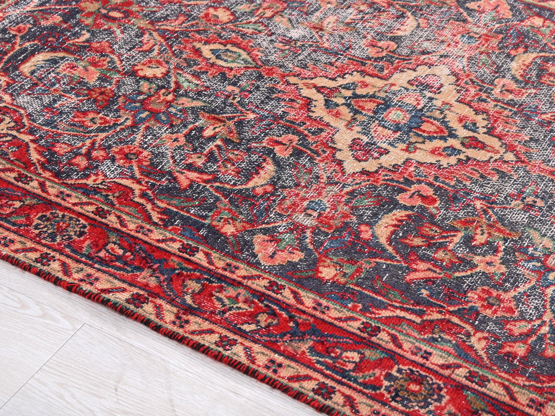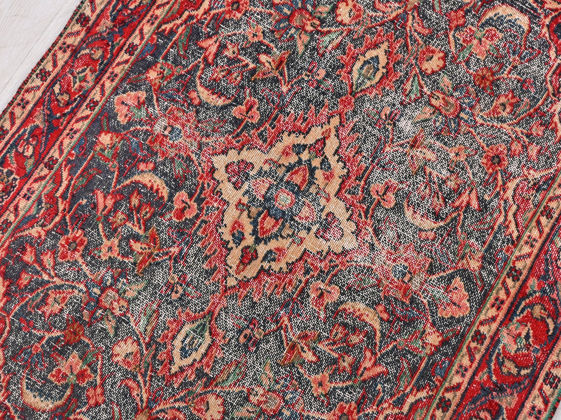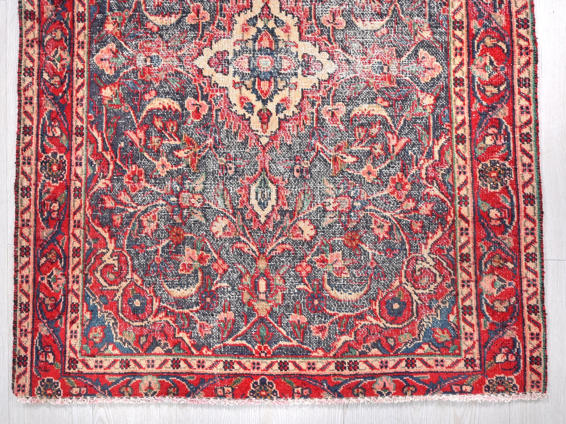 This is a hand-knotted, one-of-a-kind vintage rug. Due to the nature of this piece, there may be slight imperfections in its wear, shape, dimensions, and color. All of our rugs are professionally cleaned and repaired.