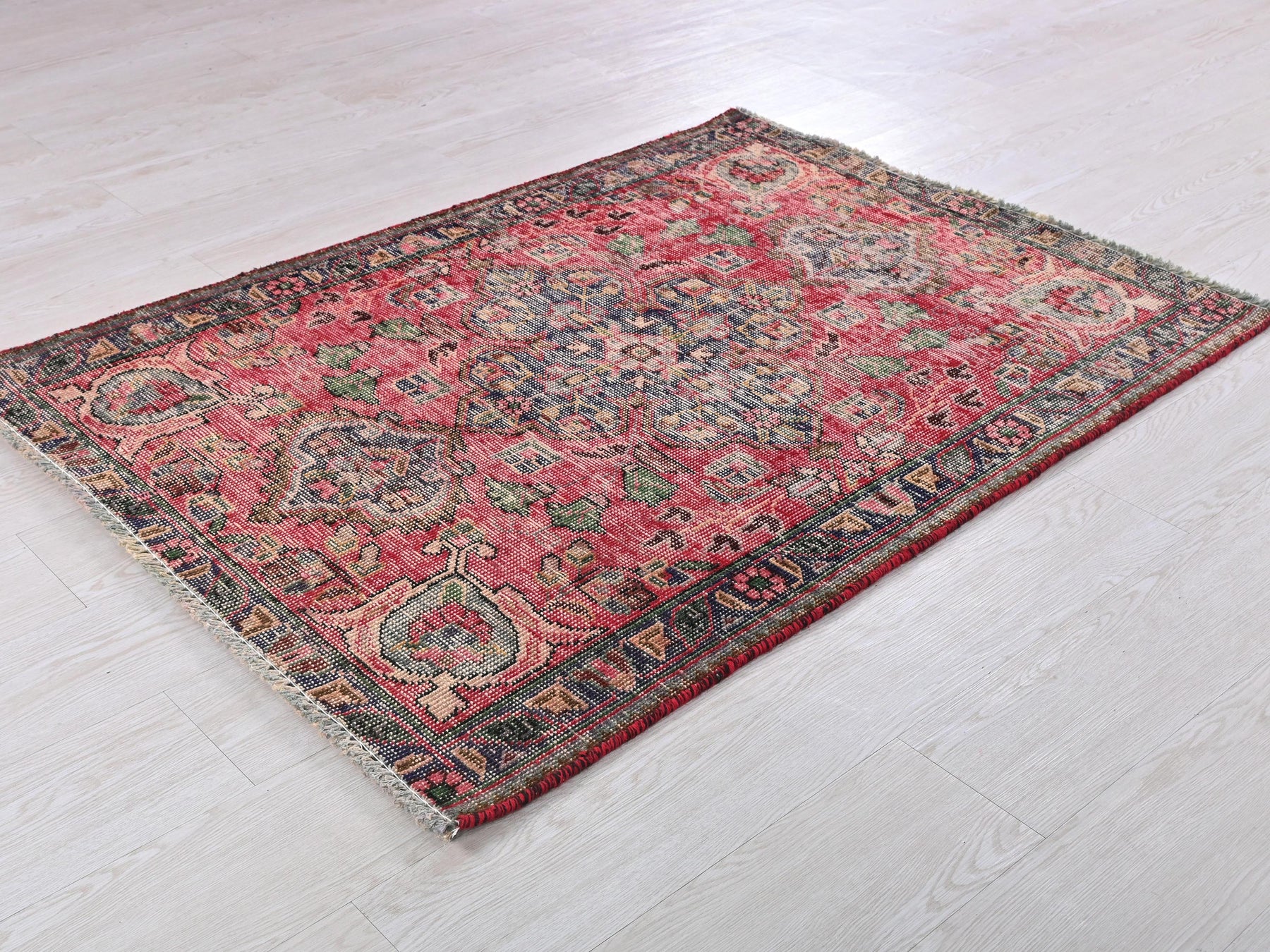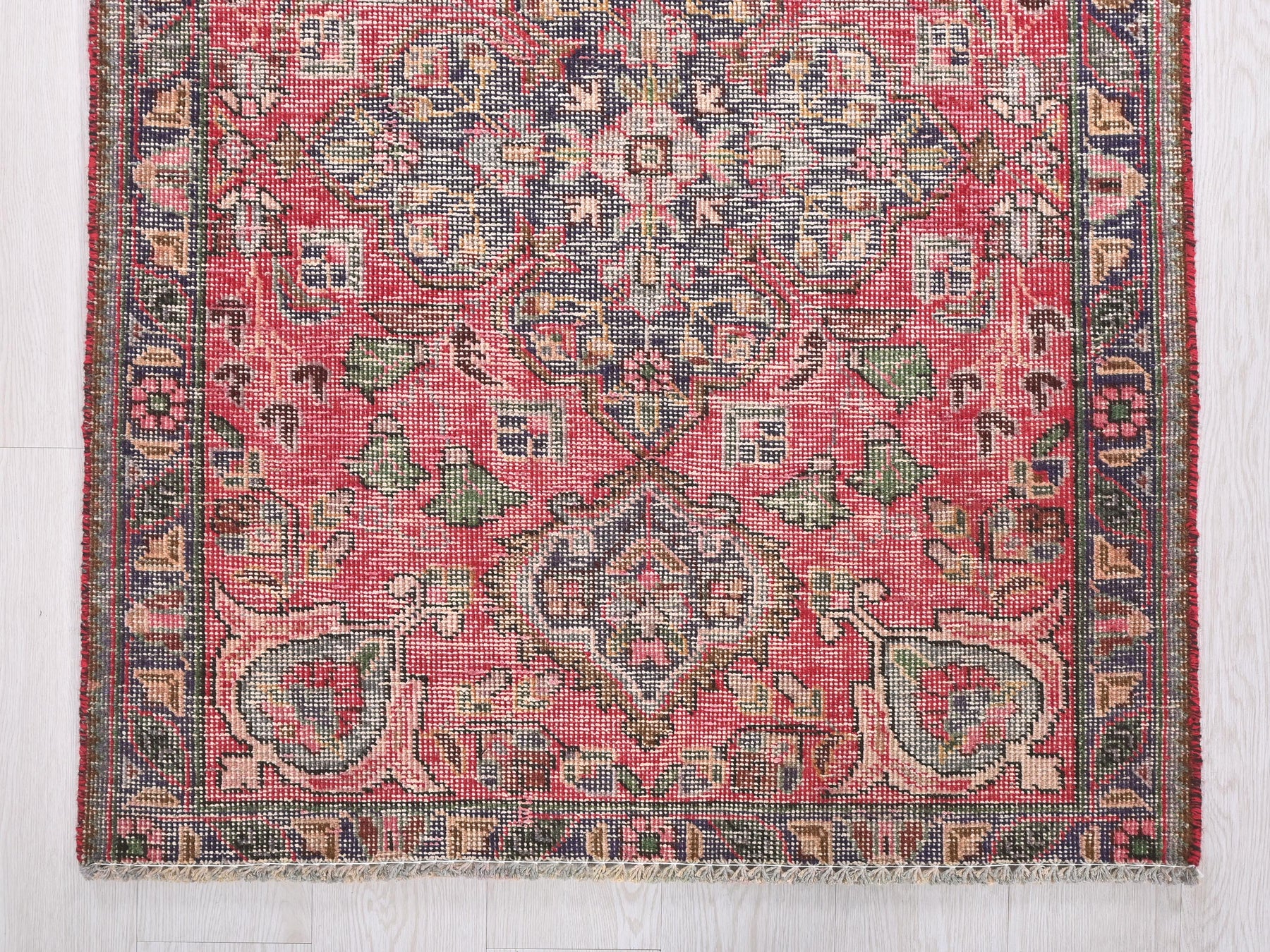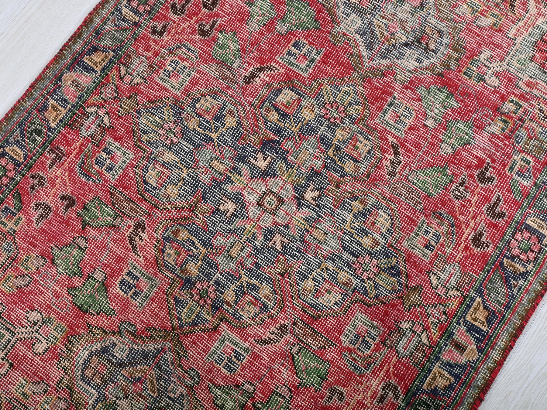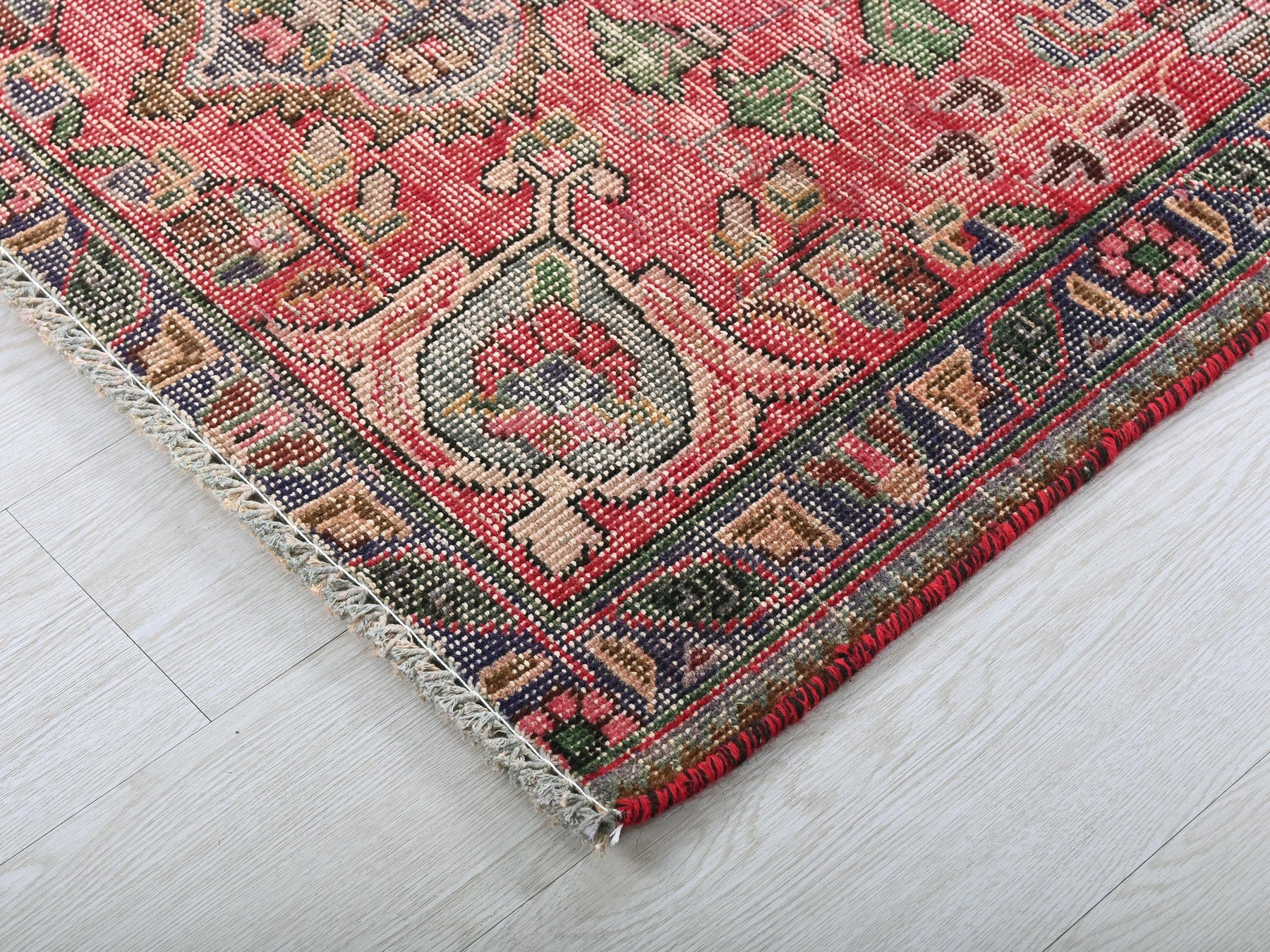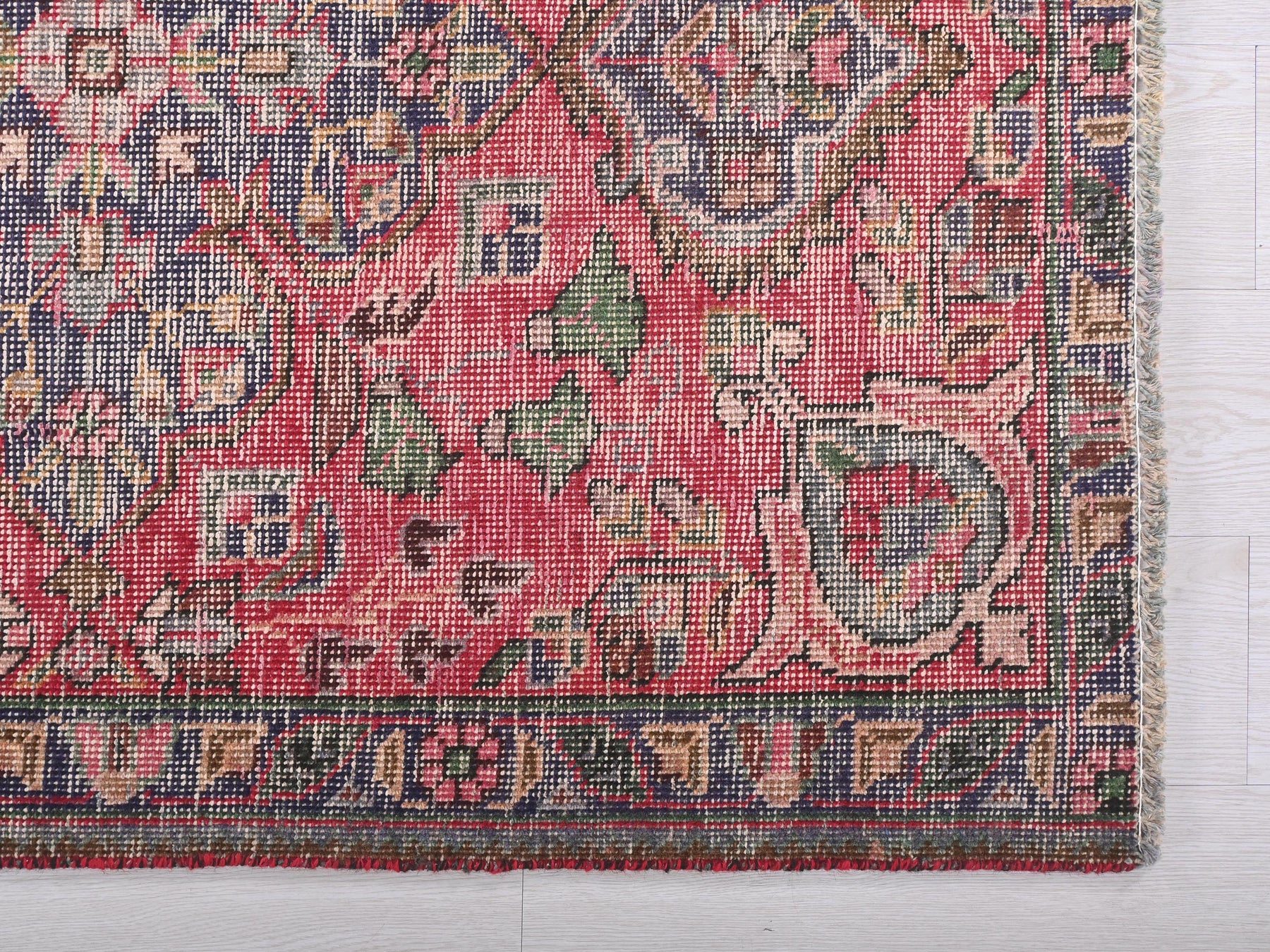 This is a hand-knotted, one-of-a-kind vintage rug. Due to the nature of this piece, there may be slight imperfections in its wear, shape, dimensions, and color. All of our rugs are professionally cleaned and repaired.