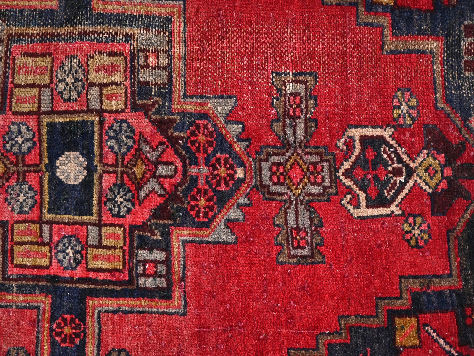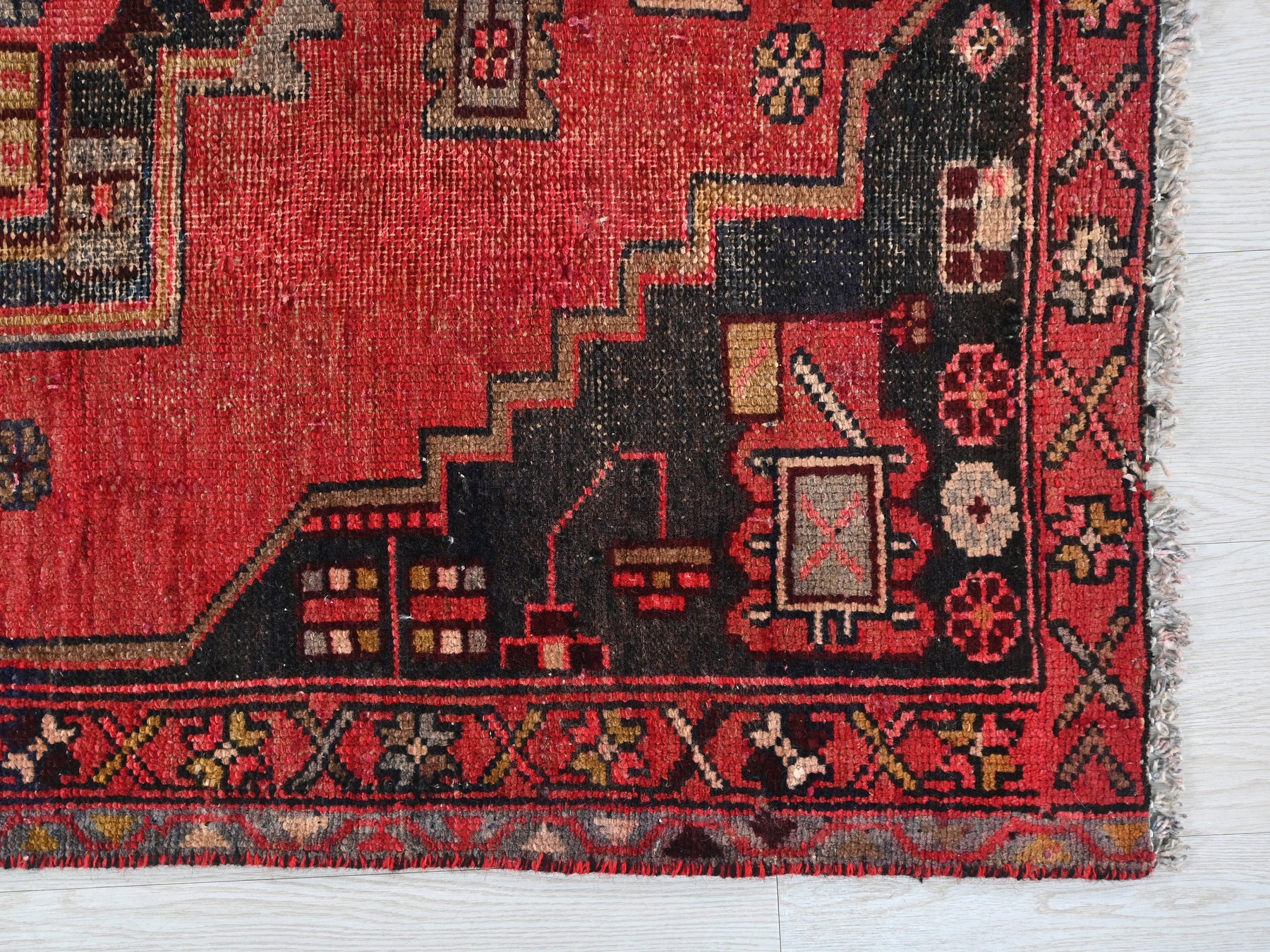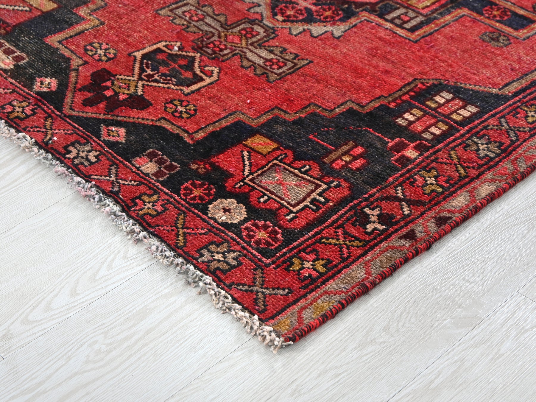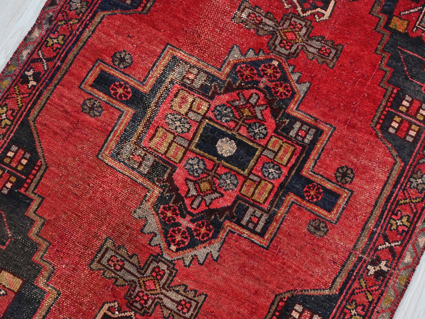 This is a hand-knotted, one-of-a-kind vintage rug. Due to the nature of this piece, there may be slight imperfections in its wear, shape, dimensions, and color. All of our rugs are professionally cleaned and repaired.