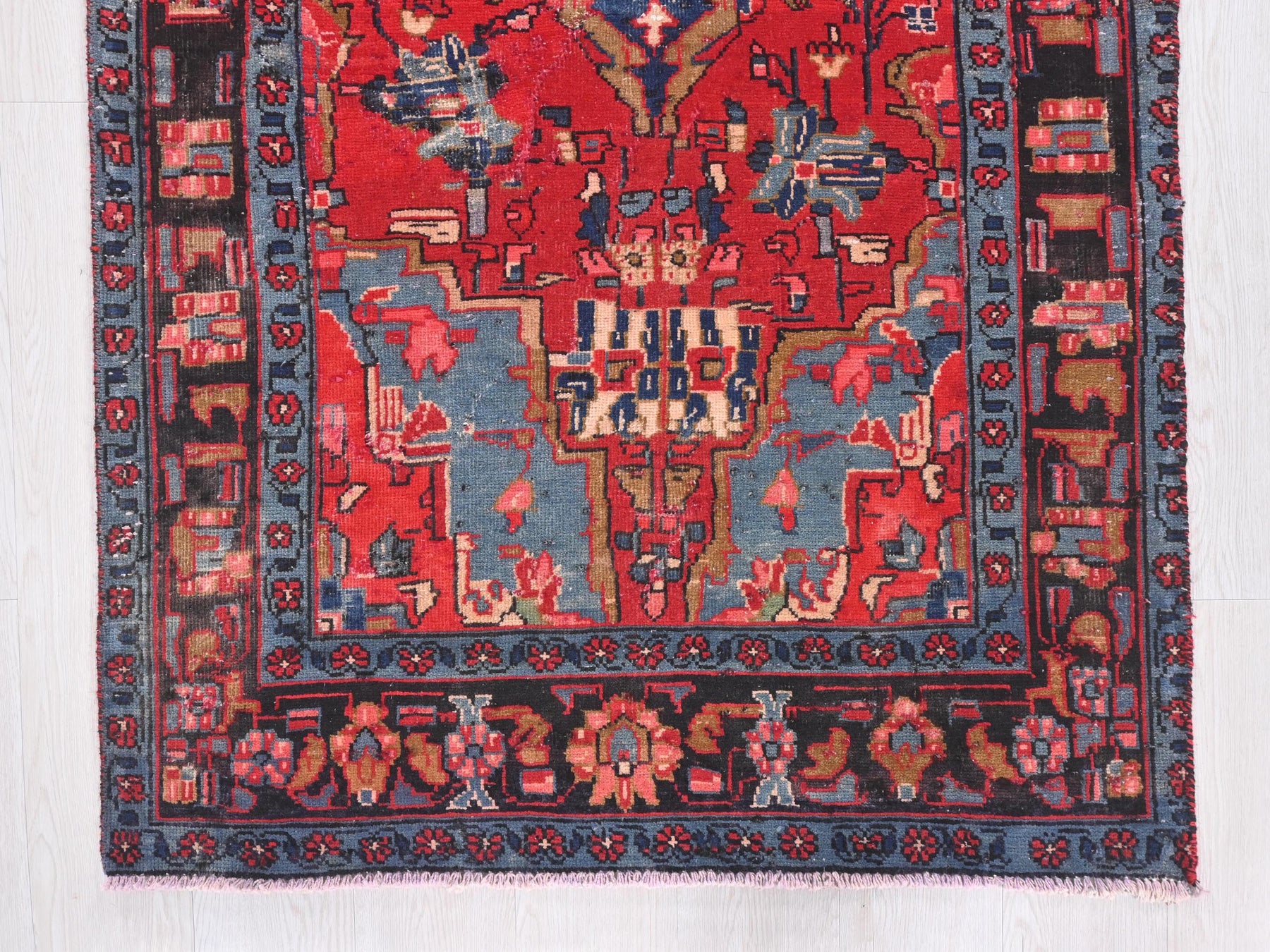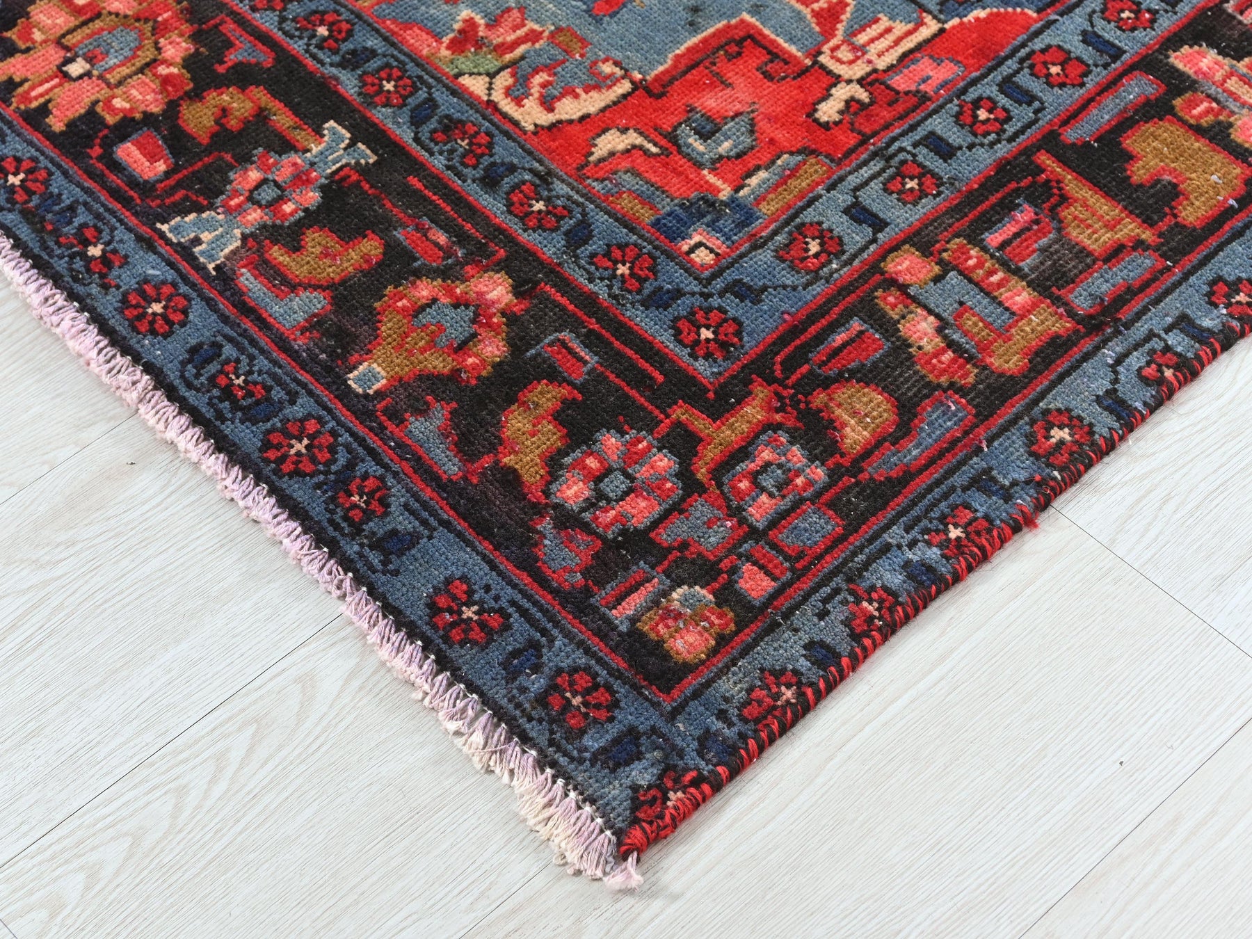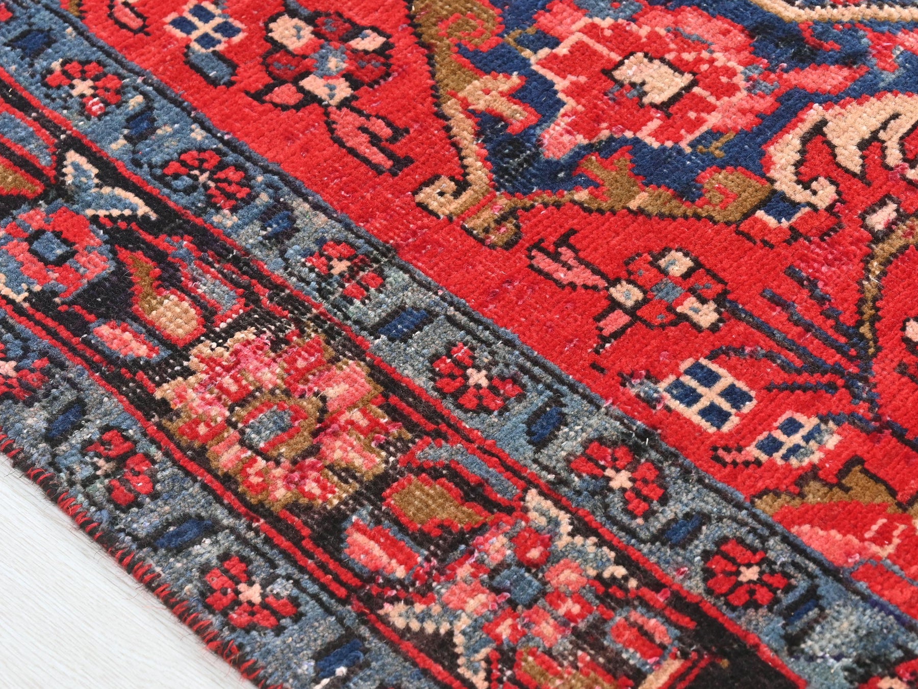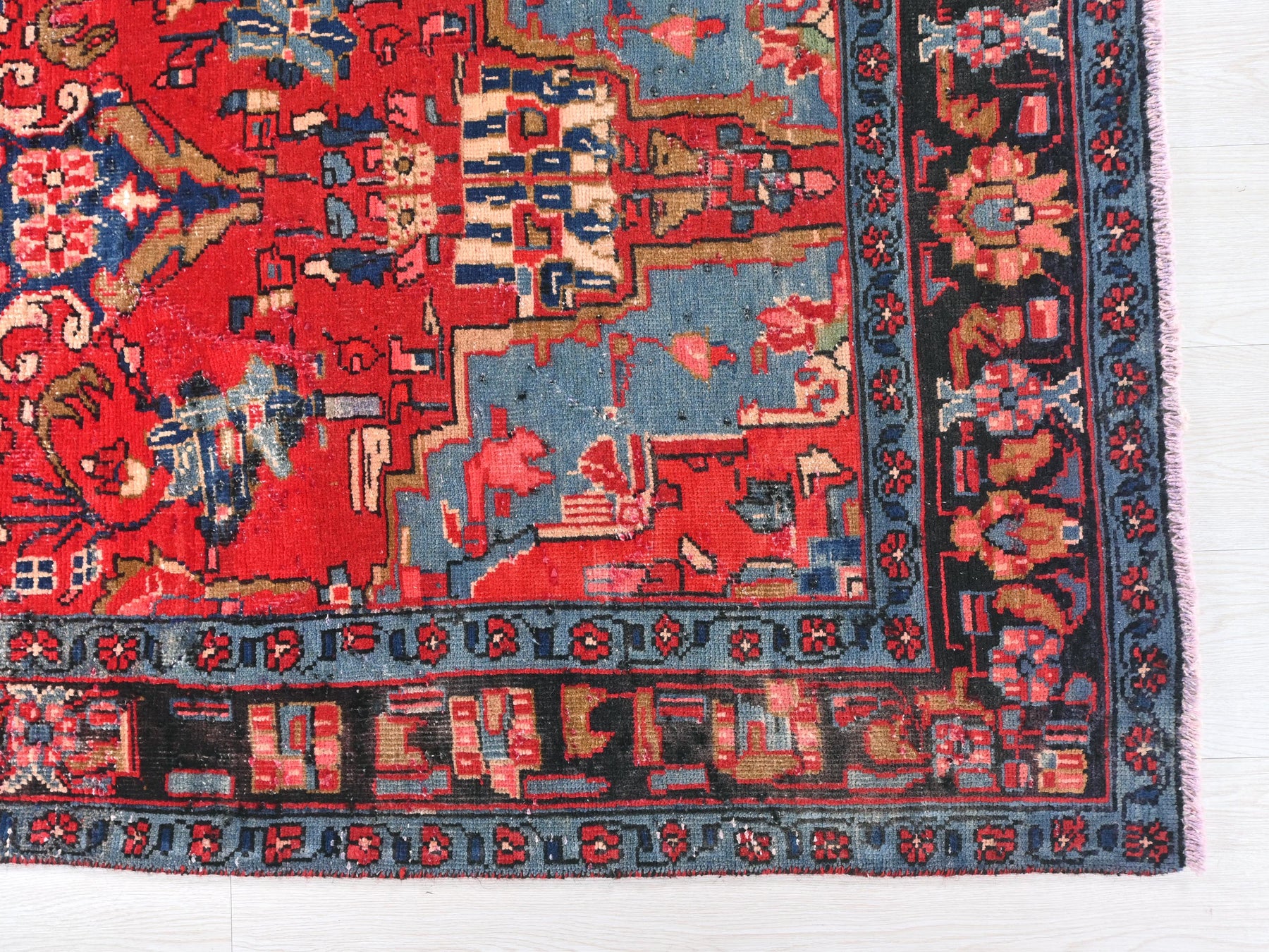 This is a hand-knotted, one-of-a-kind vintage rug. Due to the nature of this piece, there may be slight imperfections in its wear, shape, dimensions, and color. All of our rugs are professionally cleaned and repaired.