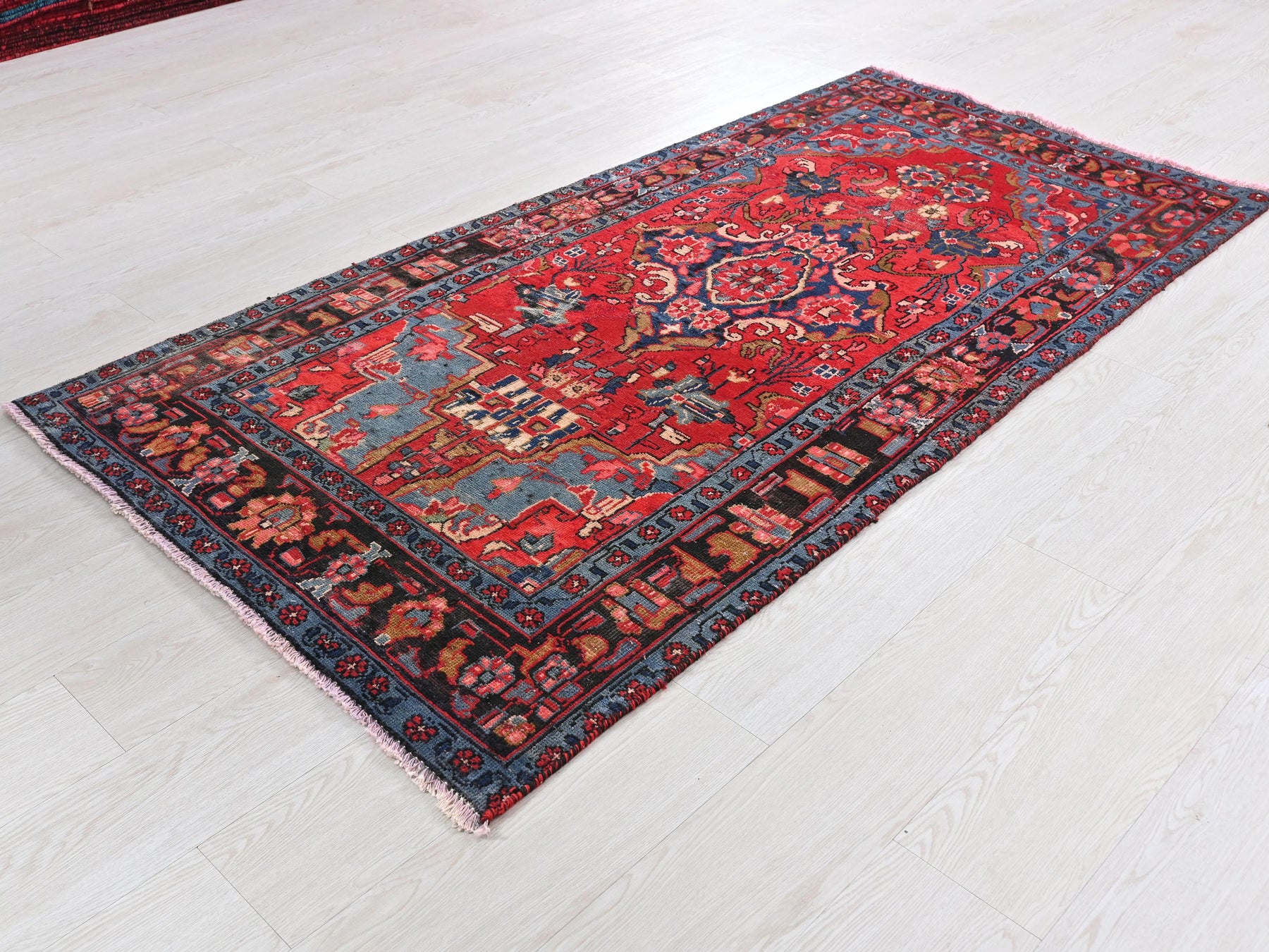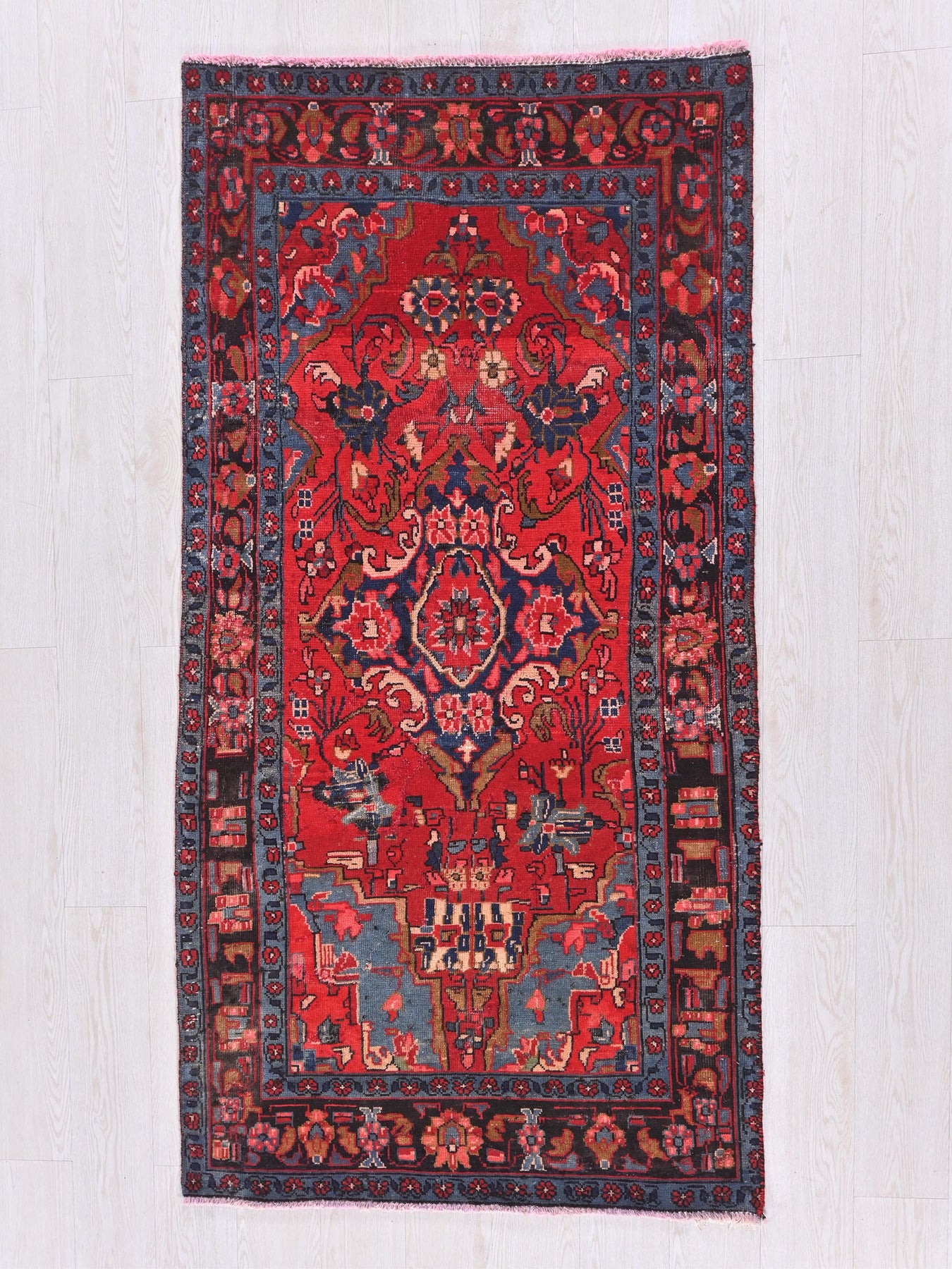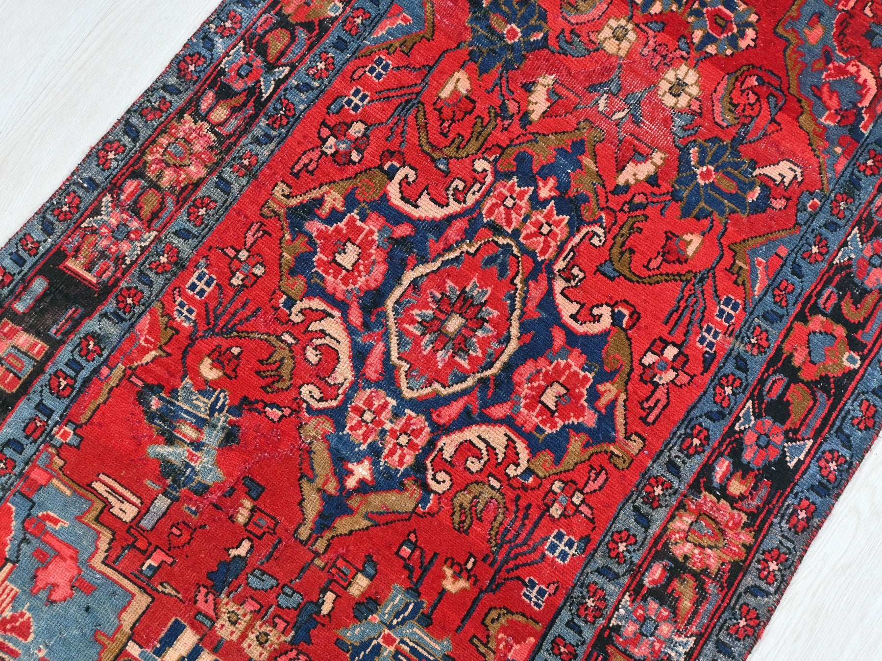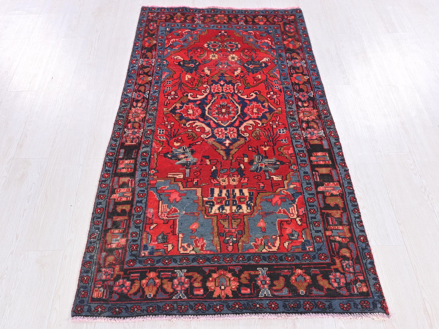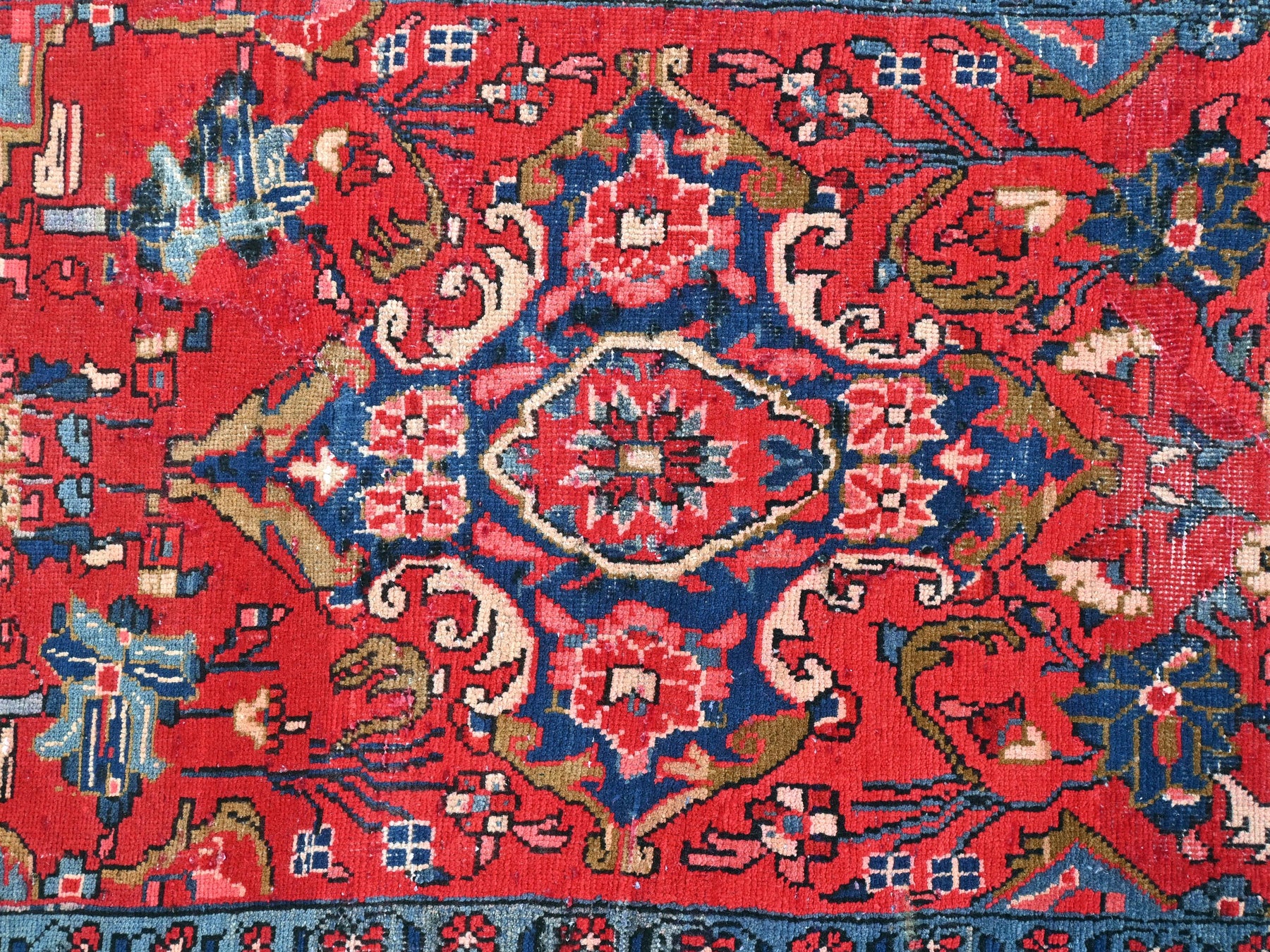 This is a hand-knotted, one-of-a-kind vintage rug. Due to the nature of this piece, there may be slight imperfections in its wear, shape, dimensions, and color. All of our rugs are professionally cleaned and repaired.