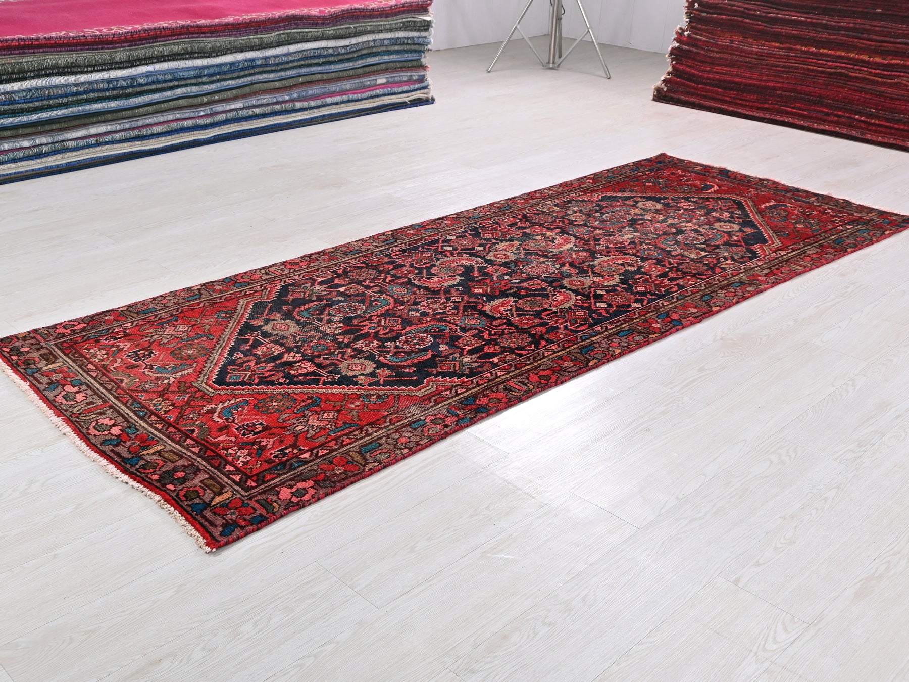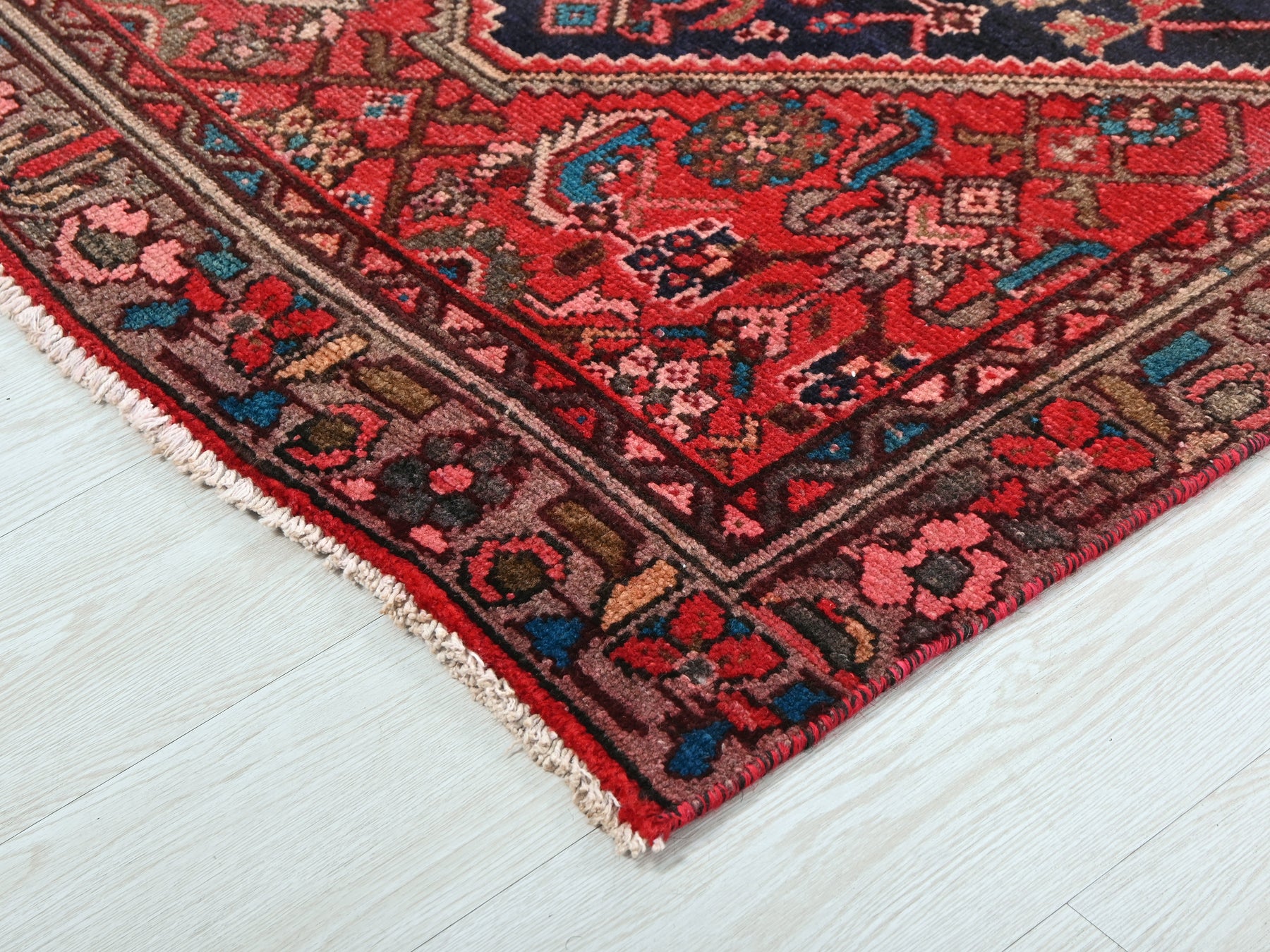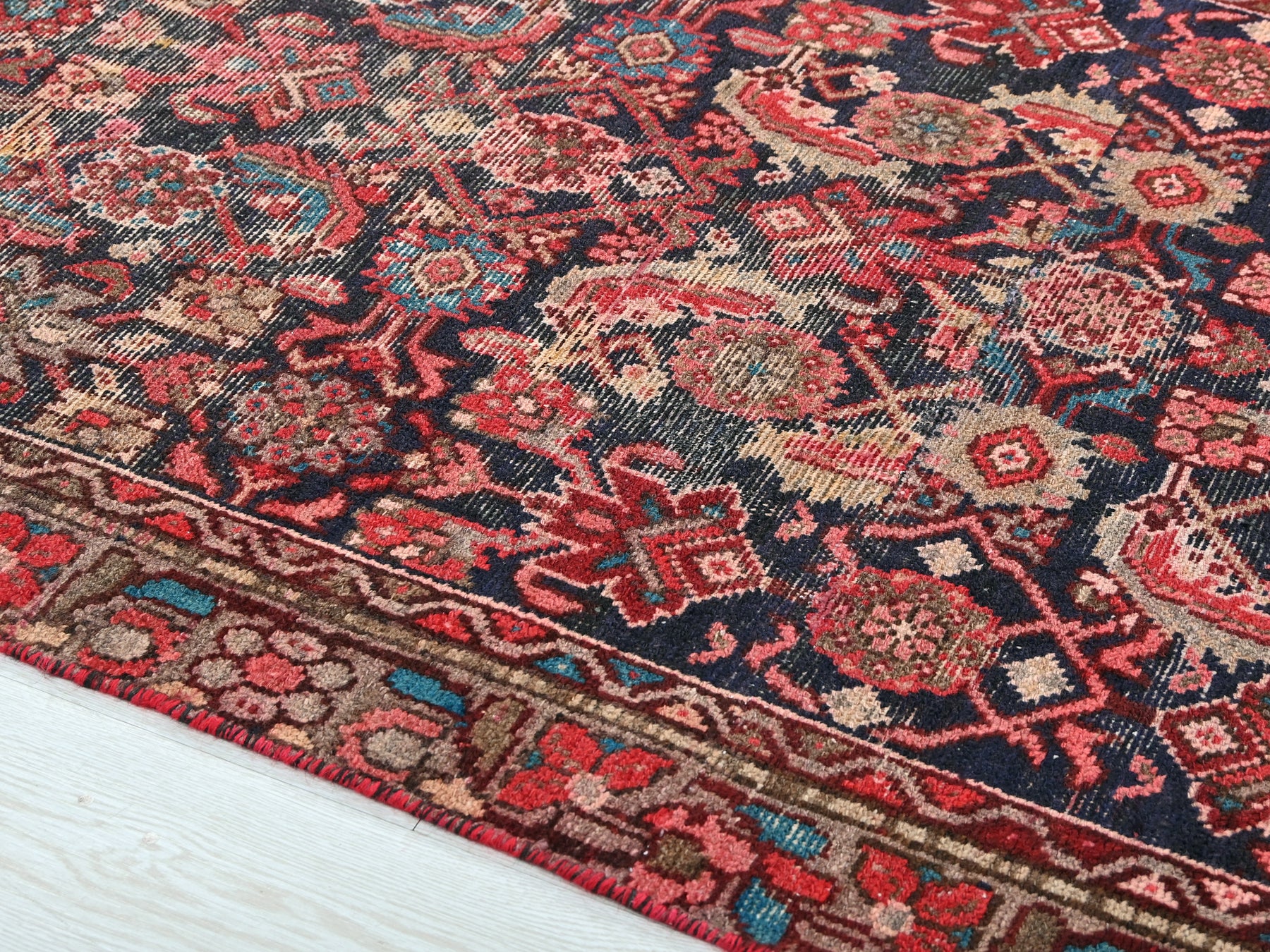 This is a hand-knotted, one-of-a-kind vintage rug. Due to the nature of this piece, there may be slight imperfections in its wear, shape, dimensions, and color. All of our rugs are professionally cleaned and repaired.