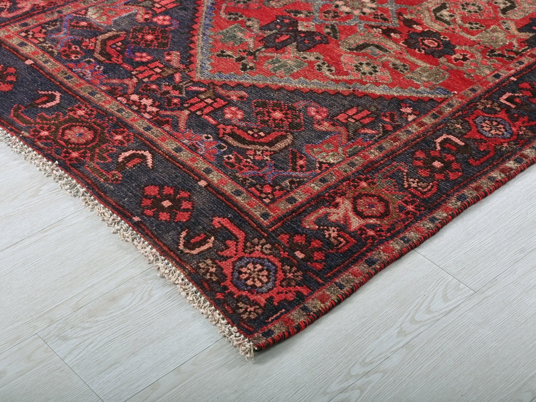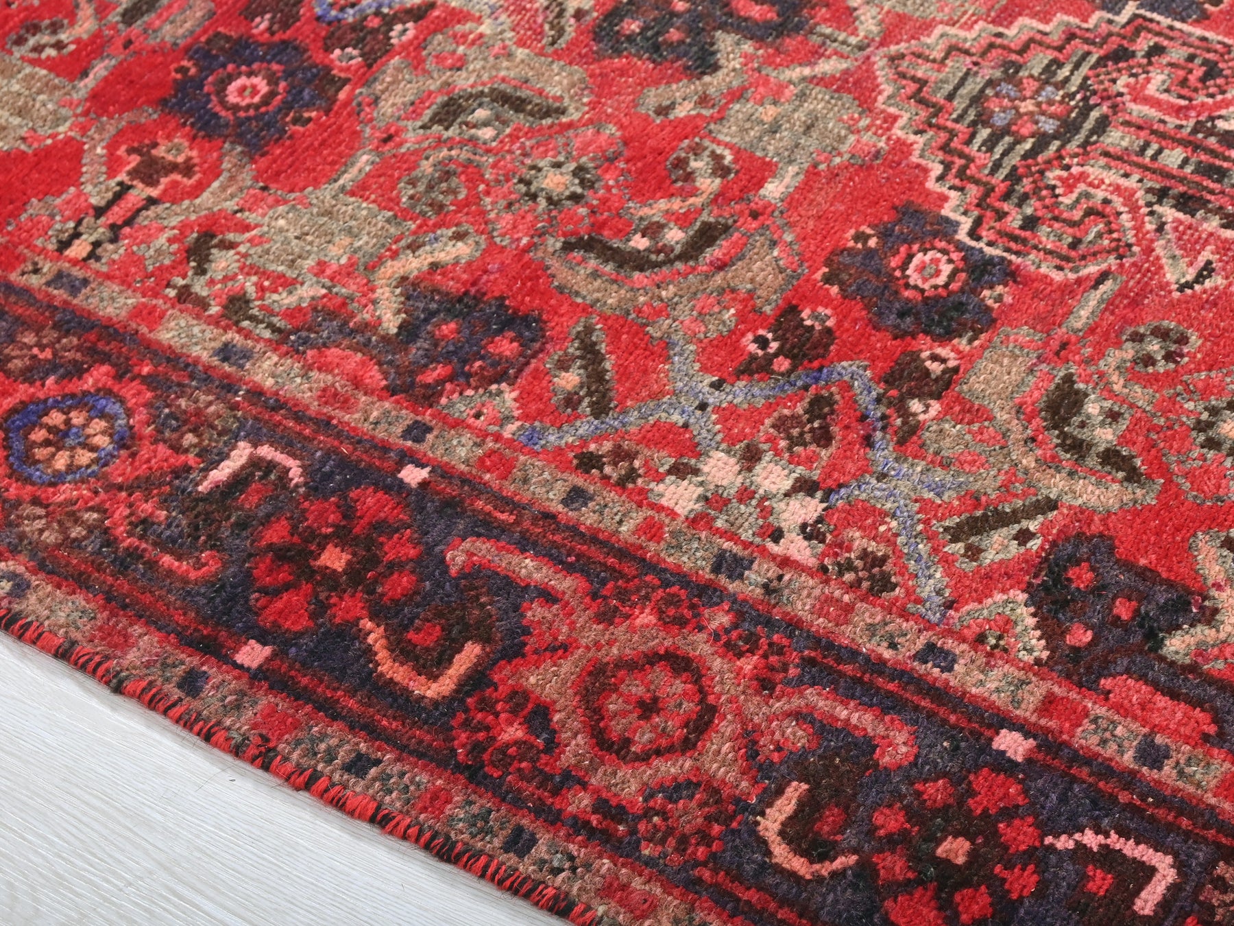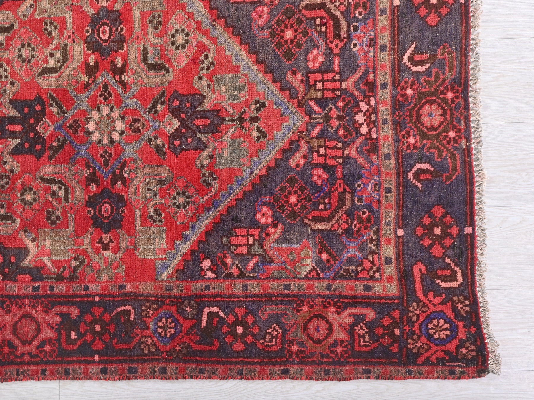 This is a hand-knotted, one-of-a-kind vintage rug. Due to the nature of this piece, there may be slight imperfections in its wear, shape, dimensions, and color. All of our rugs are professionally cleaned and repaired.