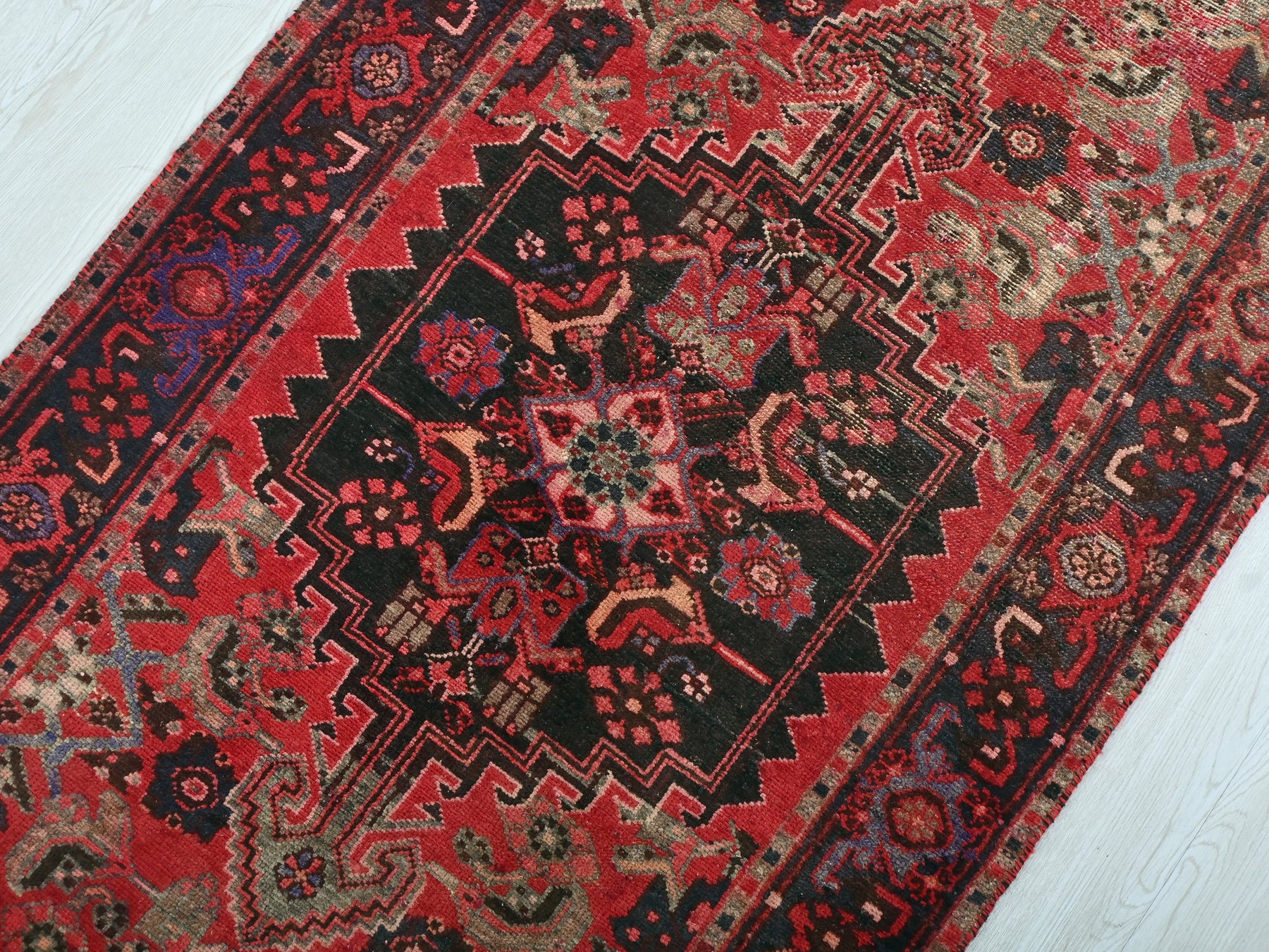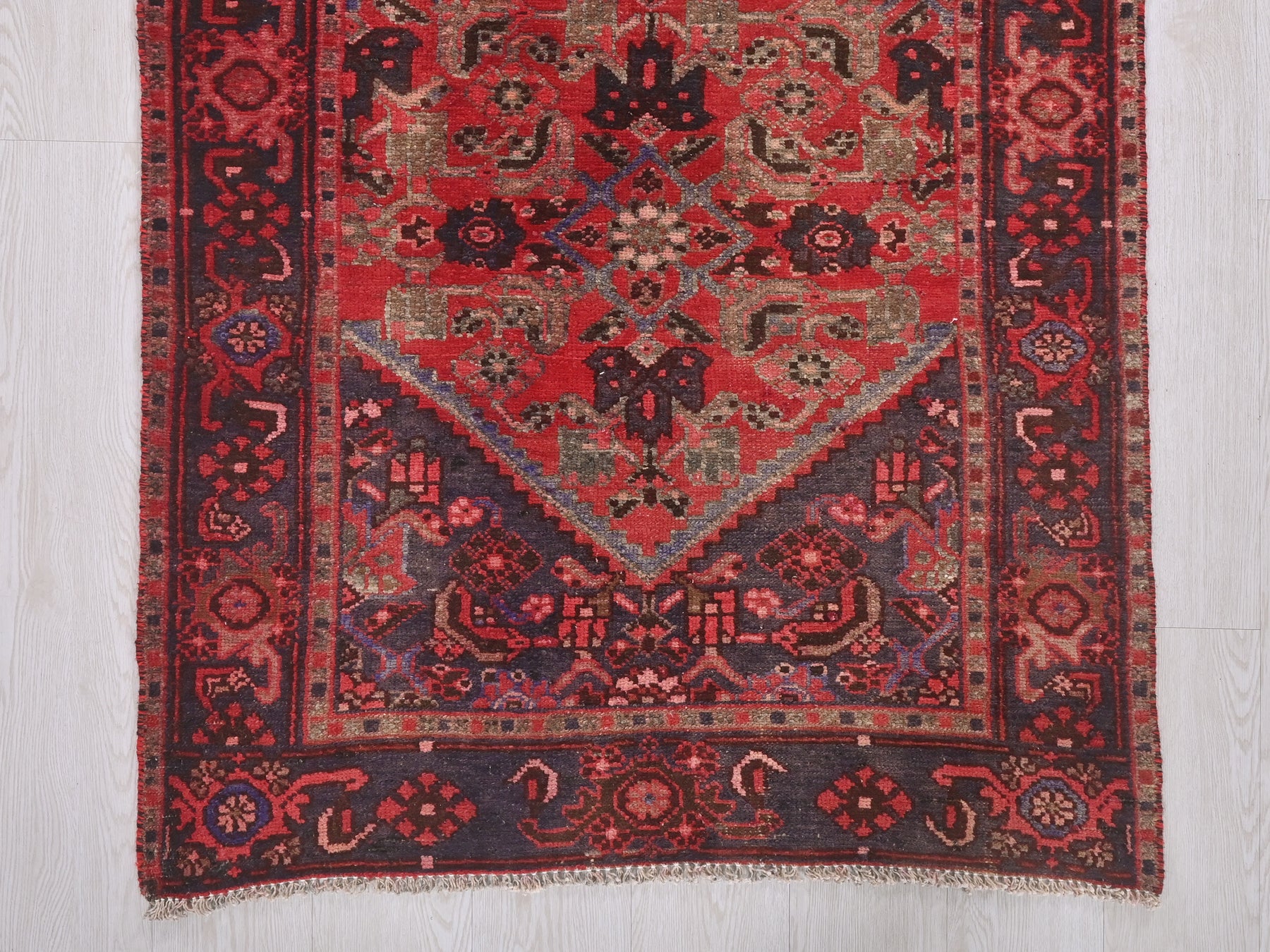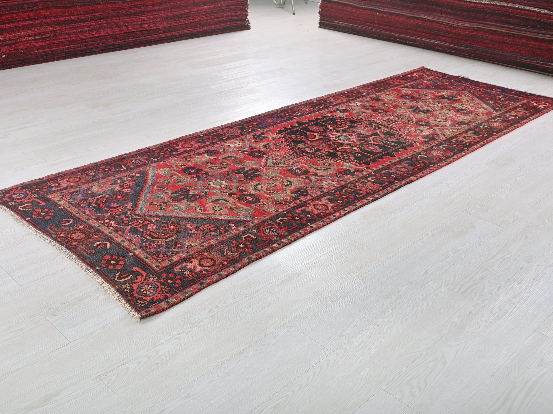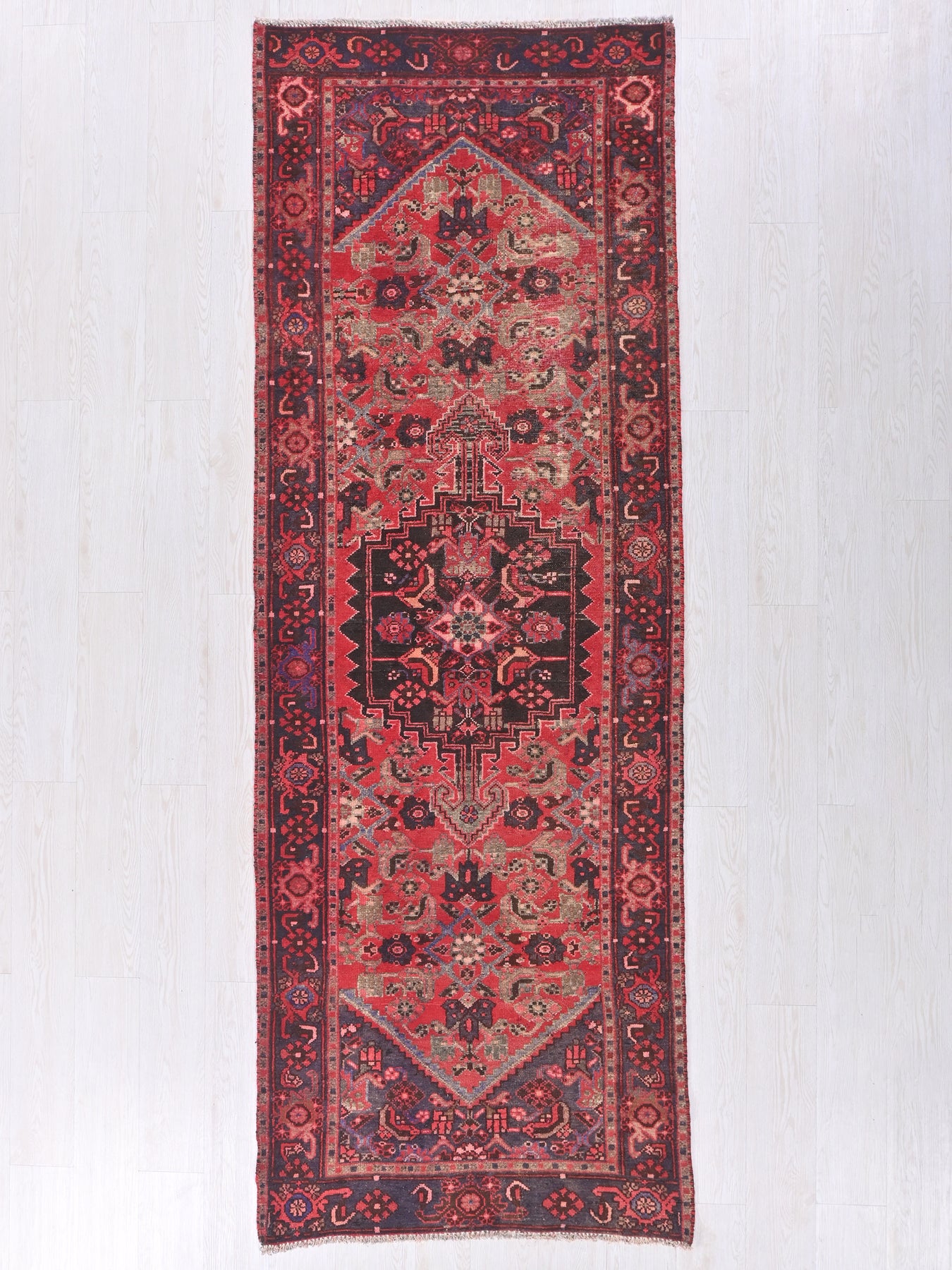 This is a hand-knotted, one-of-a-kind vintage rug. Due to the nature of this piece, there may be slight imperfections in its wear, shape, dimensions, and color. All of our rugs are professionally cleaned and repaired.