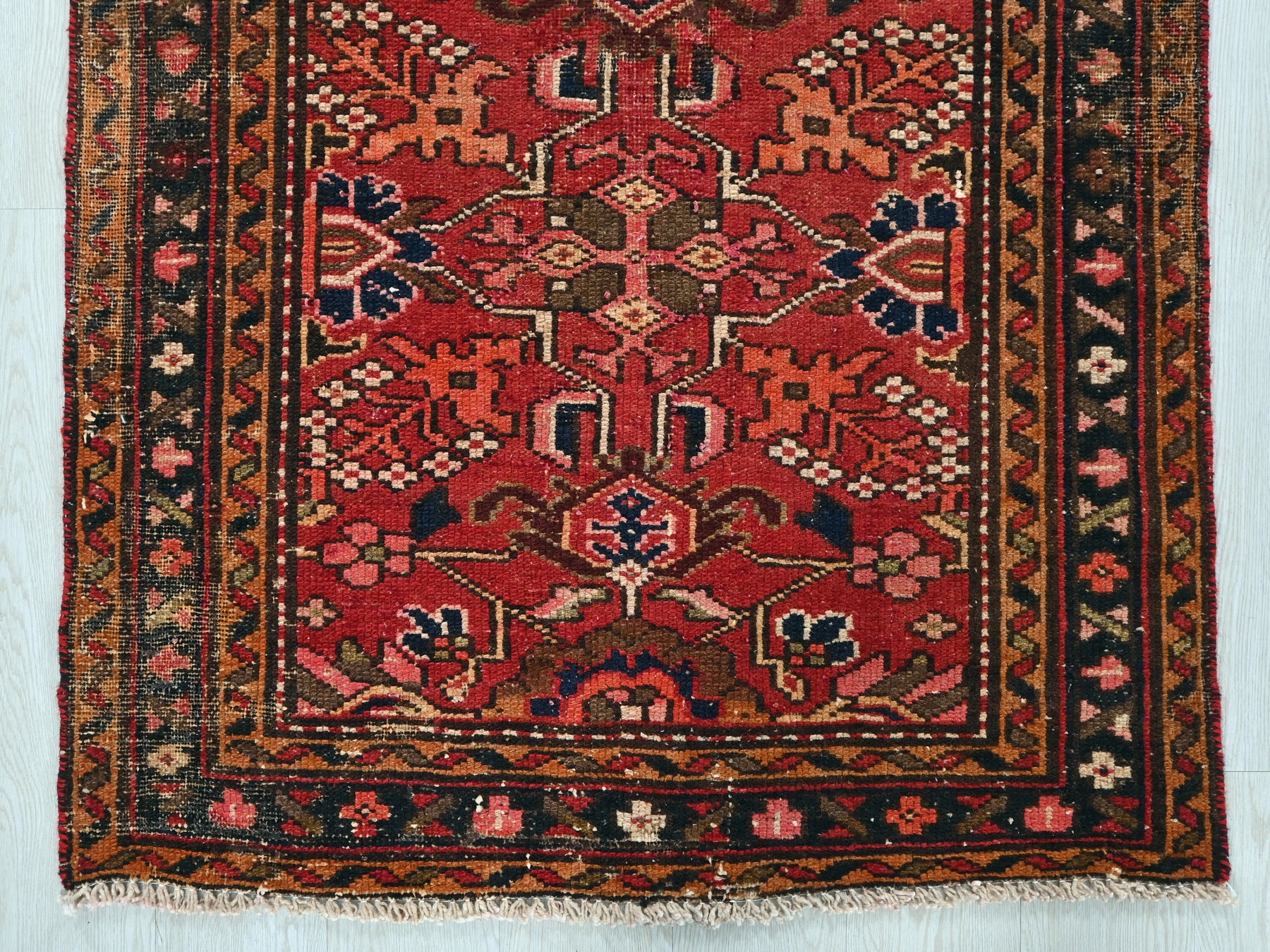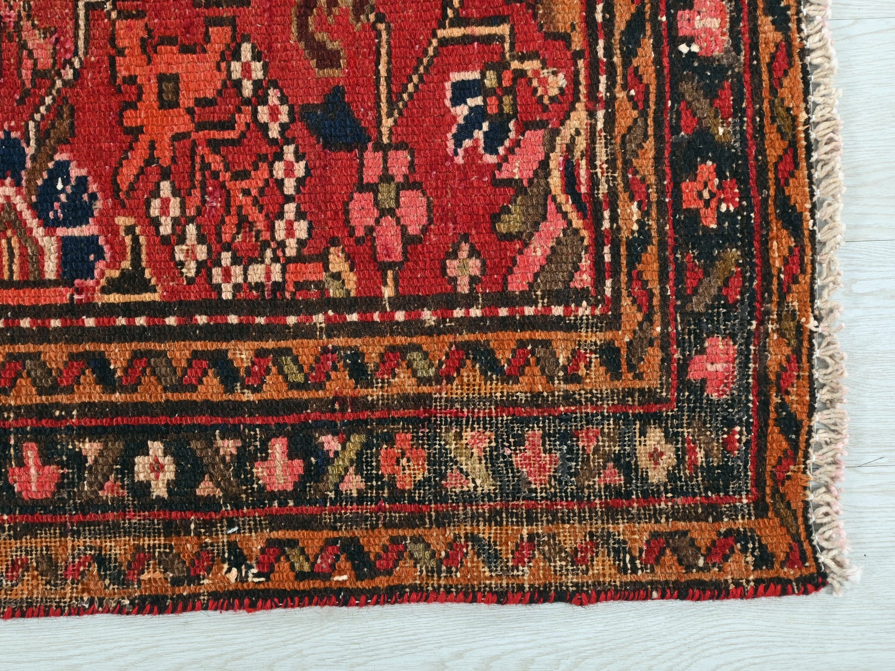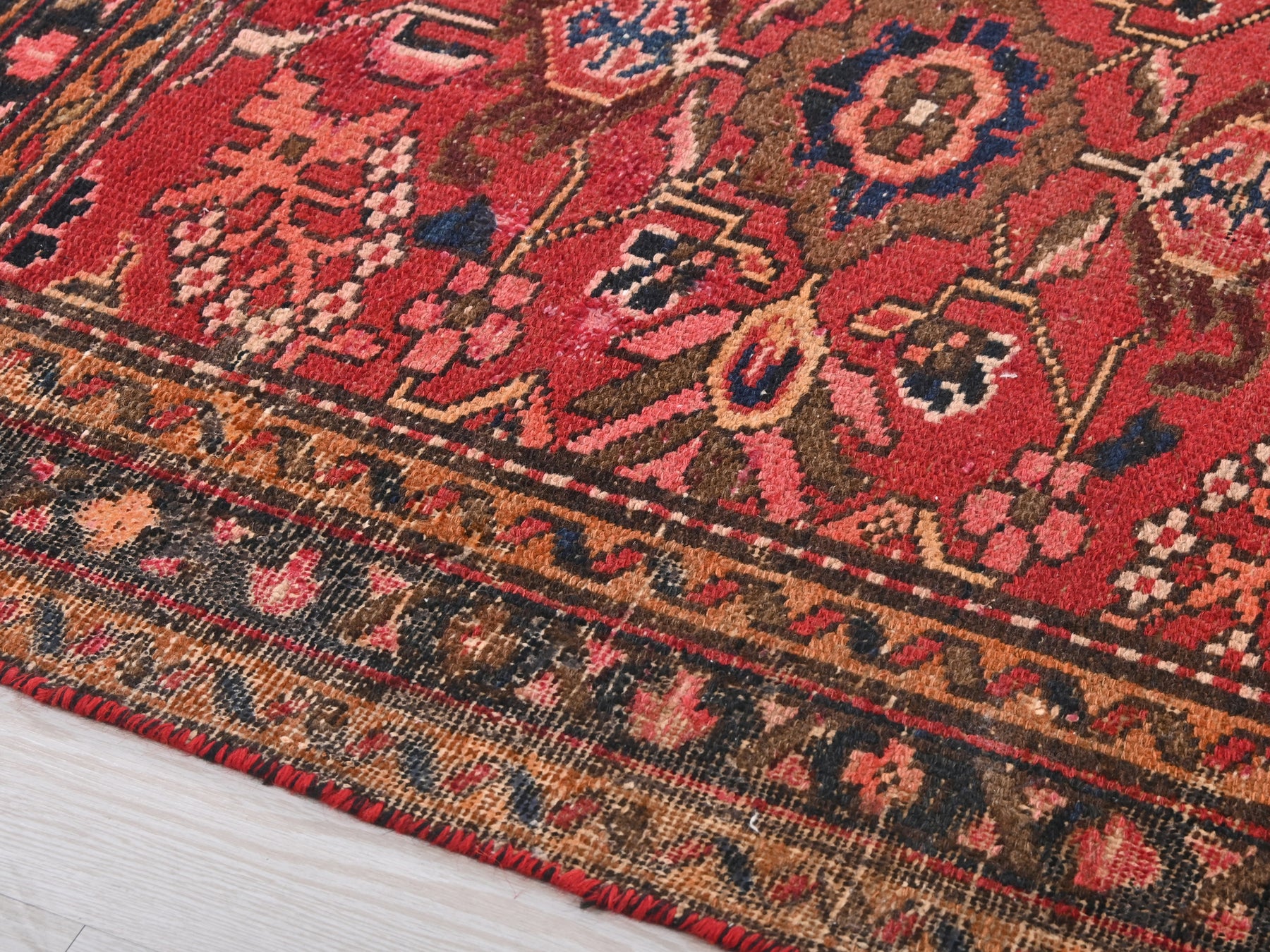 This is a hand-knotted, one-of-a-kind vintage rug. Due to the nature of this piece, there may be slight imperfections in its wear, shape, dimensions, and color. All of our rugs are professionally cleaned and repaired.