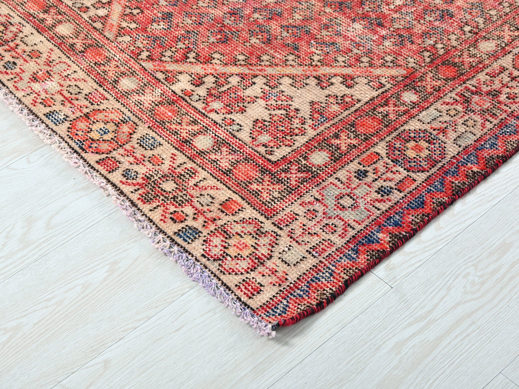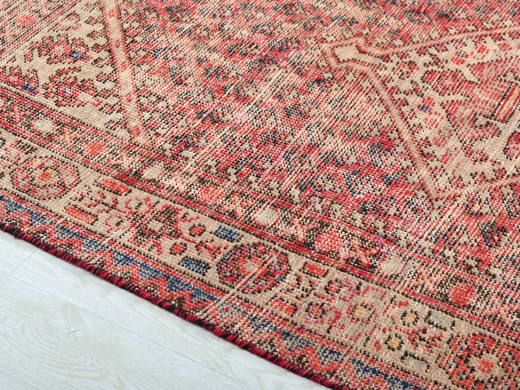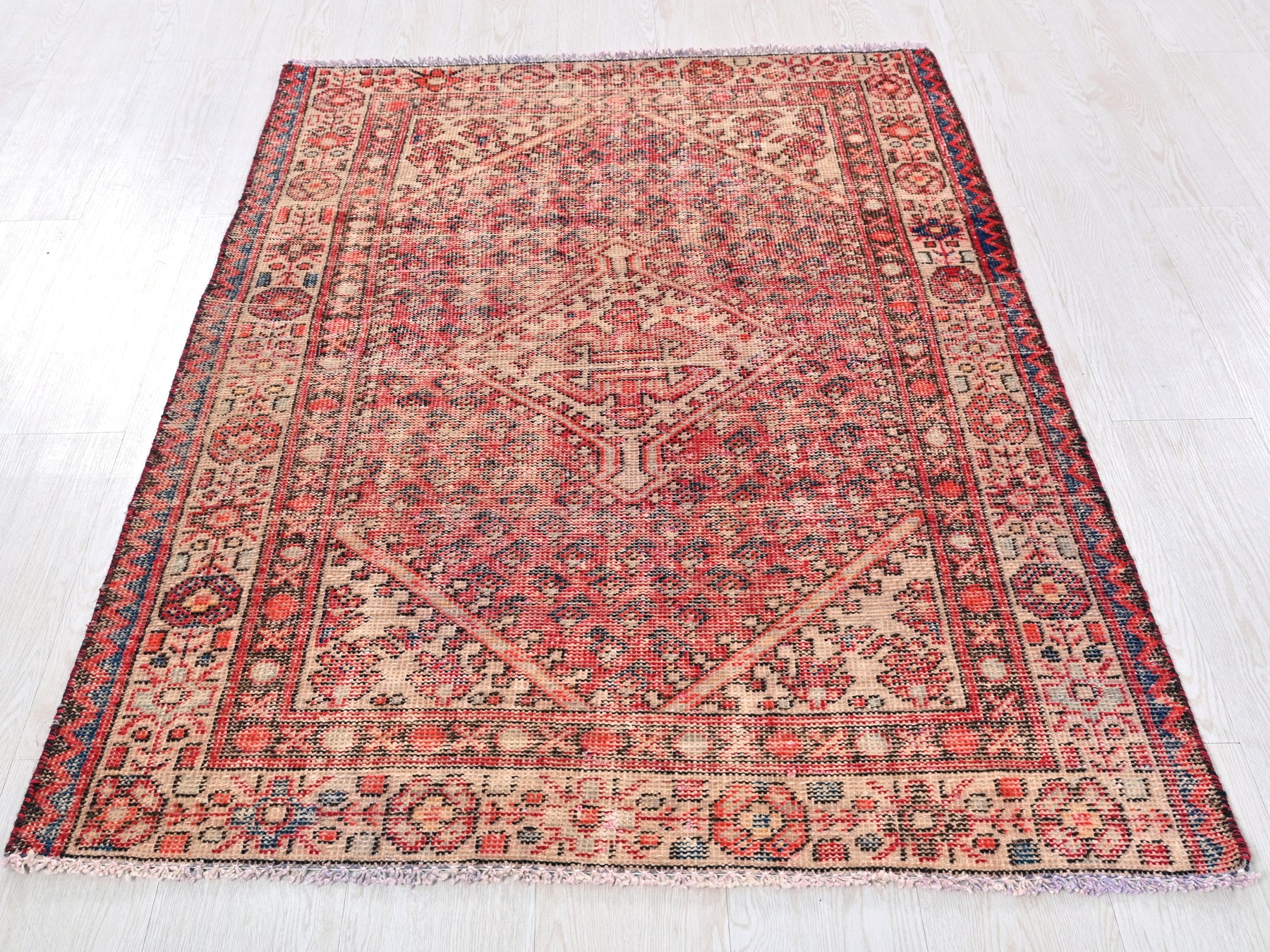 This is a hand-knotted, one-of-a-kind vintage rug. Due to the nature of this piece, there may be slight imperfections in its wear, shape, dimensions, and color. All of our rugs are professionally cleaned and repaired.
