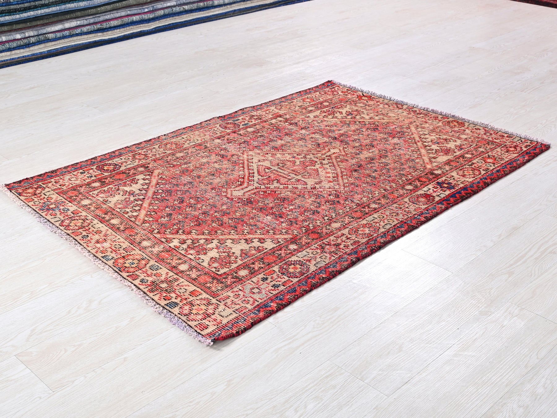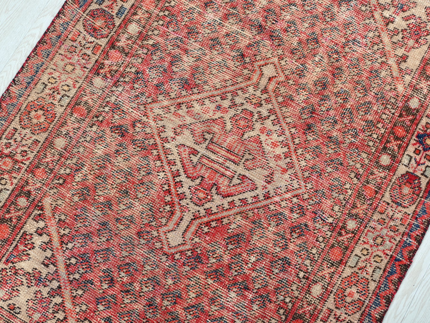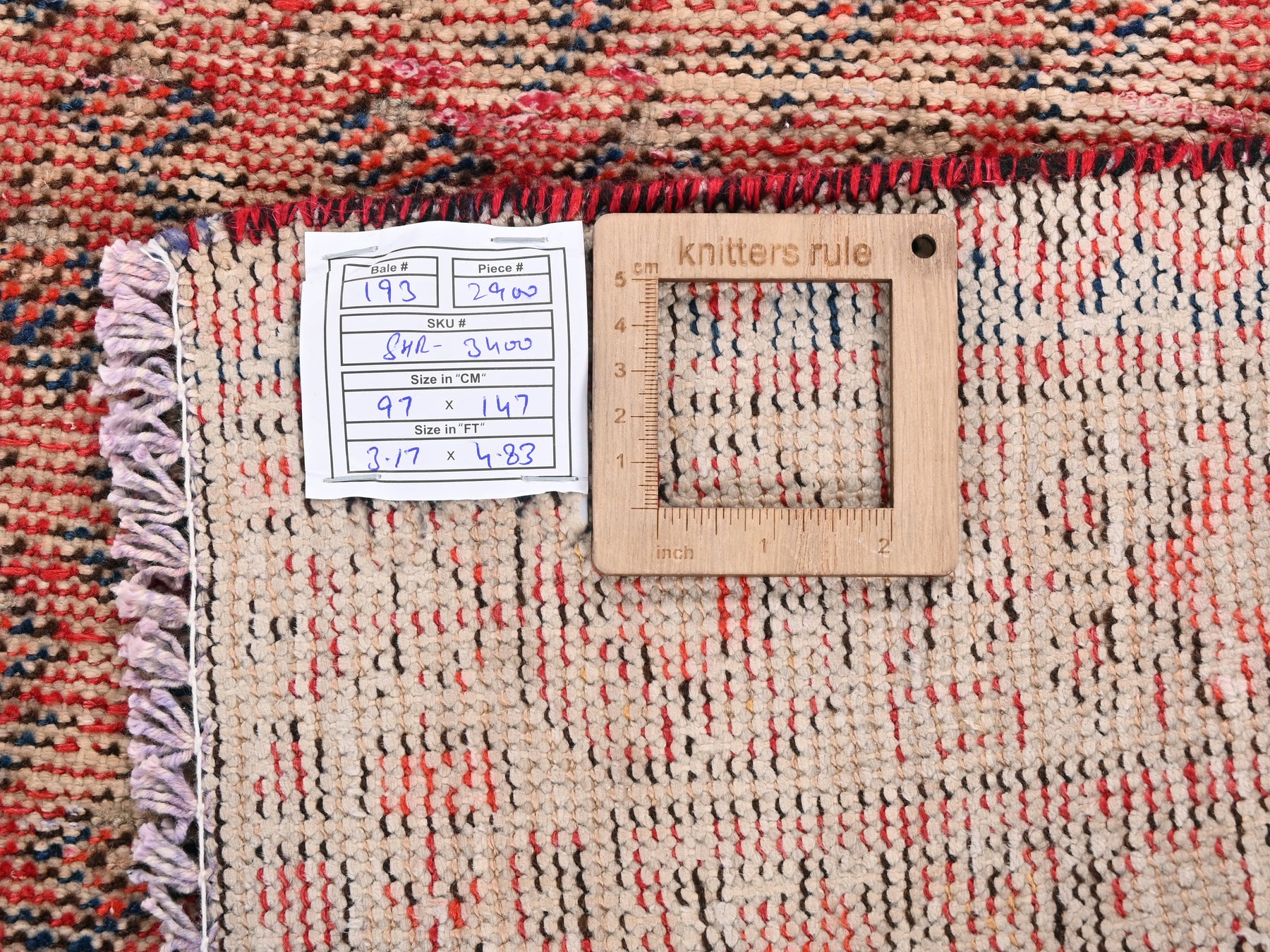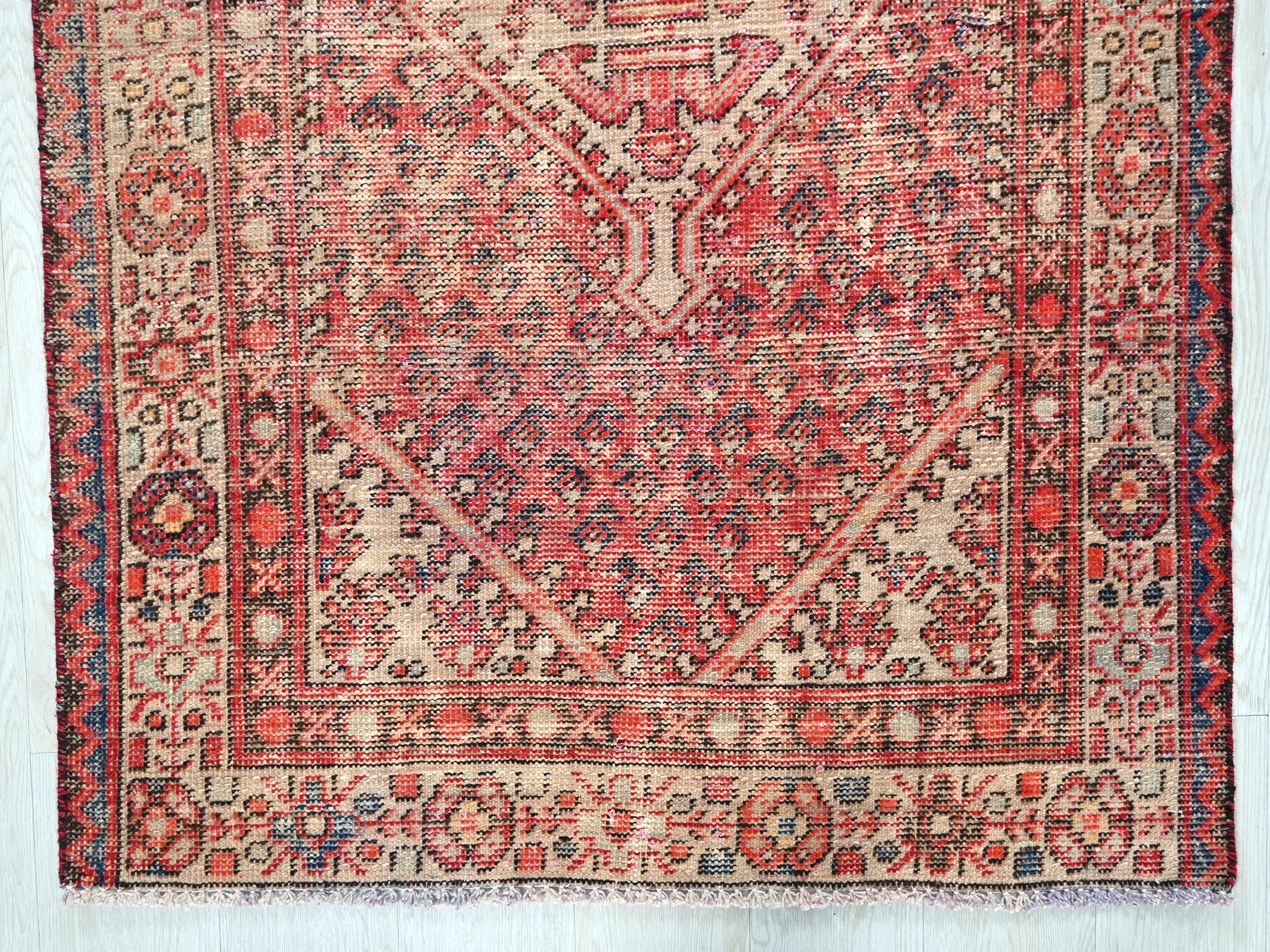 This is a hand-knotted, one-of-a-kind vintage rug. Due to the nature of this piece, there may be slight imperfections in its wear, shape, dimensions, and color. All of our rugs are professionally cleaned and repaired.