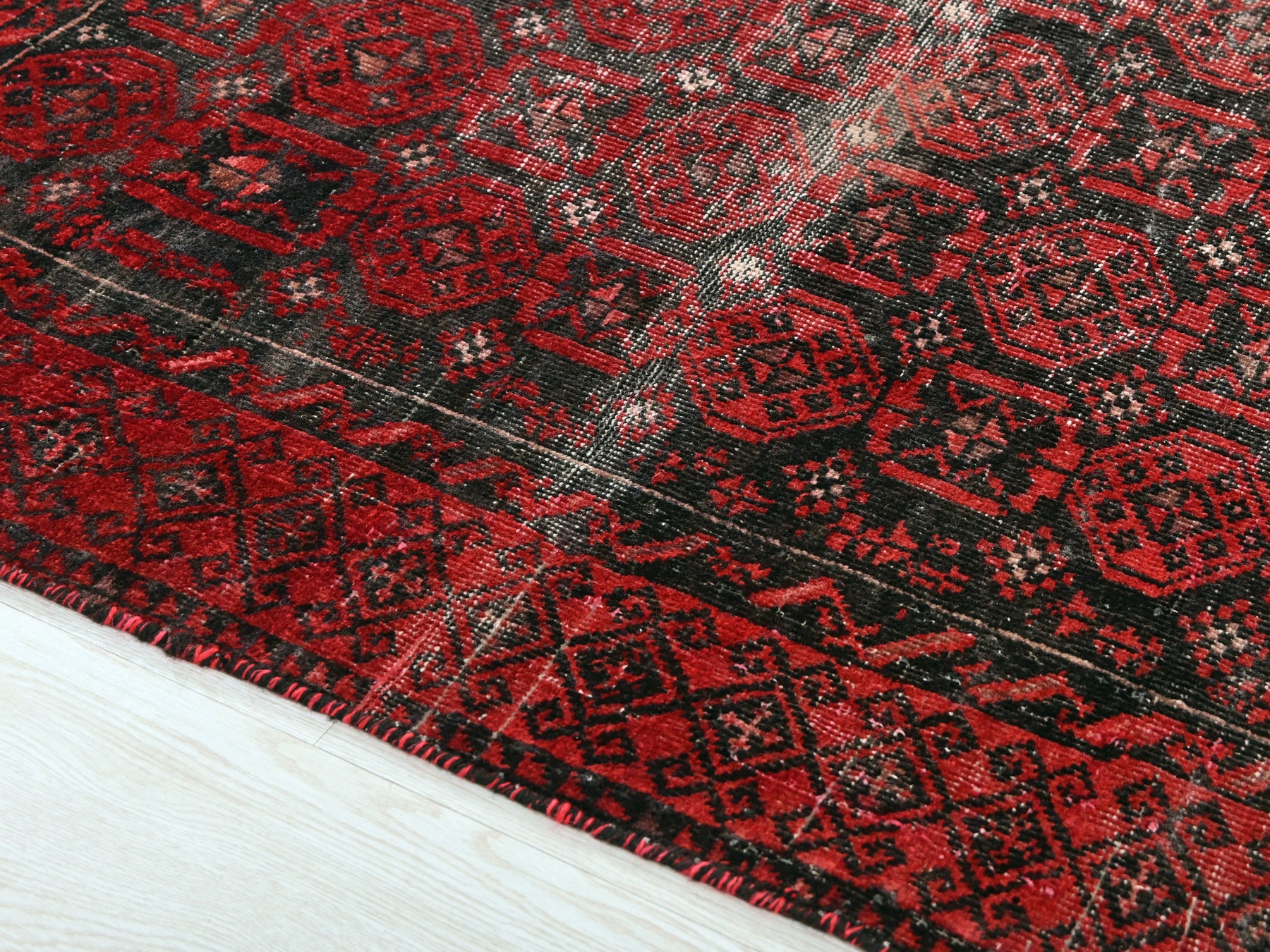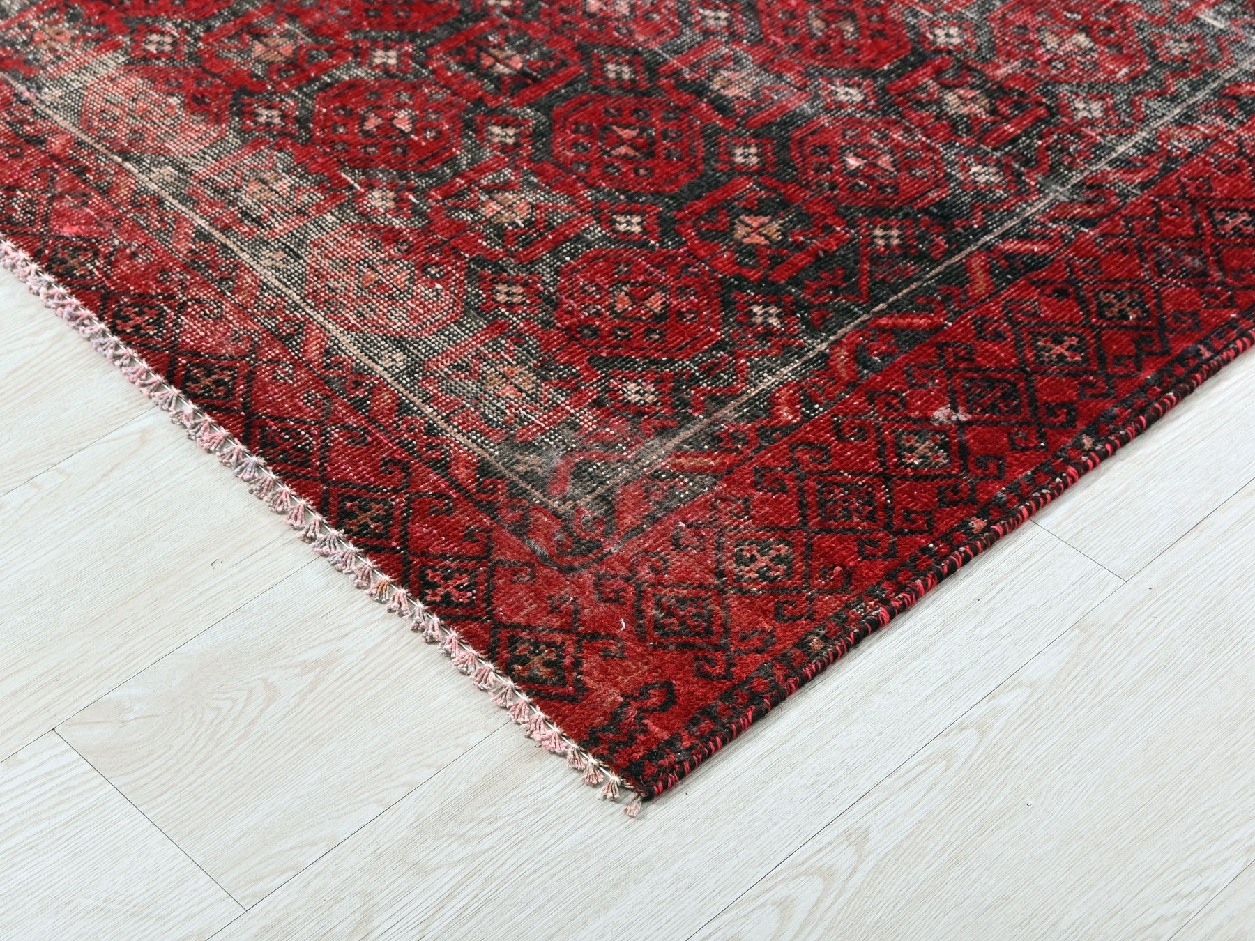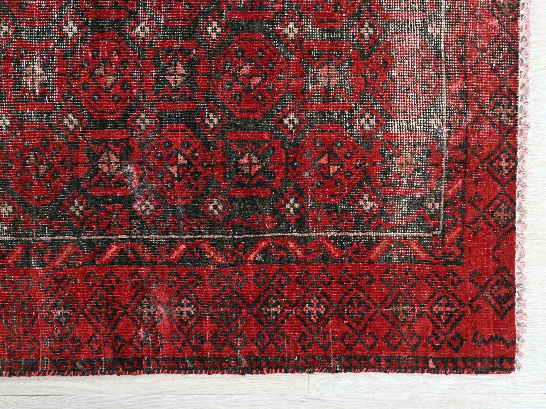 This is a hand-knotted, one-of-a-kind vintage rug. Due to the nature of this piece, there may be slight imperfections in its wear, shape, dimensions, and color. All of our rugs are professionally cleaned and repaired.