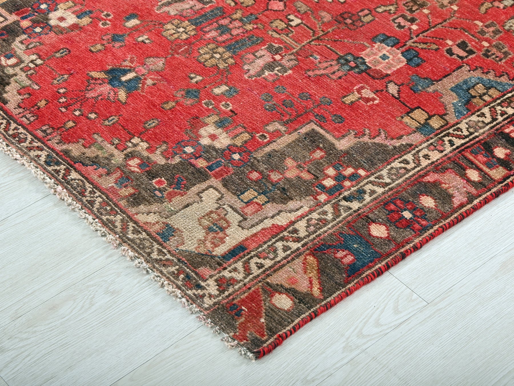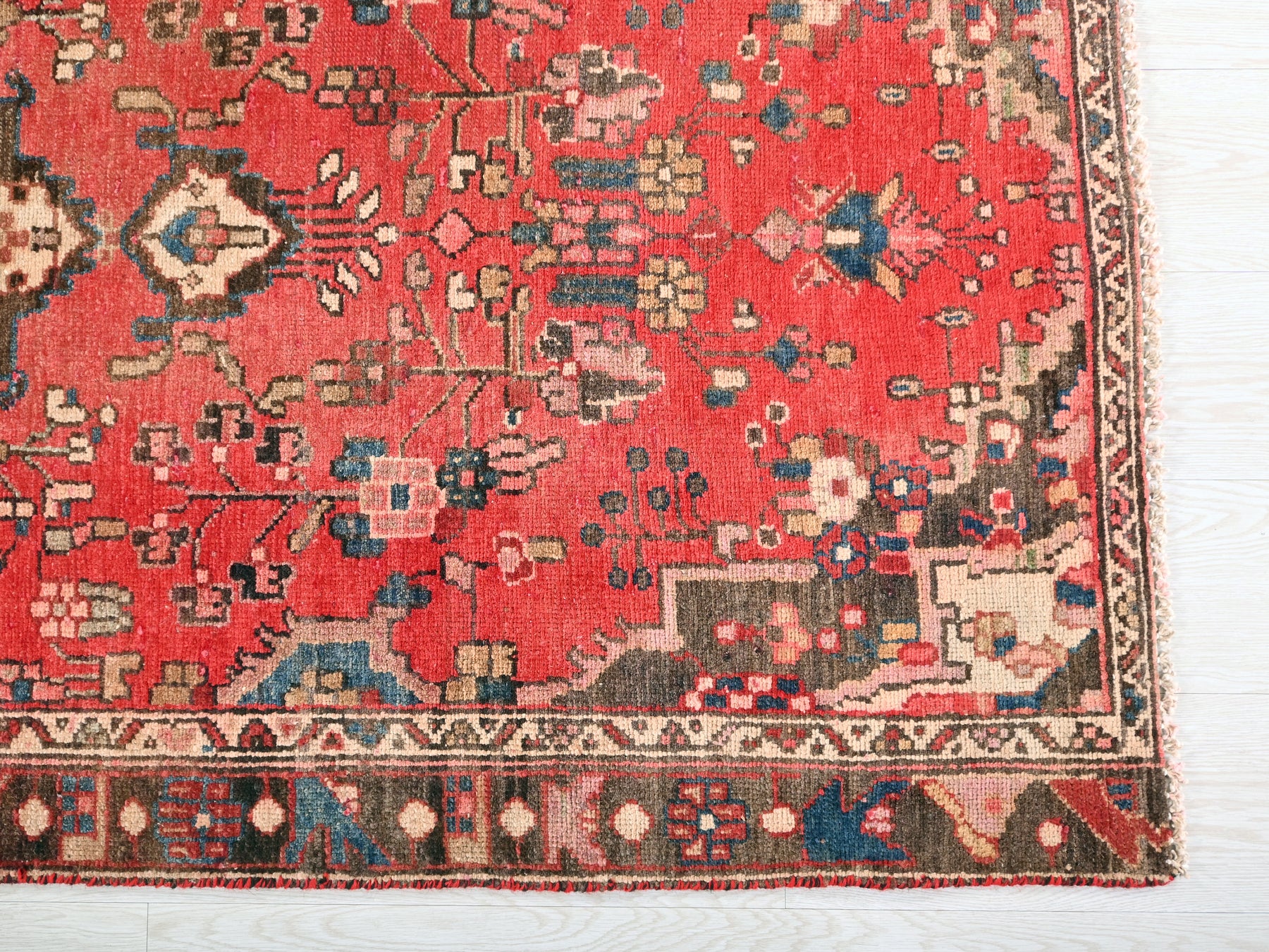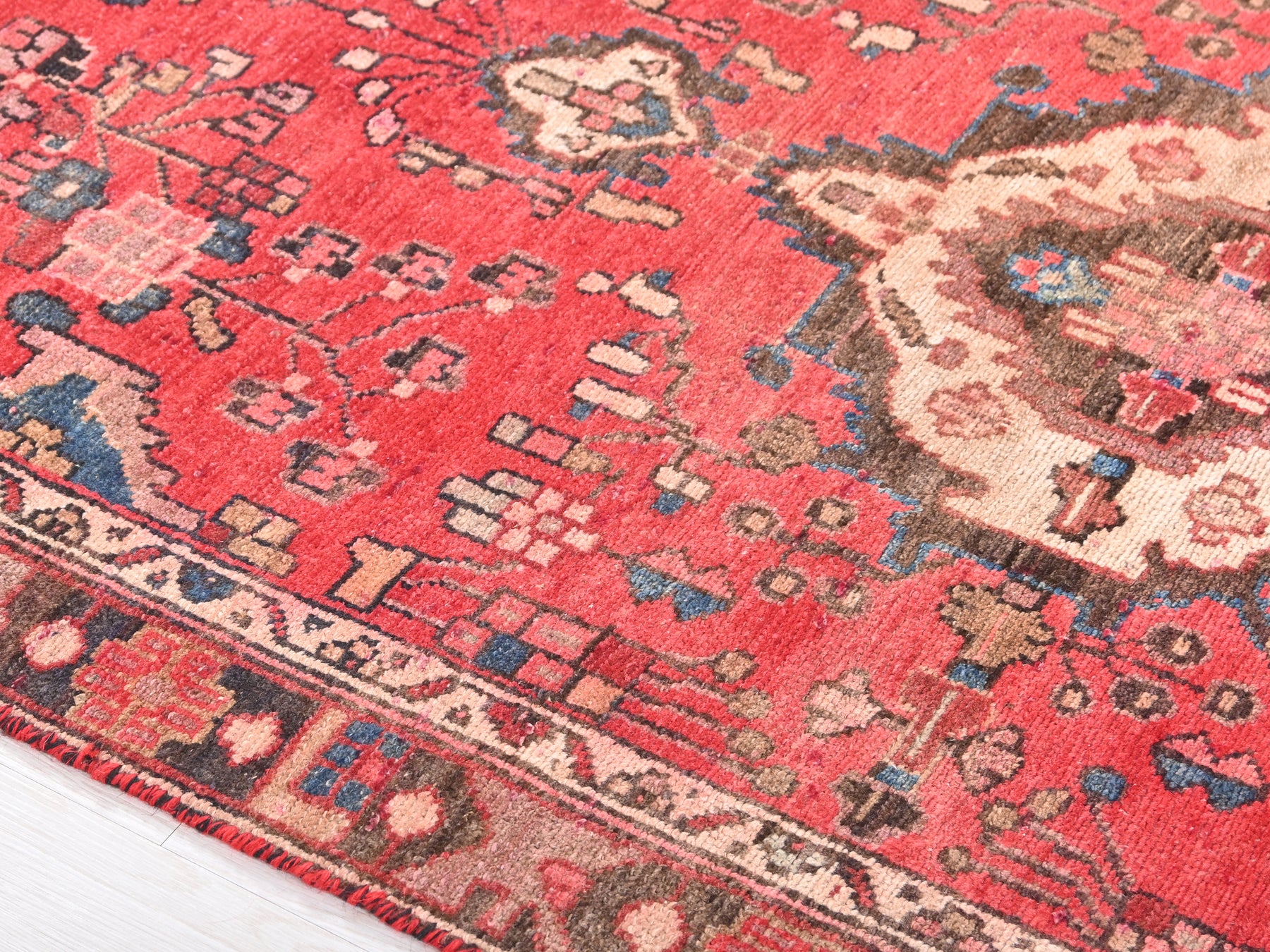 This is a hand-knotted, one-of-a-kind vintage rug. Due to the nature of this piece, there may be slight imperfections in its wear, shape, dimensions, and color. All of our rugs are professionally cleaned and repaired.