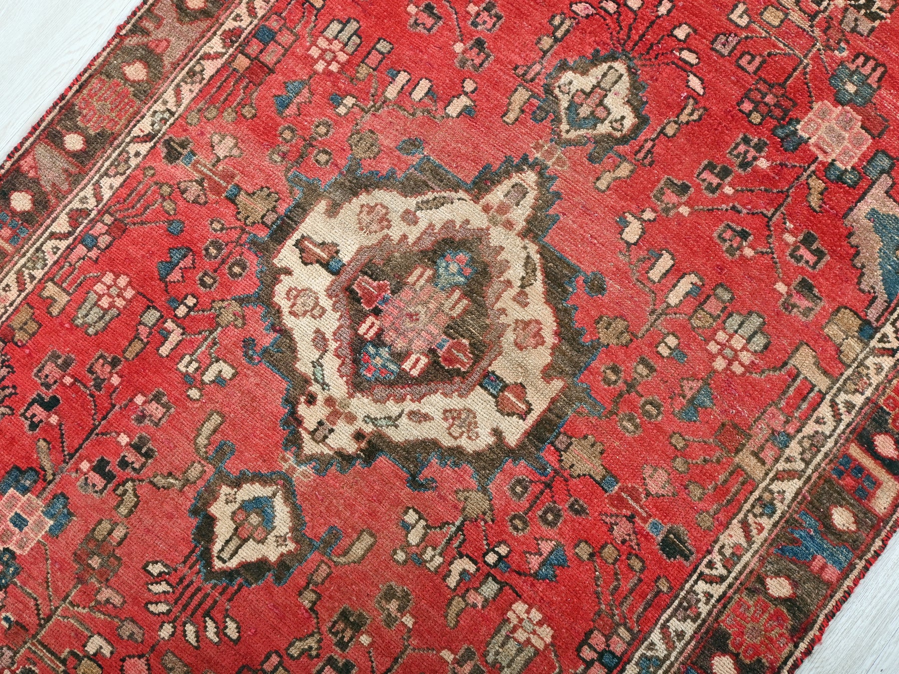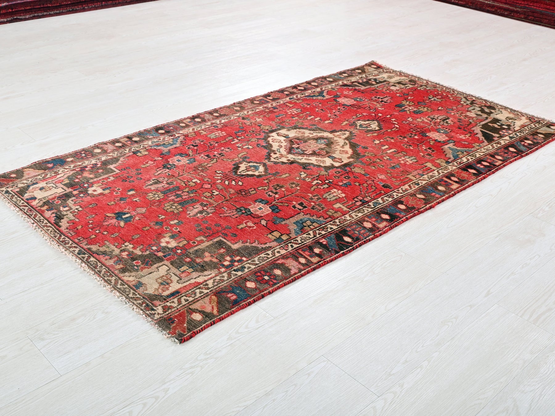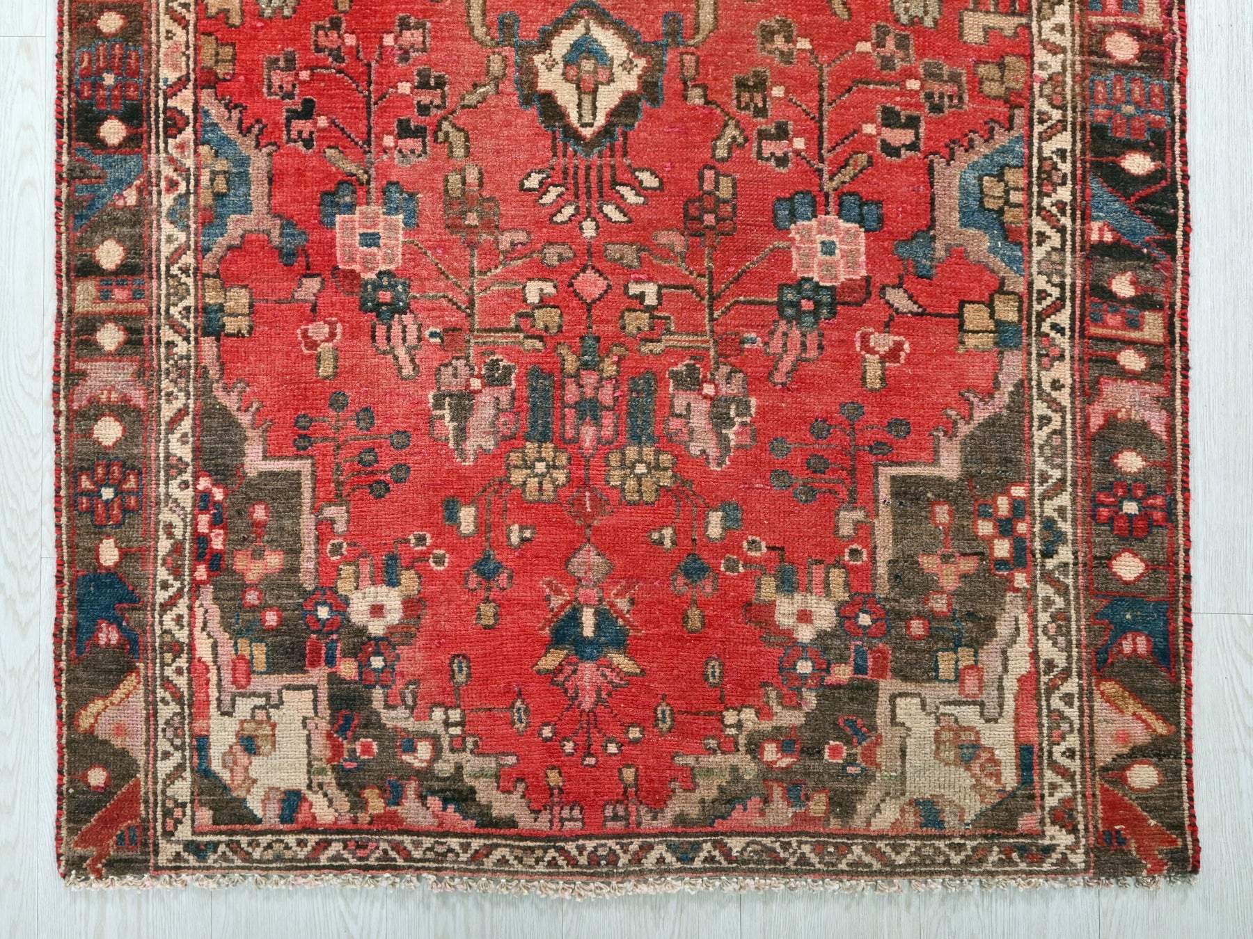This is a hand-knotted, one-of-a-kind vintage rug. Due to the nature of this piece, there may be slight imperfections in its wear, shape, dimensions, and color. All of our rugs are professionally cleaned and repaired.