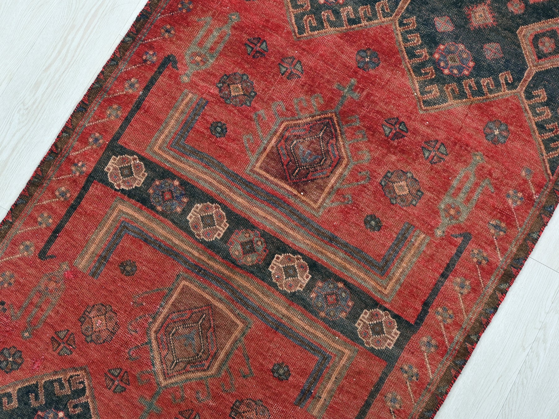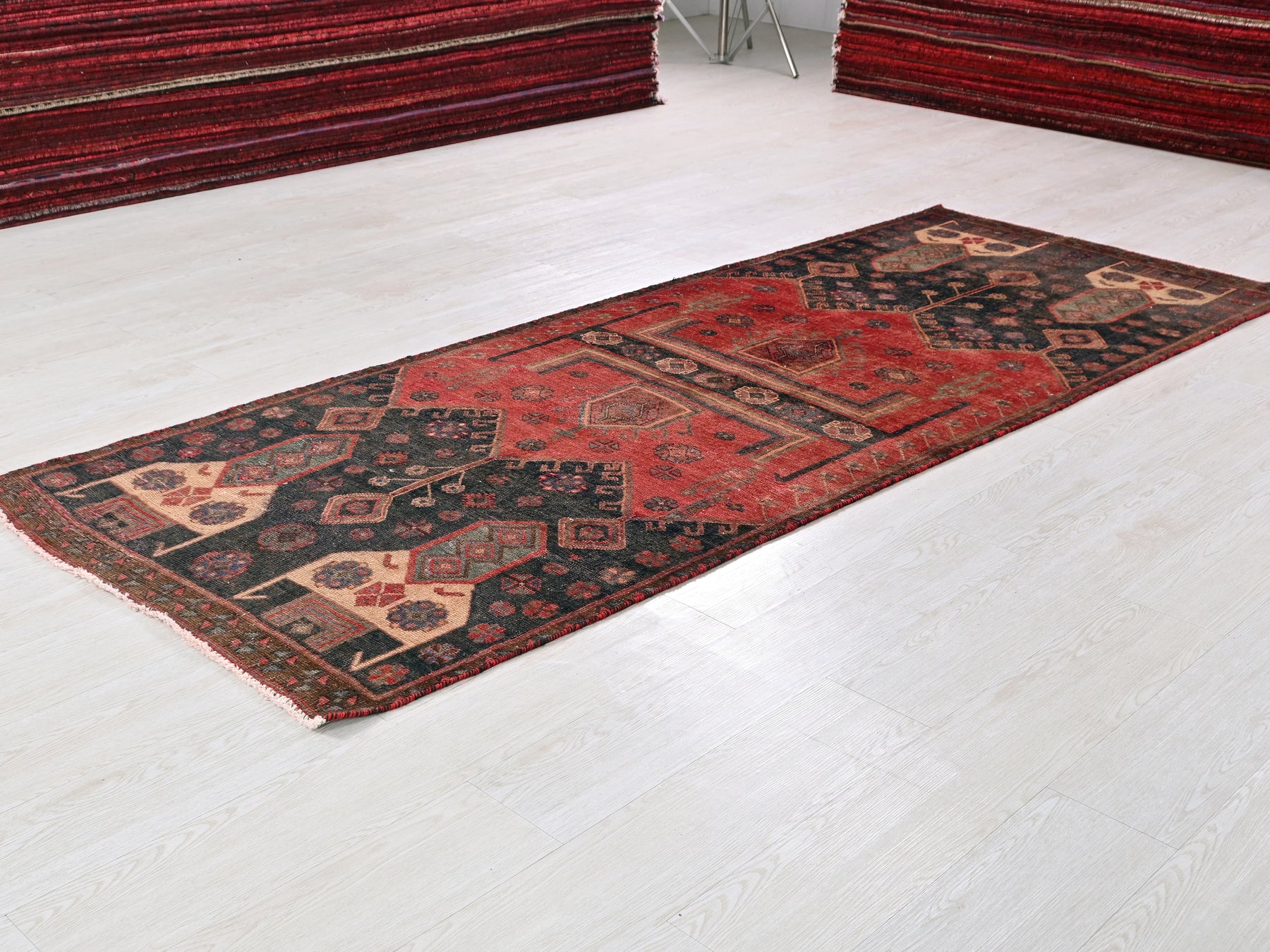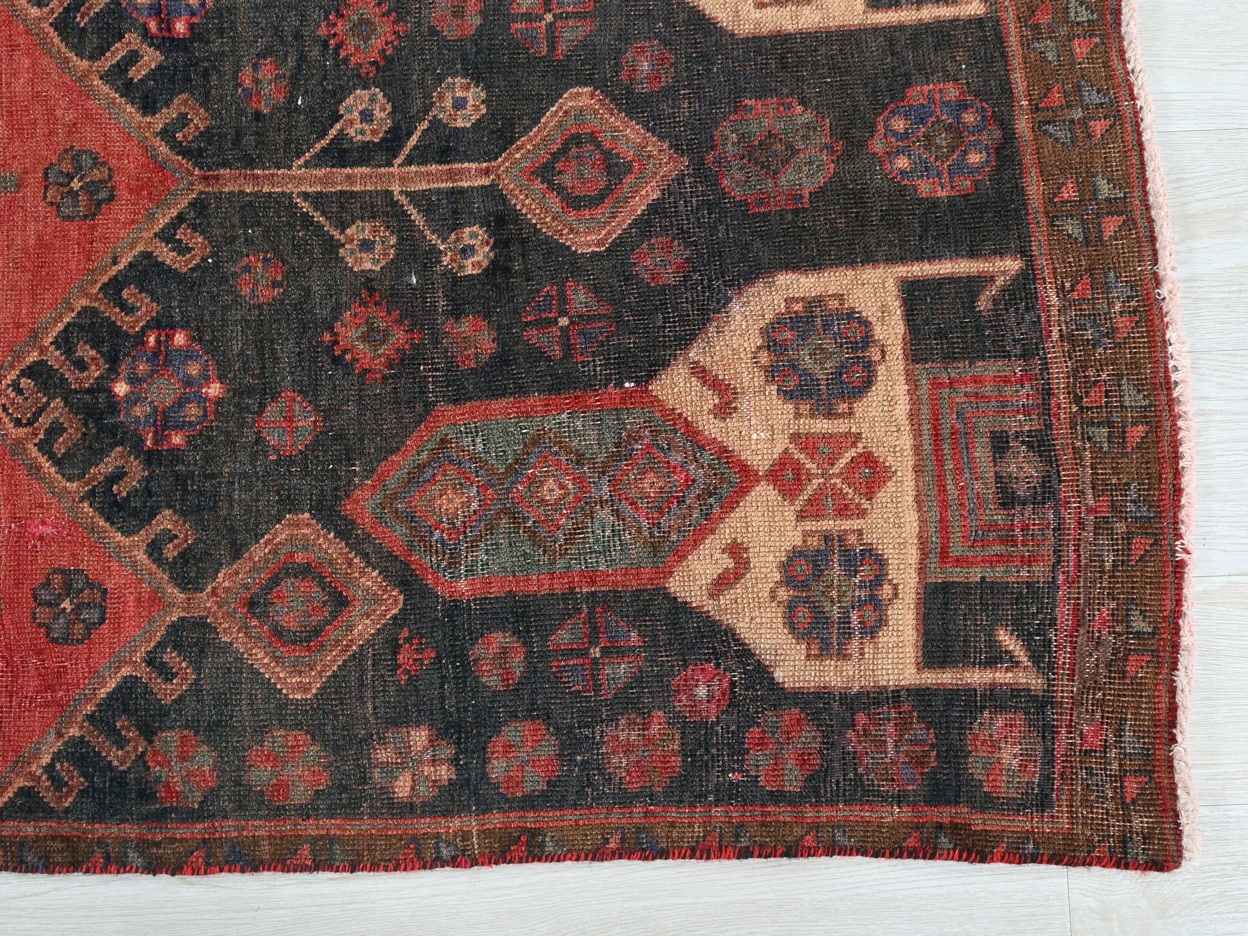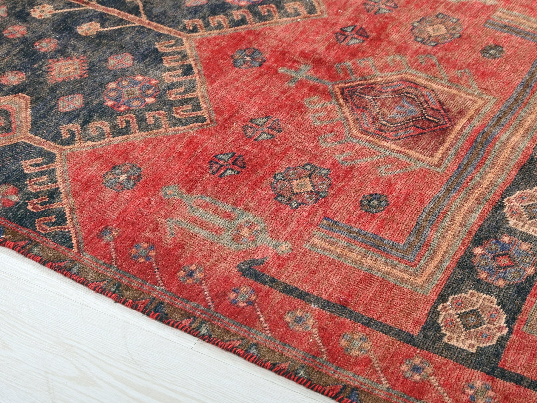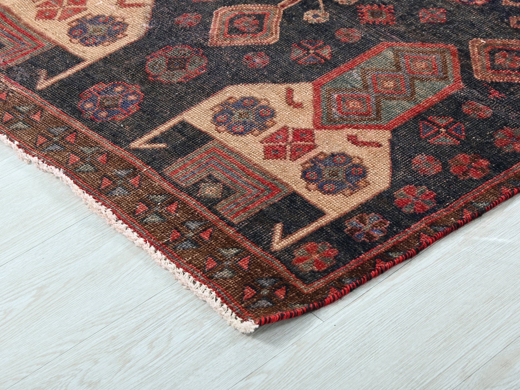 This is a hand-knotted, one-of-a-kind vintage rug. Due to the nature of this piece, there may be slight imperfections in its wear, shape, dimensions, and color. All of our rugs are professionally cleaned and repaired.