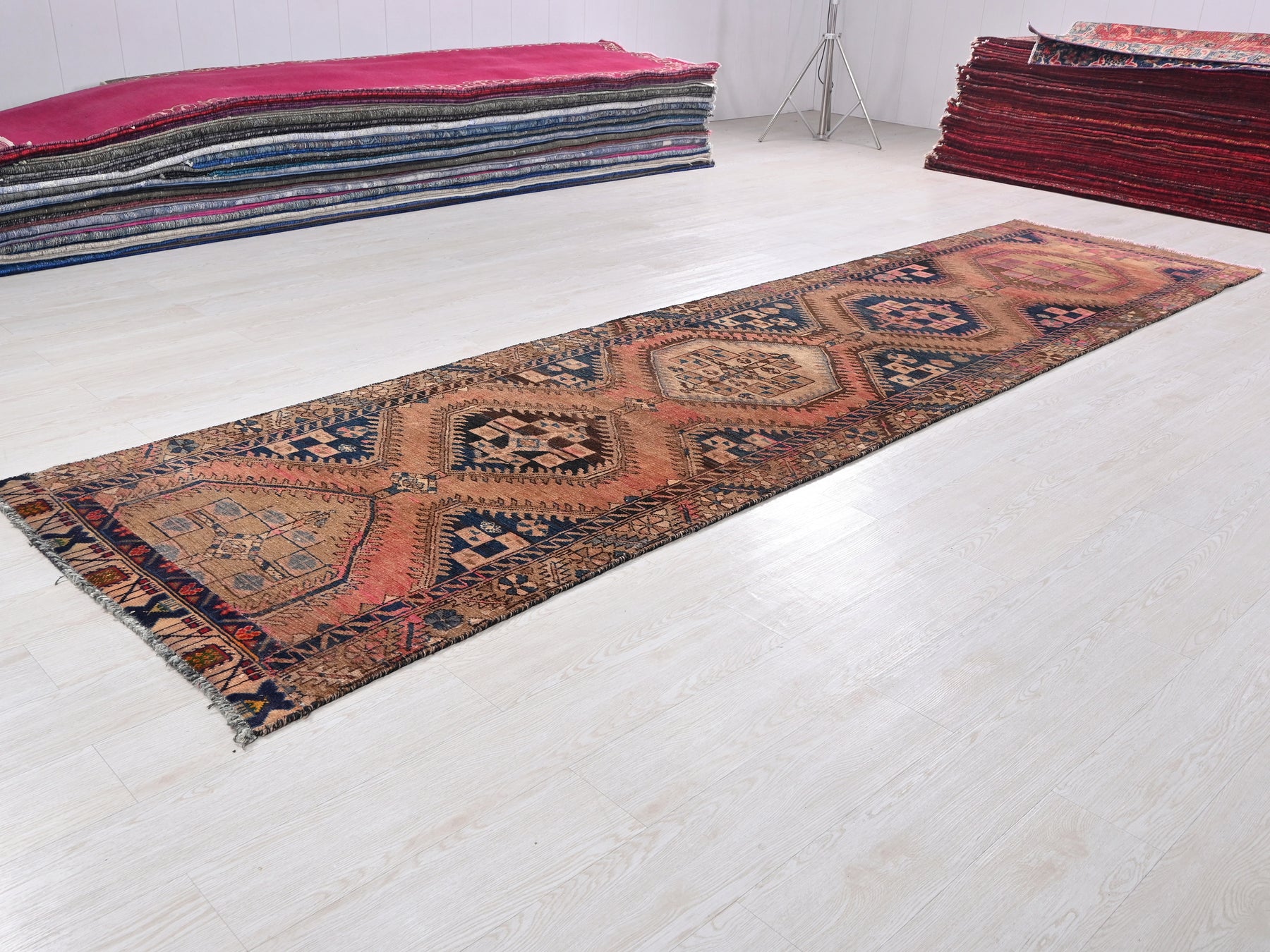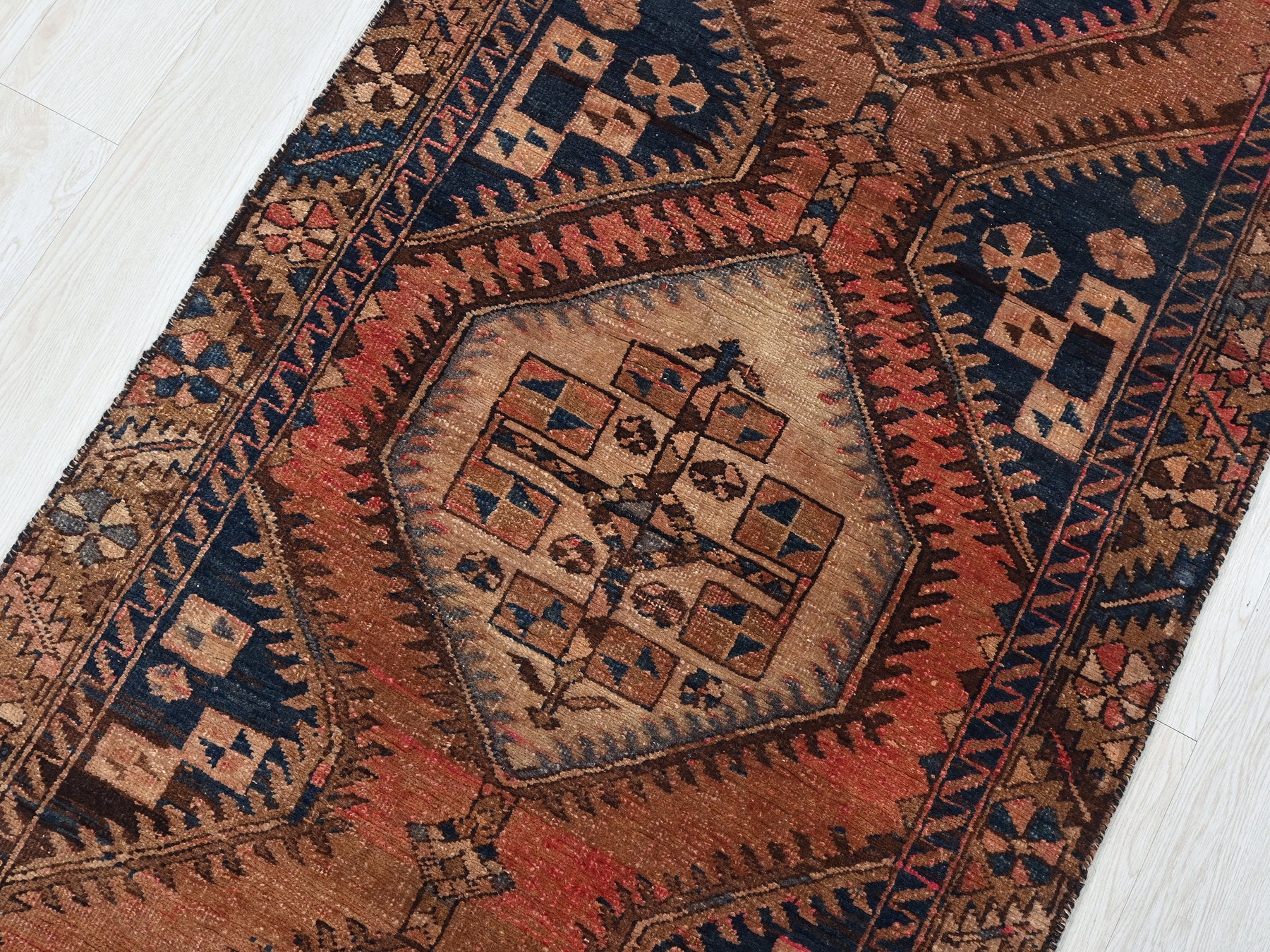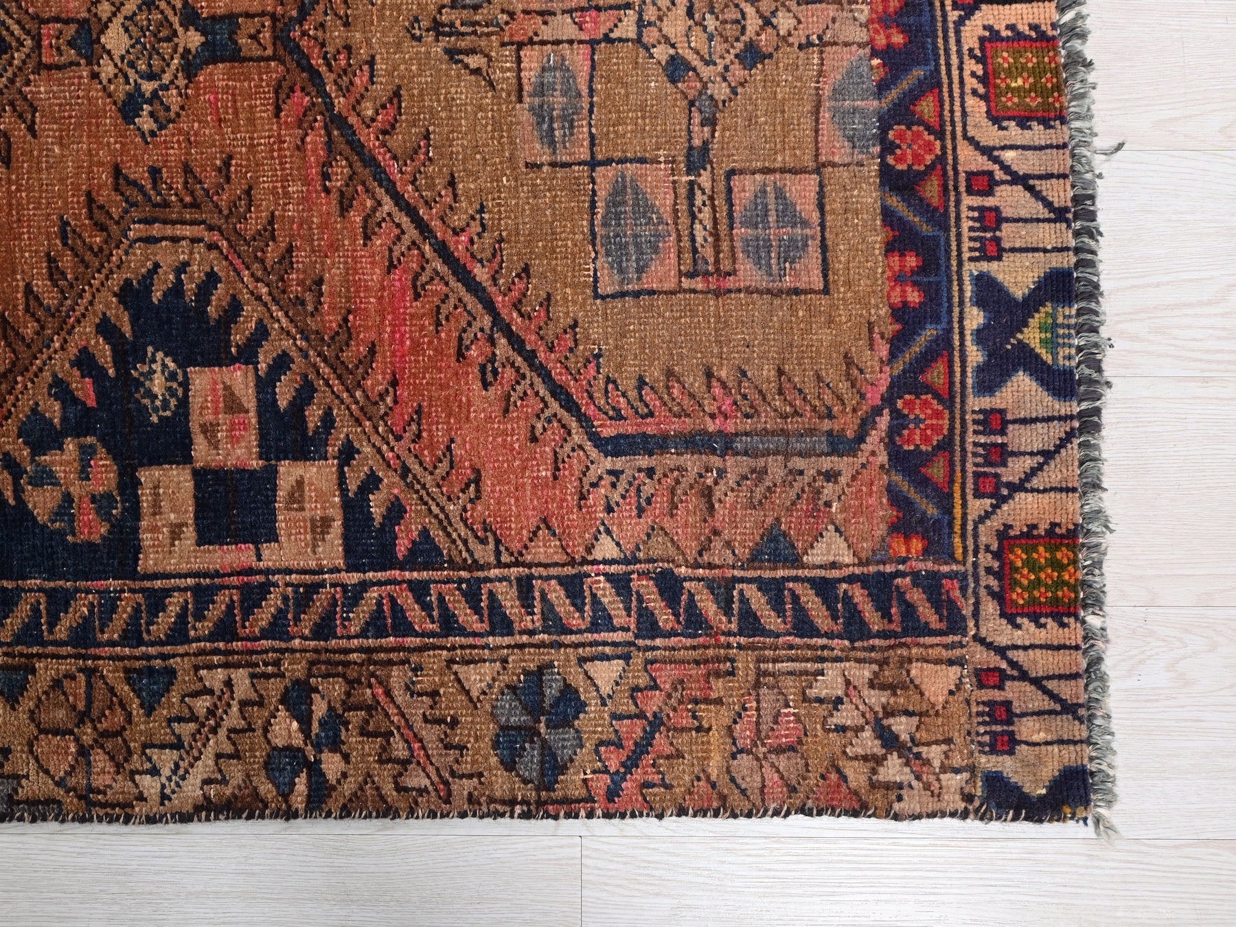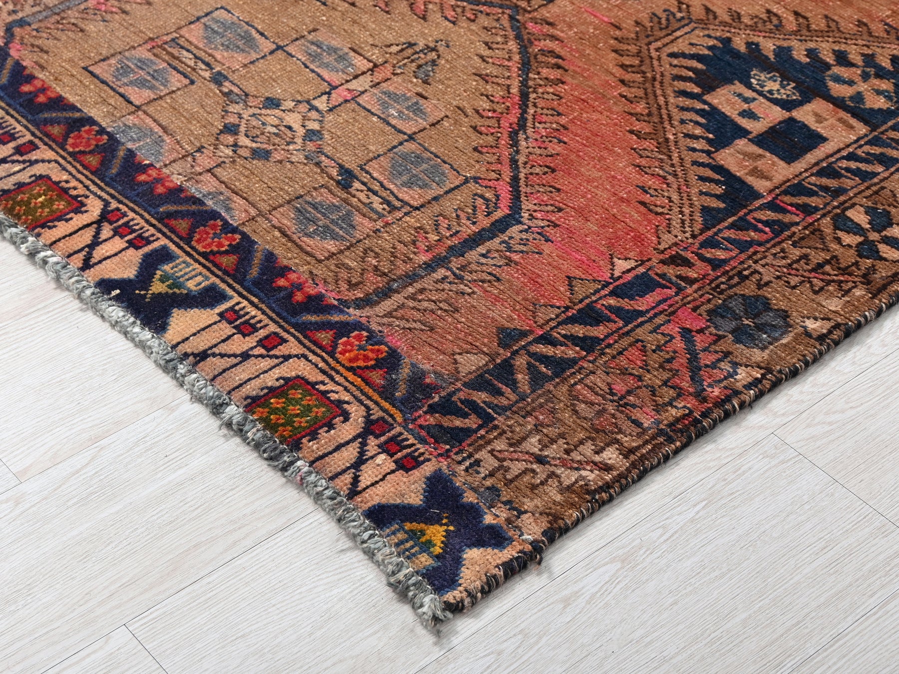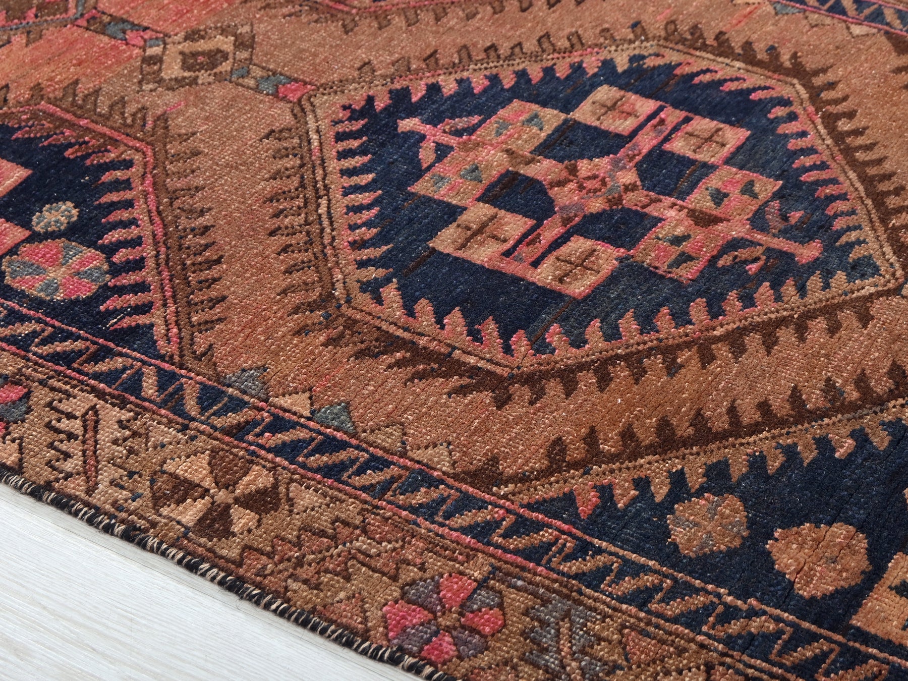 This is a hand-knotted, one-of-a-kind vintage rug. Due to the nature of this piece, there may be slight imperfections in its wear, shape, dimensions, and color. All of our rugs are professionally cleaned and repaired.