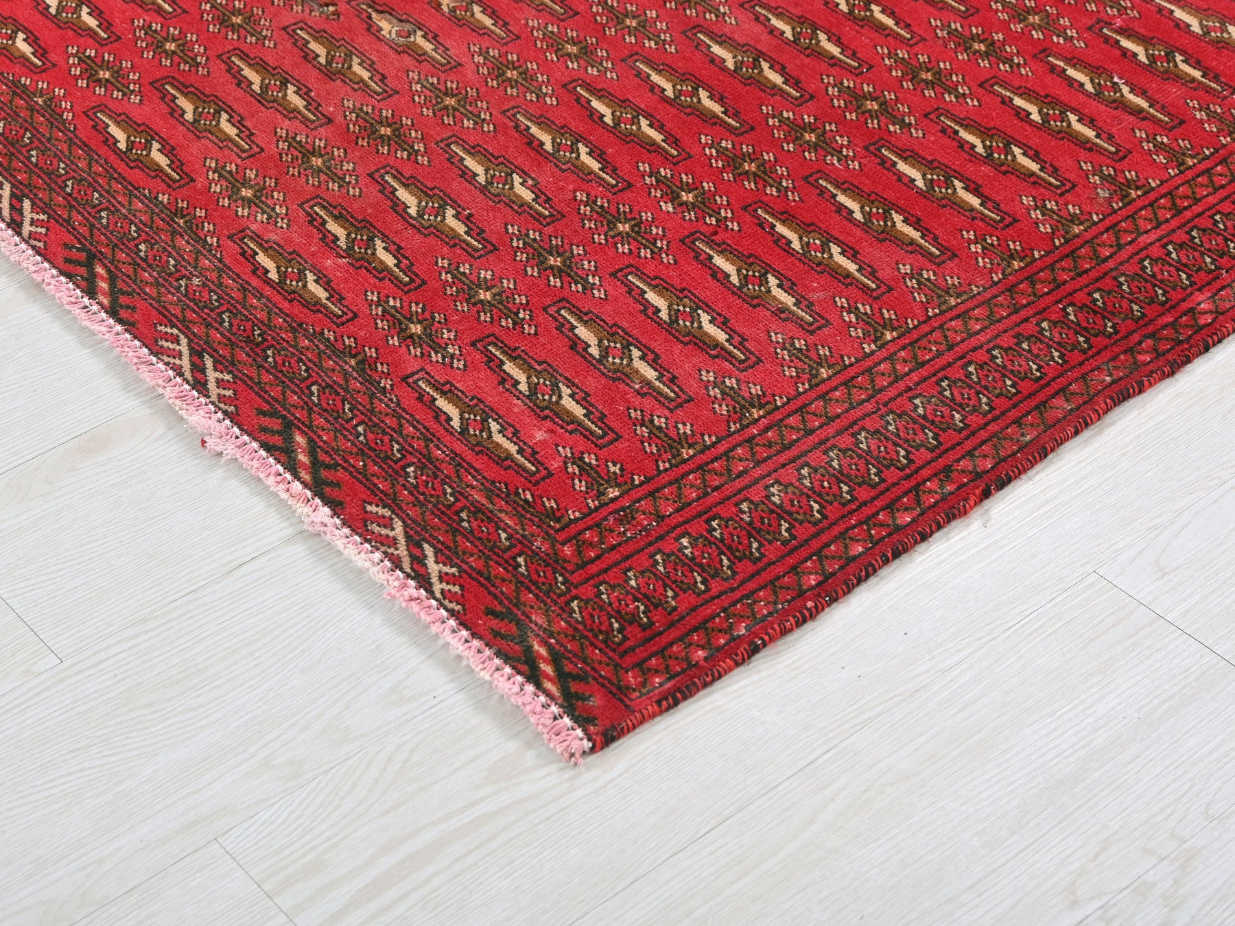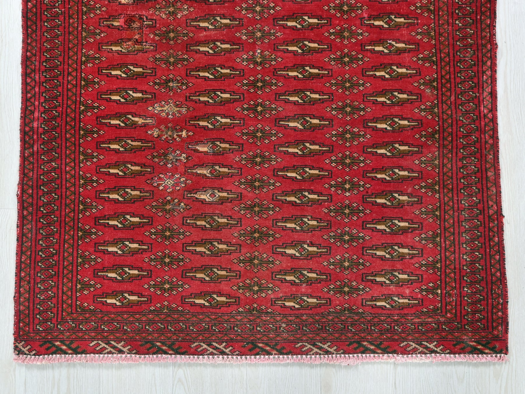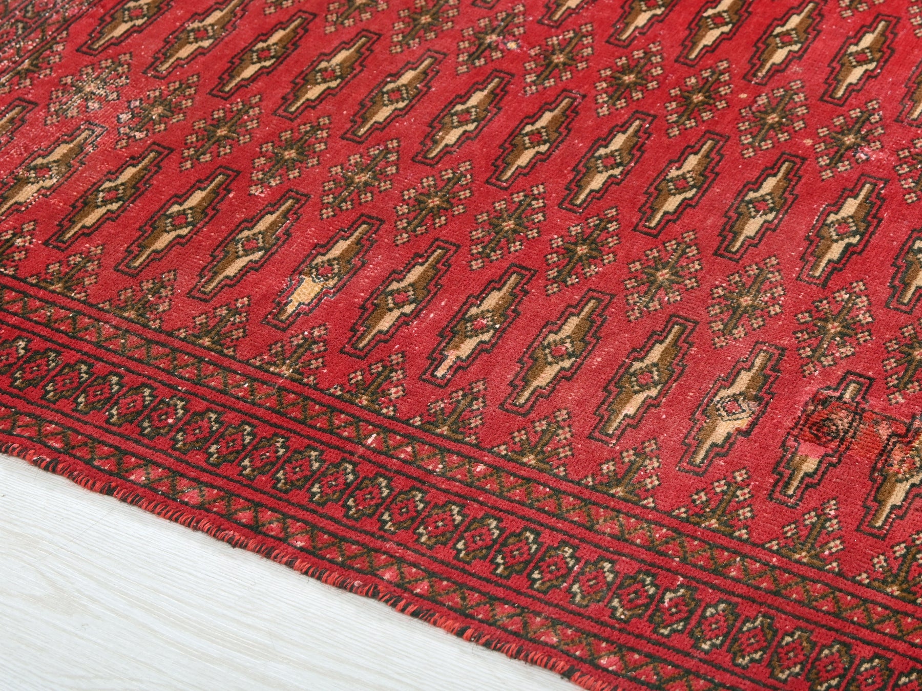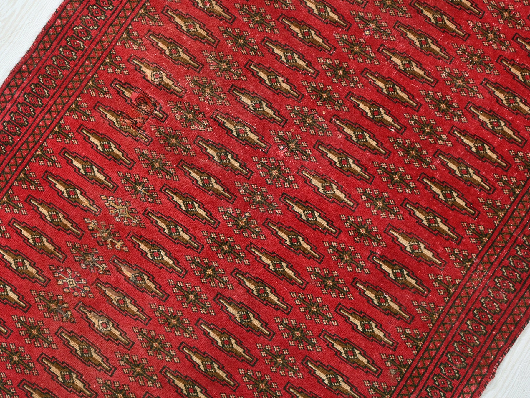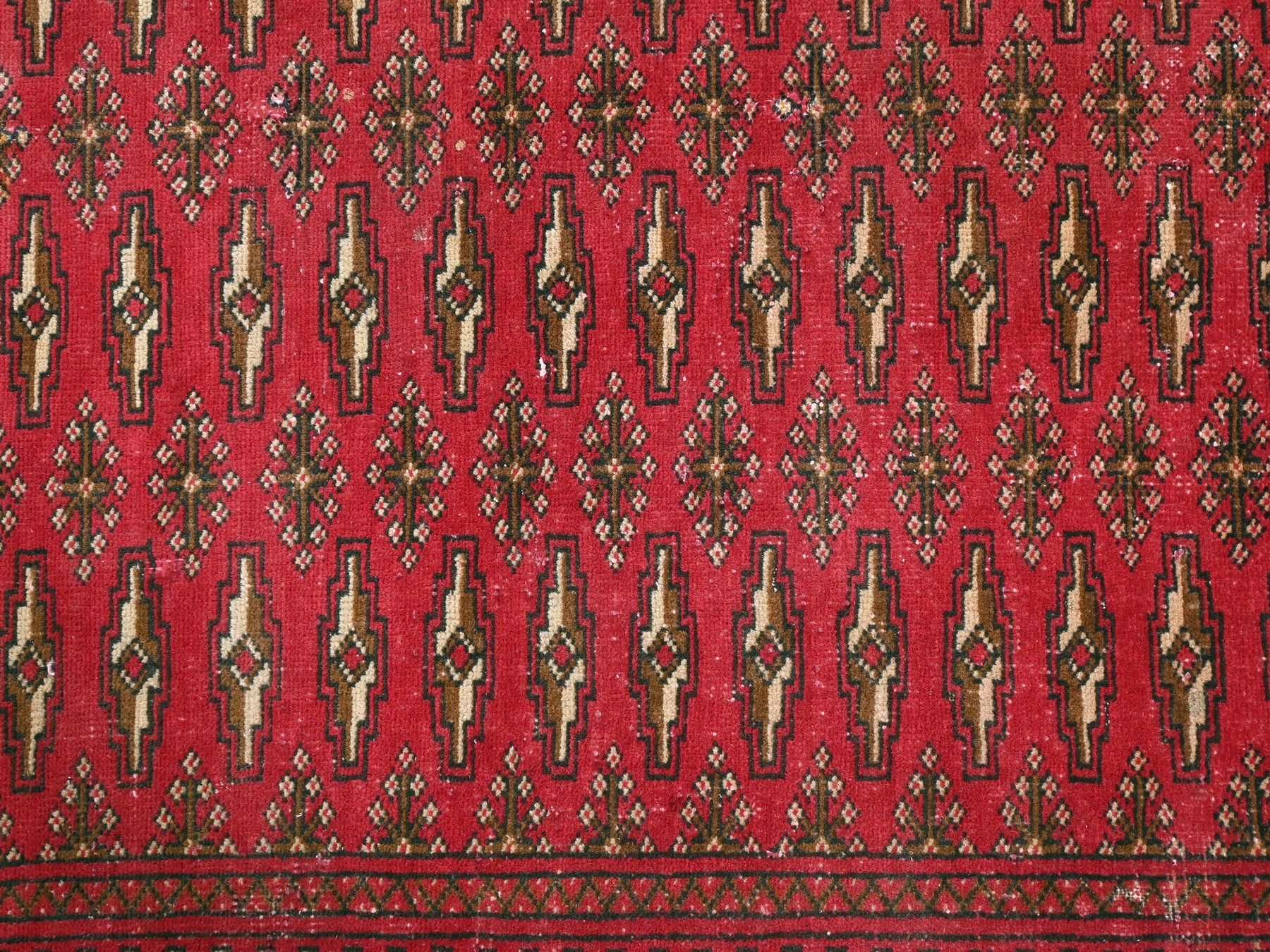 This is a hand-knotted, one-of-a-kind vintage rug. Due to the nature of this piece, there may be slight imperfections in its wear, shape, dimensions, and color. All of our rugs are professionally cleaned and repaired.