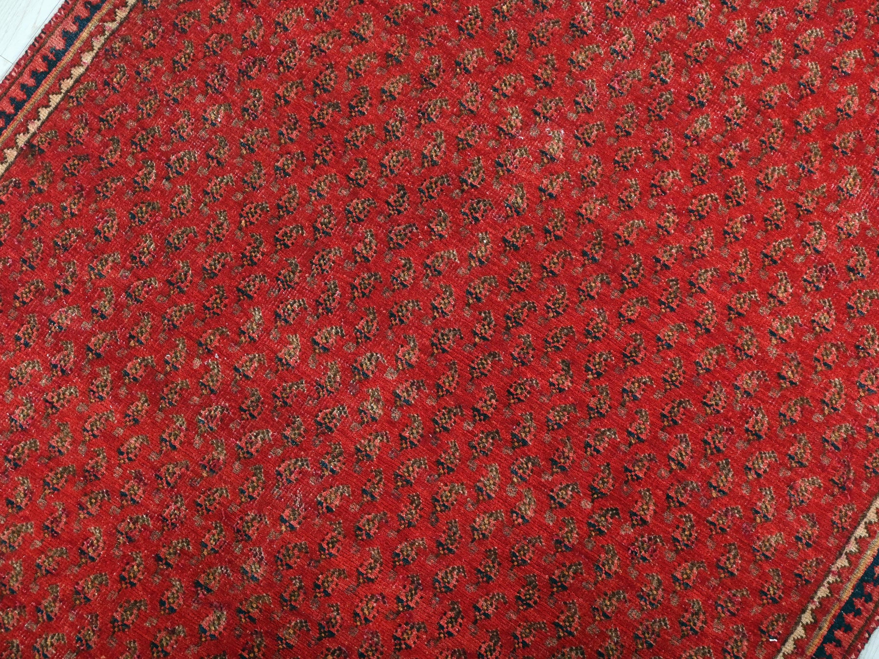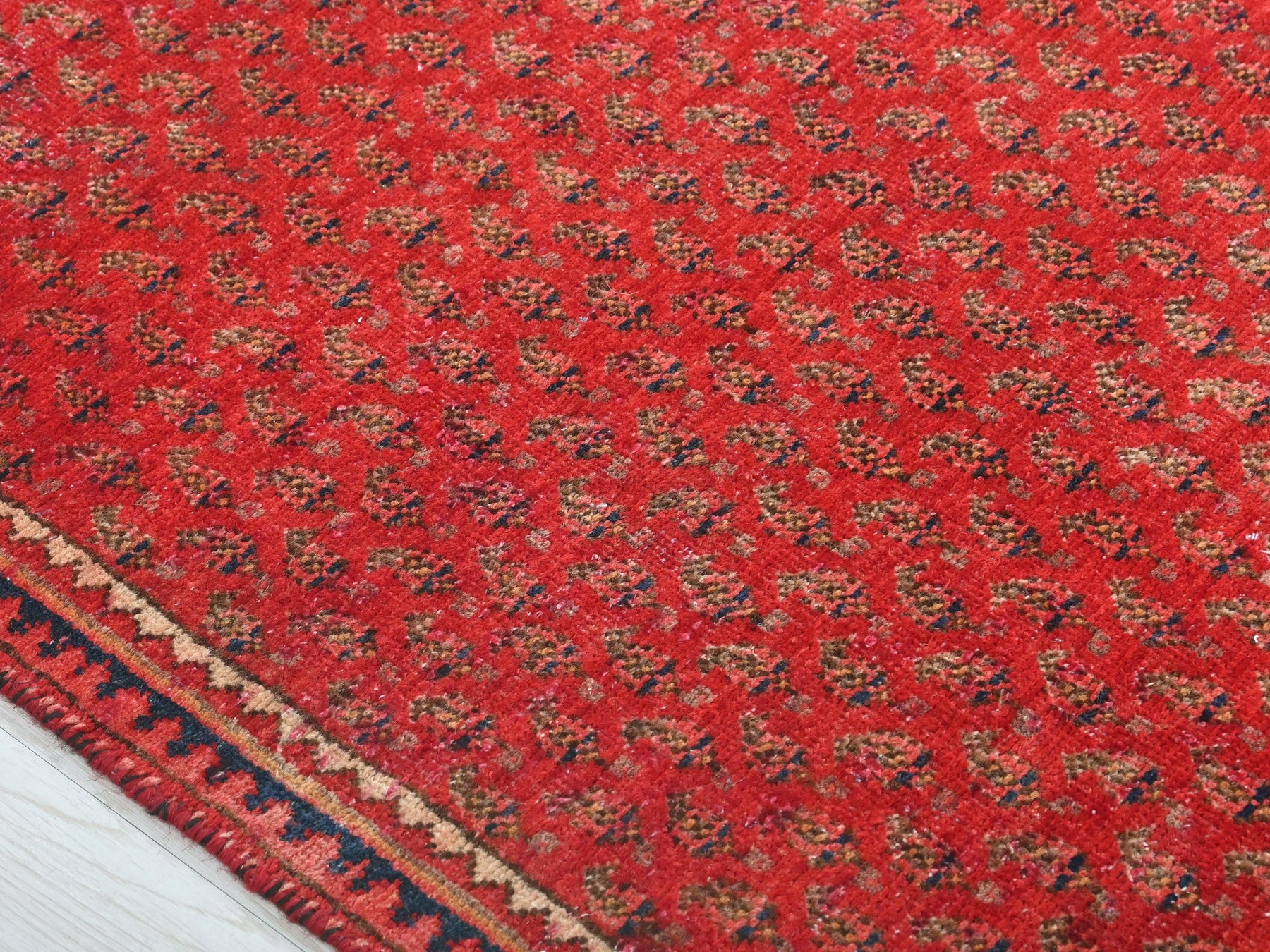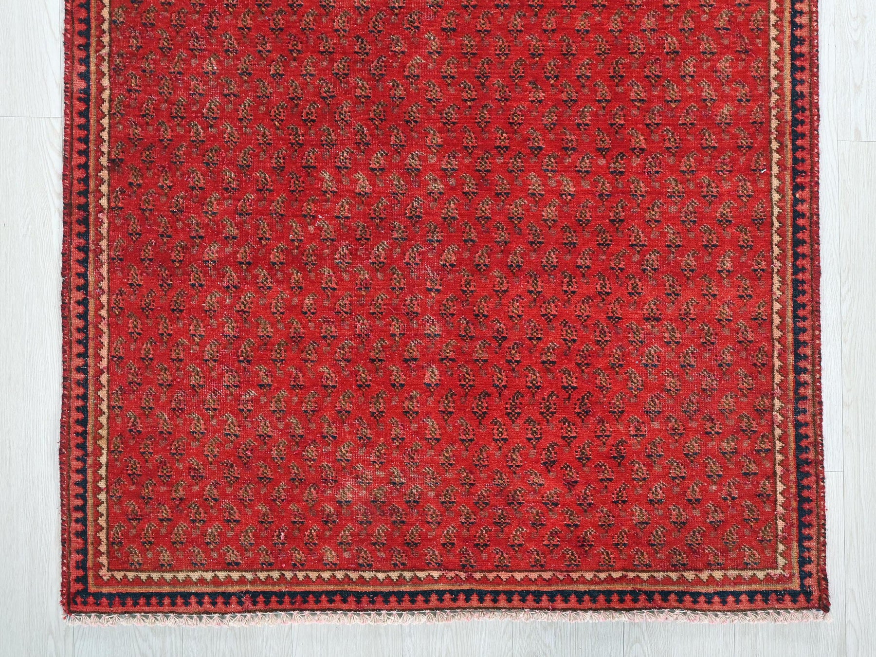 This is a hand-knotted, one-of-a-kind vintage rug. Due to the nature of this piece, there may be slight imperfections in its wear, shape, dimensions, and color. All of our rugs are professionally cleaned and repaired.