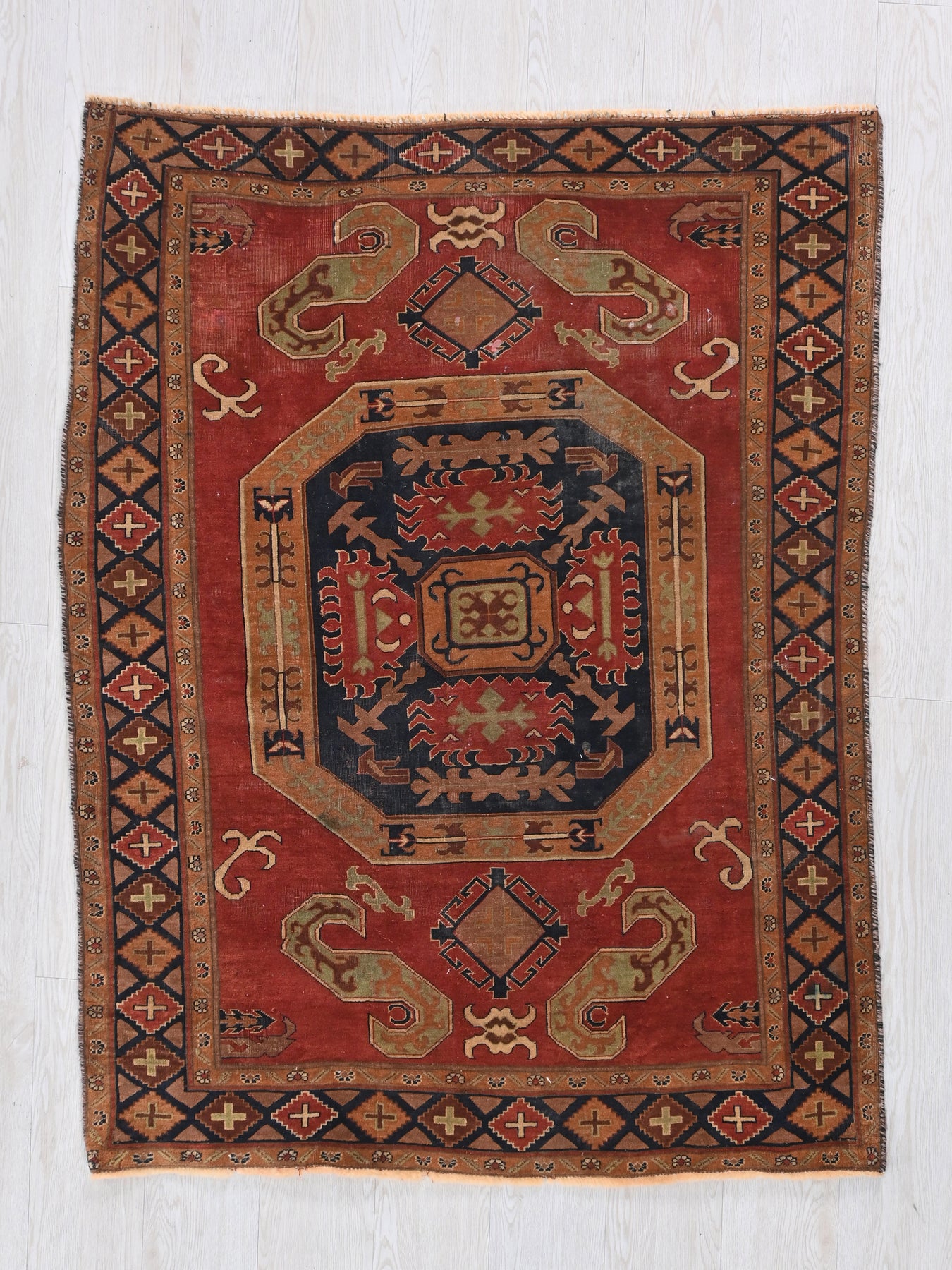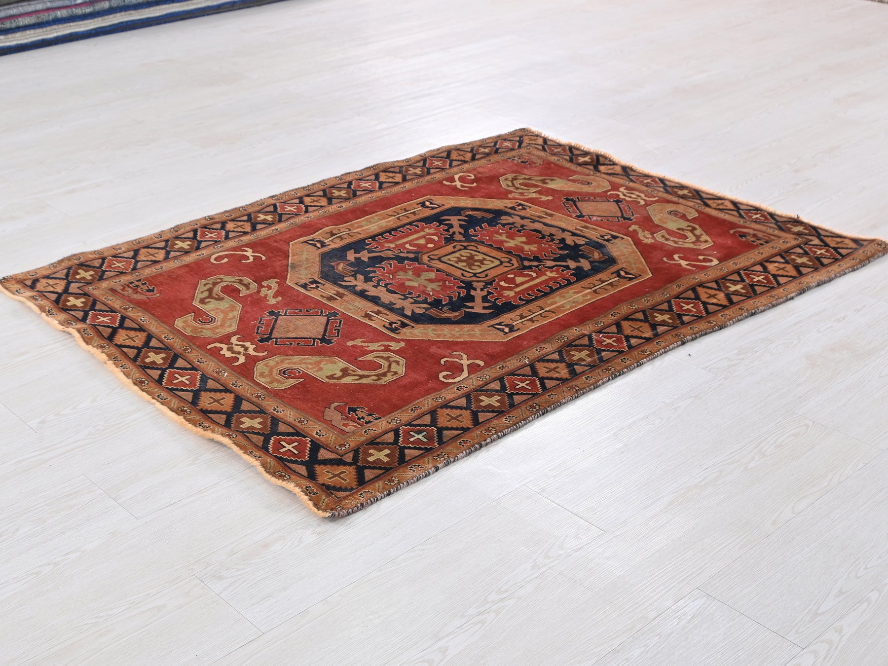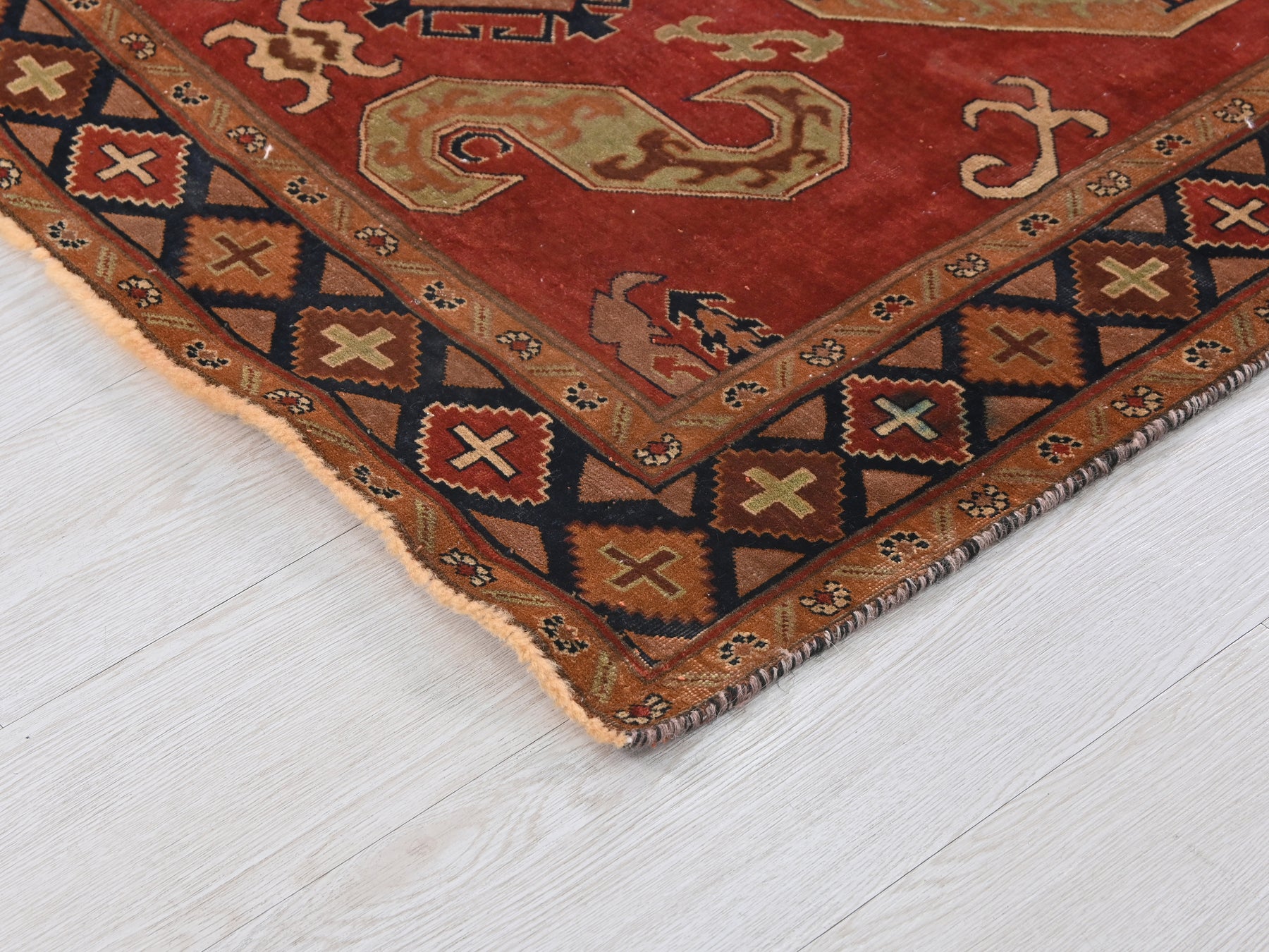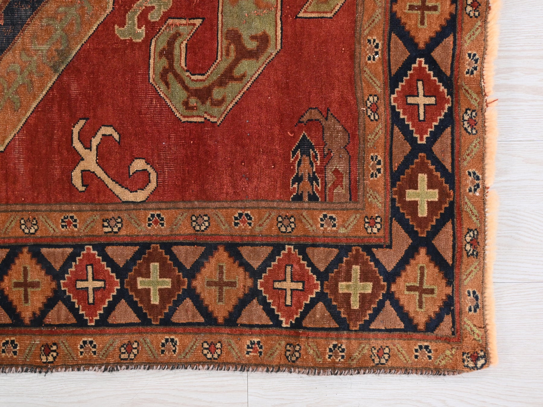 This is a hand-knotted, one-of-a-kind vintage rug. Due to the nature of this piece, there may be slight imperfections in its wear, shape, dimensions, and color. All of our rugs are professionally cleaned and repaired.