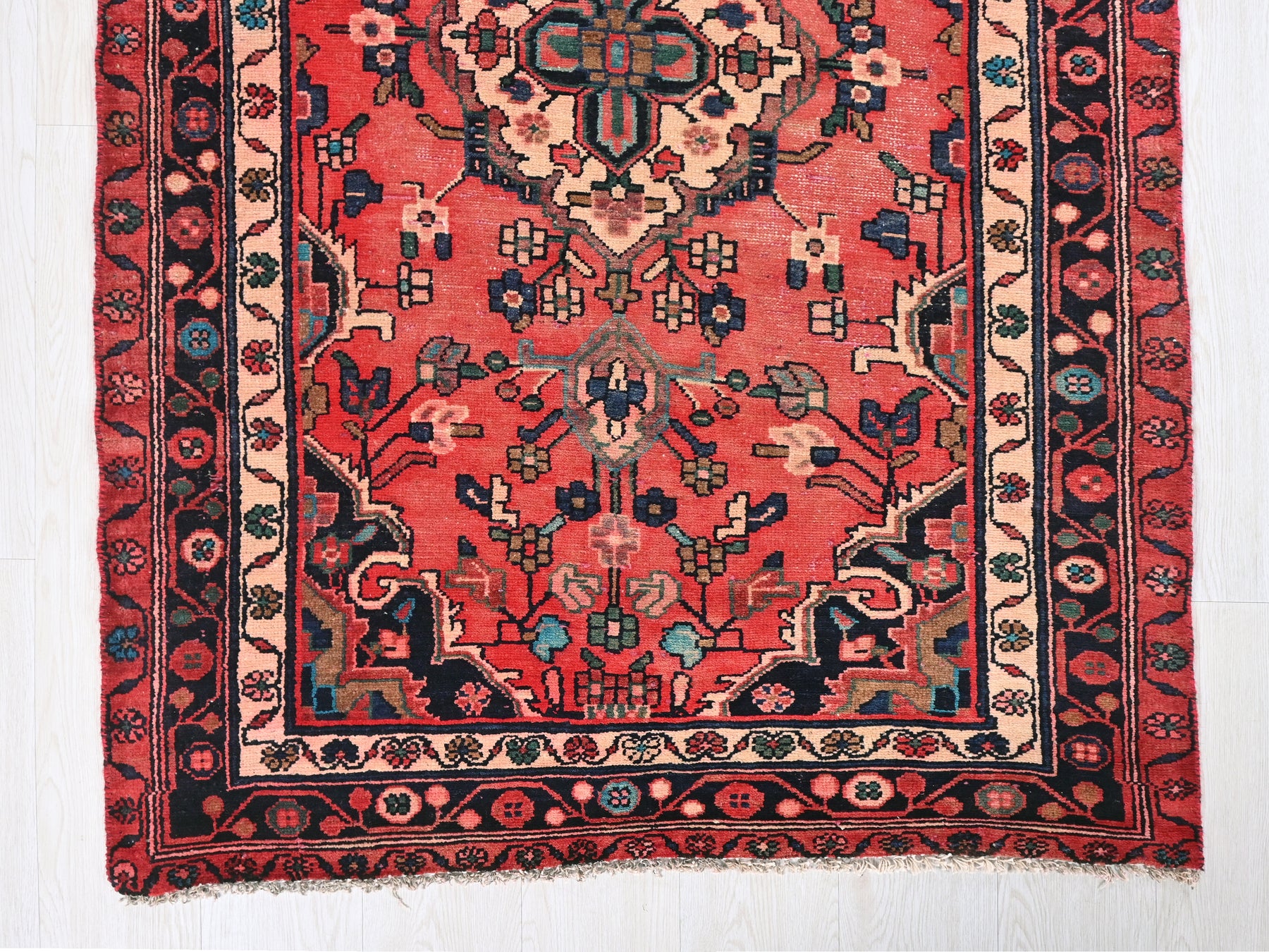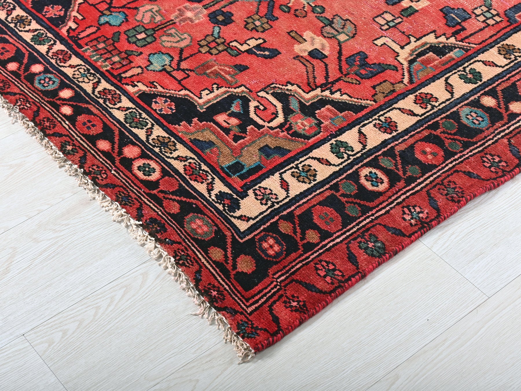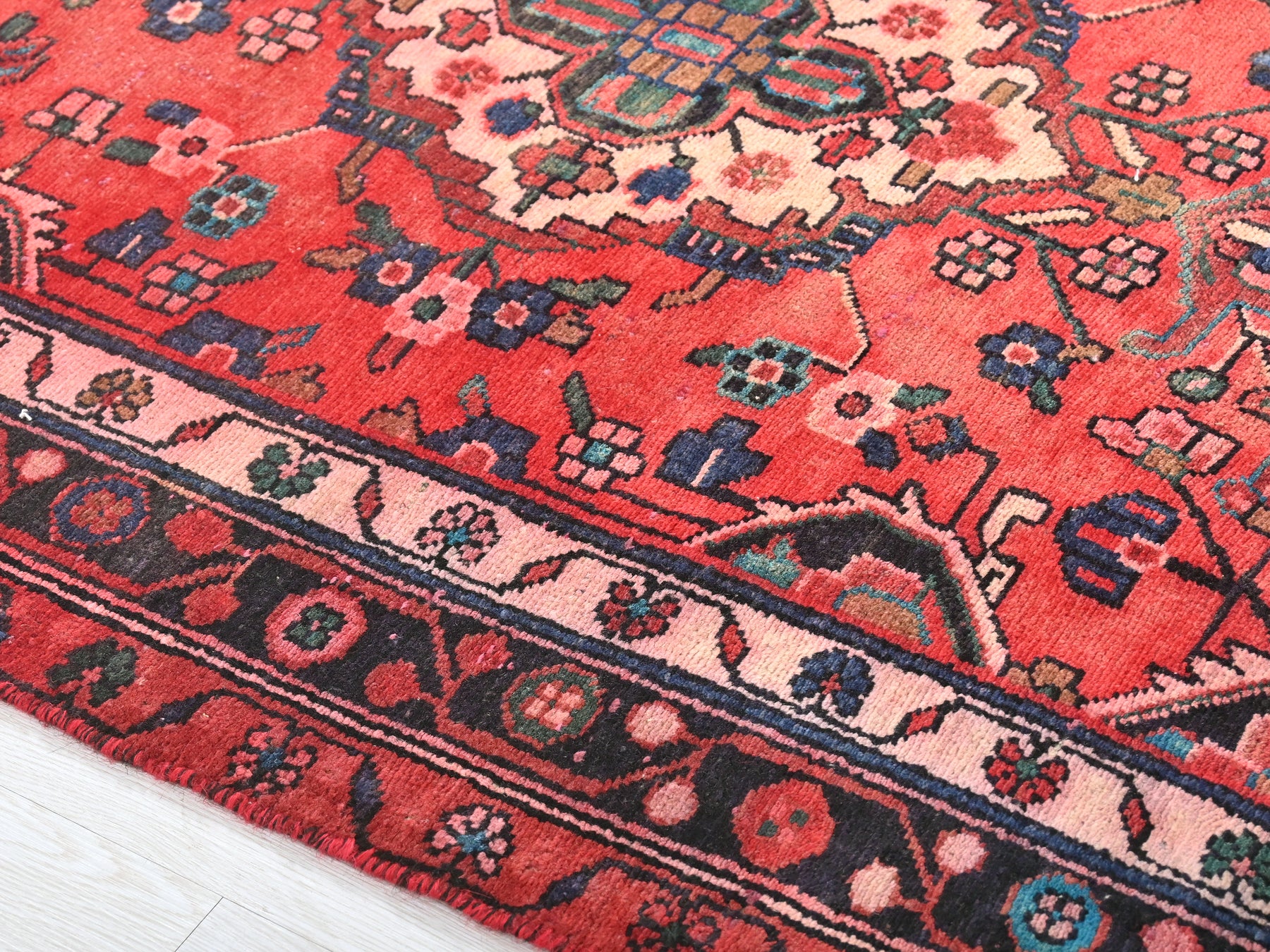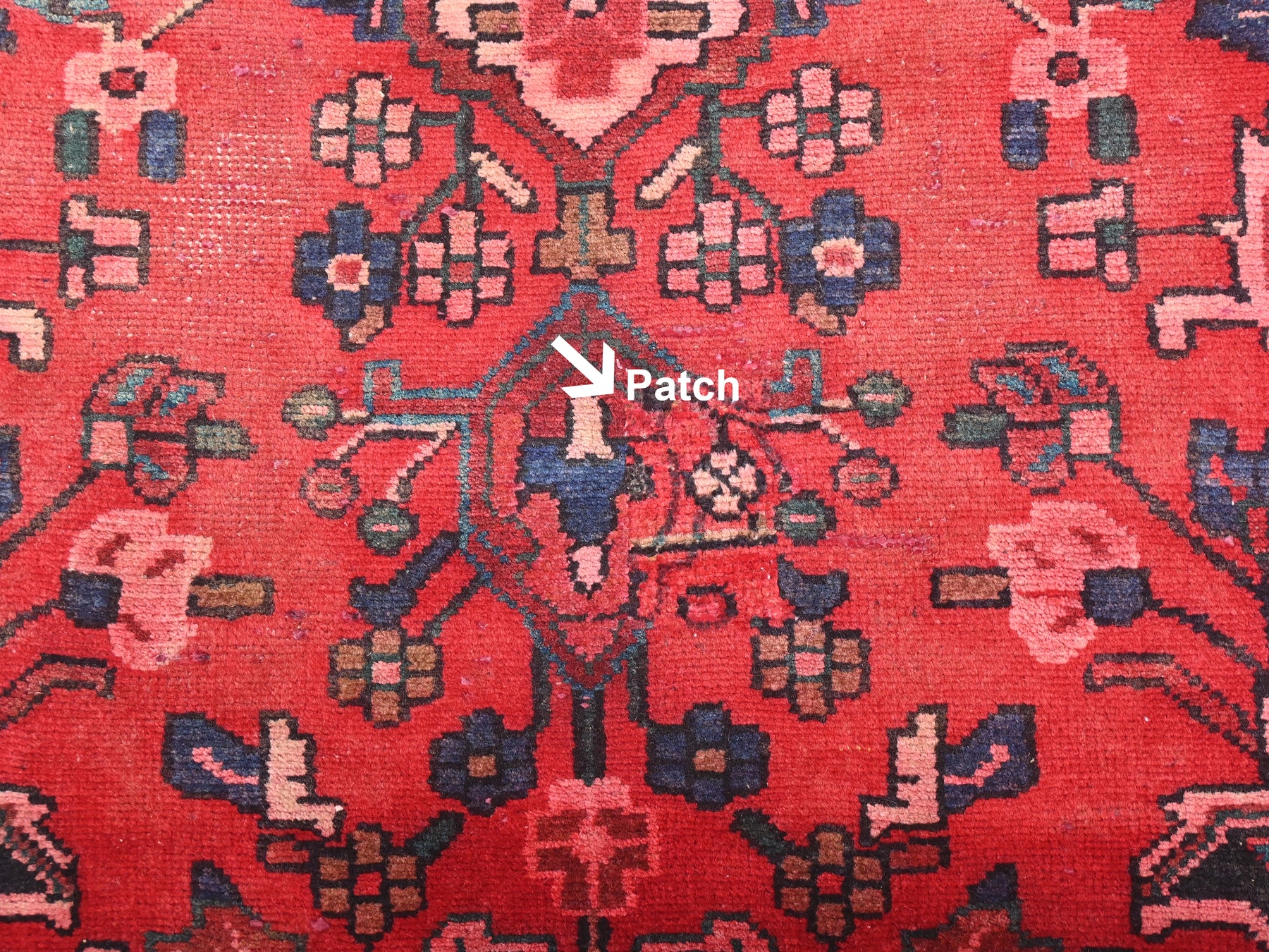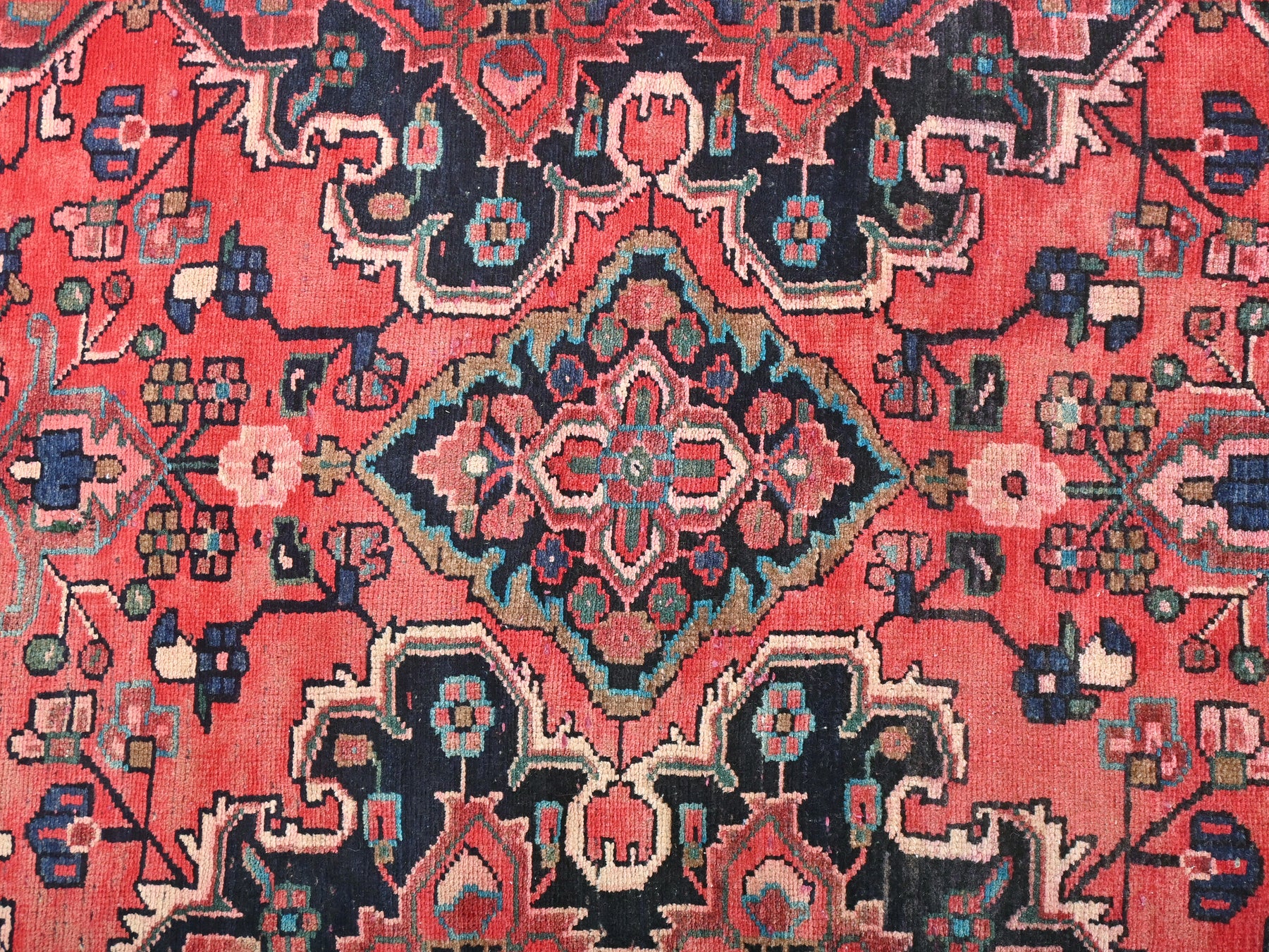 This is a hand-knotted, one-of-a-kind vintage rug. Due to the nature of this piece, there may be slight imperfections in its wear, shape, dimensions, and color. All of our rugs are professionally cleaned and repaired.
