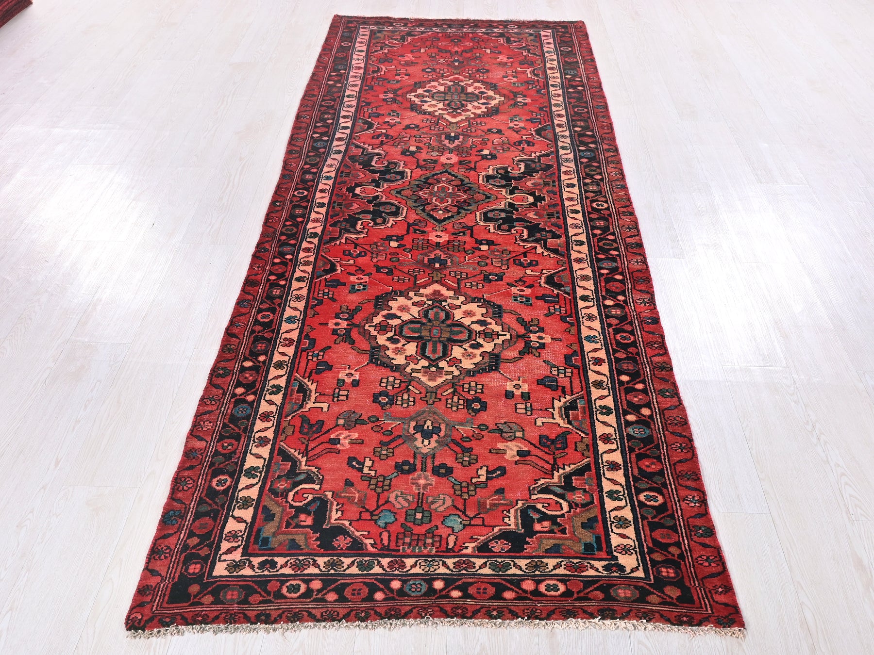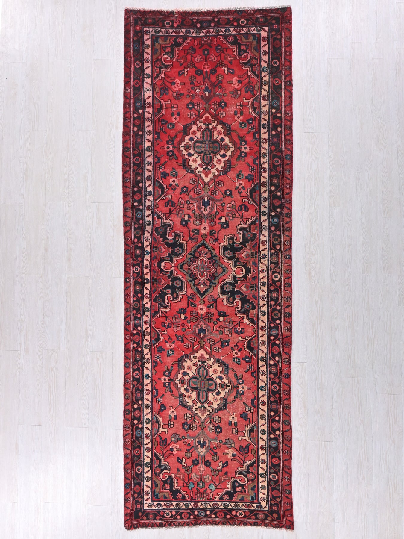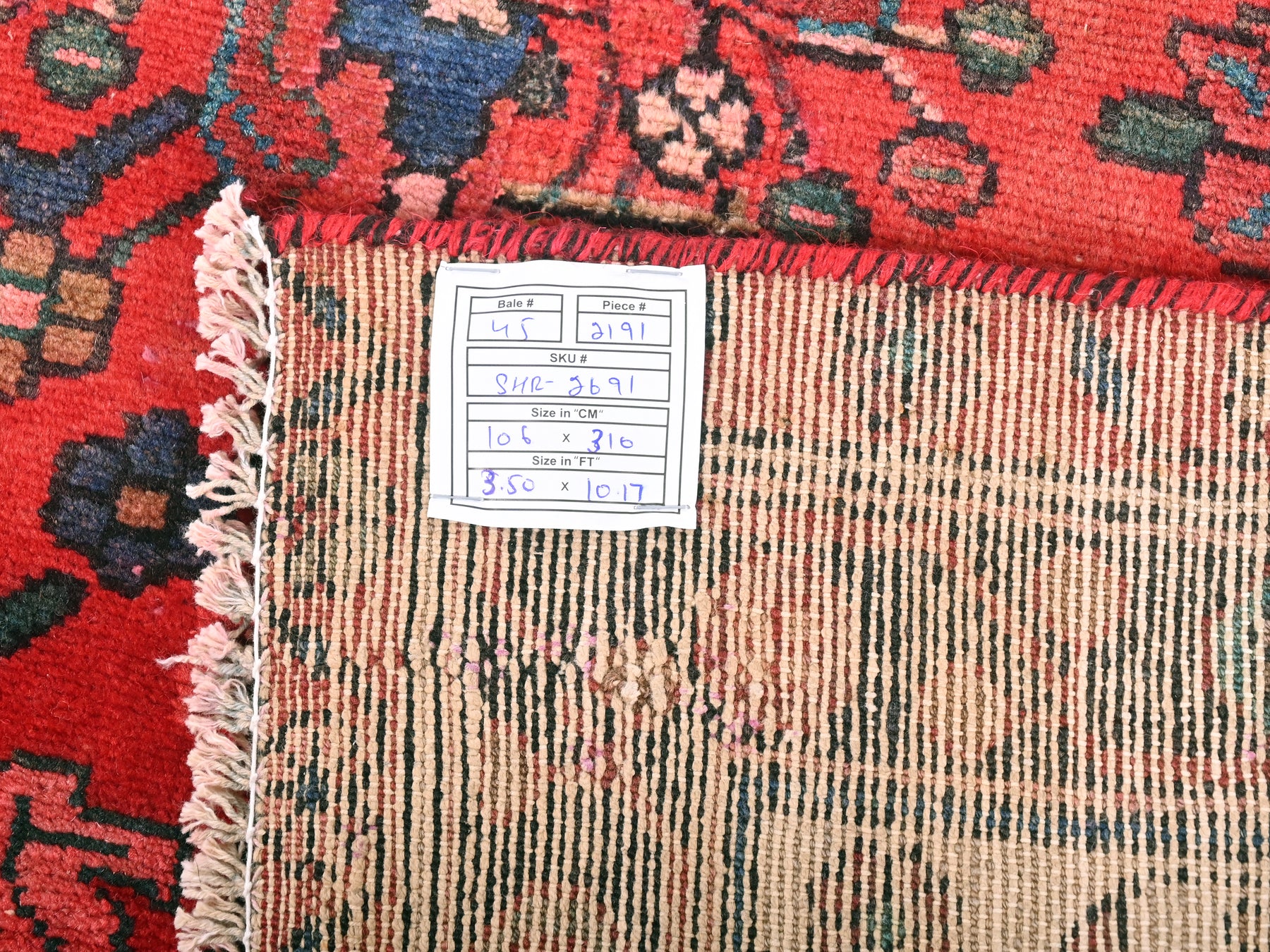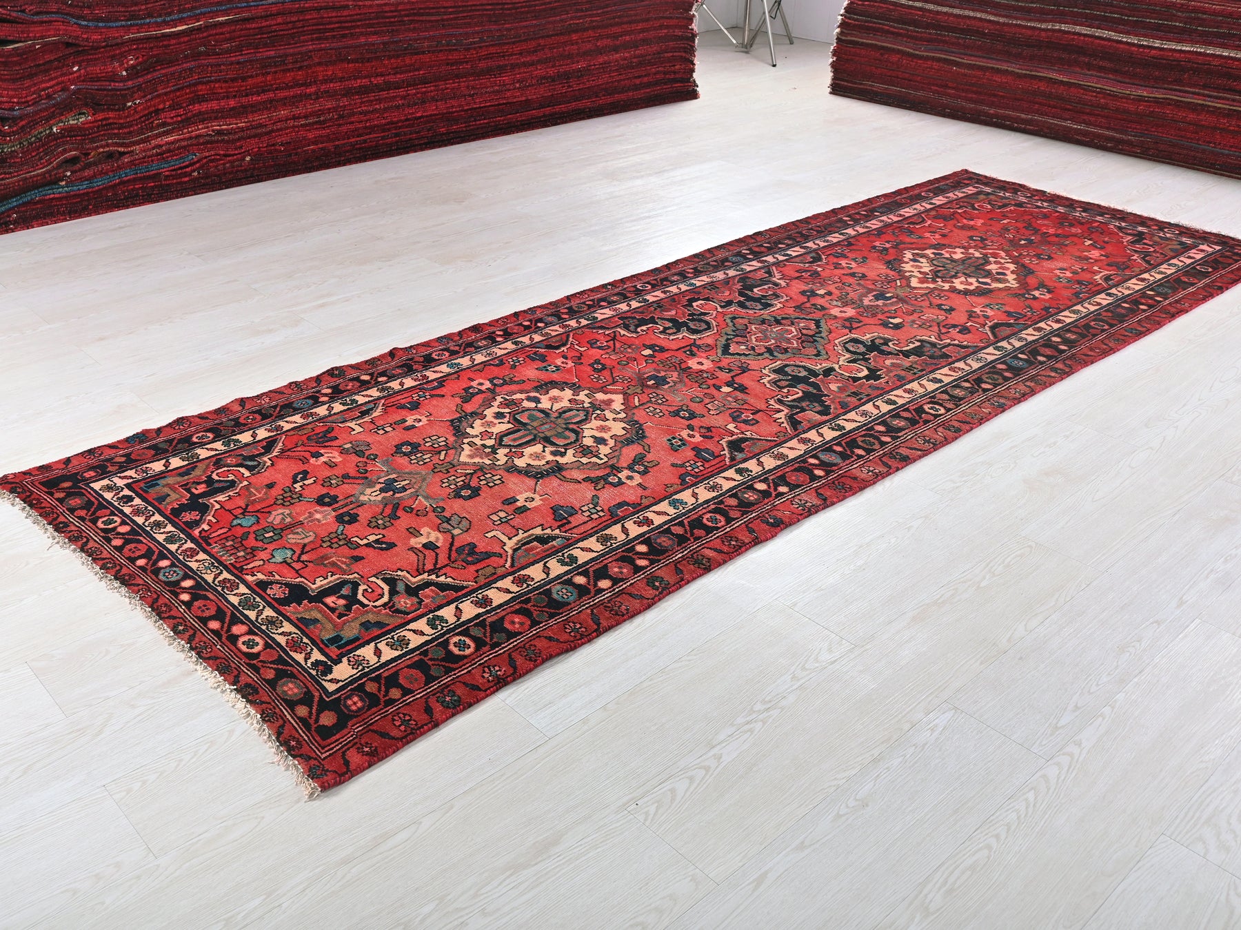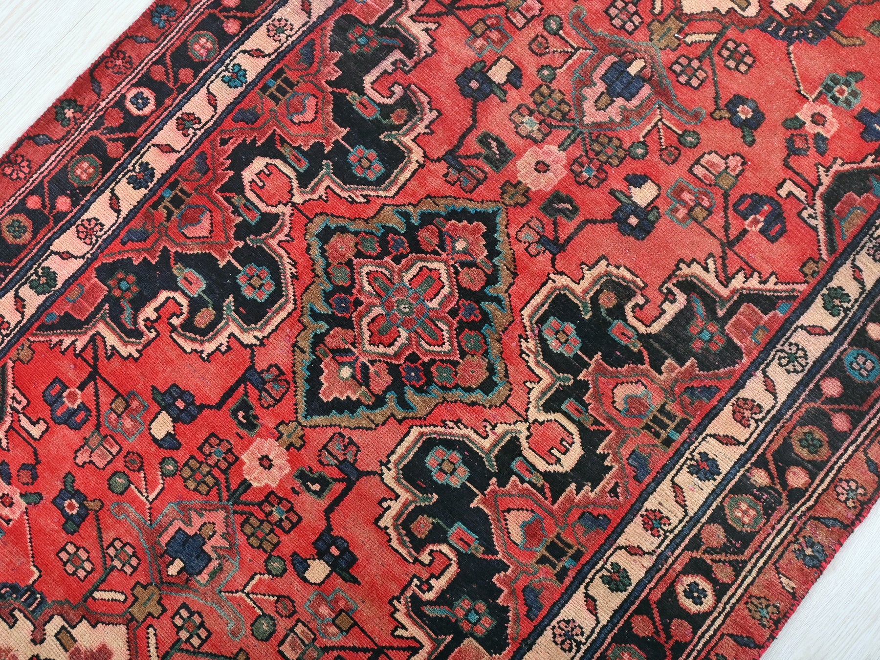 This is a hand-knotted, one-of-a-kind vintage rug. Due to the nature of this piece, there may be slight imperfections in its wear, shape, dimensions, and color. All of our rugs are professionally cleaned and repaired.
