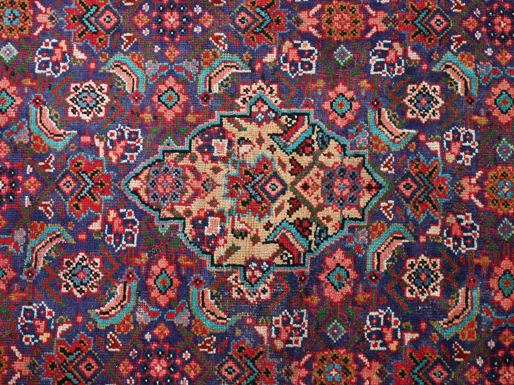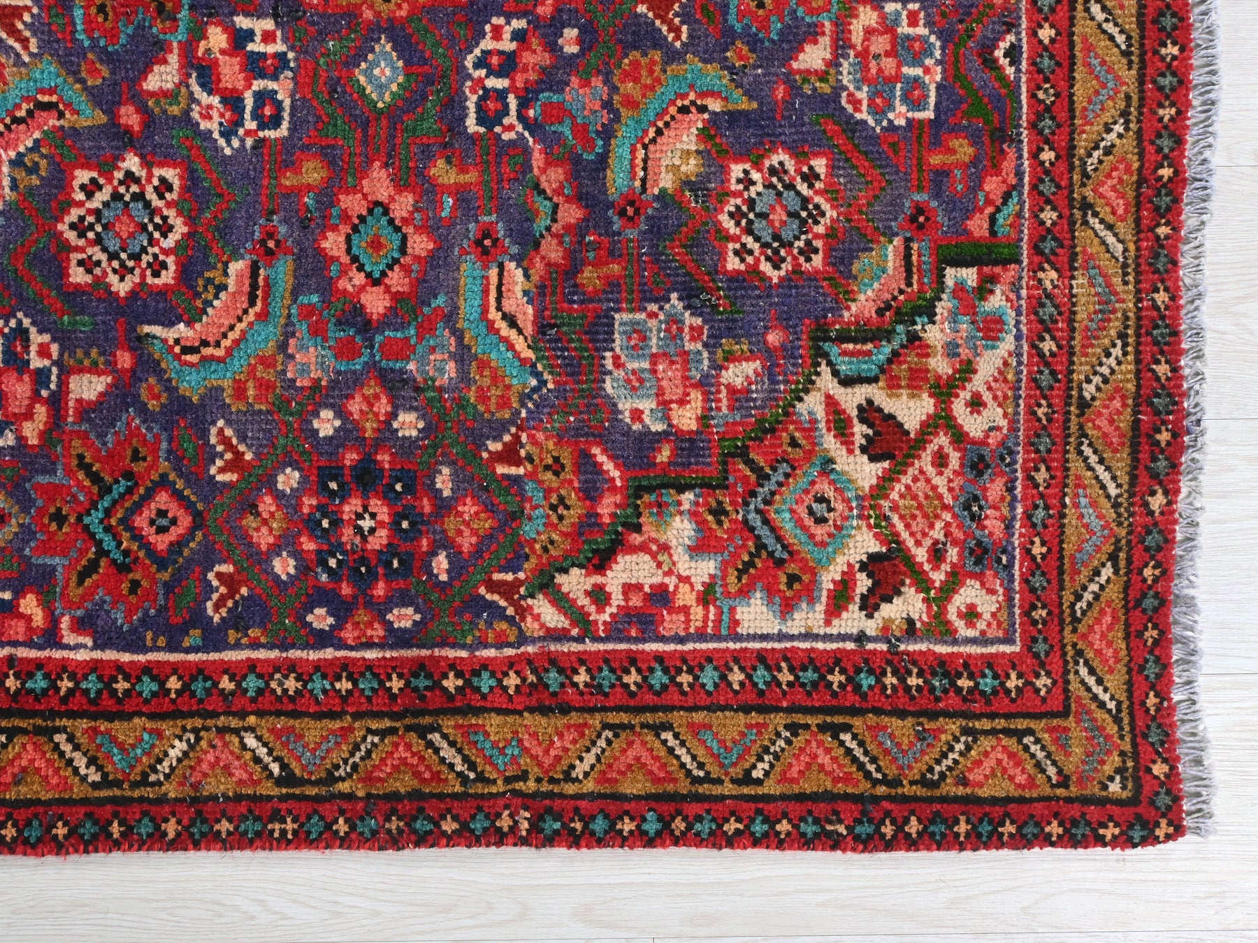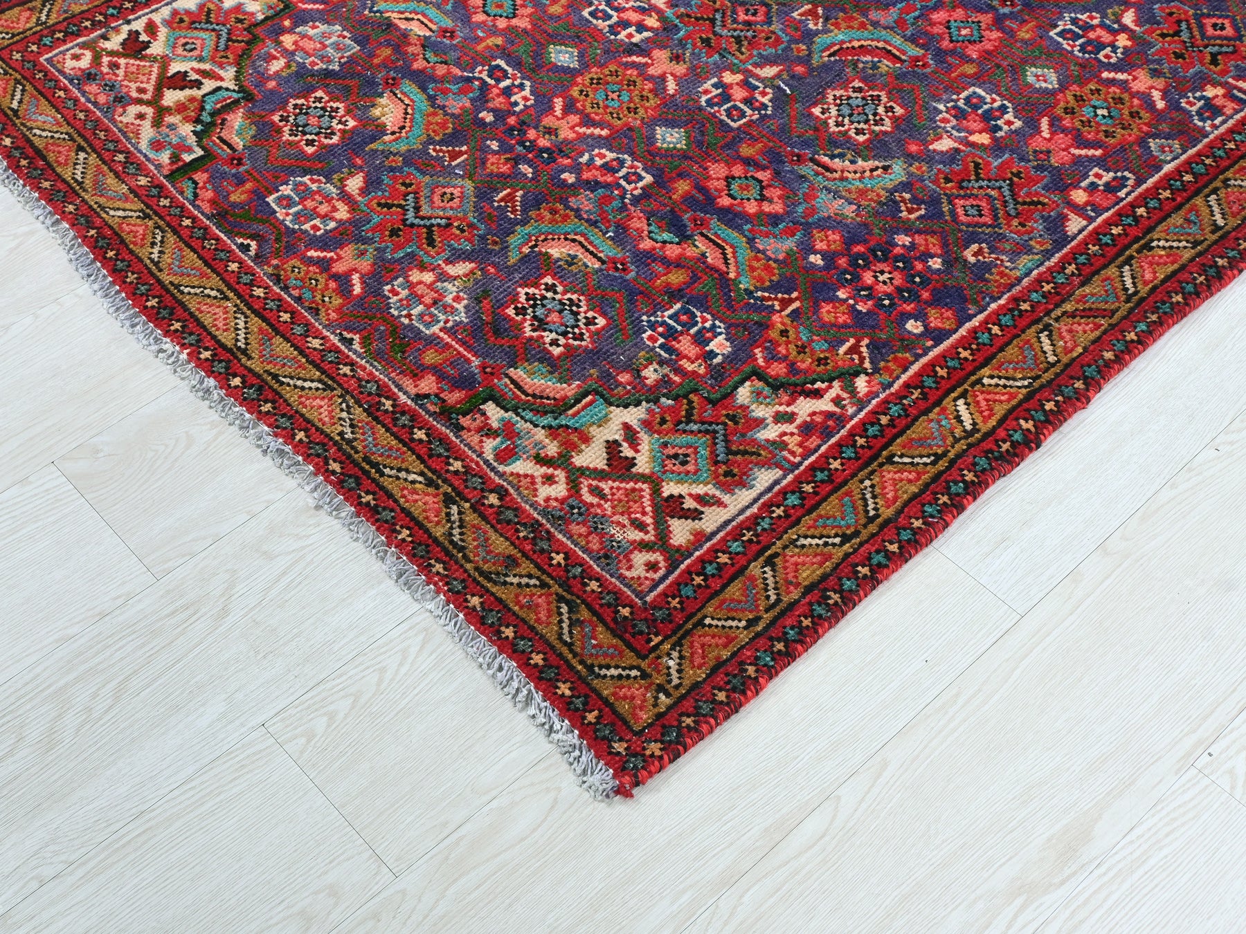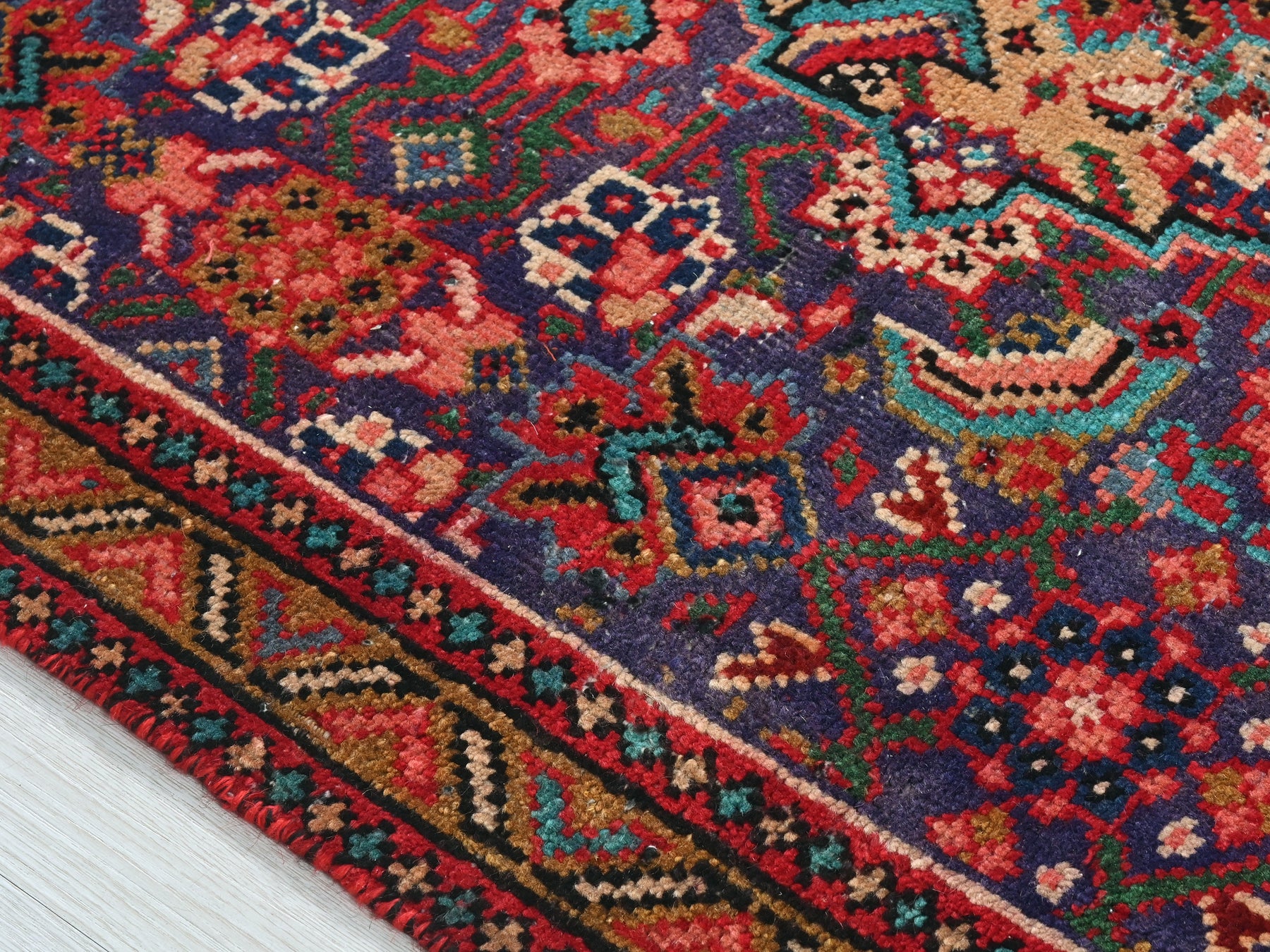 This is a hand-knotted, one-of-a-kind vintage rug. Due to the nature of this piece, there may be slight imperfections in its wear, shape, dimensions, and color. All of our rugs are professionally cleaned and repaired.