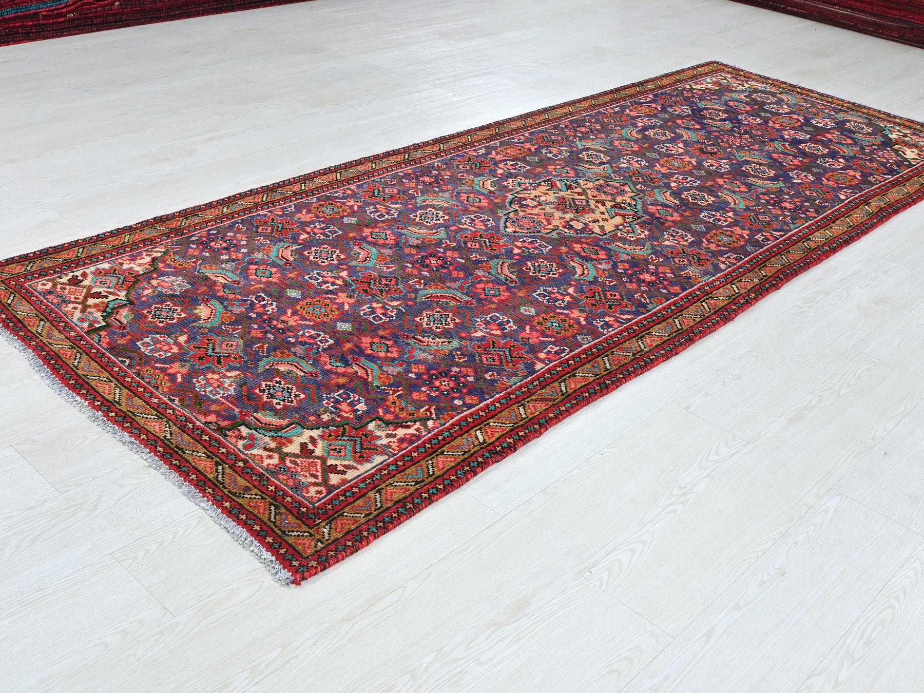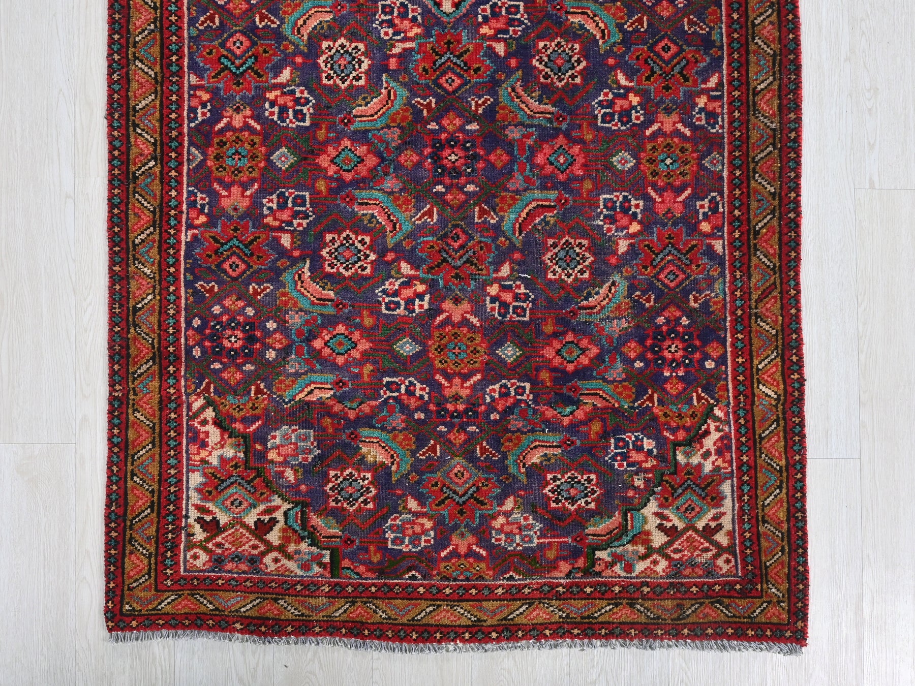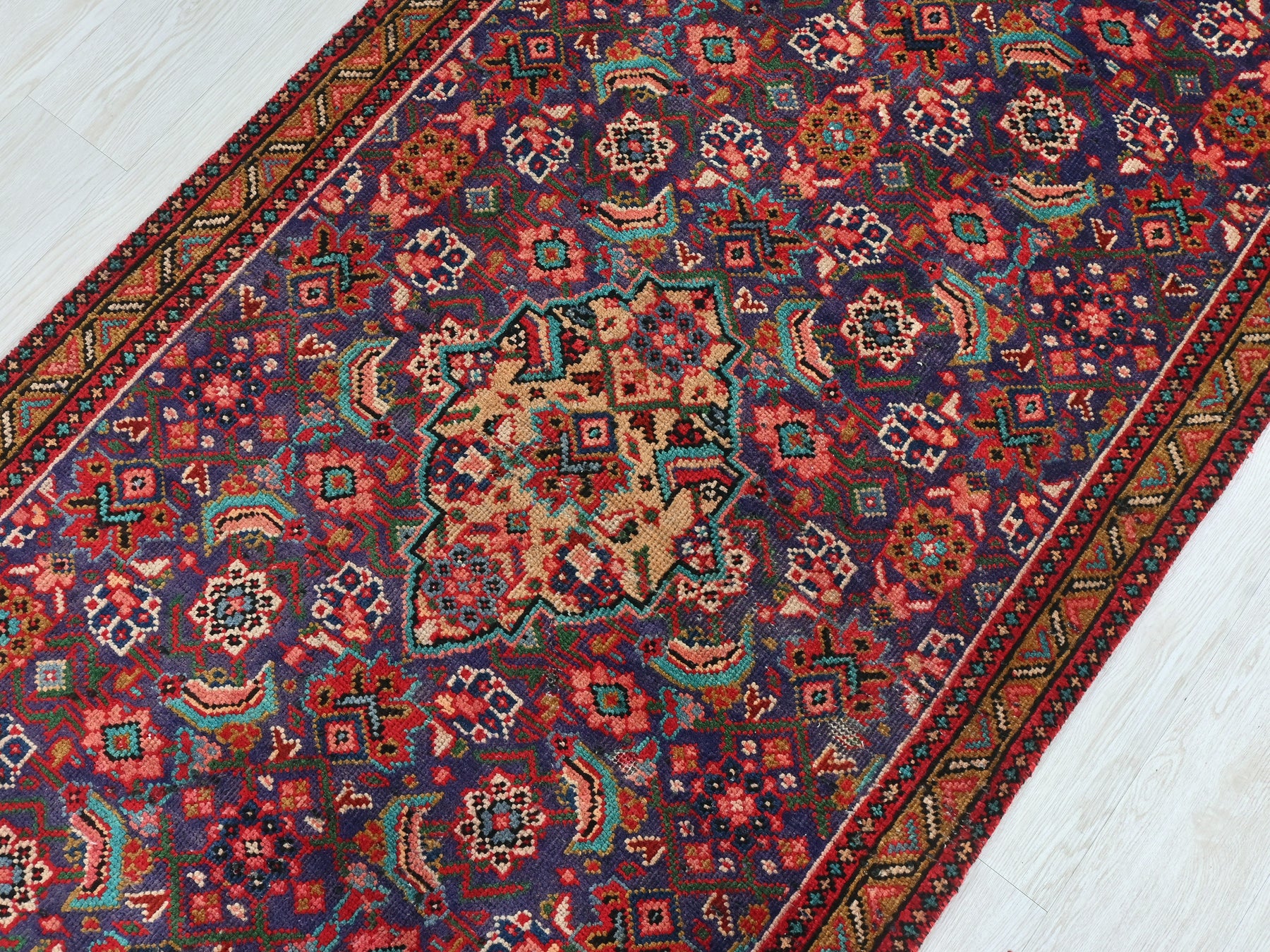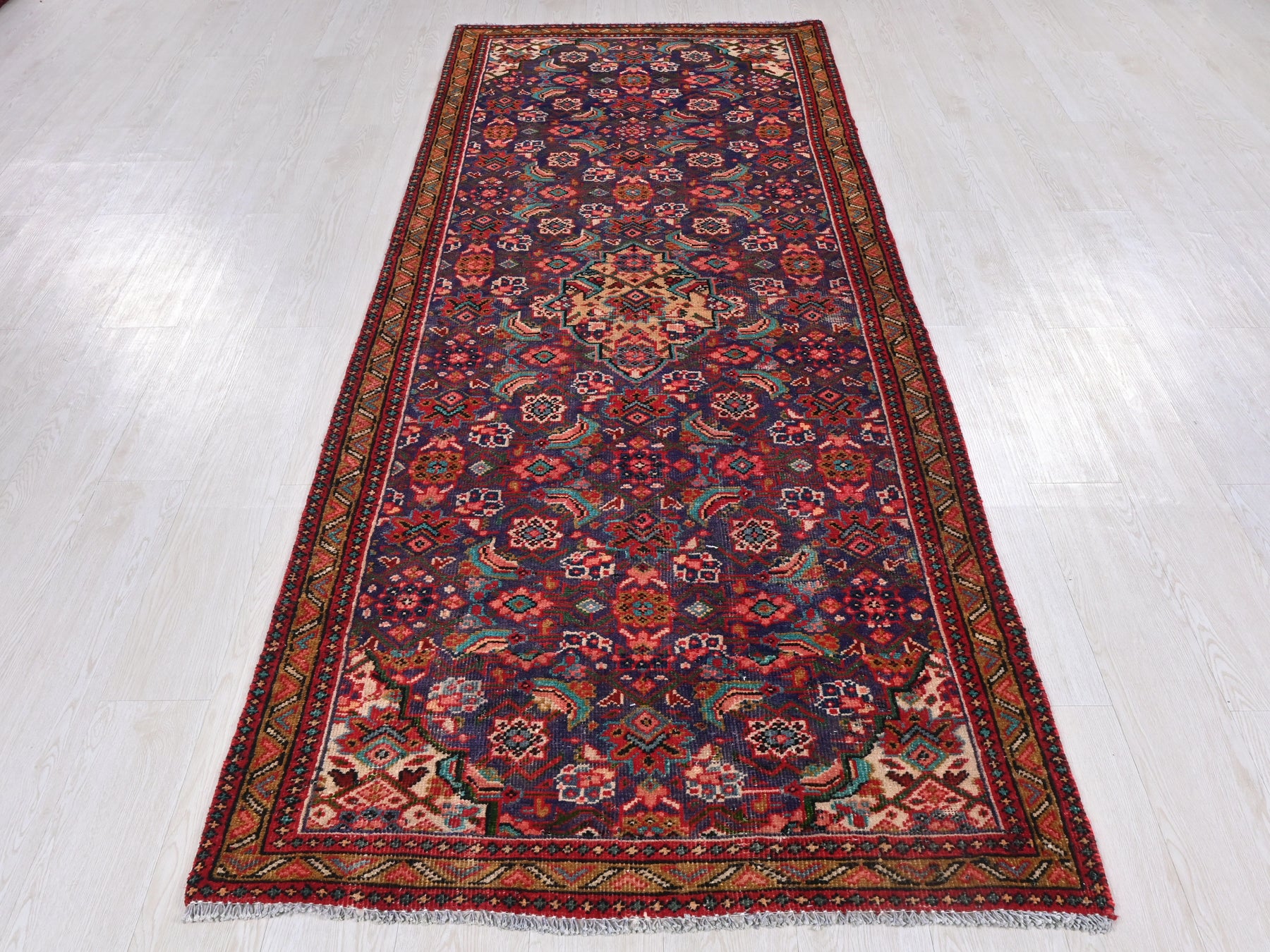 This is a hand-knotted, one-of-a-kind vintage rug. Due to the nature of this piece, there may be slight imperfections in its wear, shape, dimensions, and color. All of our rugs are professionally cleaned and repaired.
