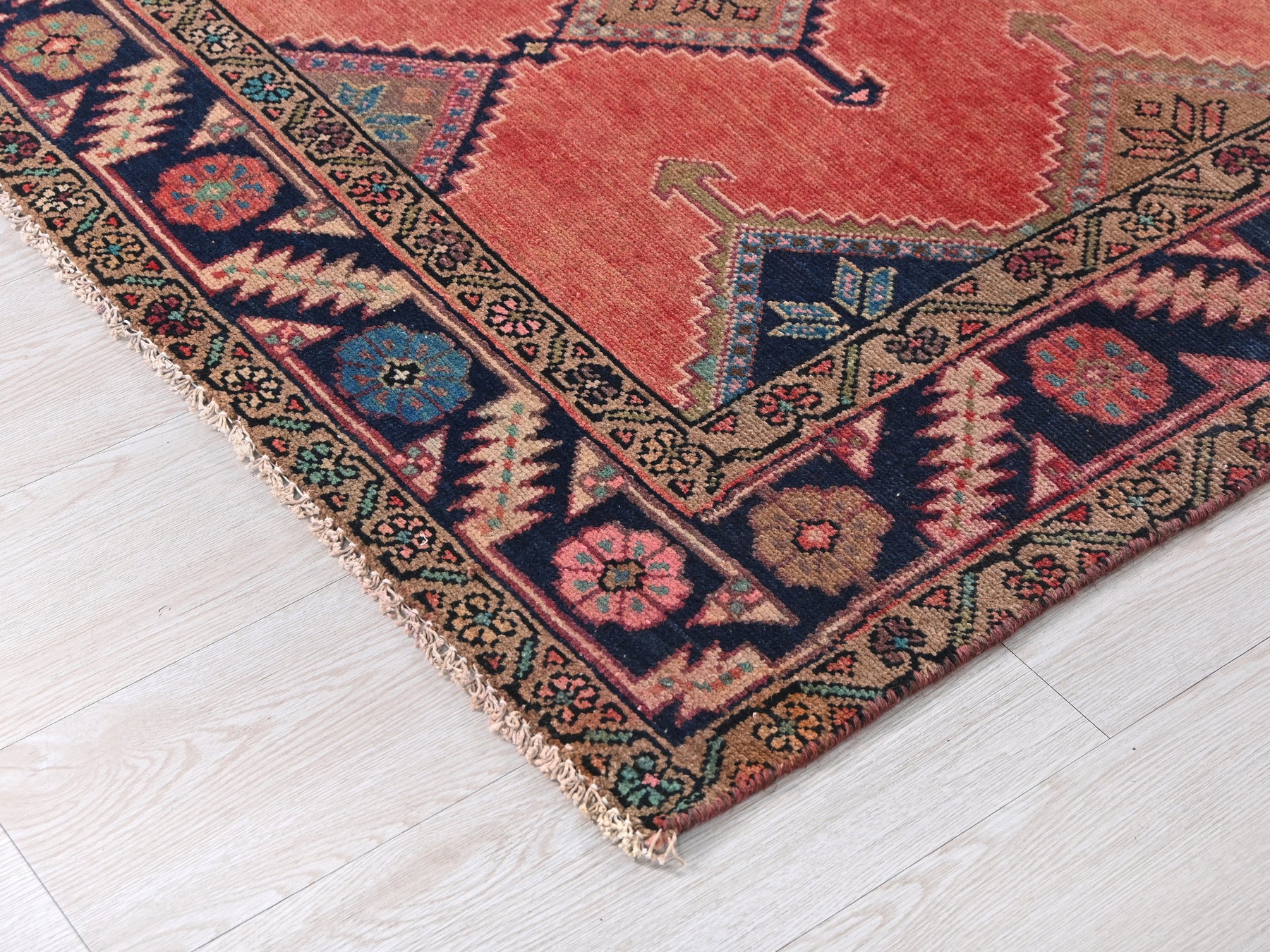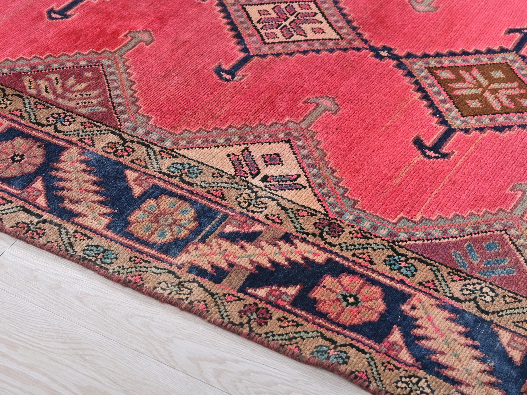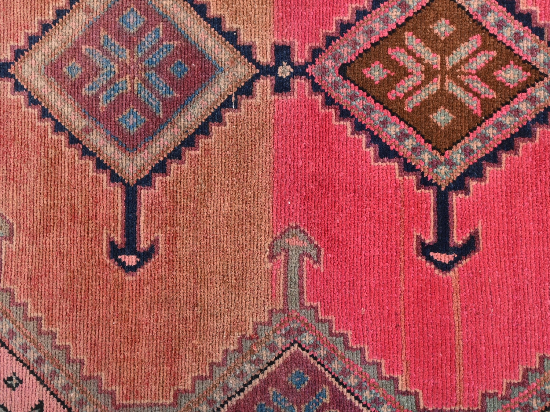 This is a hand-knotted, one-of-a-kind vintage rug. Due to the nature of this piece, there may be slight imperfections in its wear, shape, dimensions, and color. All of our rugs are professionally cleaned and repaired.