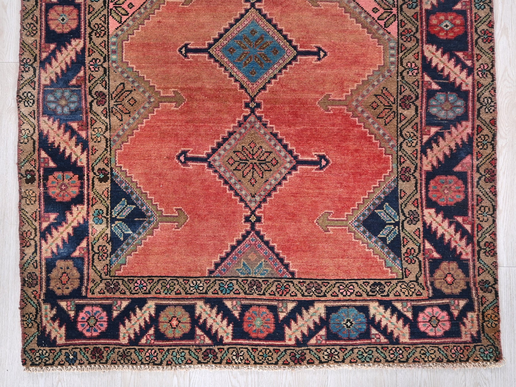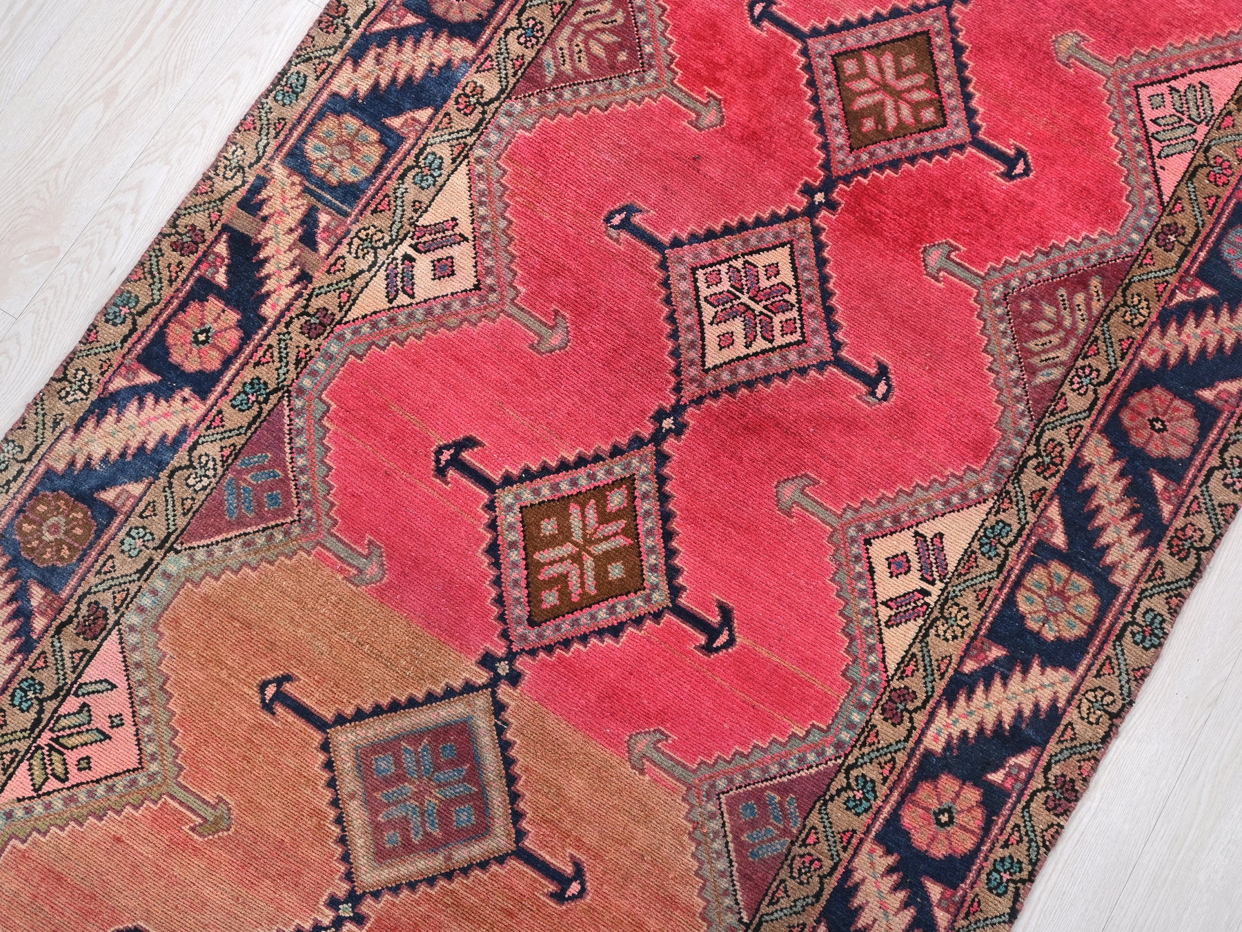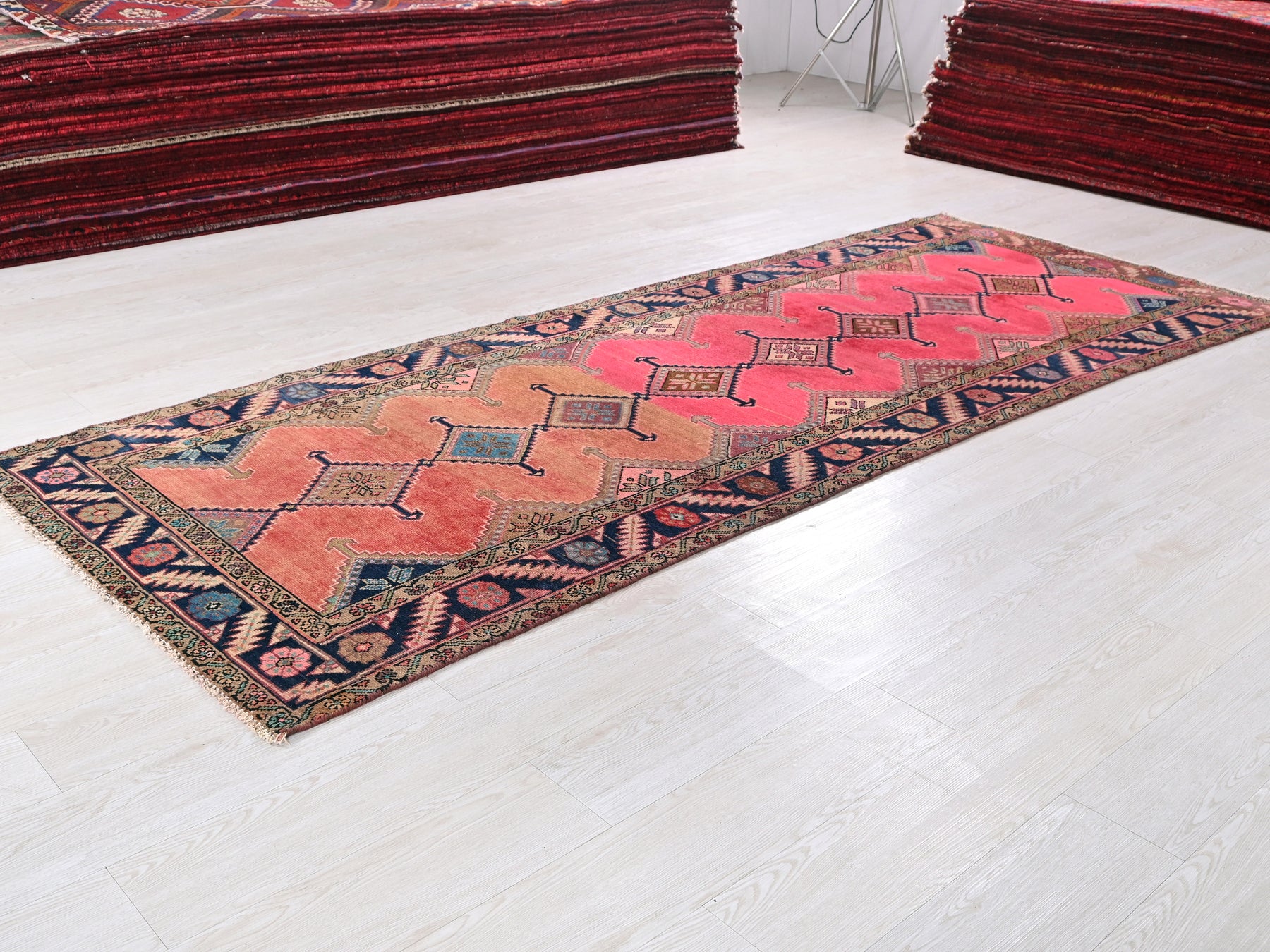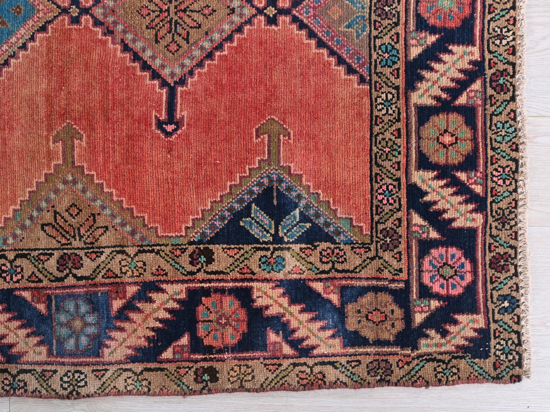 This is a hand-knotted, one-of-a-kind vintage rug. Due to the nature of this piece, there may be slight imperfections in its wear, shape, dimensions, and color. All of our rugs are professionally cleaned and repaired.