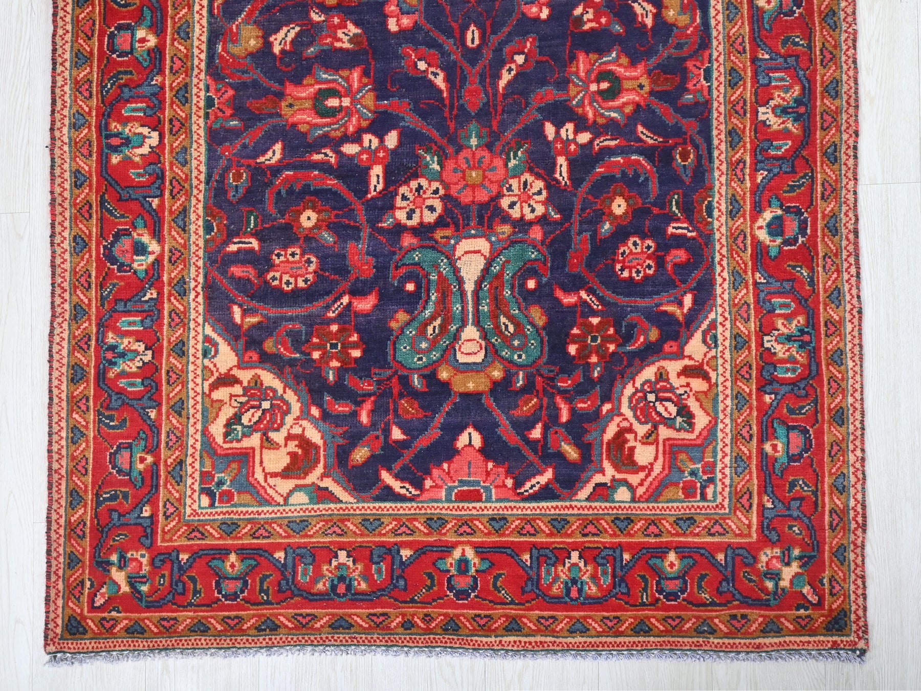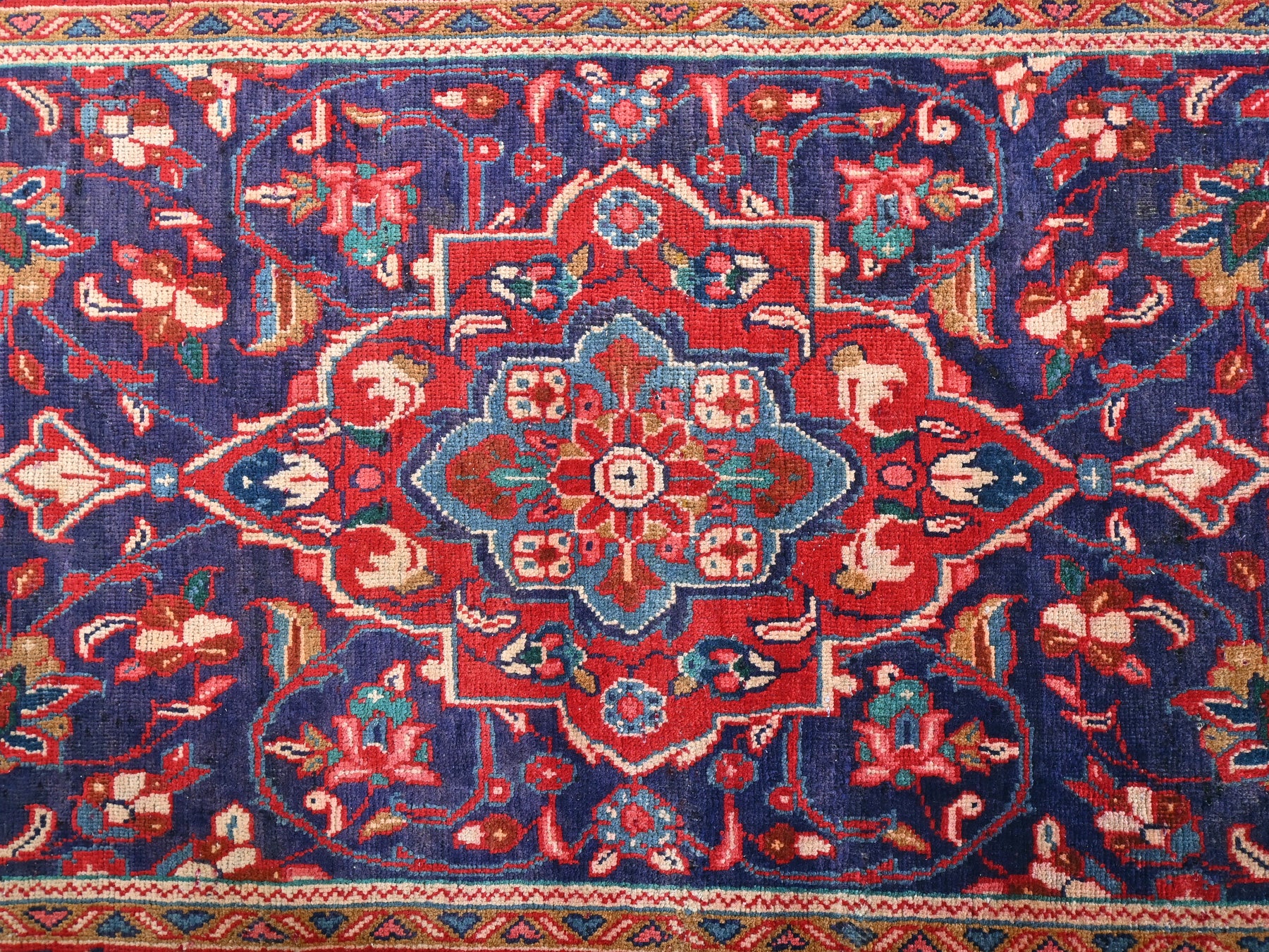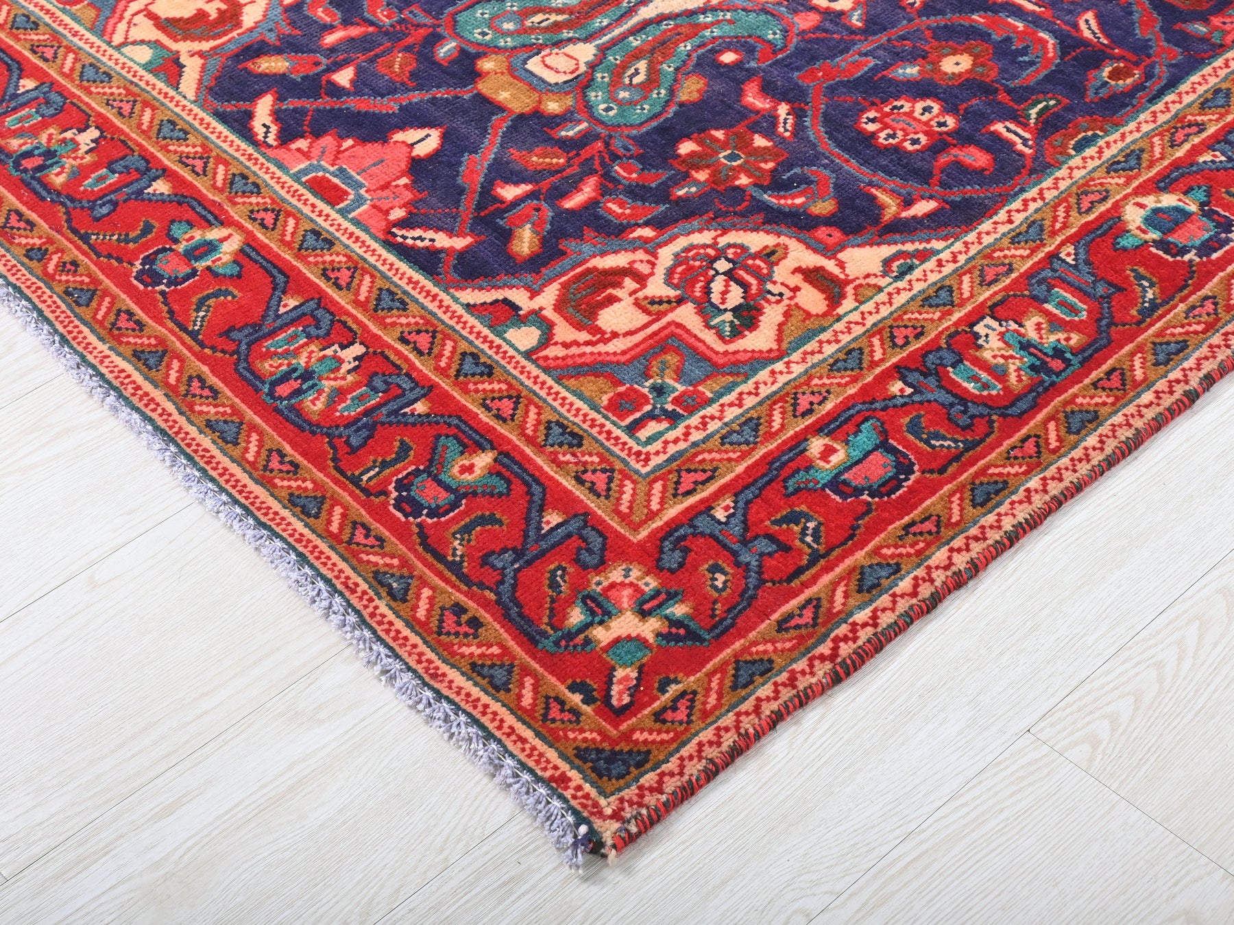 This is a hand-knotted, one-of-a-kind vintage rug. Due to the nature of this piece, there may be slight imperfections in its wear, shape, dimensions, and color. All of our rugs are professionally cleaned and repaired.