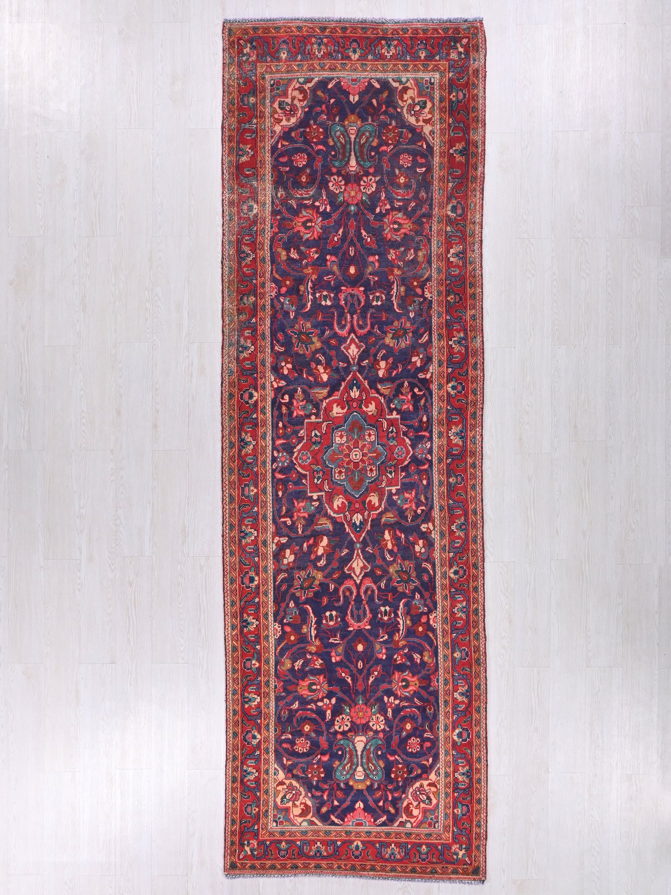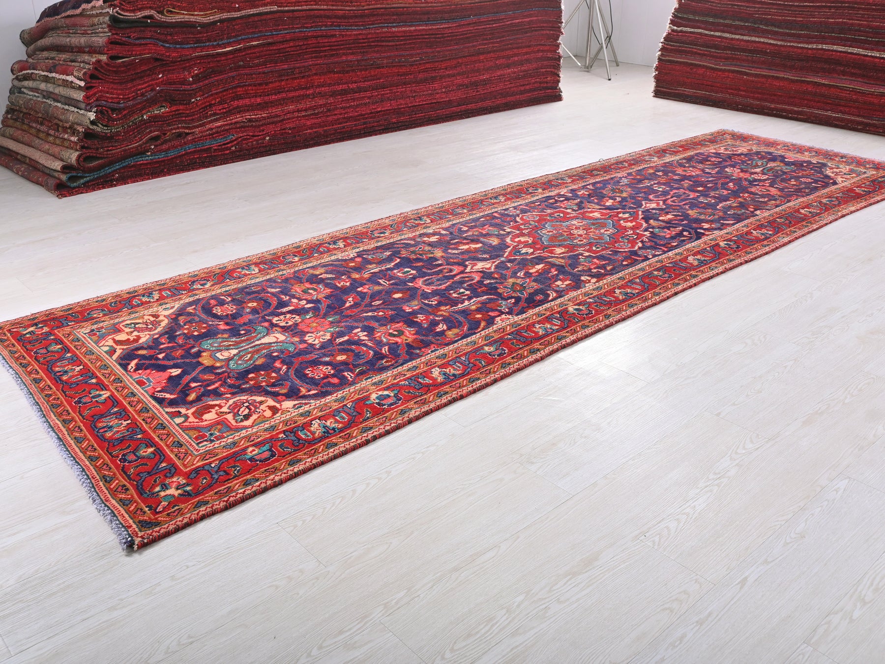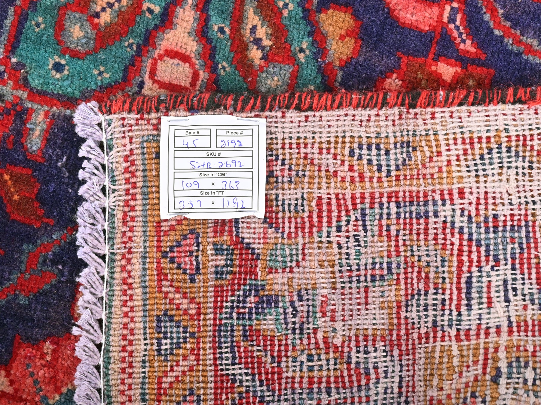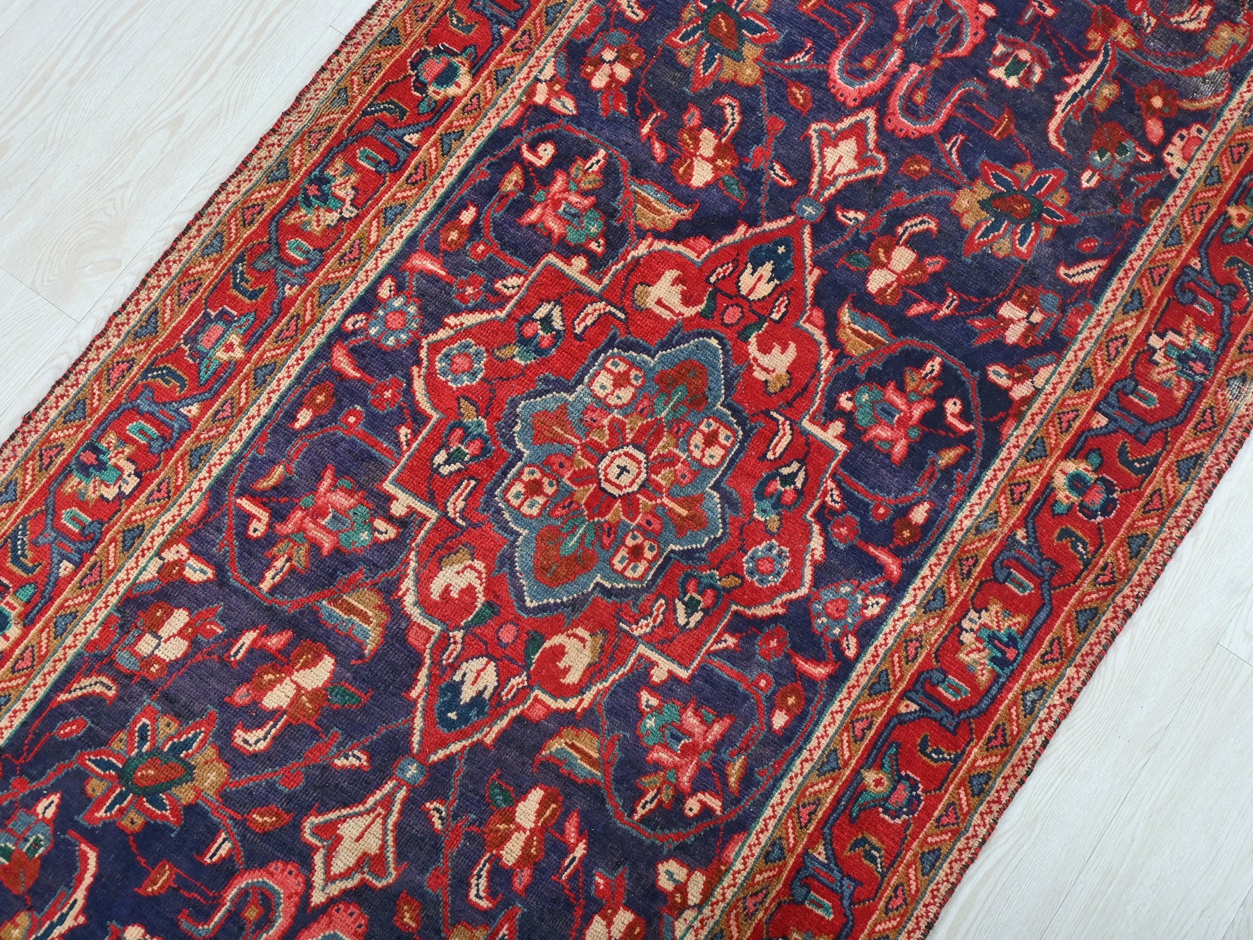 This is a hand-knotted, one-of-a-kind vintage rug. Due to the nature of this piece, there may be slight imperfections in its wear, shape, dimensions, and color. All of our rugs are professionally cleaned and repaired.