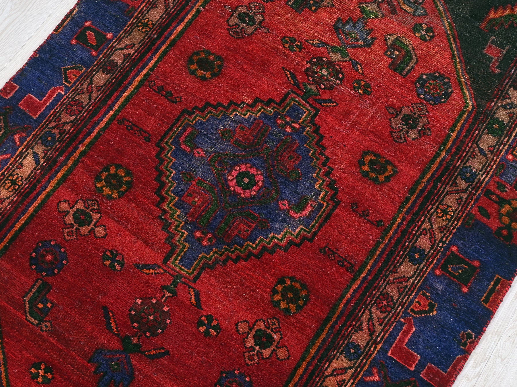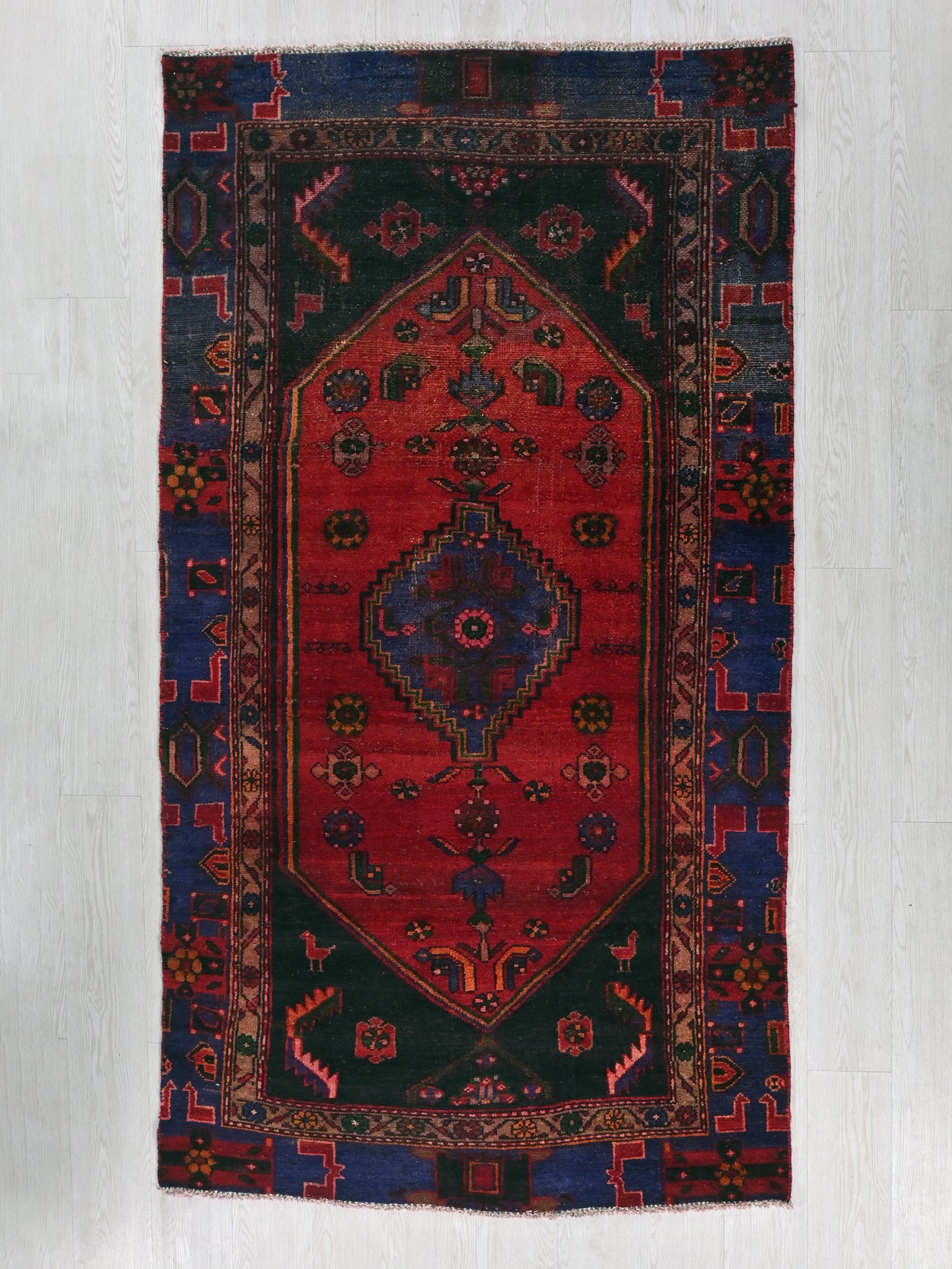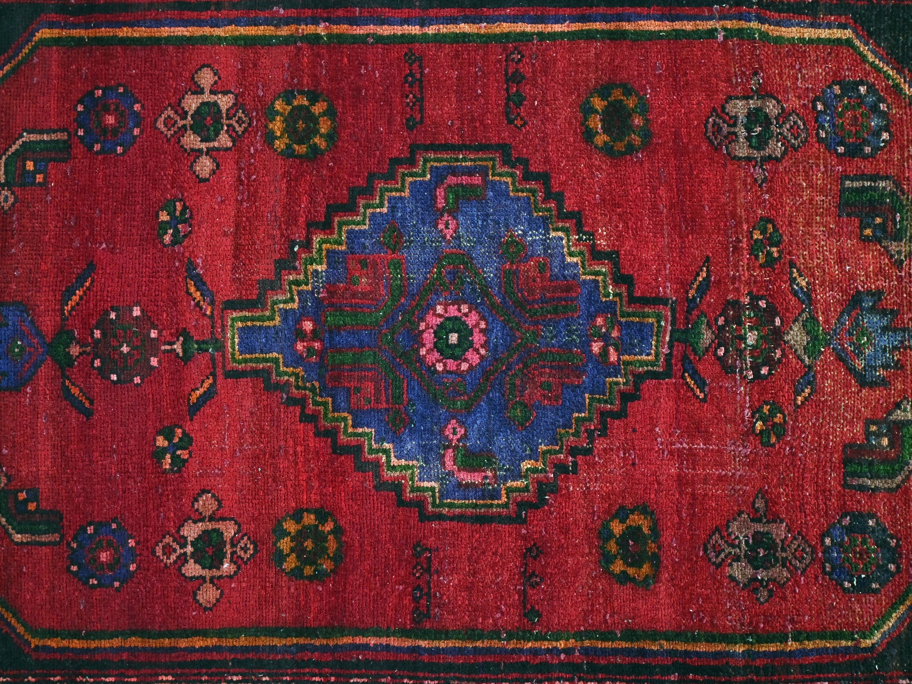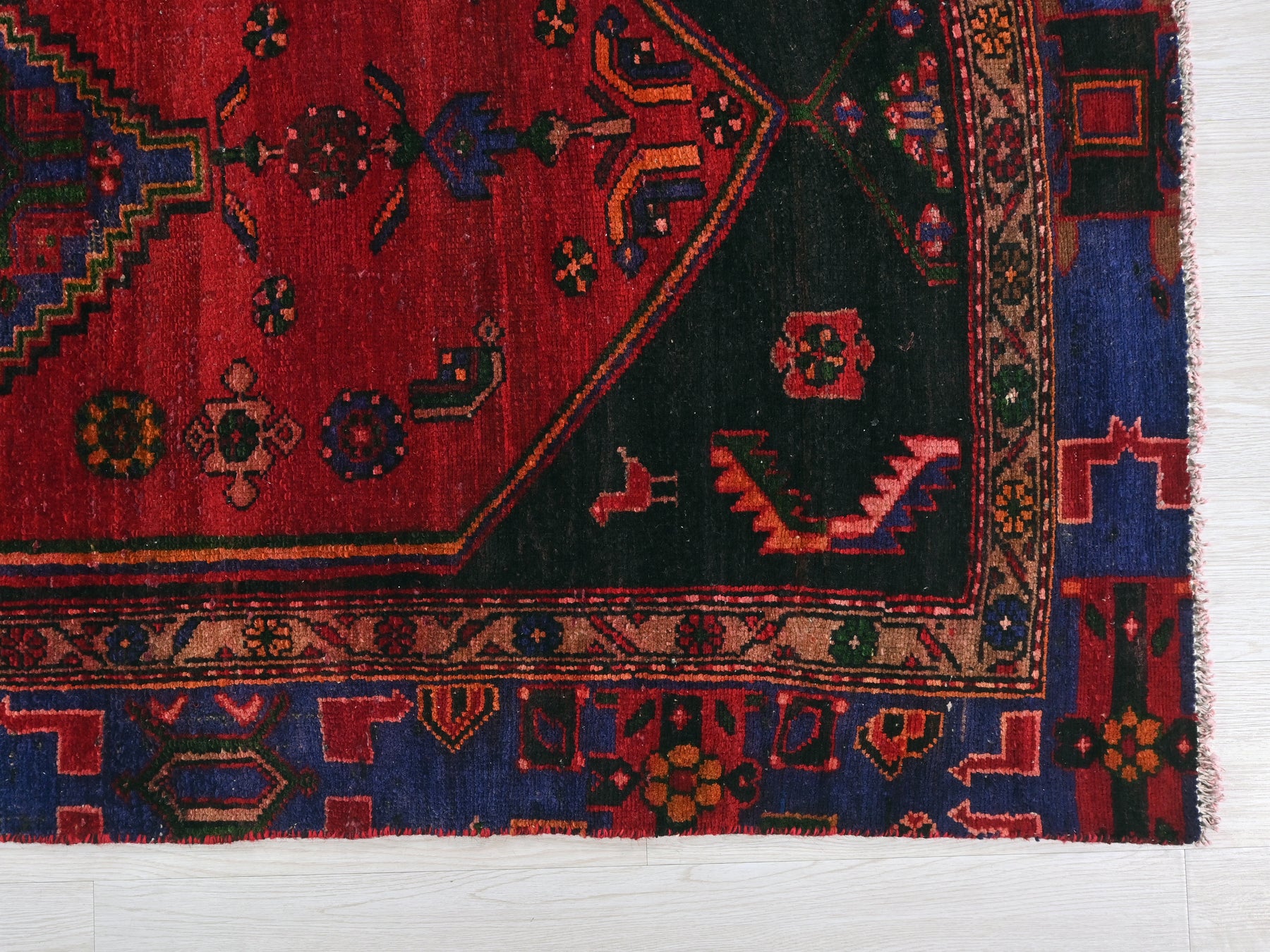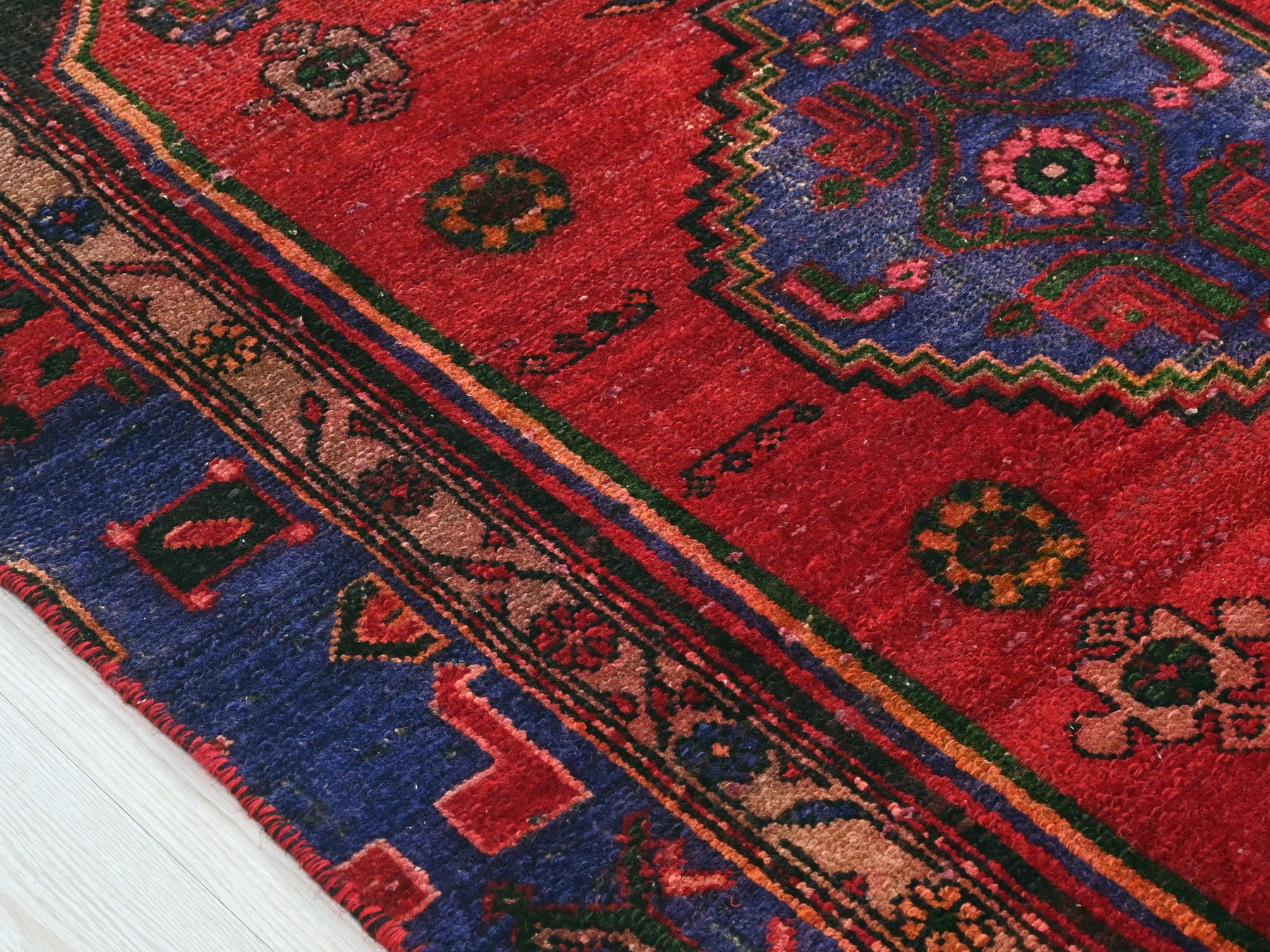This is a hand-knotted, one-of-a-kind vintage rug. Due to the nature of this piece, there may be slight imperfections in its wear, shape, dimensions, and color. All of our rugs are professionally cleaned and repaired.
