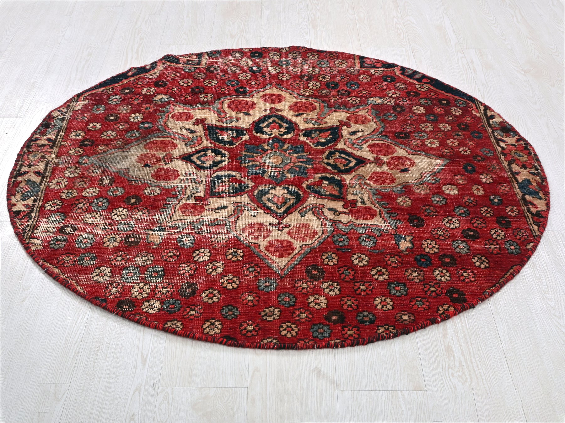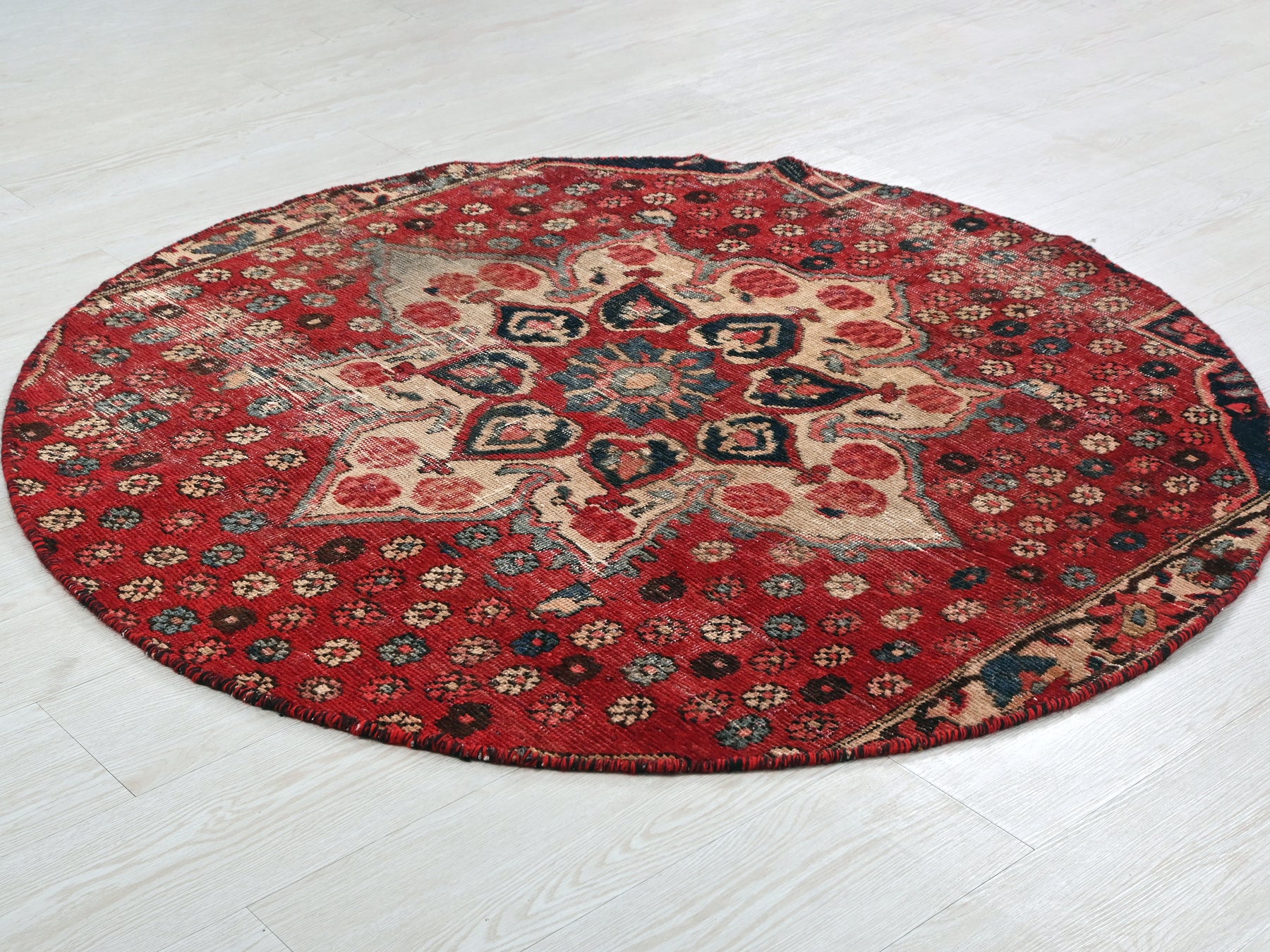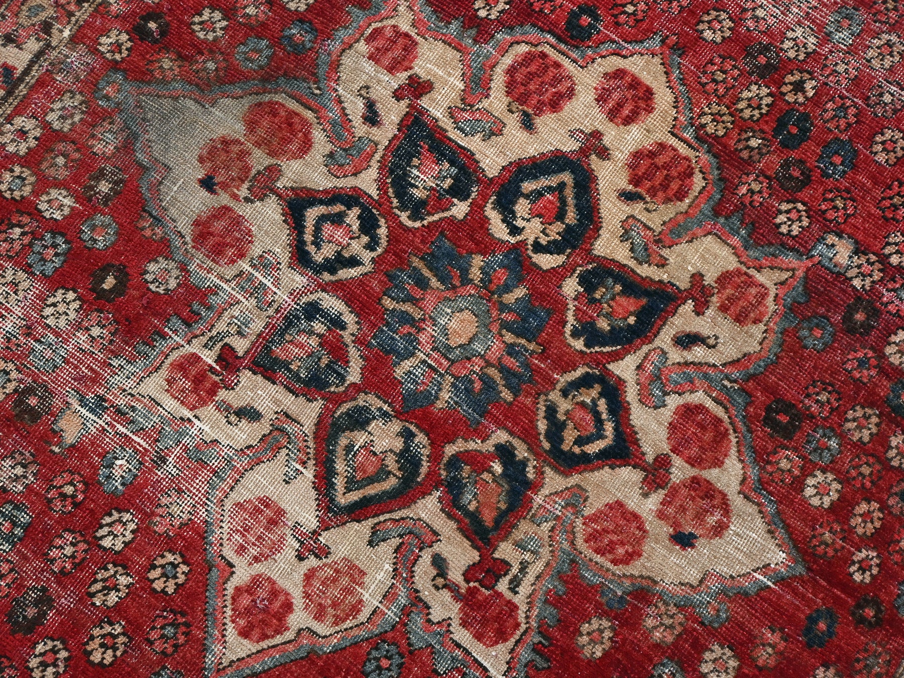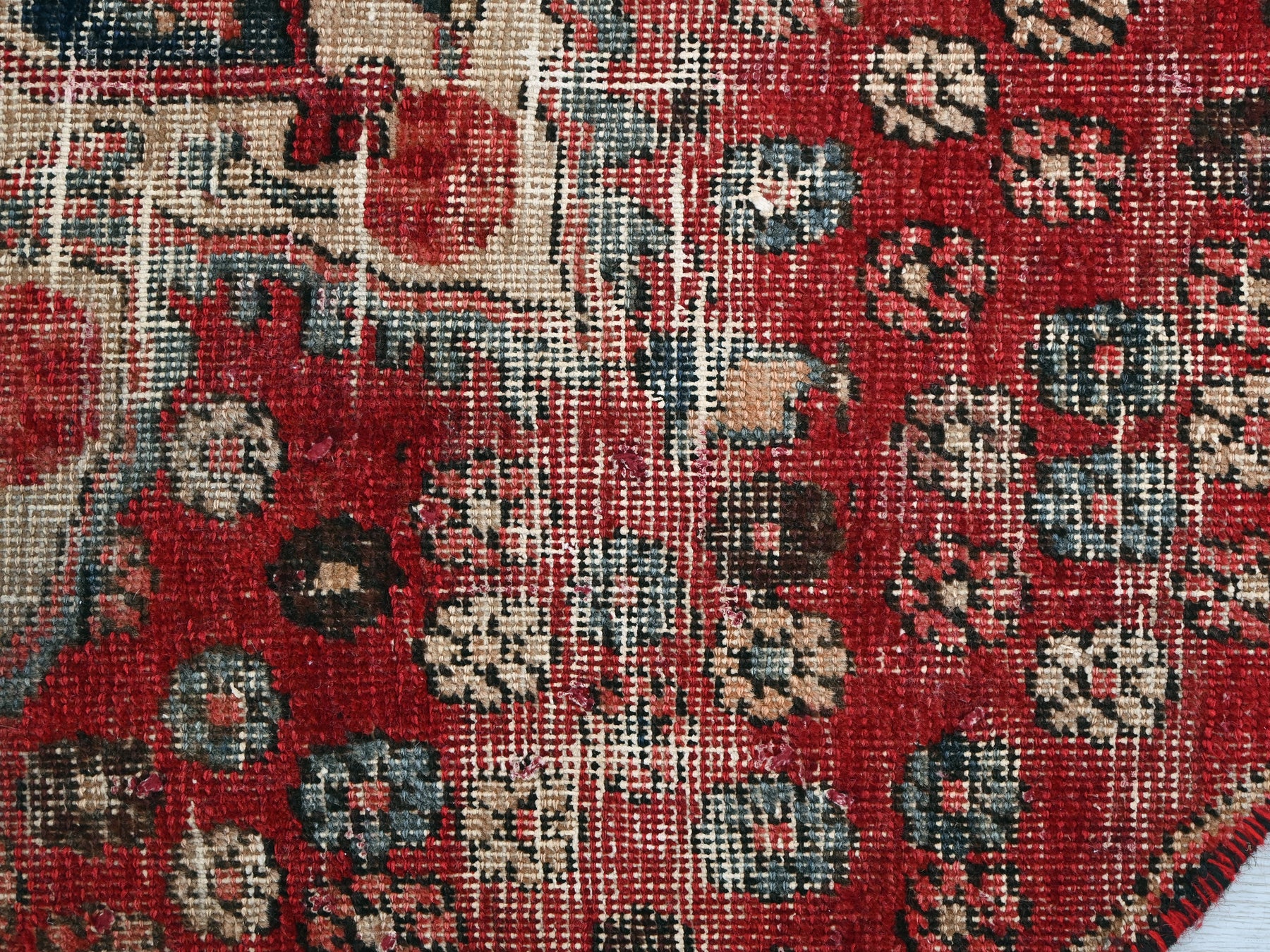This is a hand-knotted, one-of-a-kind vintage rug. Due to the nature of this piece, there may be slight imperfections in its wear, shape, dimensions, and color. All of our rugs are professionally cleaned and repaired.