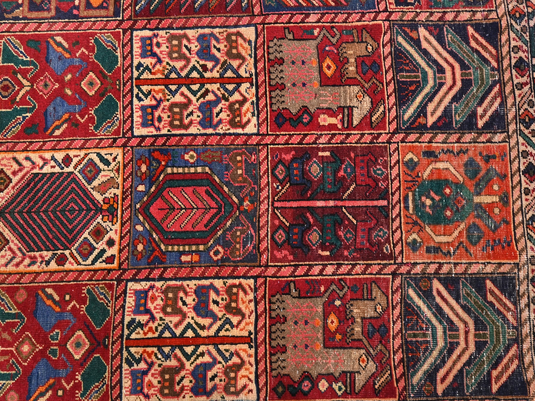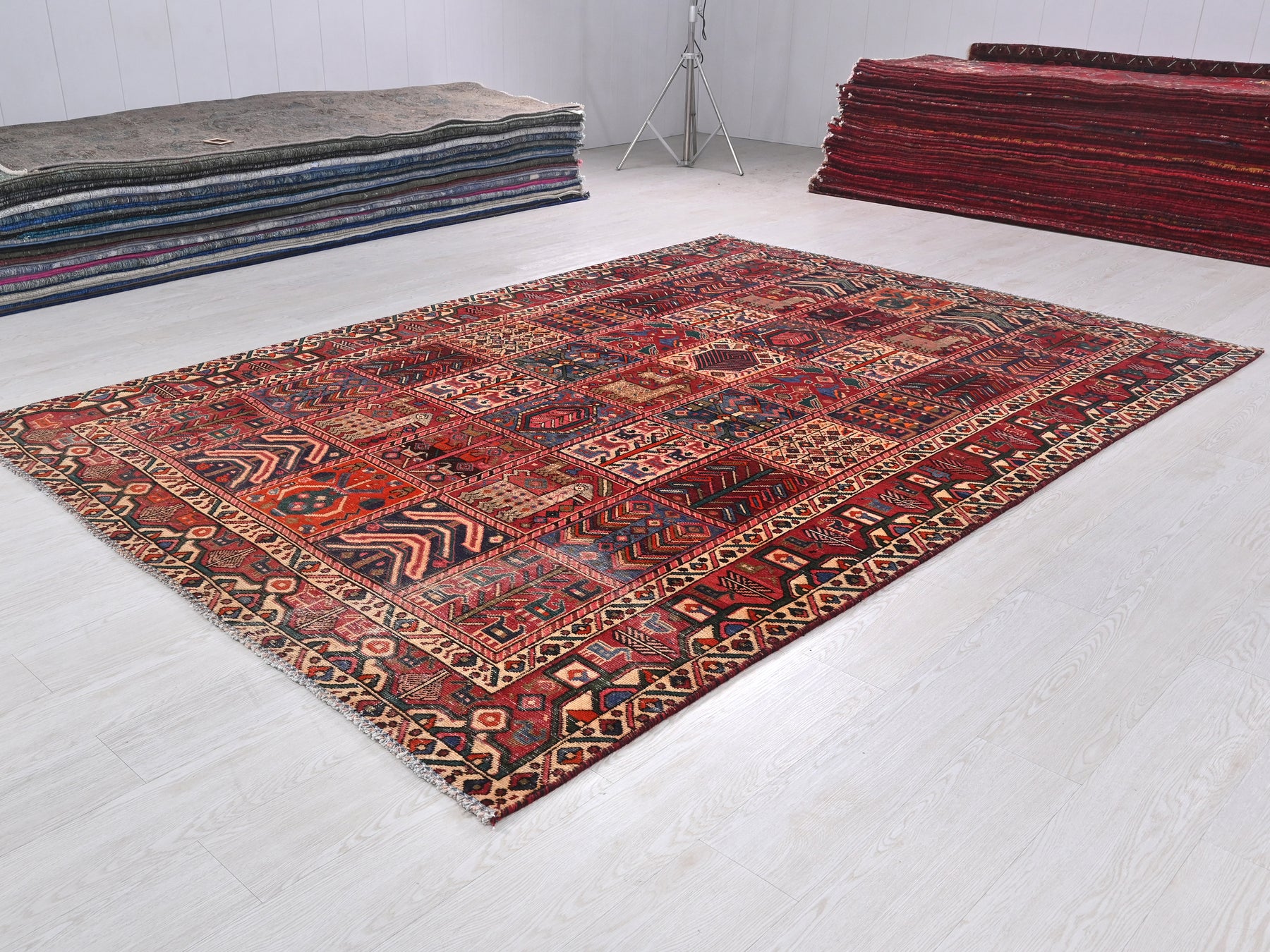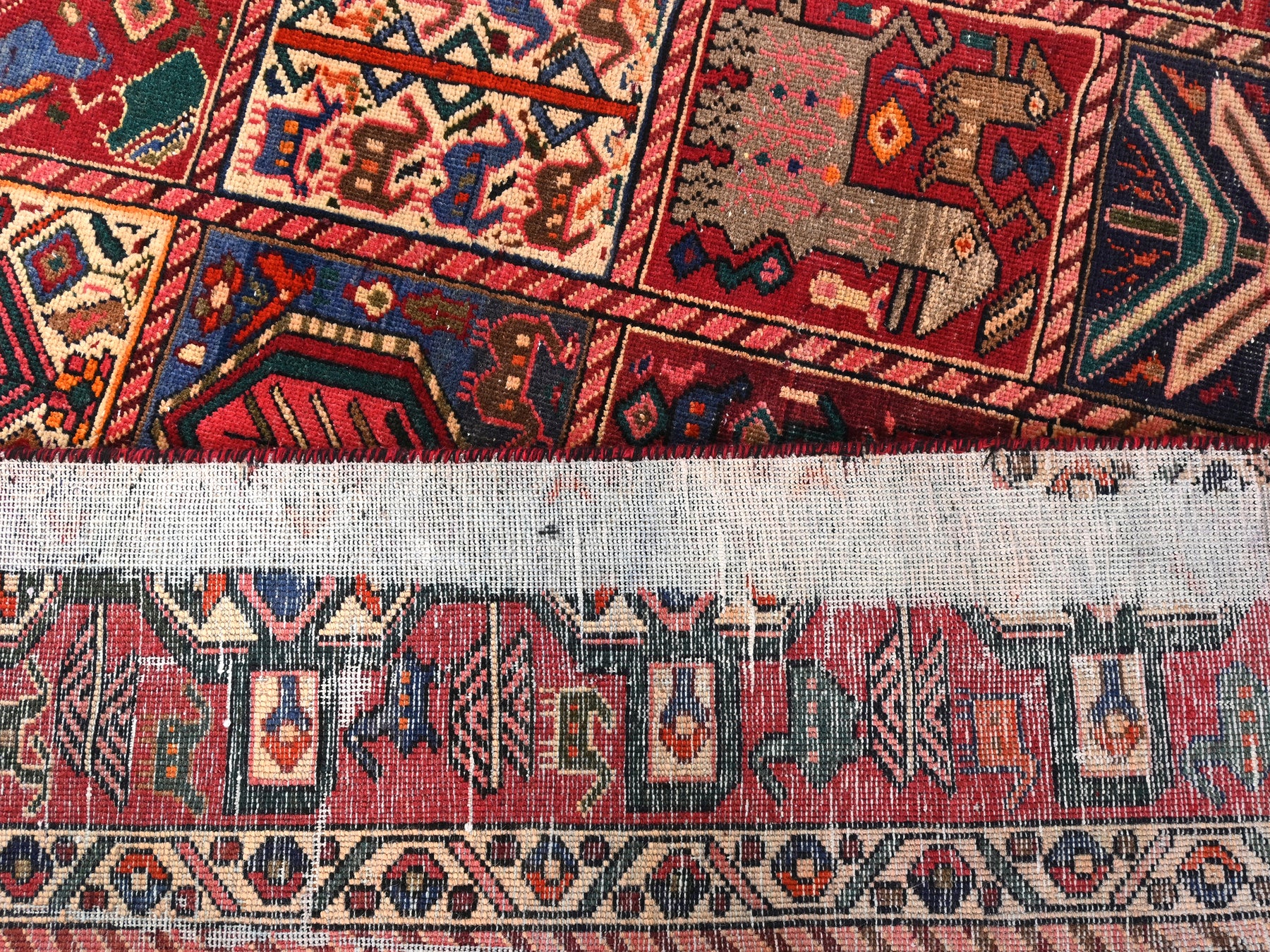 This is a hand-knotted, one-of-a-kind vintage rug. Due to the nature of this piece, there may be slight imperfections in its wear, shape, dimensions, and color. All of our rugs are professionally cleaned and repaired.