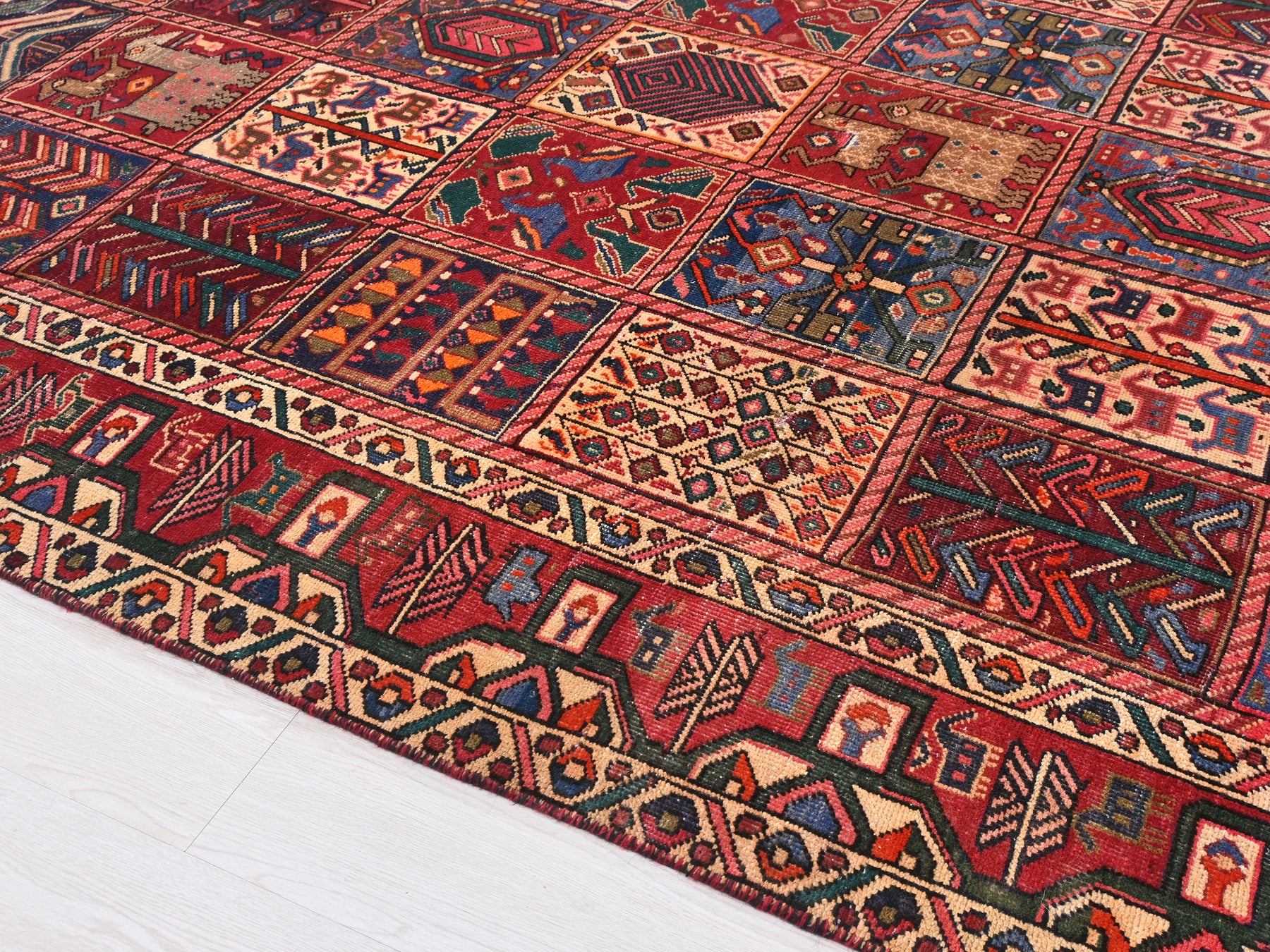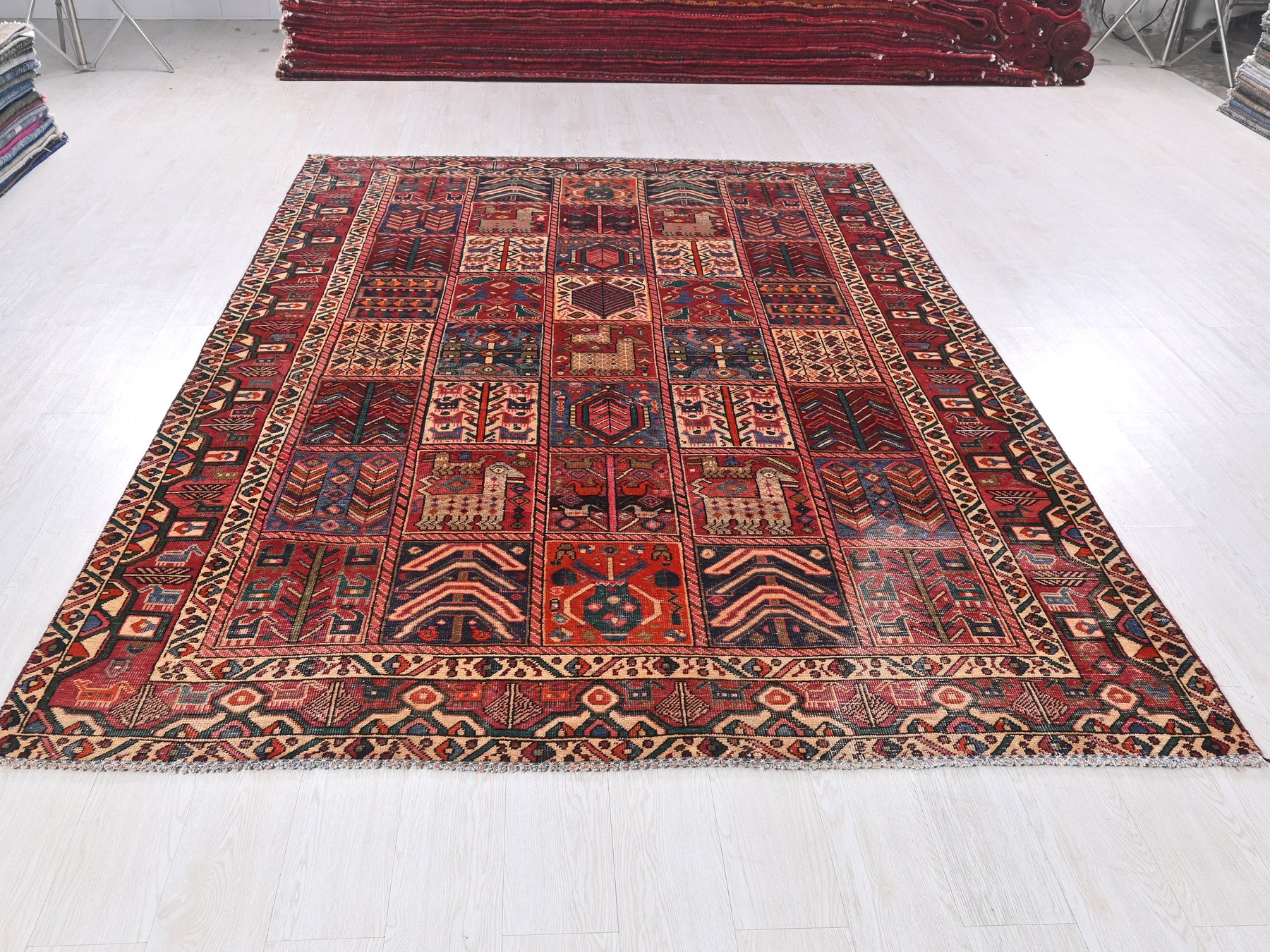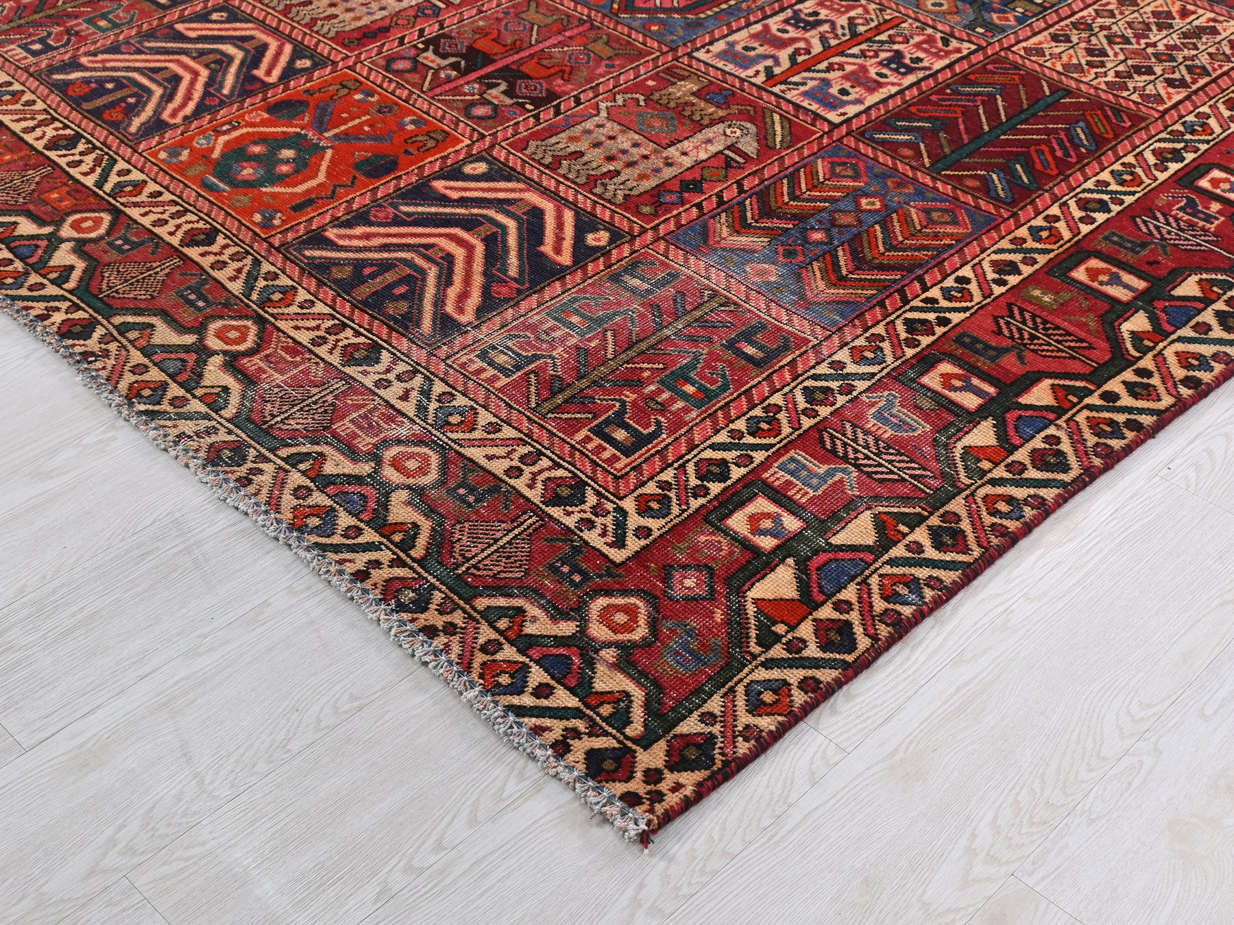 This is a hand-knotted, one-of-a-kind vintage rug. Due to the nature of this piece, there may be slight imperfections in its wear, shape, dimensions, and color. All of our rugs are professionally cleaned and repaired.