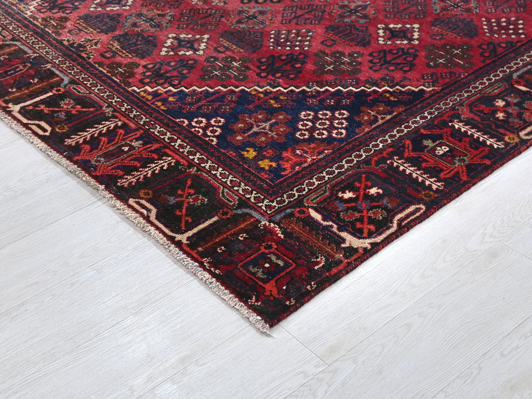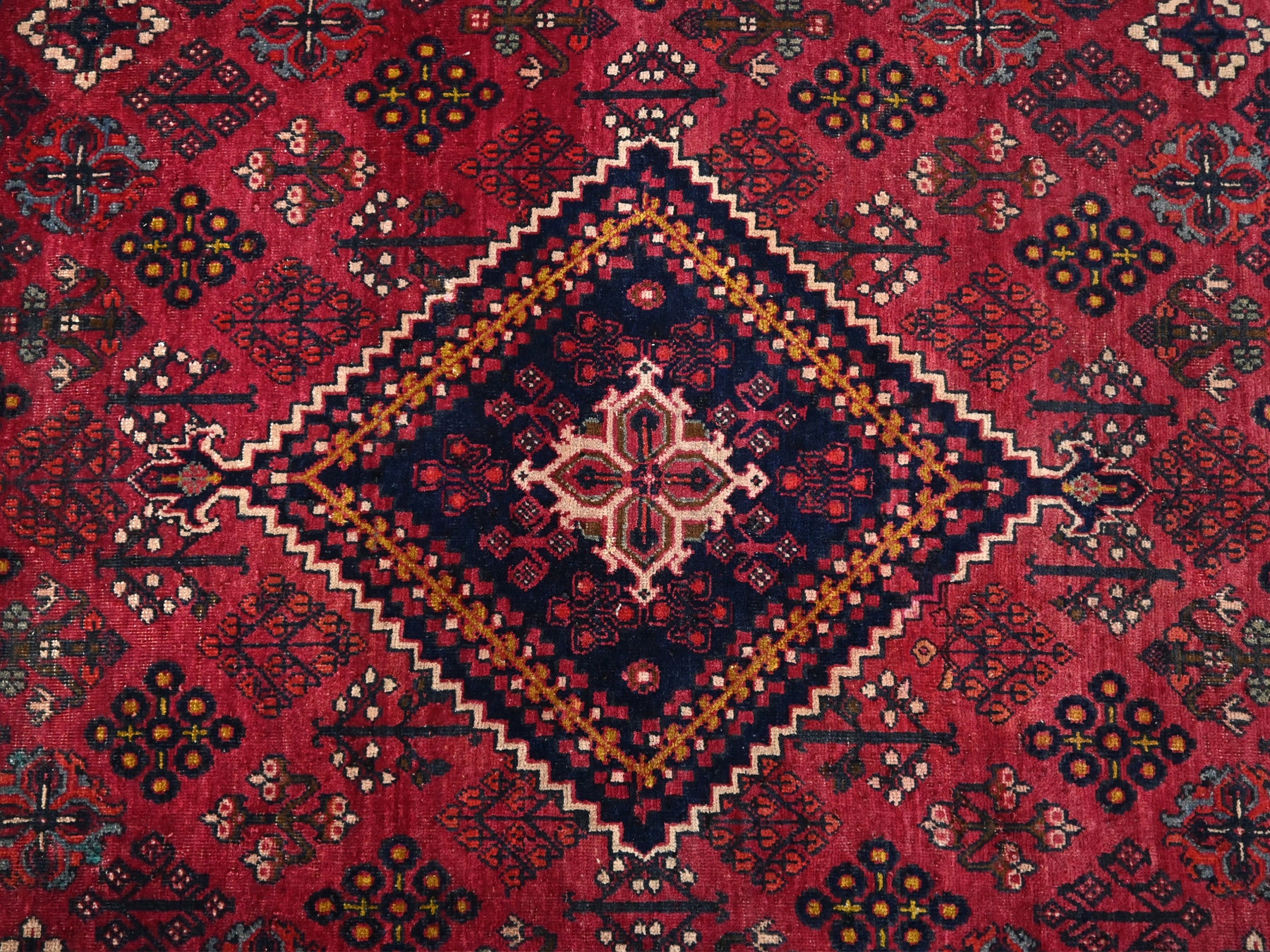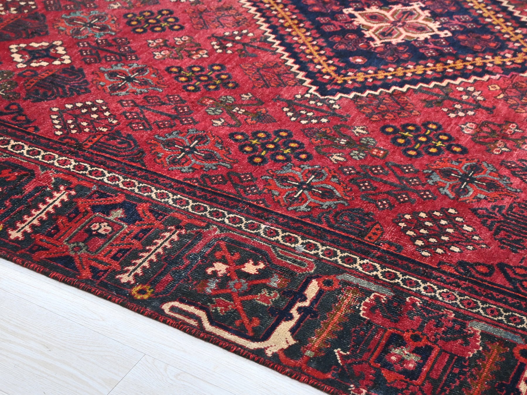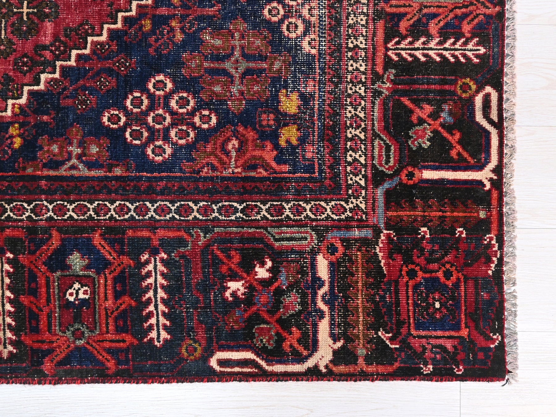 This is a hand-knotted, one-of-a-kind vintage rug. Due to the nature of this piece, there may be slight imperfections in its wear, shape, dimensions, and color. All of our rugs are professionally cleaned and repaired.
