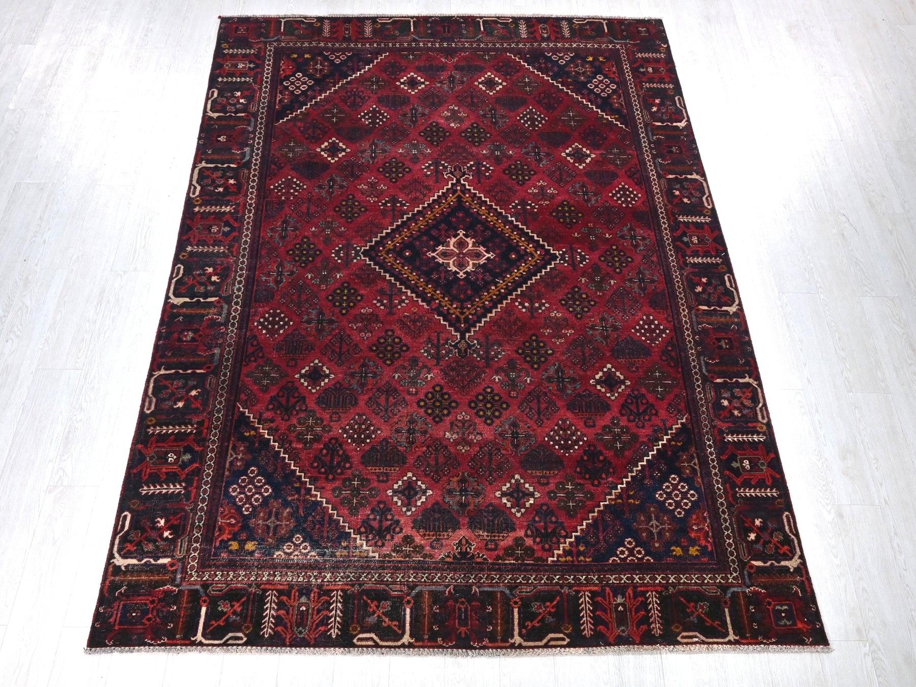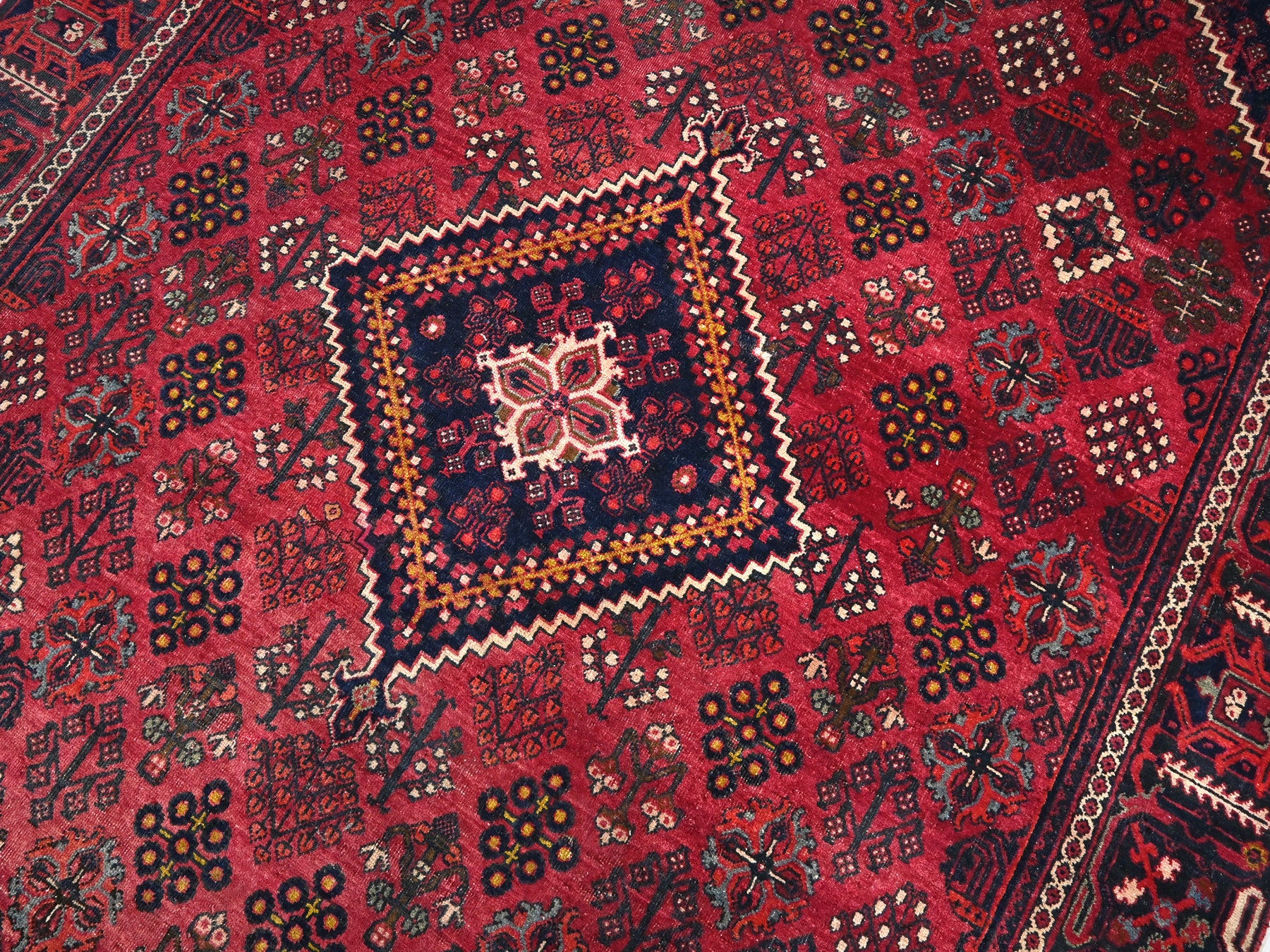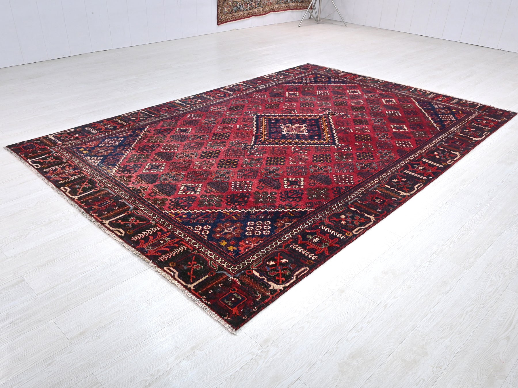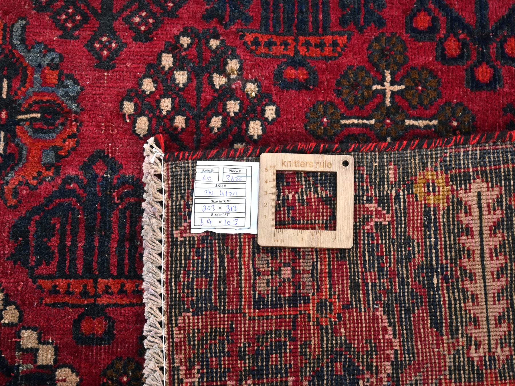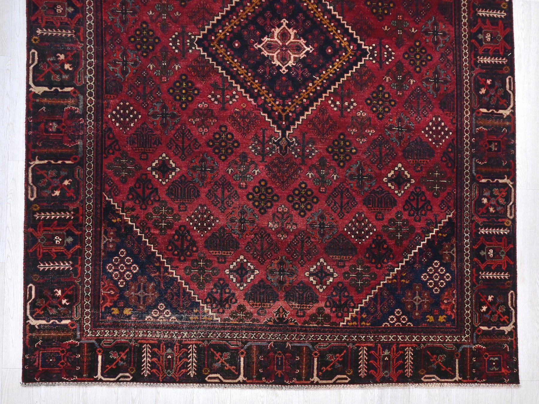 This is a hand-knotted, one-of-a-kind vintage rug. Due to the nature of this piece, there may be slight imperfections in its wear, shape, dimensions, and color. All of our rugs are professionally cleaned and repaired.
