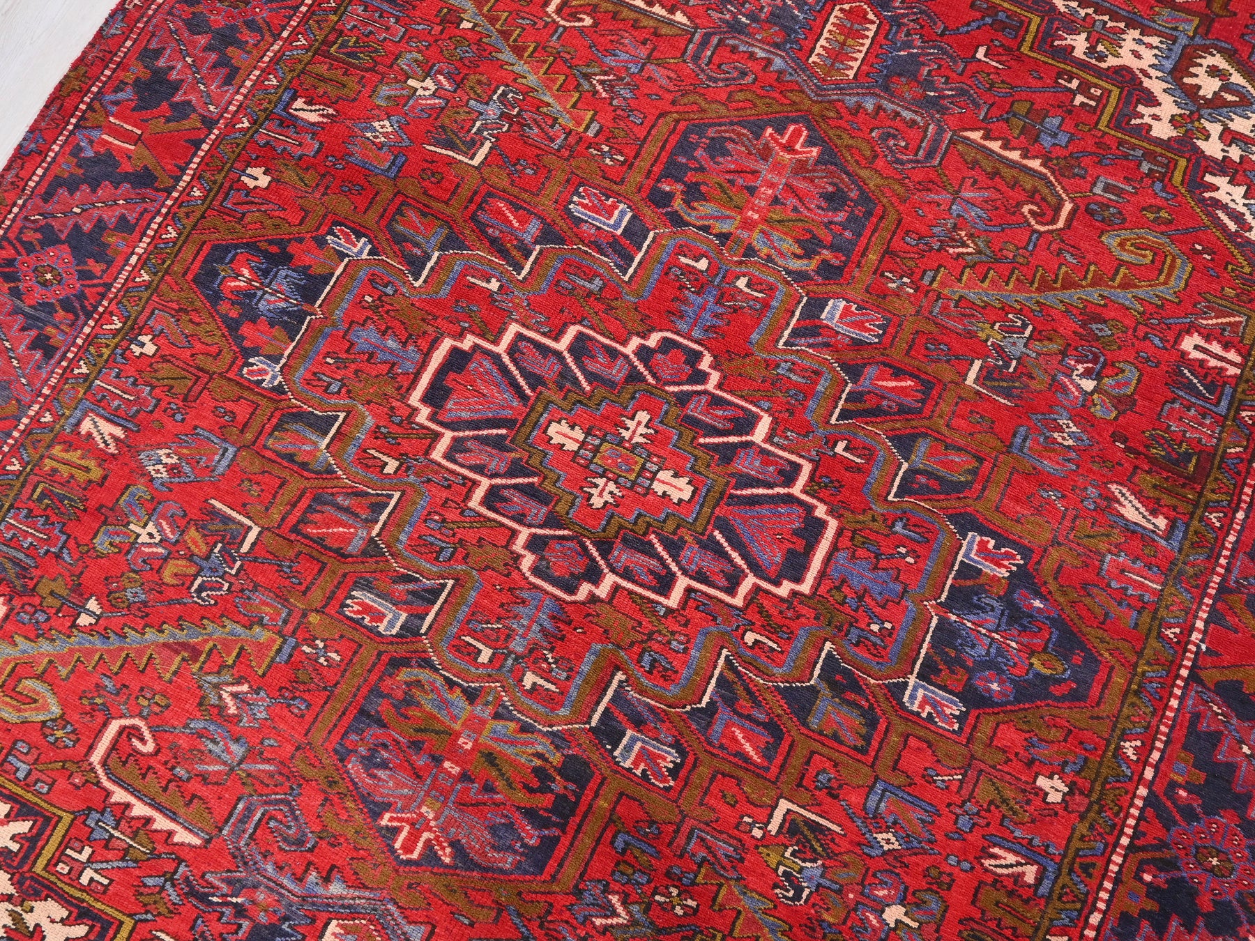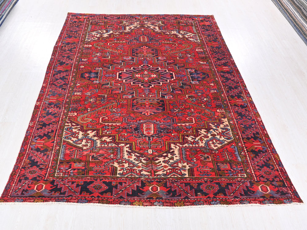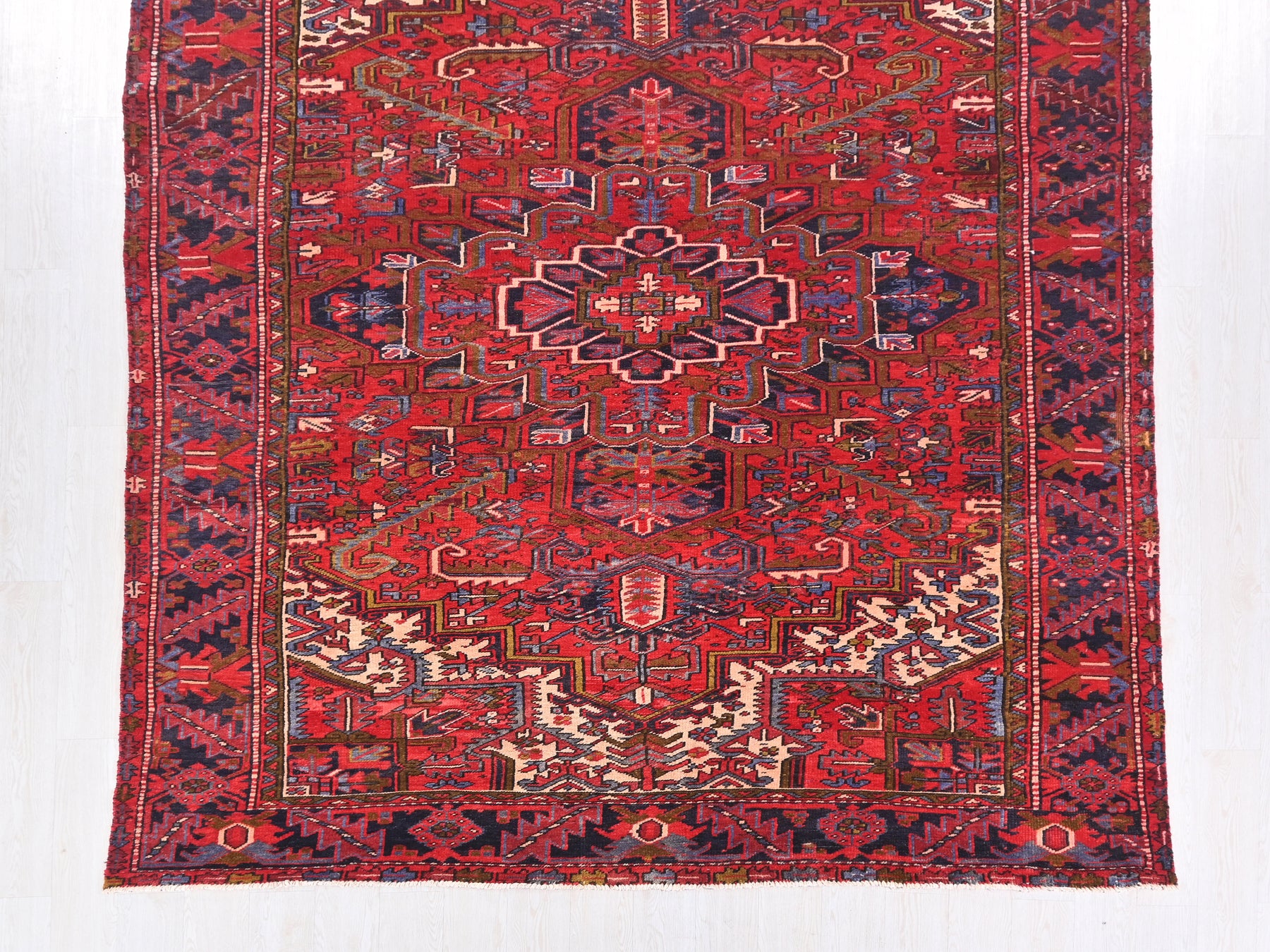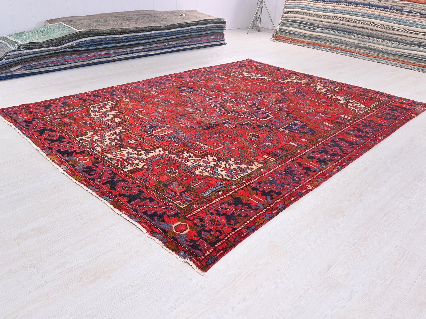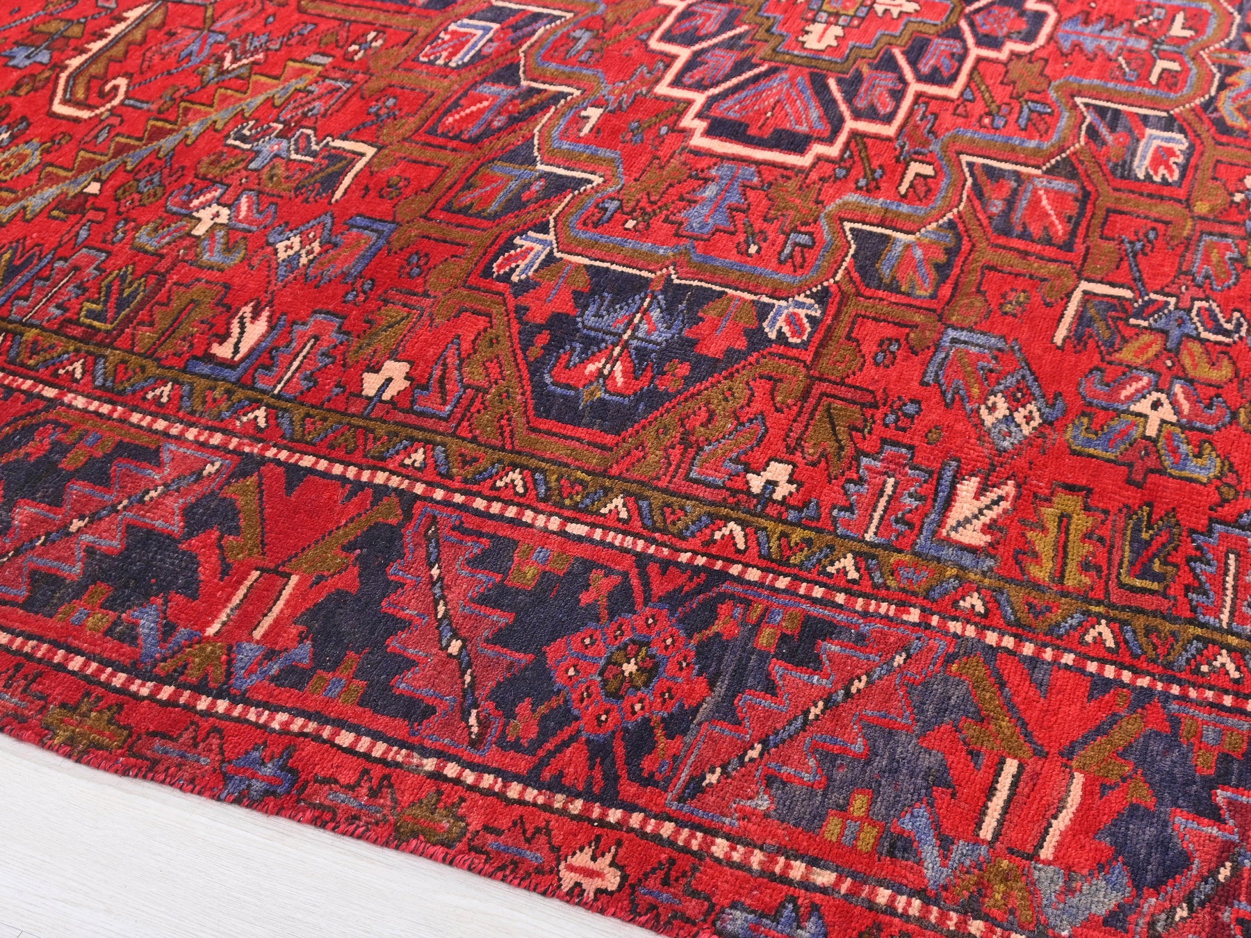This is a hand-knotted, one-of-a-kind vintage rug. Due to the nature of this piece, there may be slight imperfections in its wear, shape, dimensions, and color. All of our rugs are professionally cleaned and repaired.