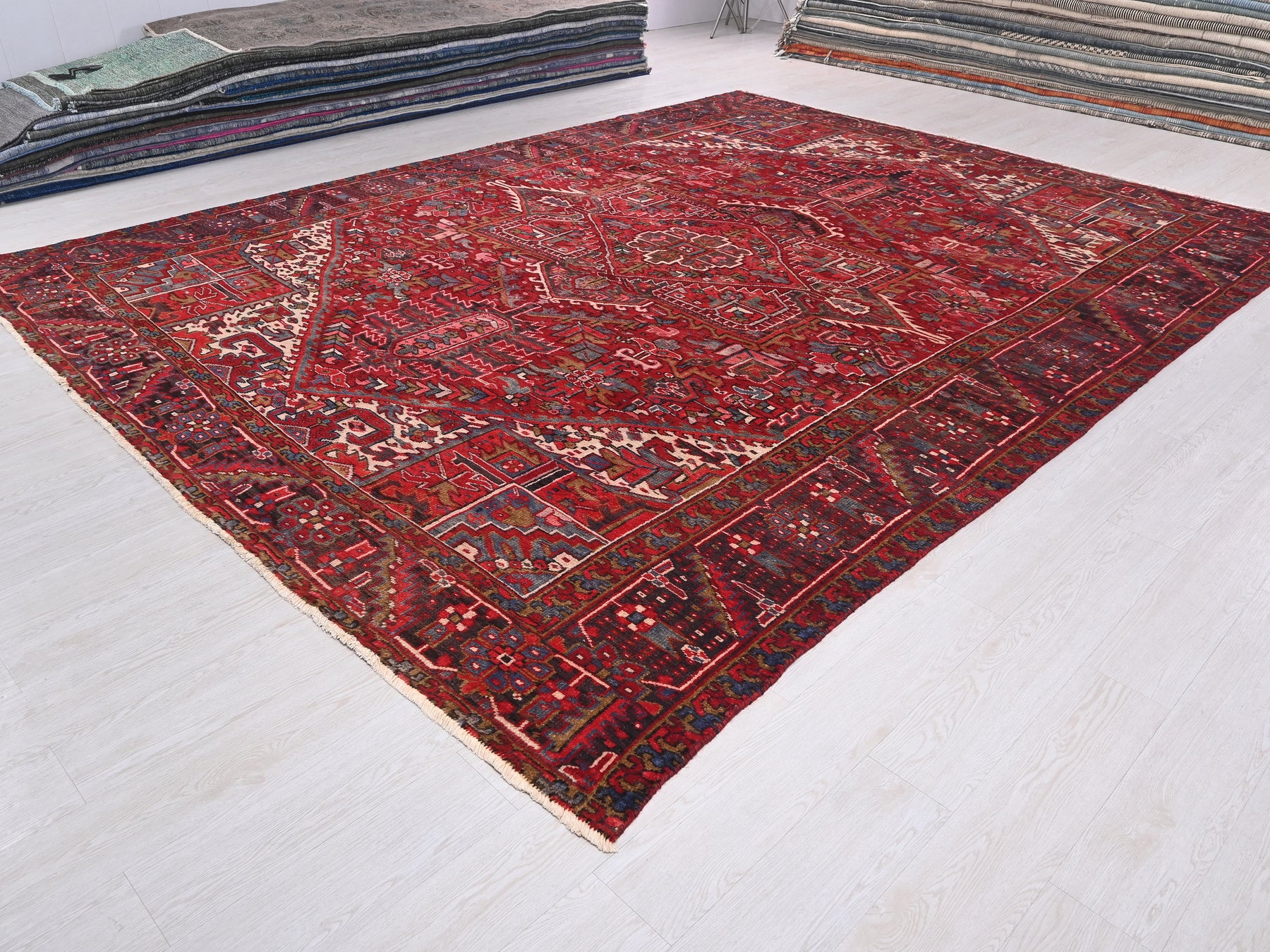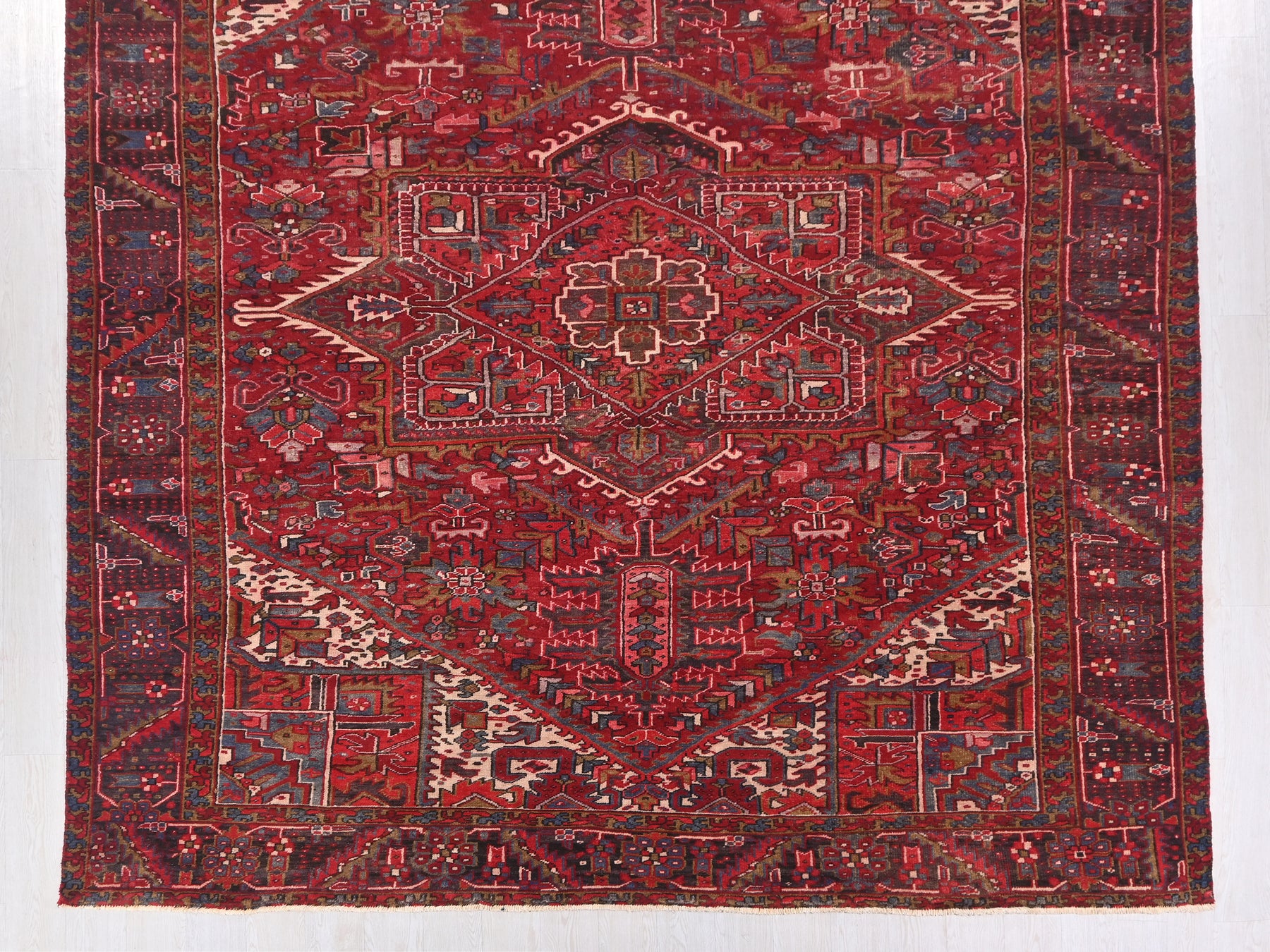 This is a hand-knotted, one-of-a-kind vintage rug. Due to the nature of this piece, there may be slight imperfections in its wear, shape, dimensions, and color. All of our rugs are professionally cleaned and repaired.