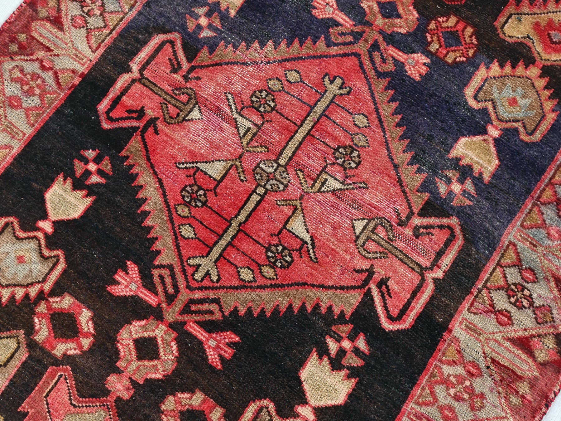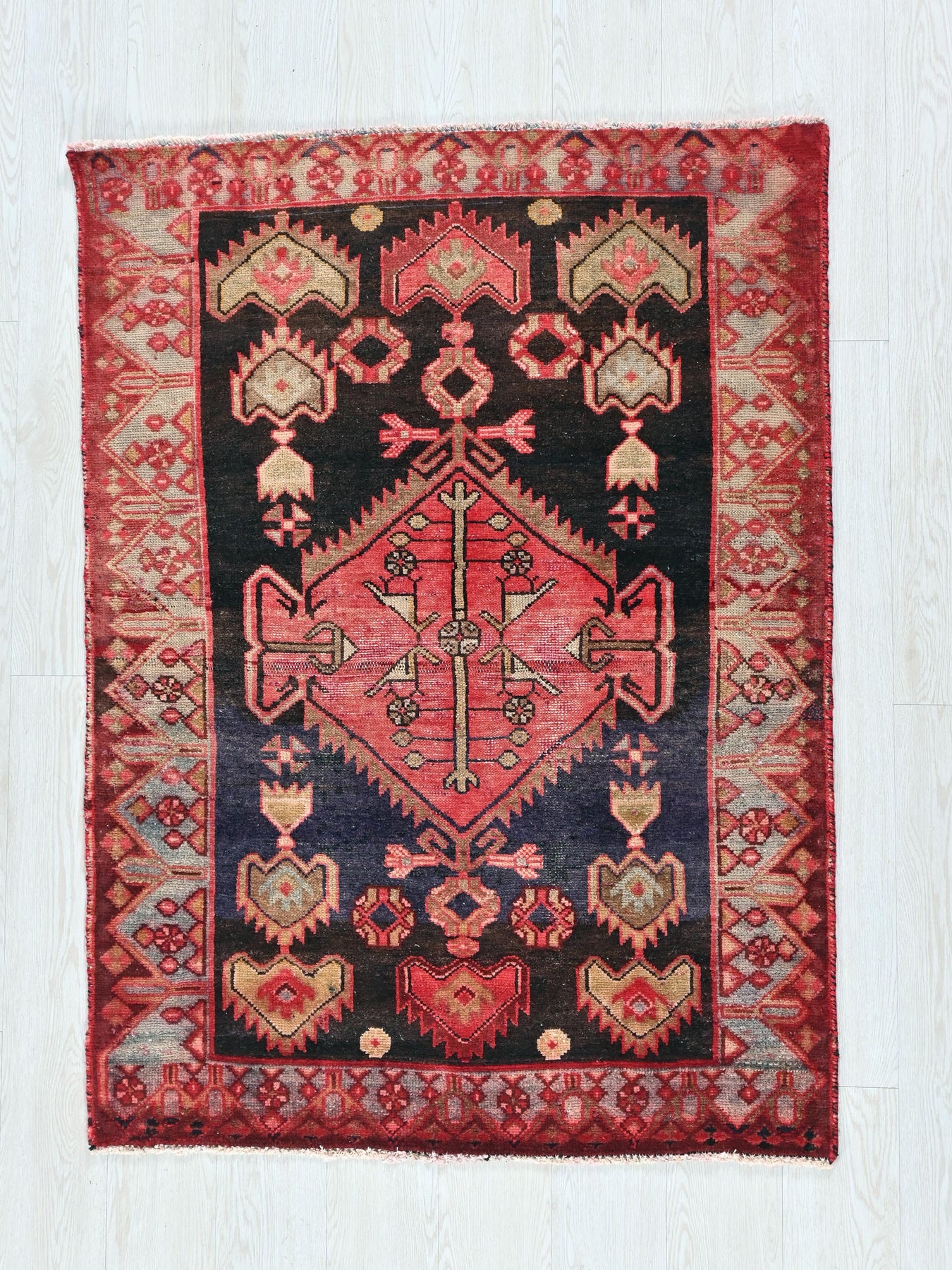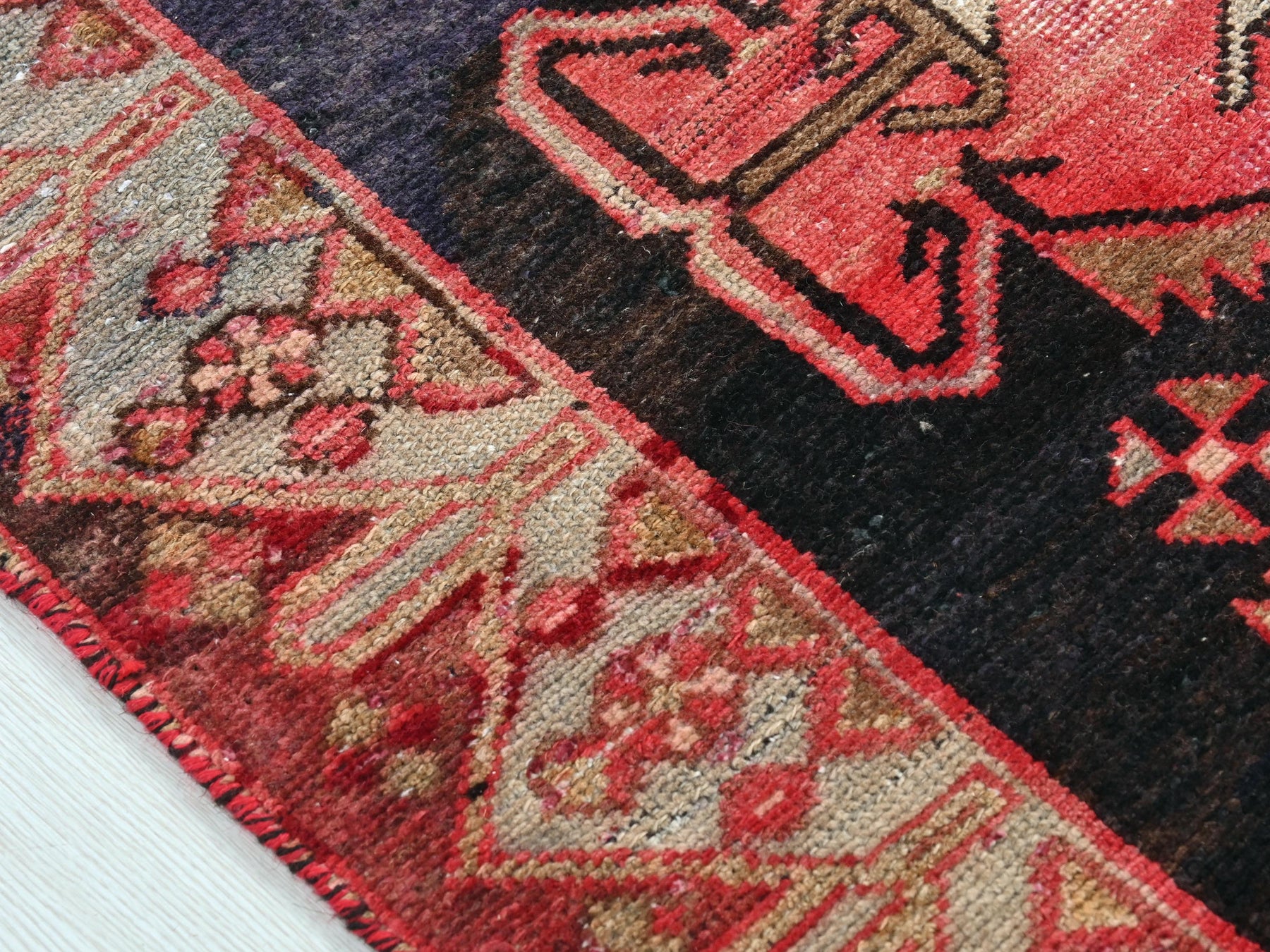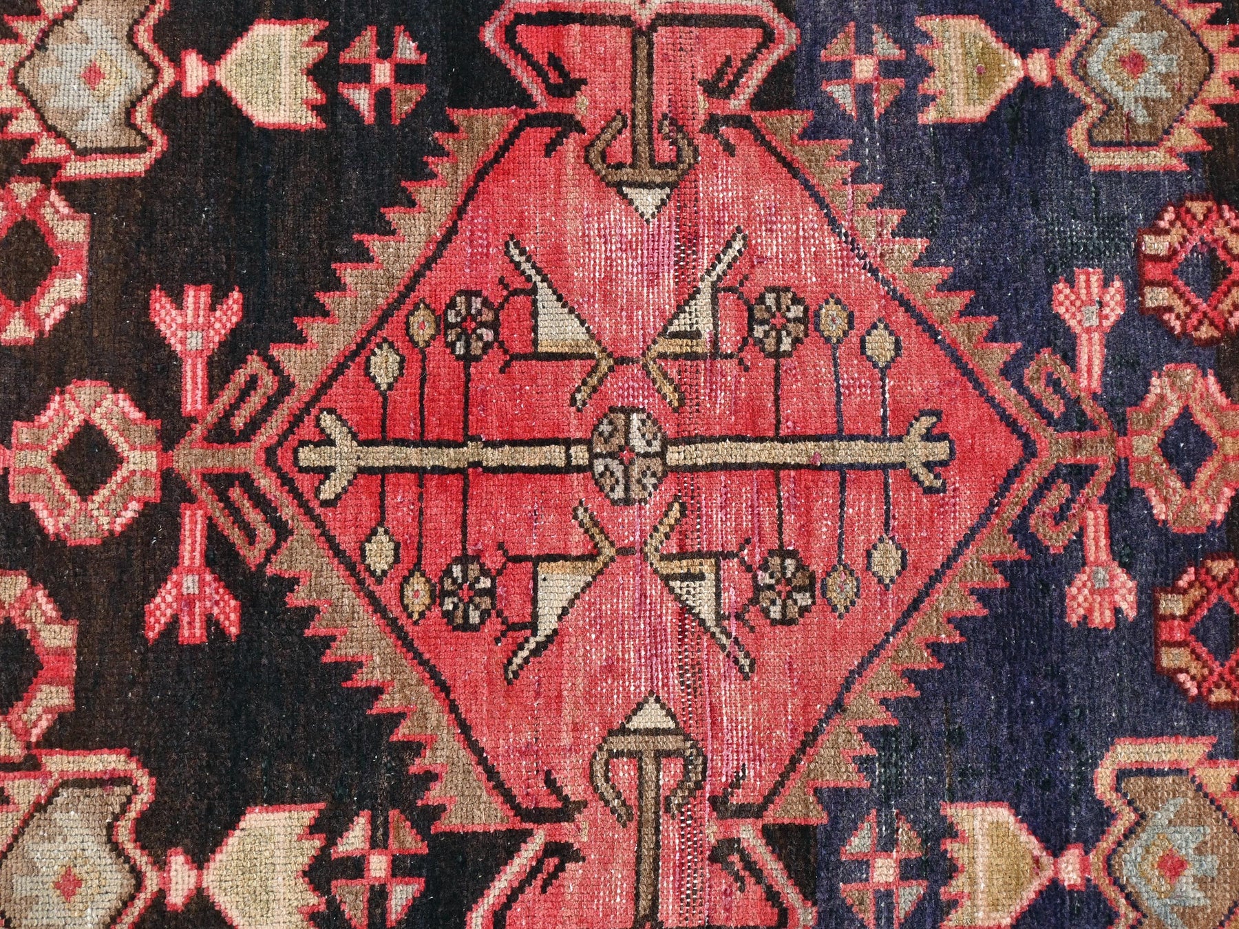 This is a hand-knotted, one-of-a-kind vintage rug. Due to the nature of this piece, there may be slight imperfections in its wear, shape, dimensions, and color. All of our rugs are professionally cleaned and repaired.