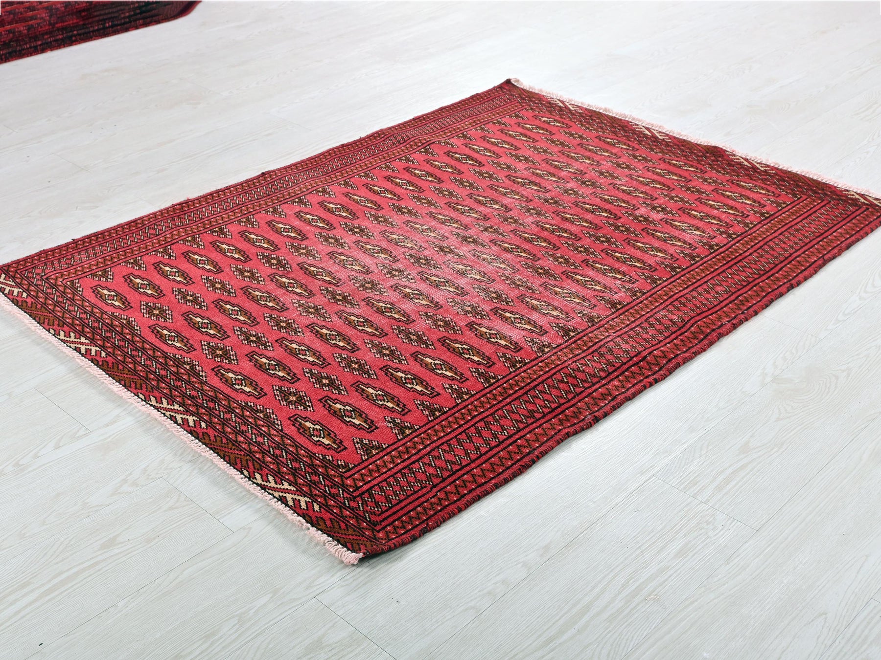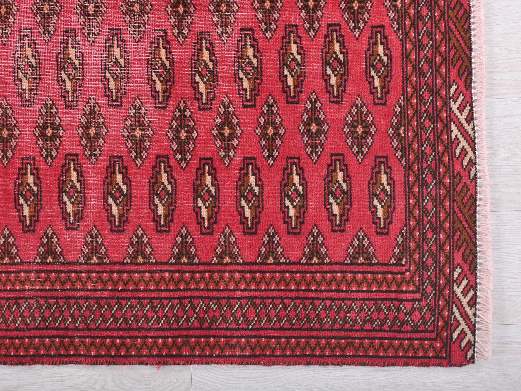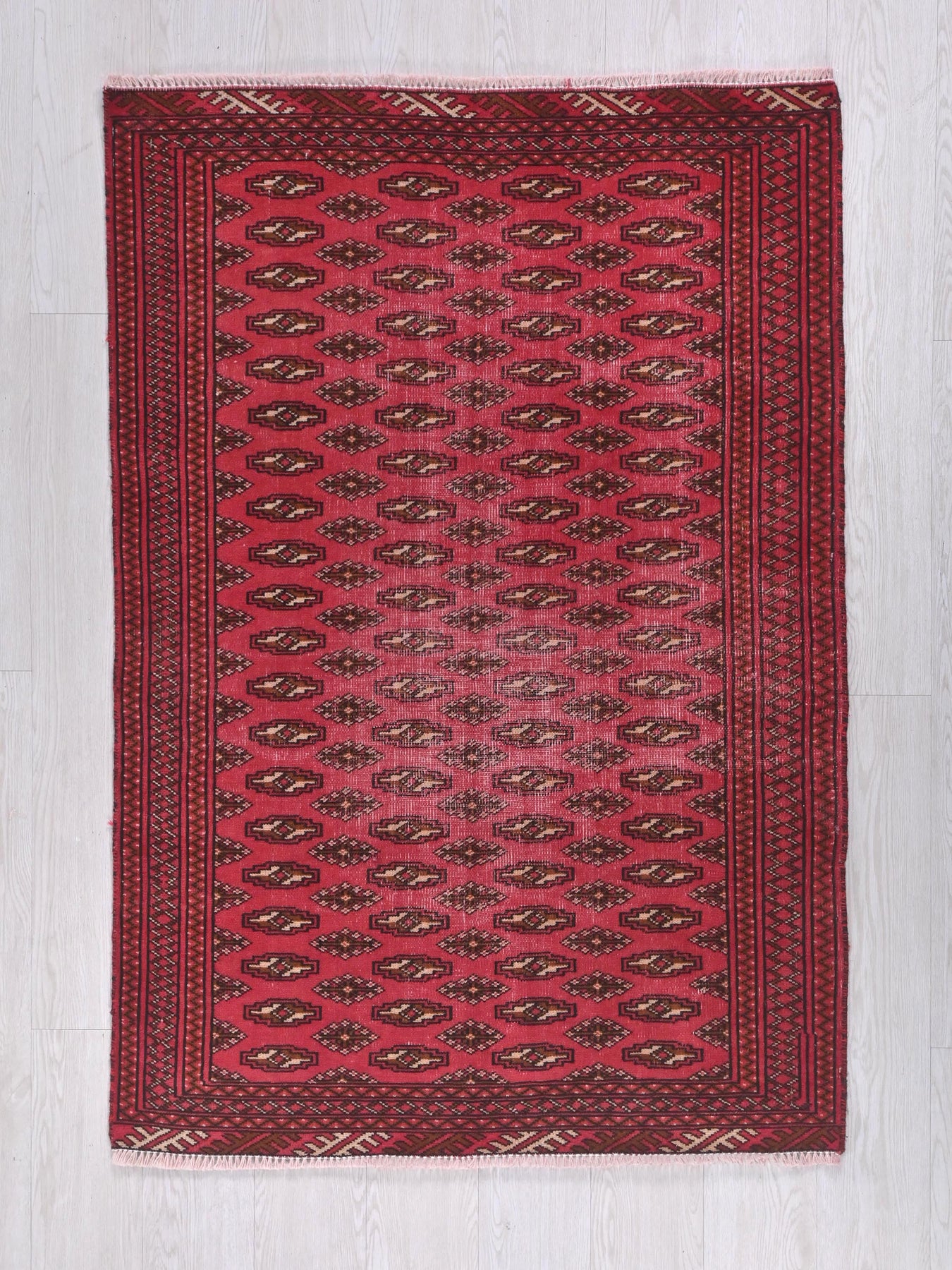 This is a hand-knotted, one-of-a-kind vintage rug. Due to the nature of this piece, there may be slight imperfections in its wear, shape, dimensions, and color. All of our rugs are professionally cleaned and repaired.