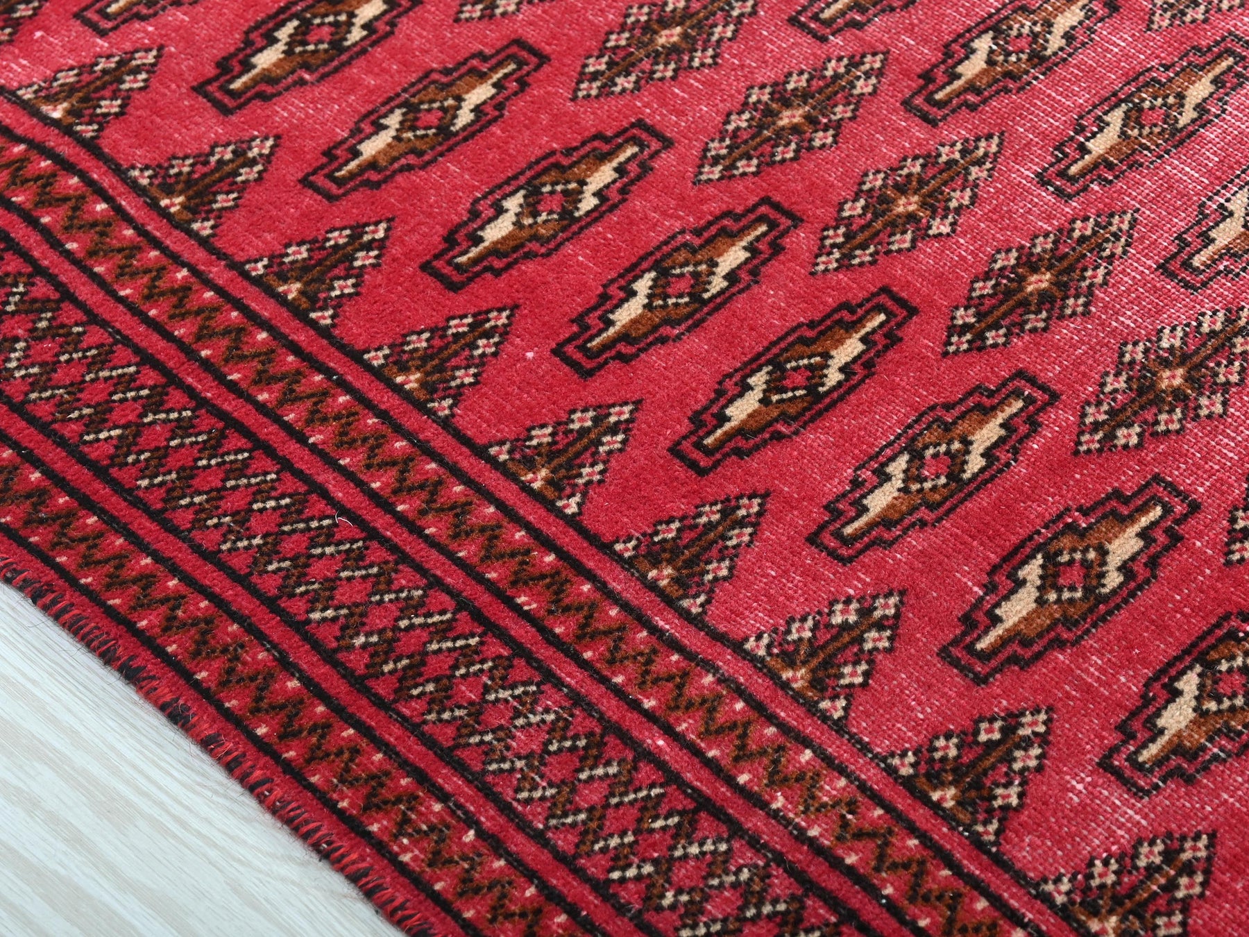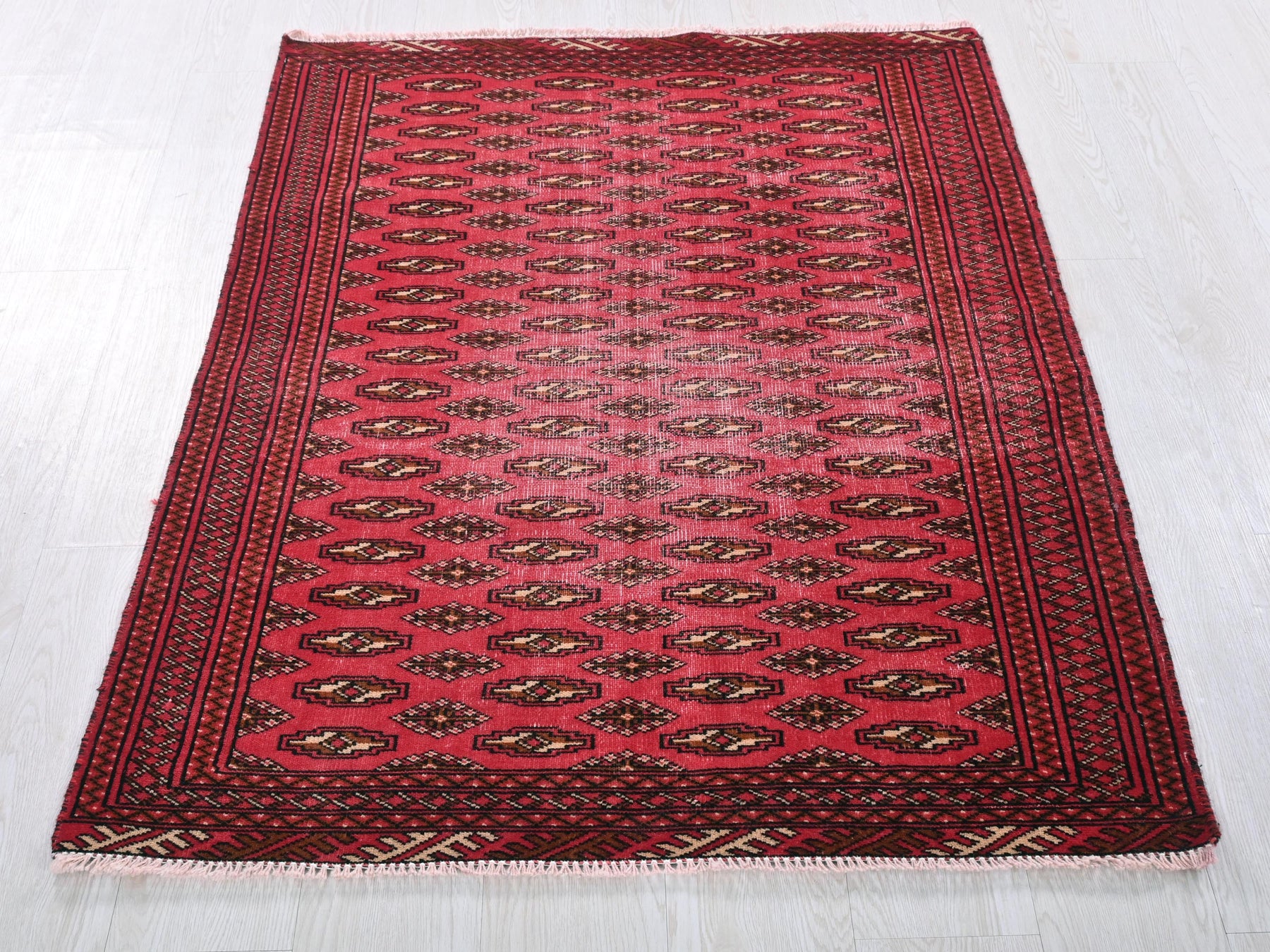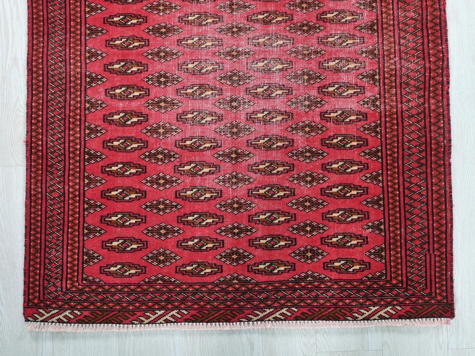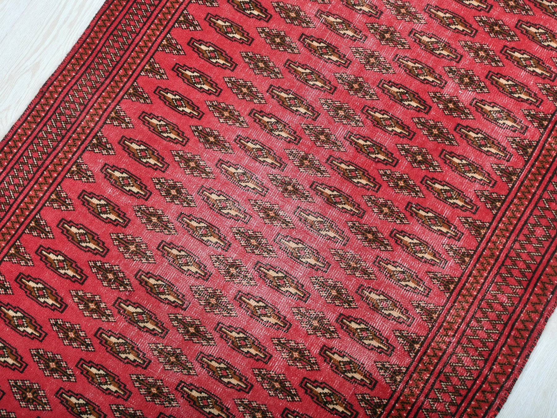 This is a hand-knotted, one-of-a-kind vintage rug. Due to the nature of this piece, there may be slight imperfections in its wear, shape, dimensions, and color. All of our rugs are professionally cleaned and repaired.