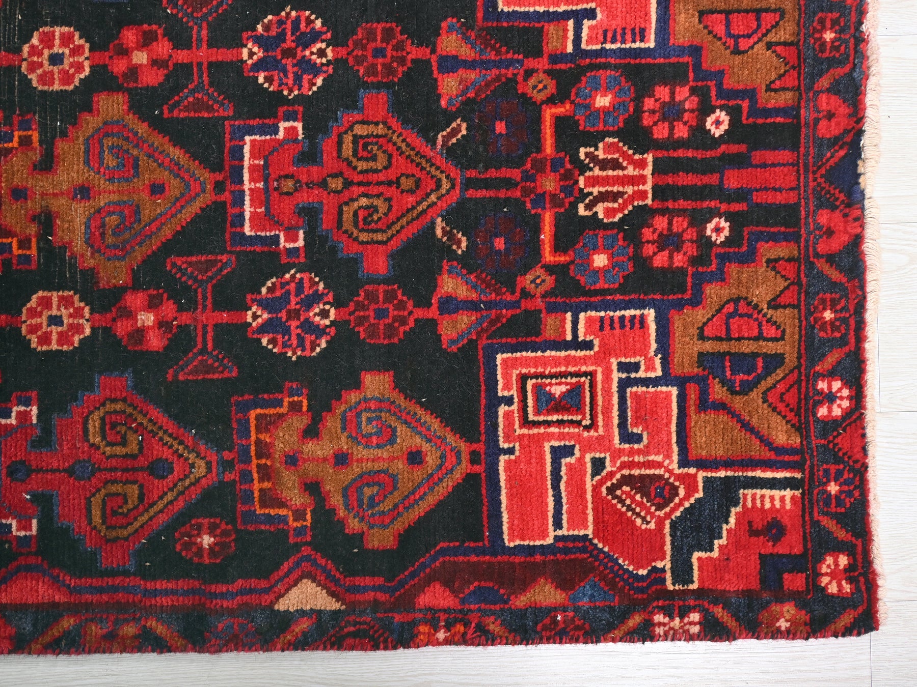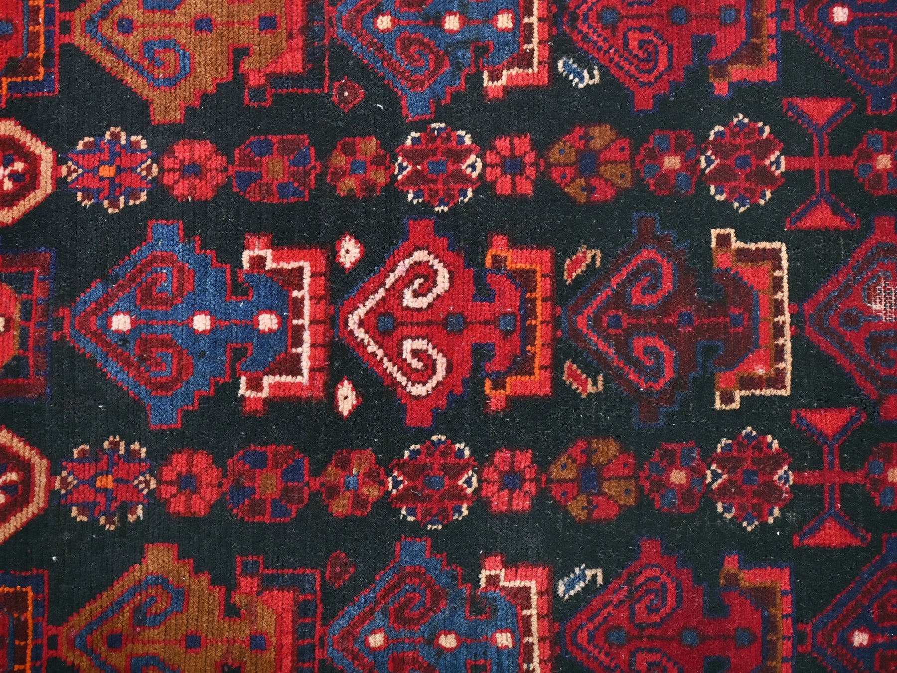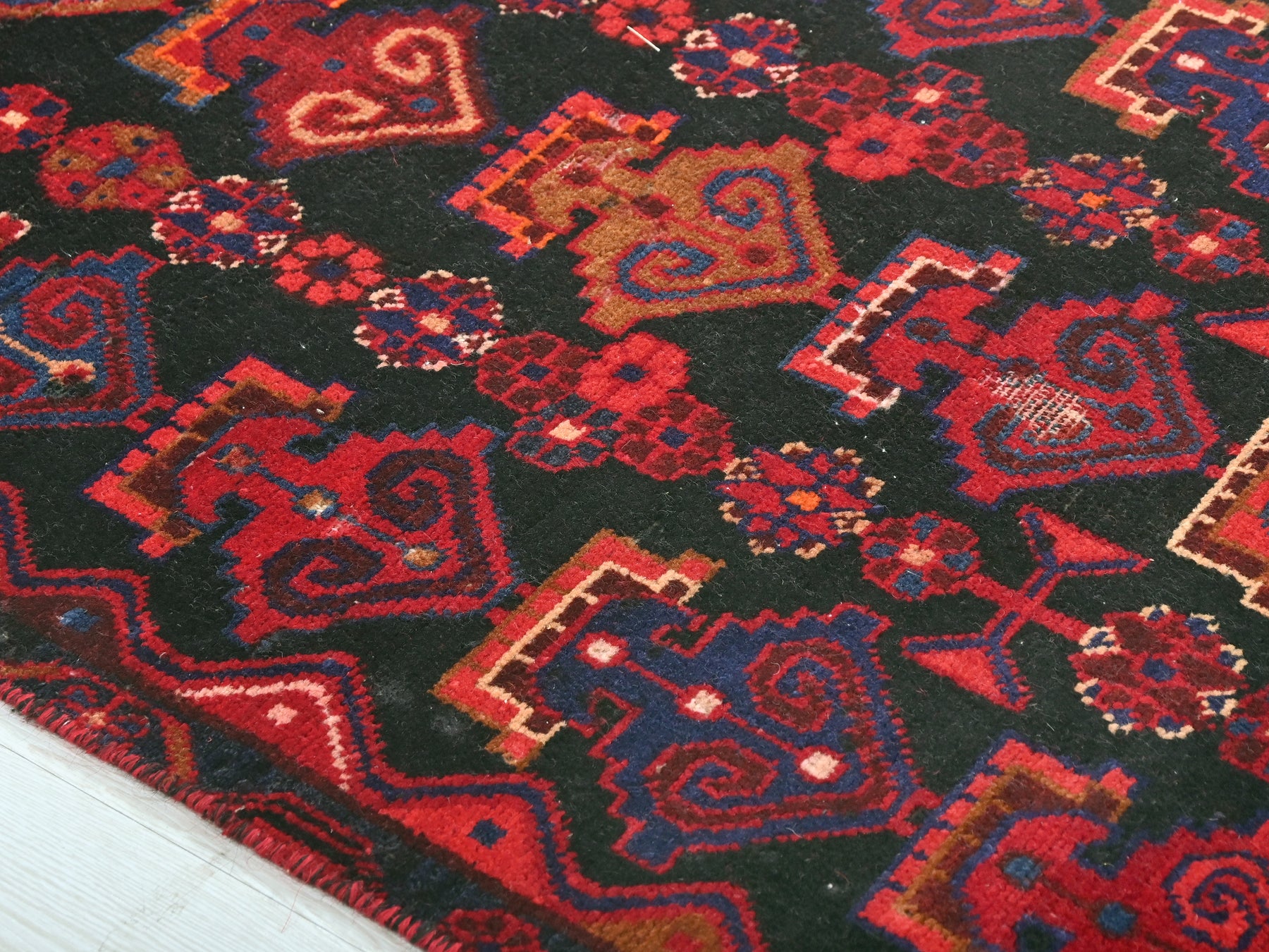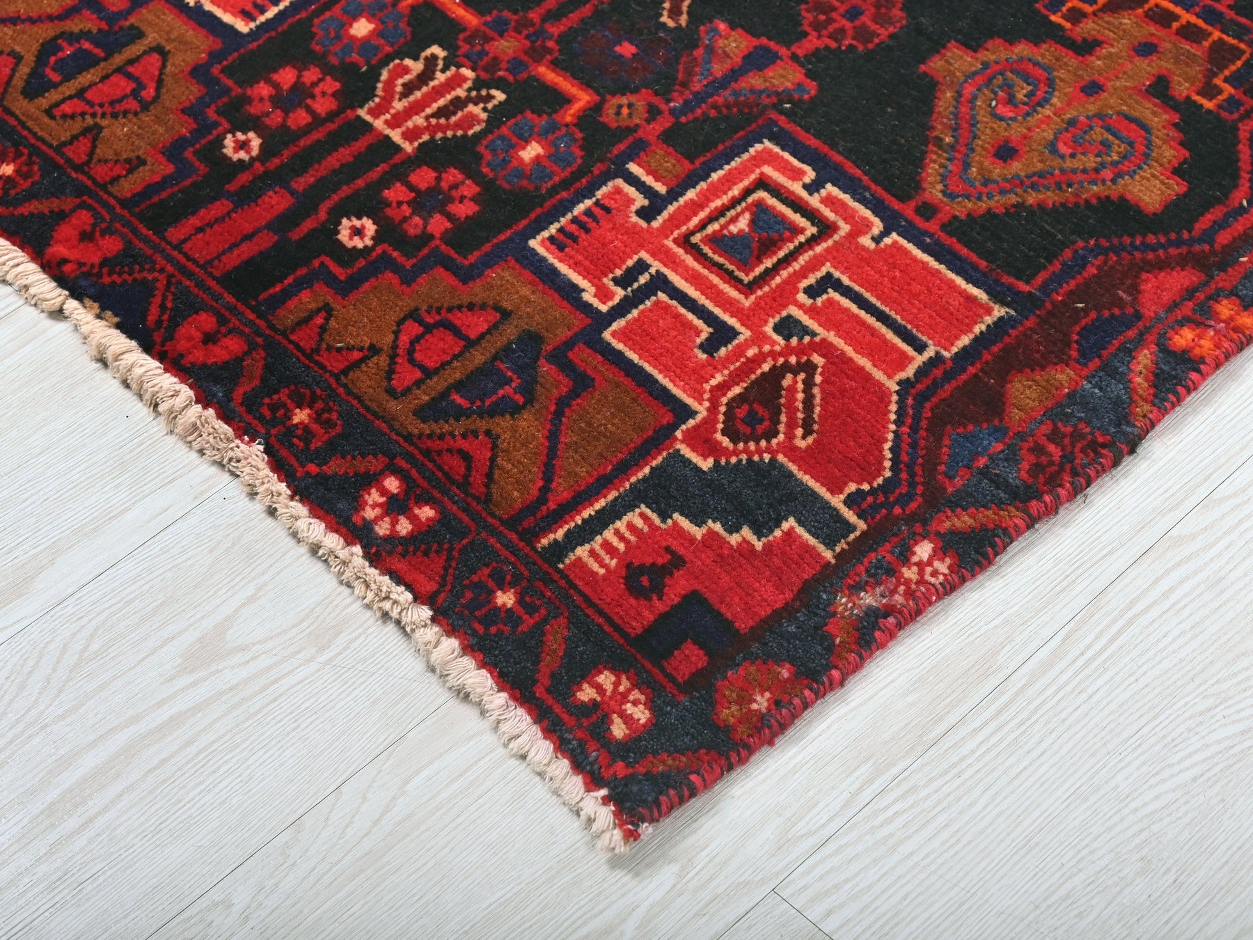 This is a hand-knotted, one-of-a-kind vintage rug. Due to the nature of this piece, there may be slight imperfections in its wear, shape, dimensions, and color. All of our rugs are professionally cleaned and repaired.