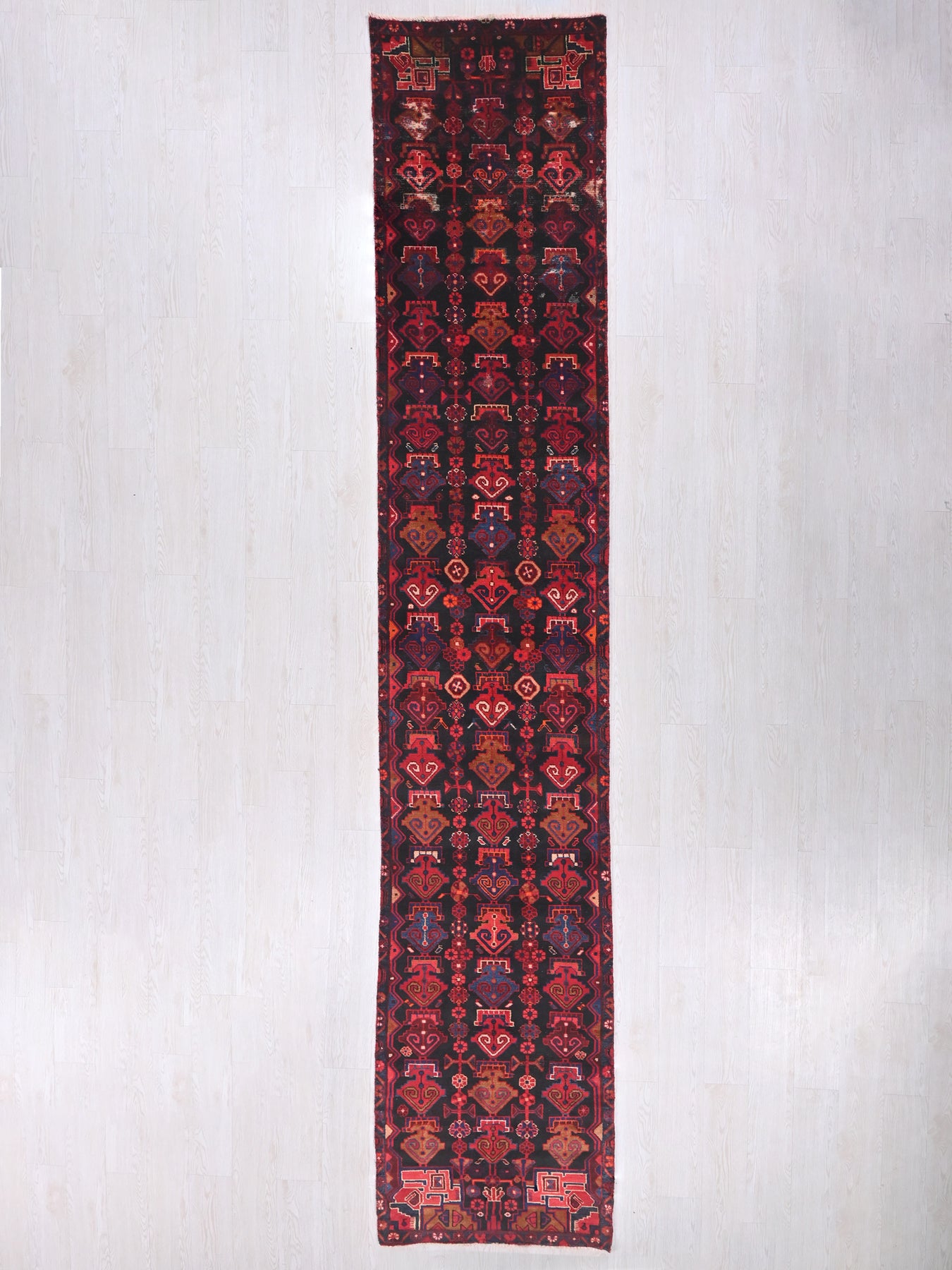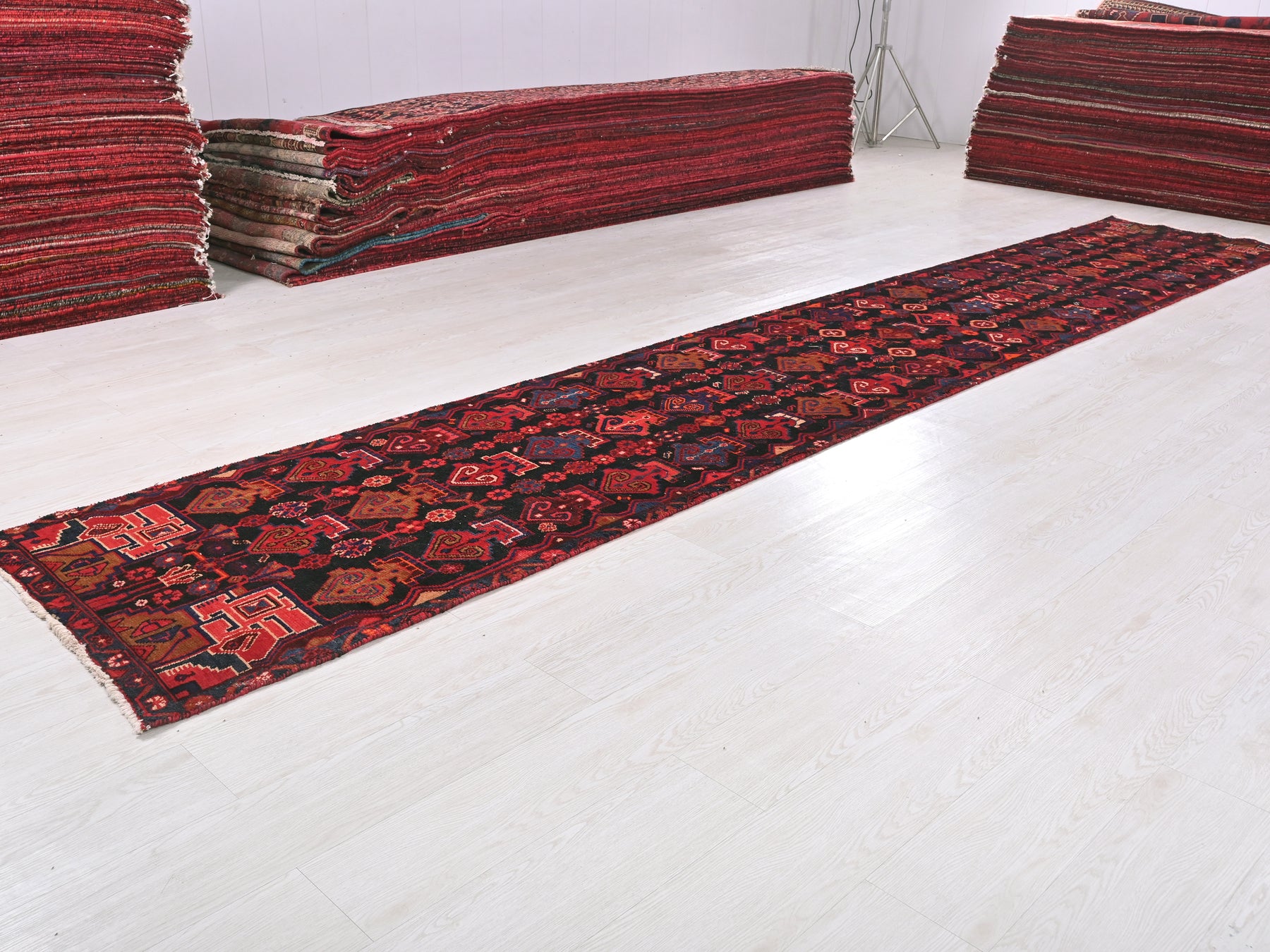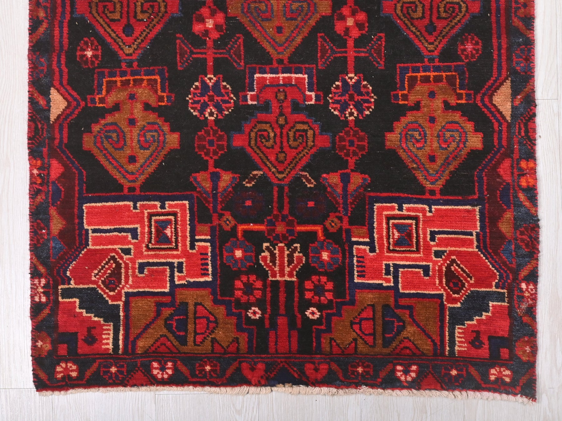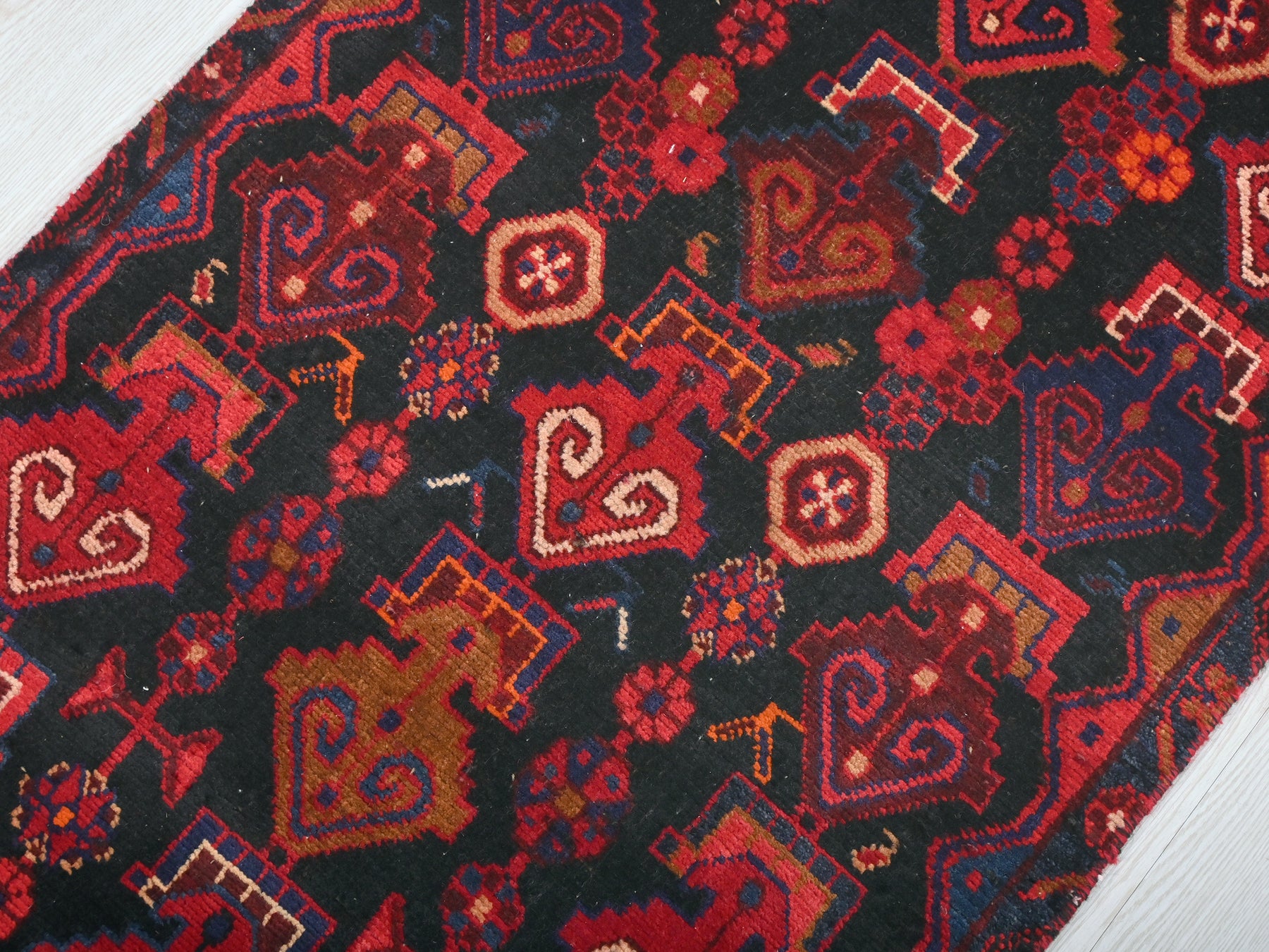 This is a hand-knotted, one-of-a-kind vintage rug. Due to the nature of this piece, there may be slight imperfections in its wear, shape, dimensions, and color. All of our rugs are professionally cleaned and repaired.